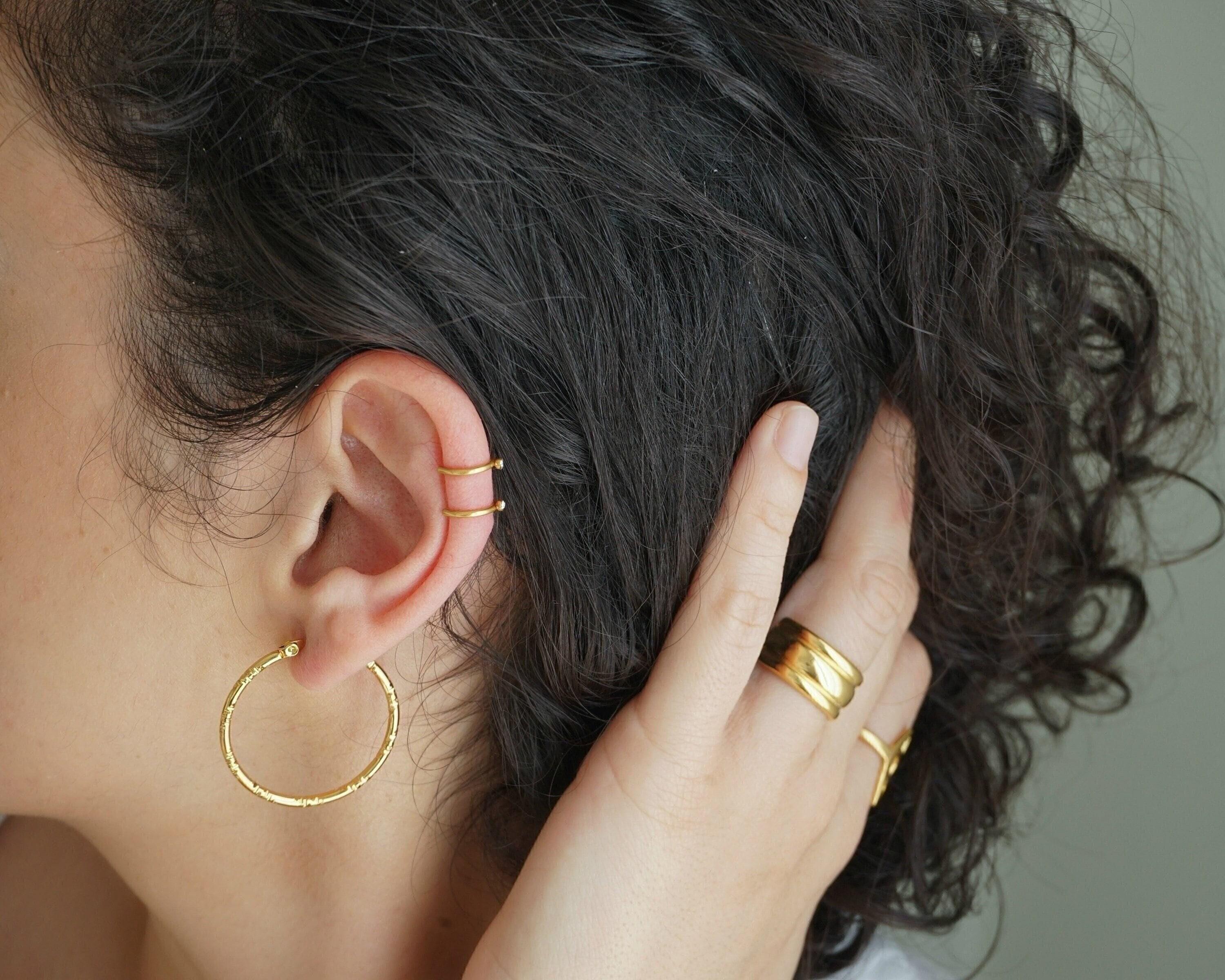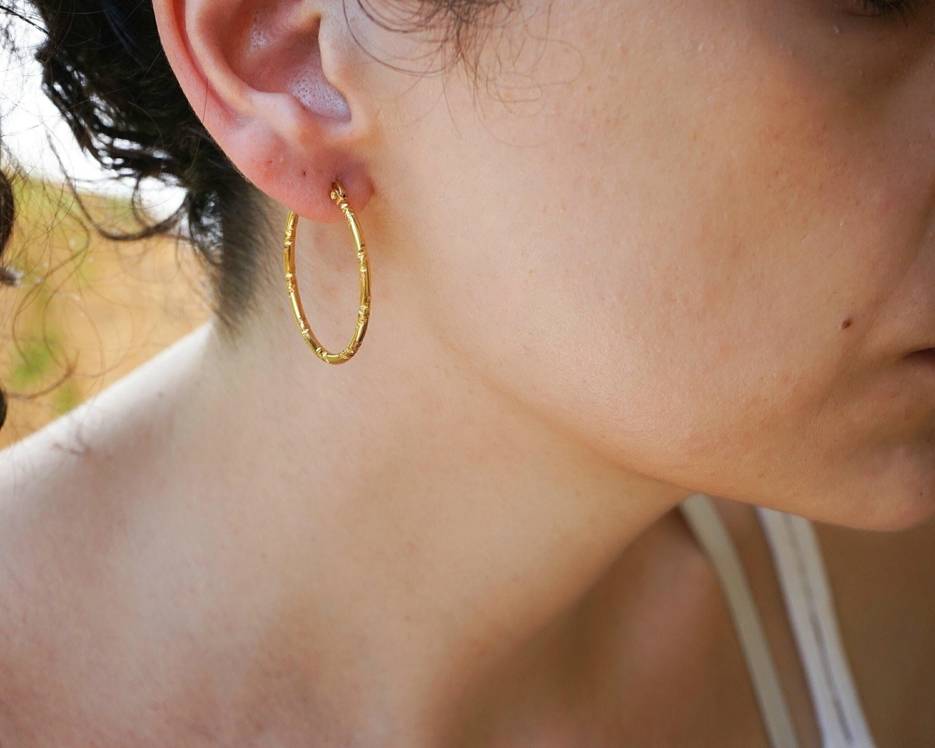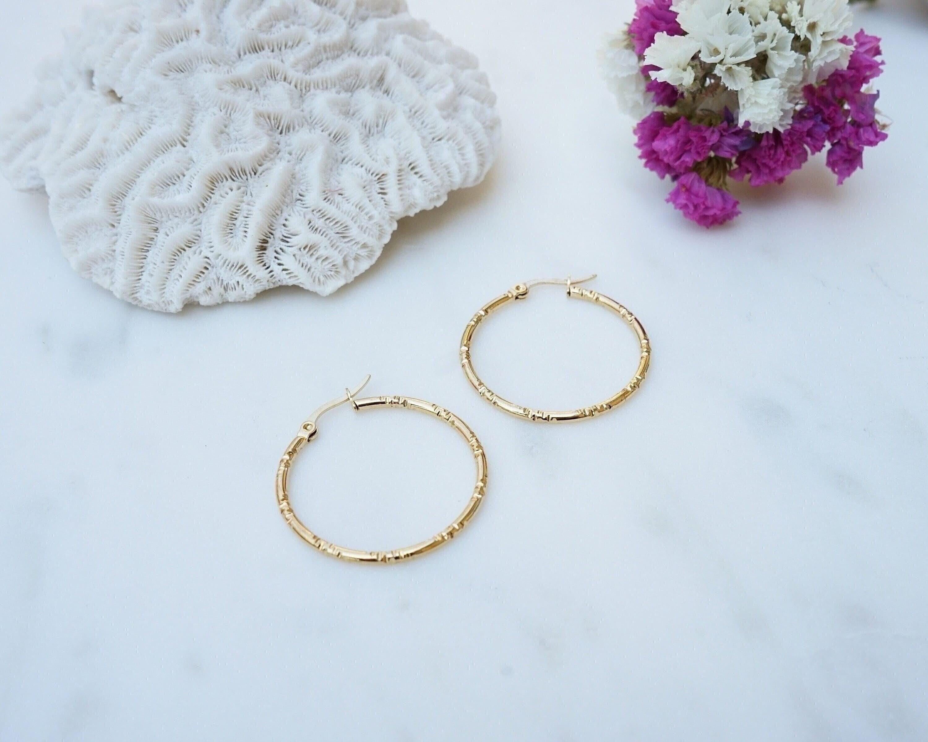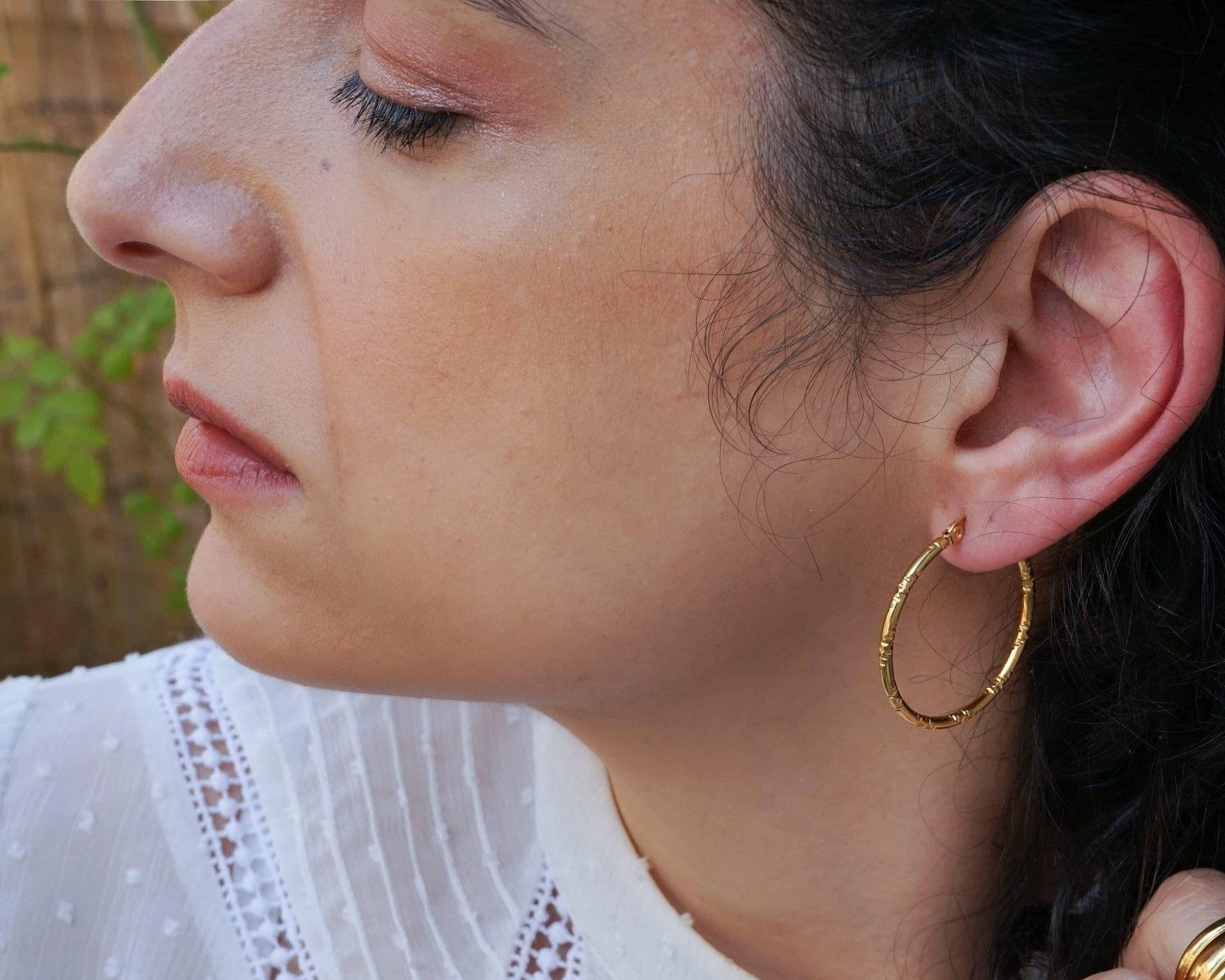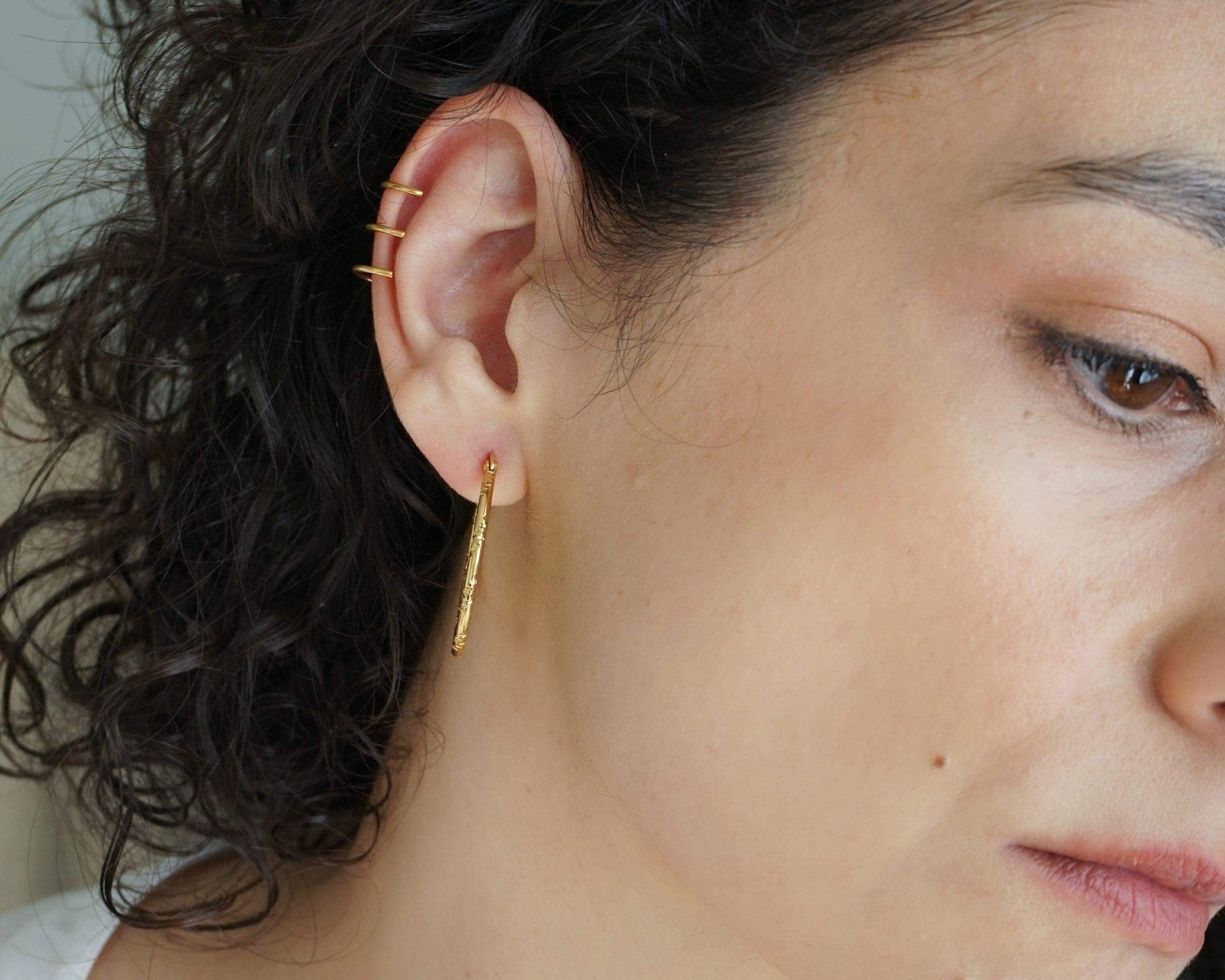 Why limit yourself to stacking just necklaces and rings when you can stack earrings too?! These gorgeous gold hammered hoops are made of stainless steel, perfect on their own for a touch of class or stacked for a modern vibe. From day to night, they'll elevate any outfit. Understated yet stylish, they're lightweight and effortless to wear without weighing down your earlobes. Unique and versatile.