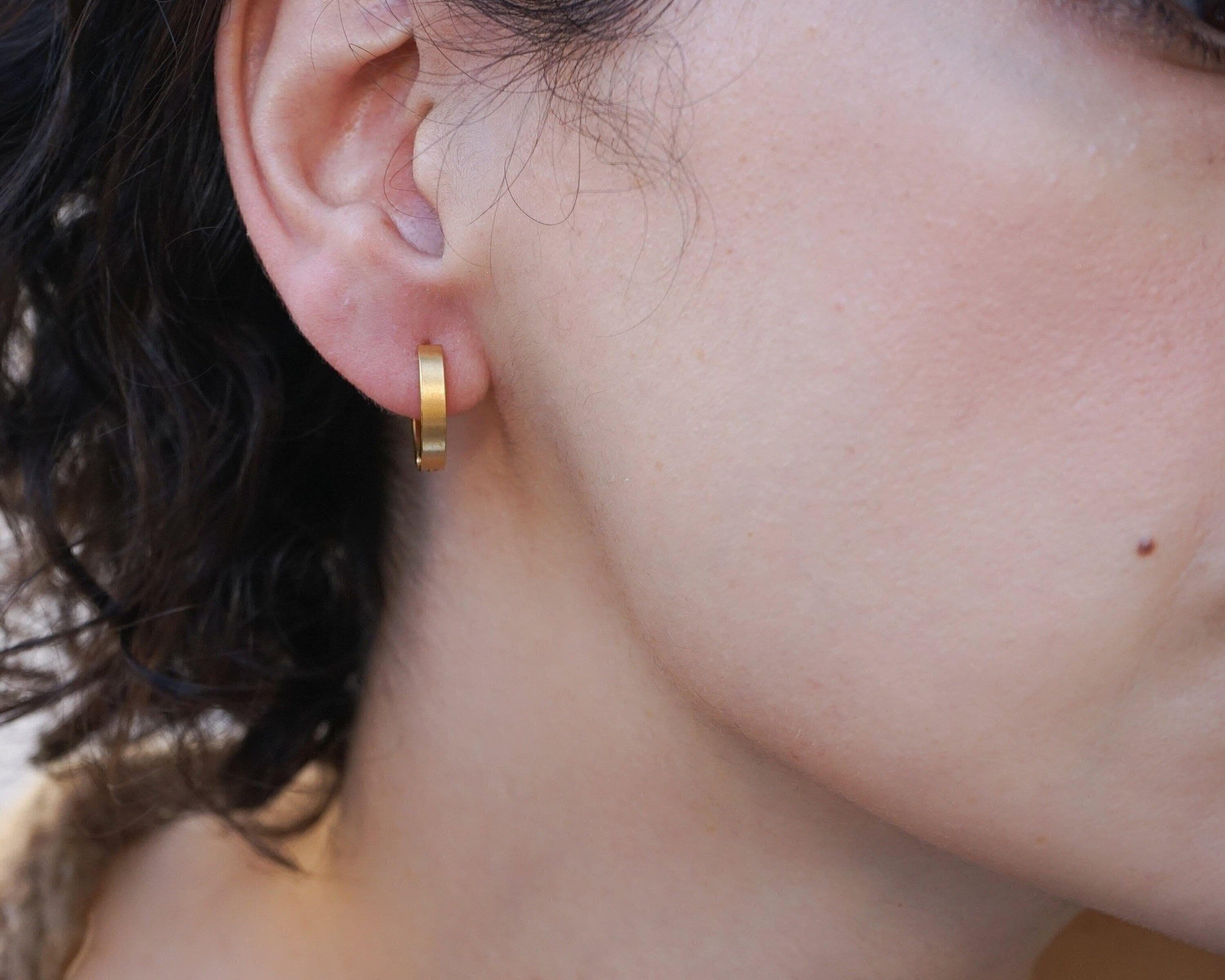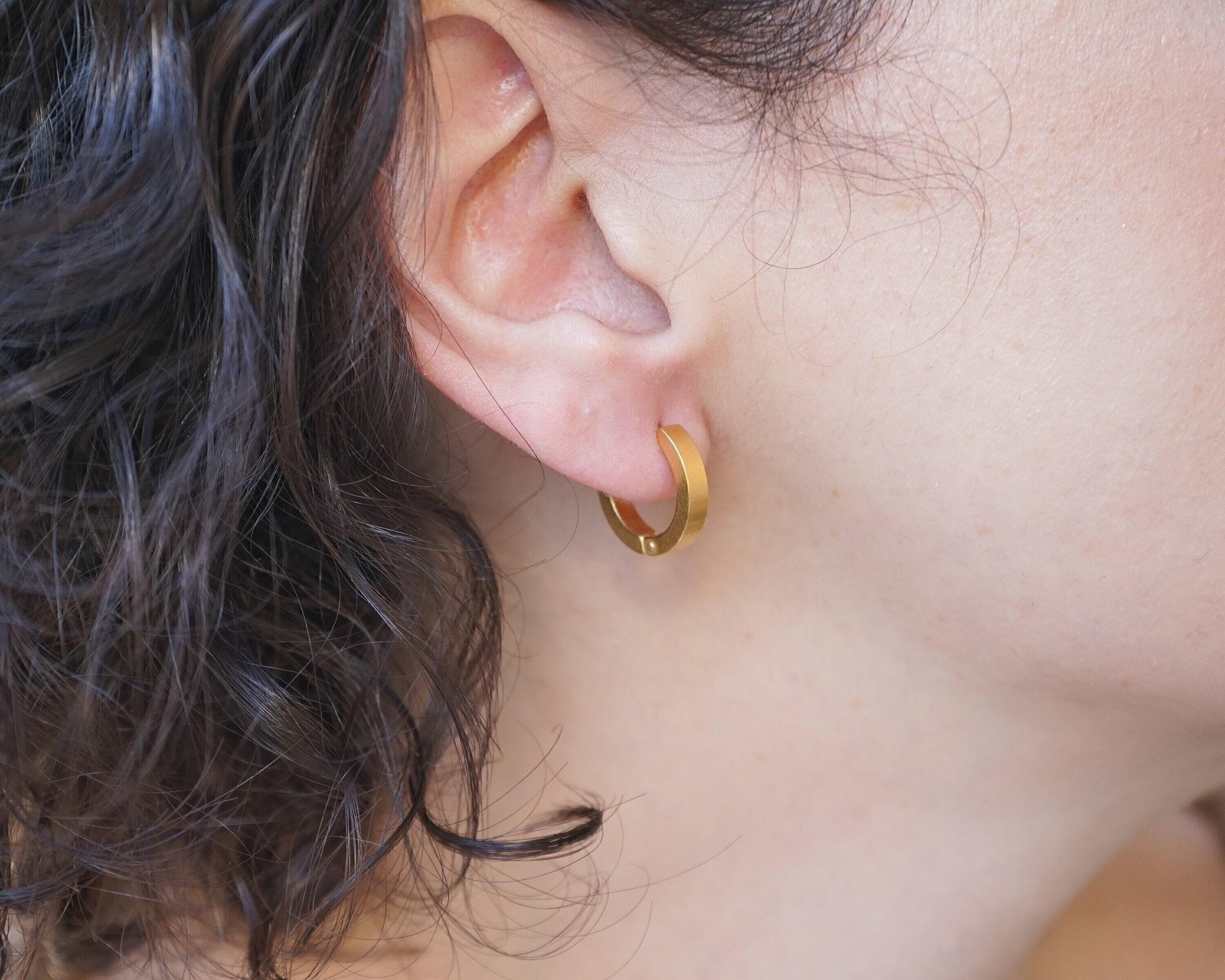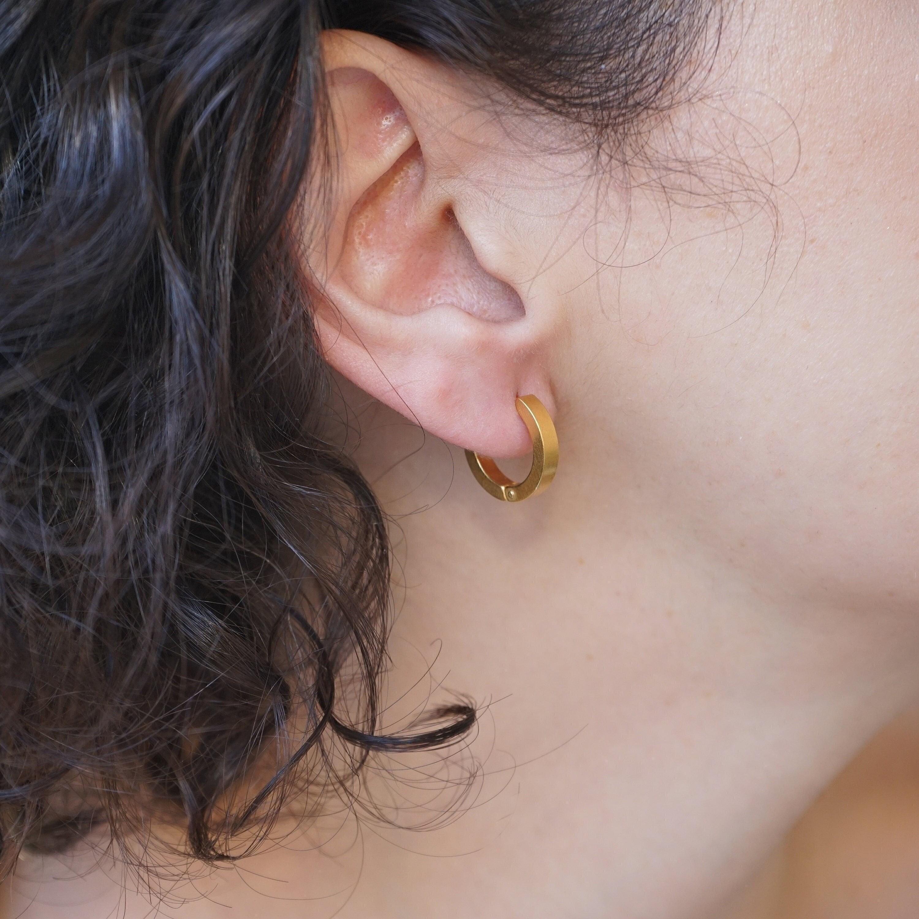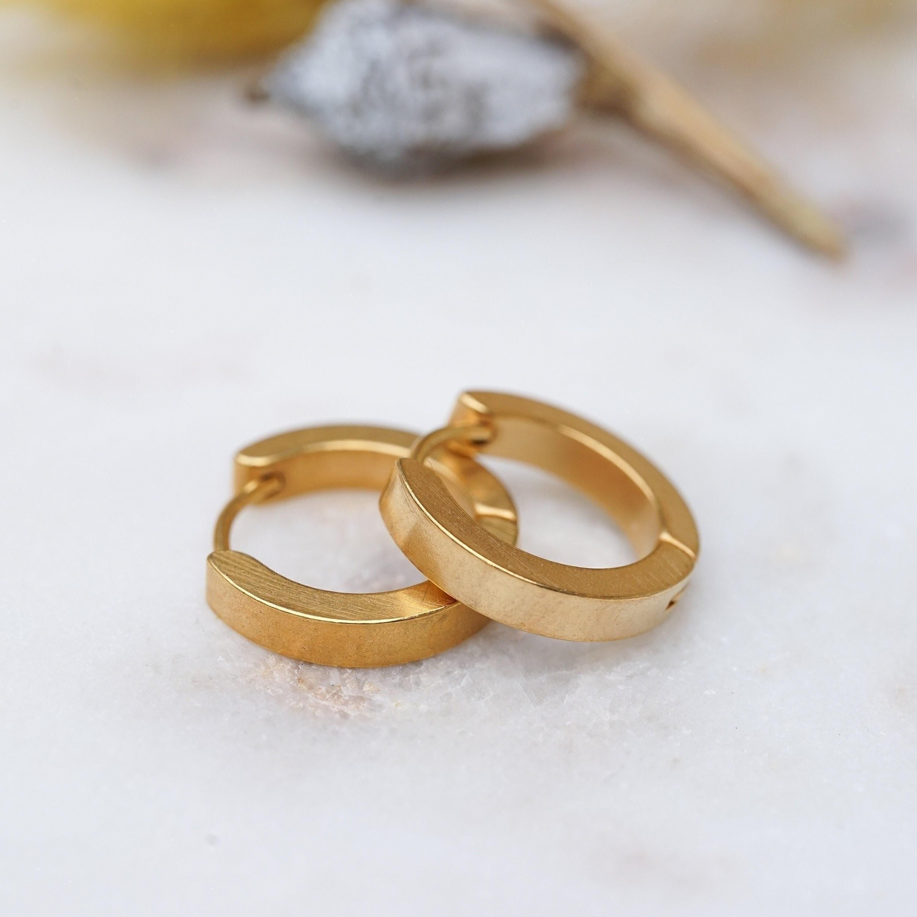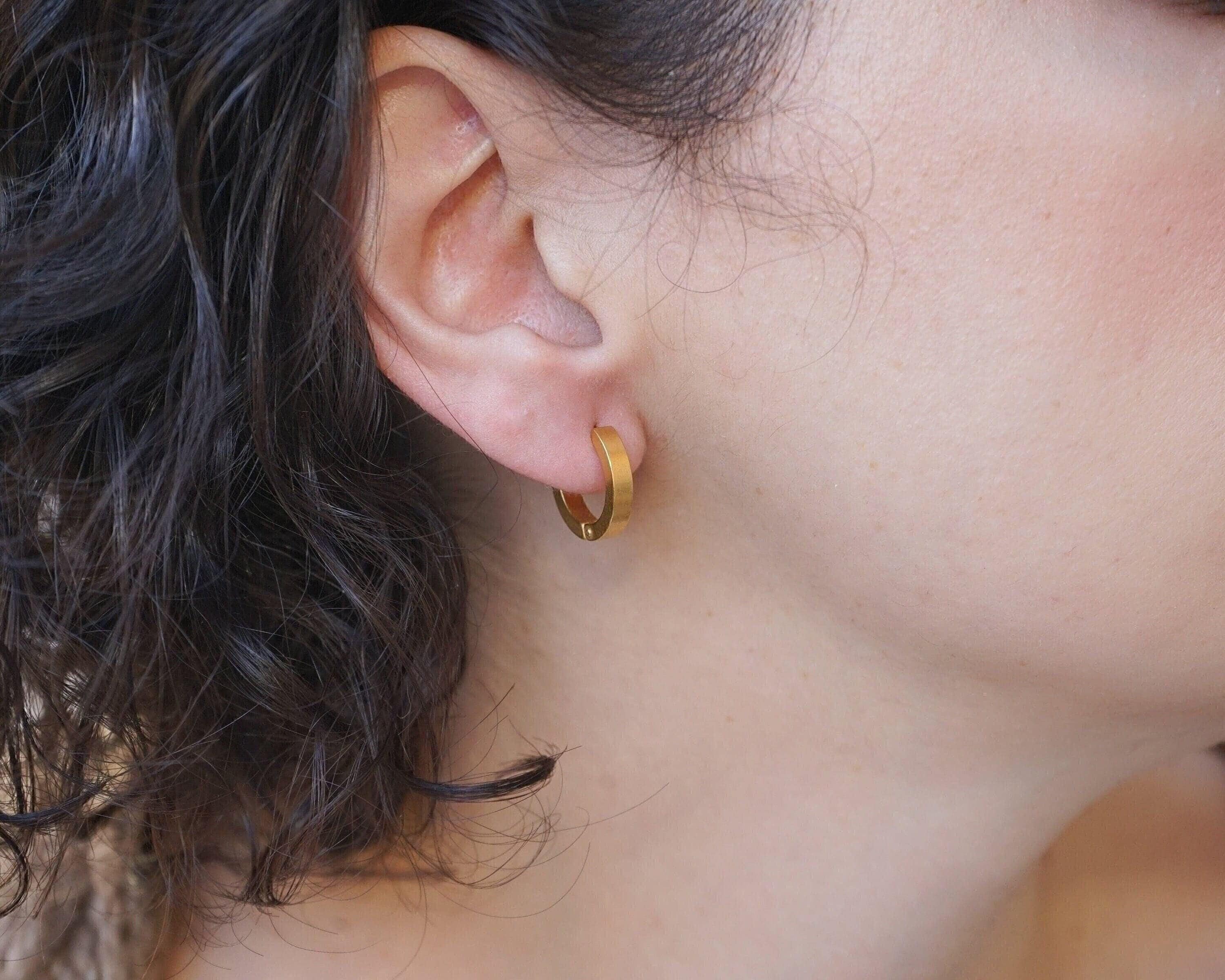 Why settle for just stacking your necklaces and rings when you can also stack your earrings? These beautiful gold hoop earrings are timeless and made of stainless steel with a gold plating. Wear them alone for a sophisticated look or stack them for a modern touch. These versatile earrings can transition easily from day to night and add a touch of elegance to any outfit. They're lightweight and effortless to wear, making them a unique and stylish addition to your collection.