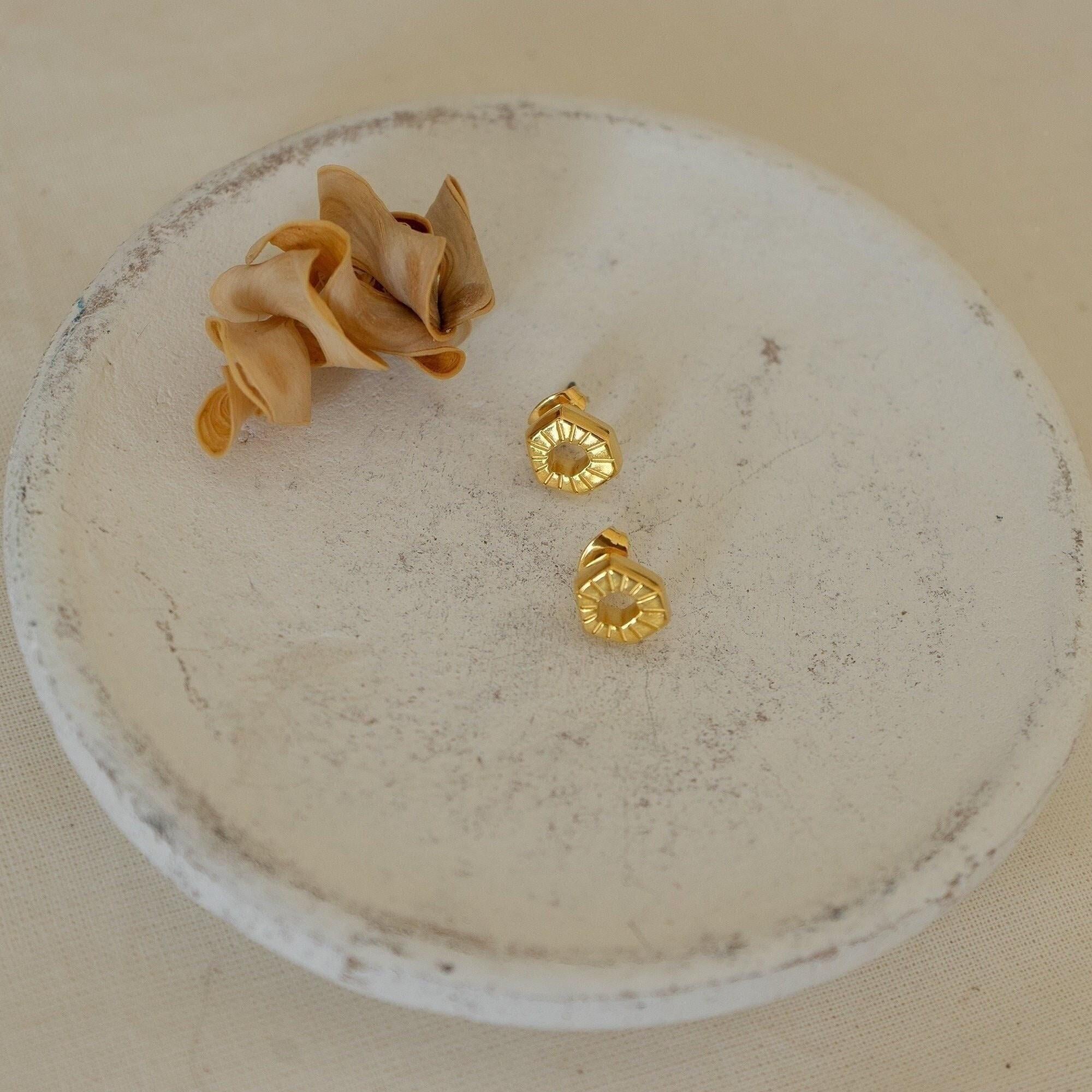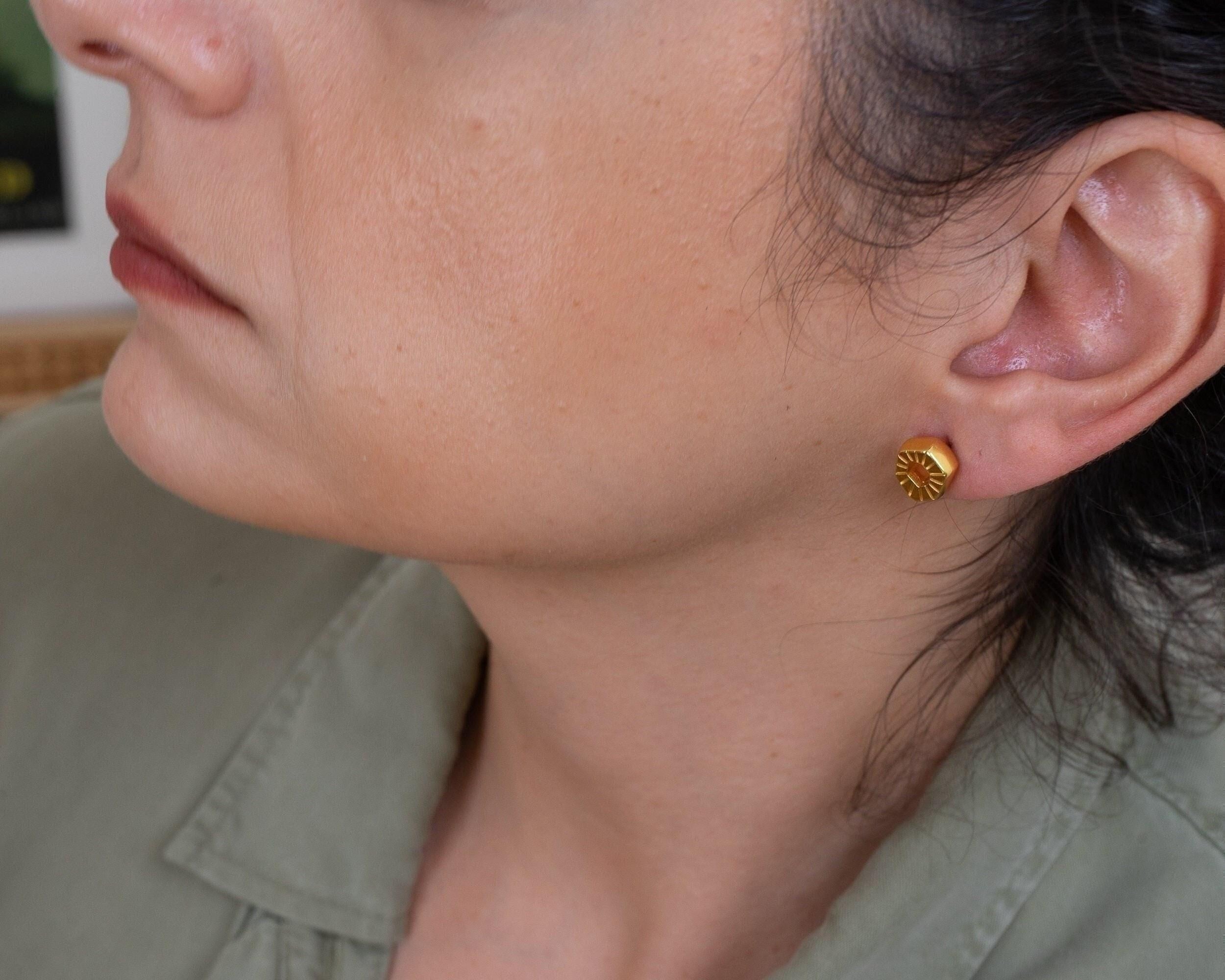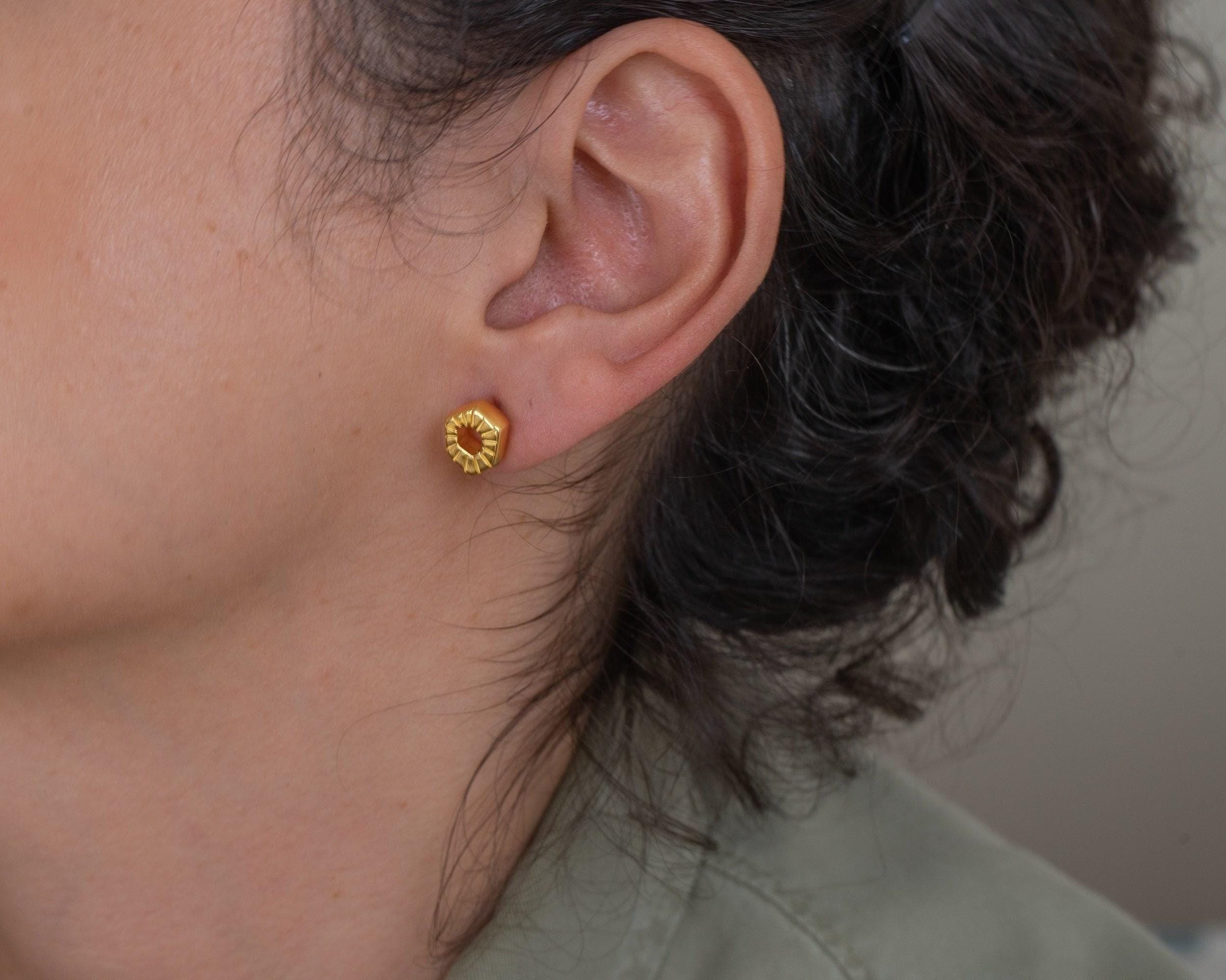 These exquisite Gold Asymmetric Circle Stud Earrings feature a distinct and artistic wavy hammered design. If you strive to adorn yourself with exceptional and significant adornments, these earrings will become your most cherished accessory. With their unparalleled sophistication and delicate charm, these earrings are an effortless yet alluring addition to any jewelry collection.