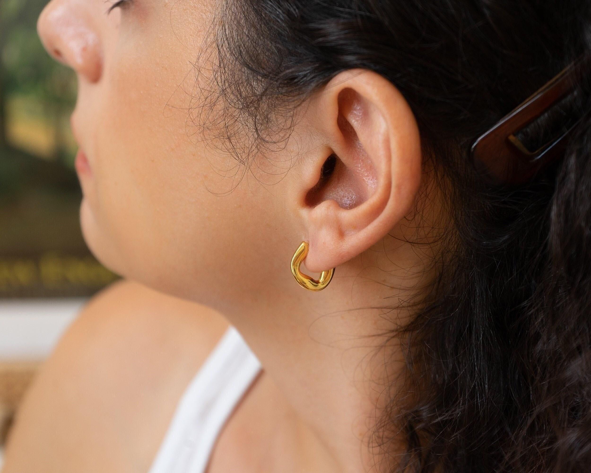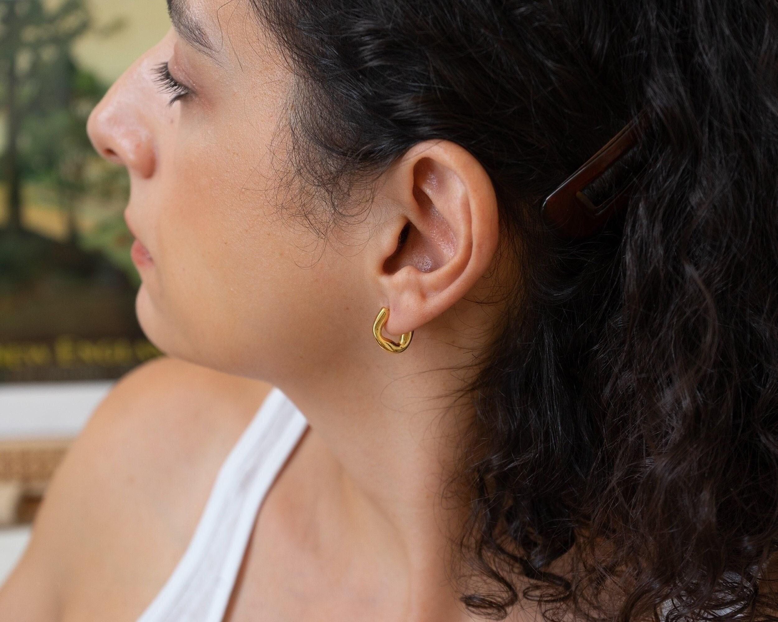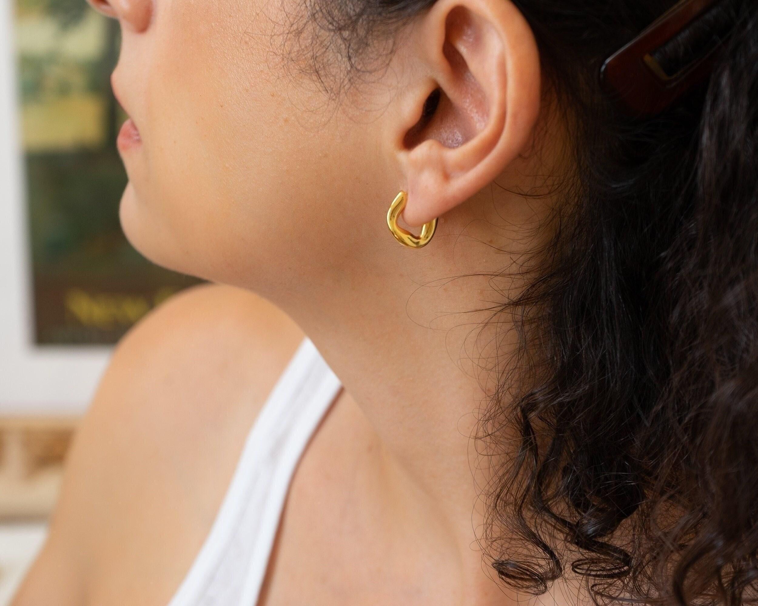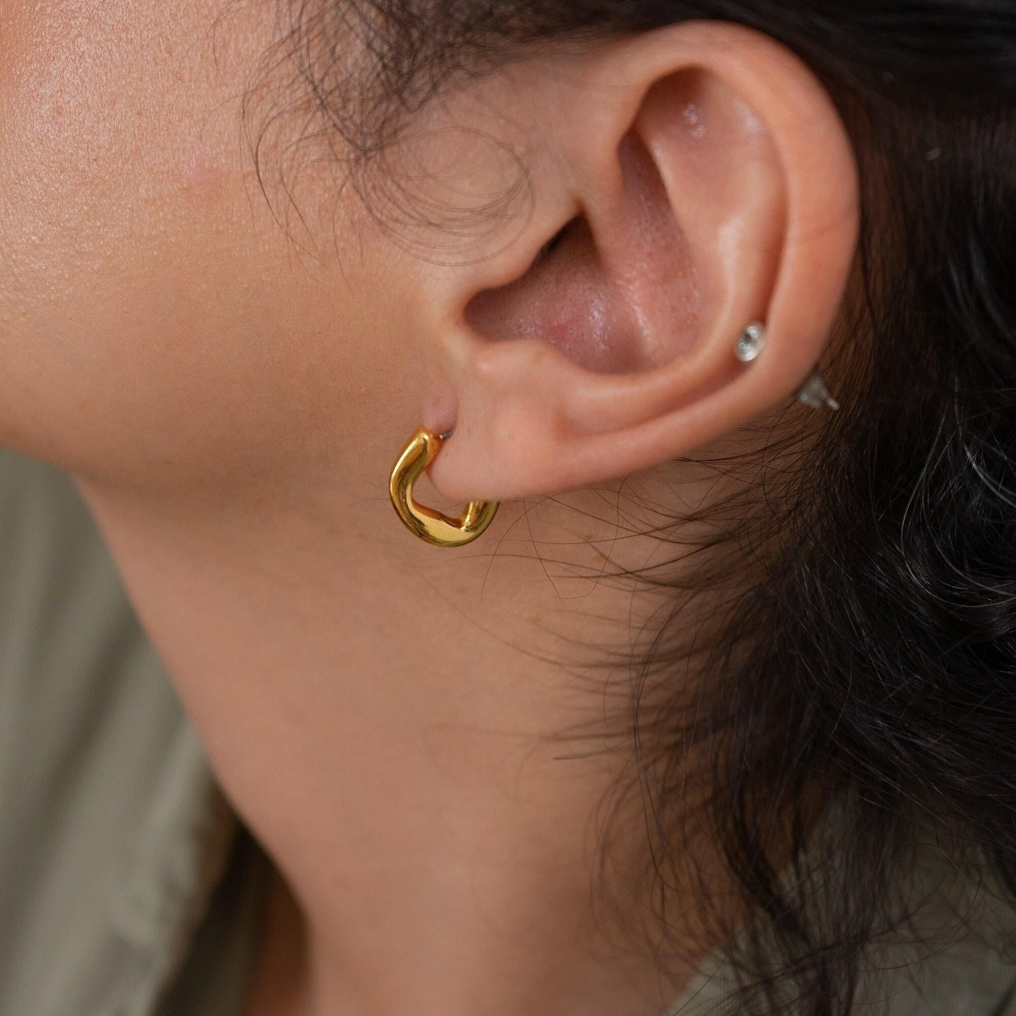 Upgrade your style with our Gold Small Molten Hoops Earrings. Featuring a one-of-a-kind, fluid design, these gold-plated earrings can be worn alone for a sophisticated look or stacked for a modern twist. Day or night, these versatile earrings will elevate any outfit, while the lightweight and effortless design ensures comfort all day long. Add a touch of exclusivity and elegance to your accessory collection.