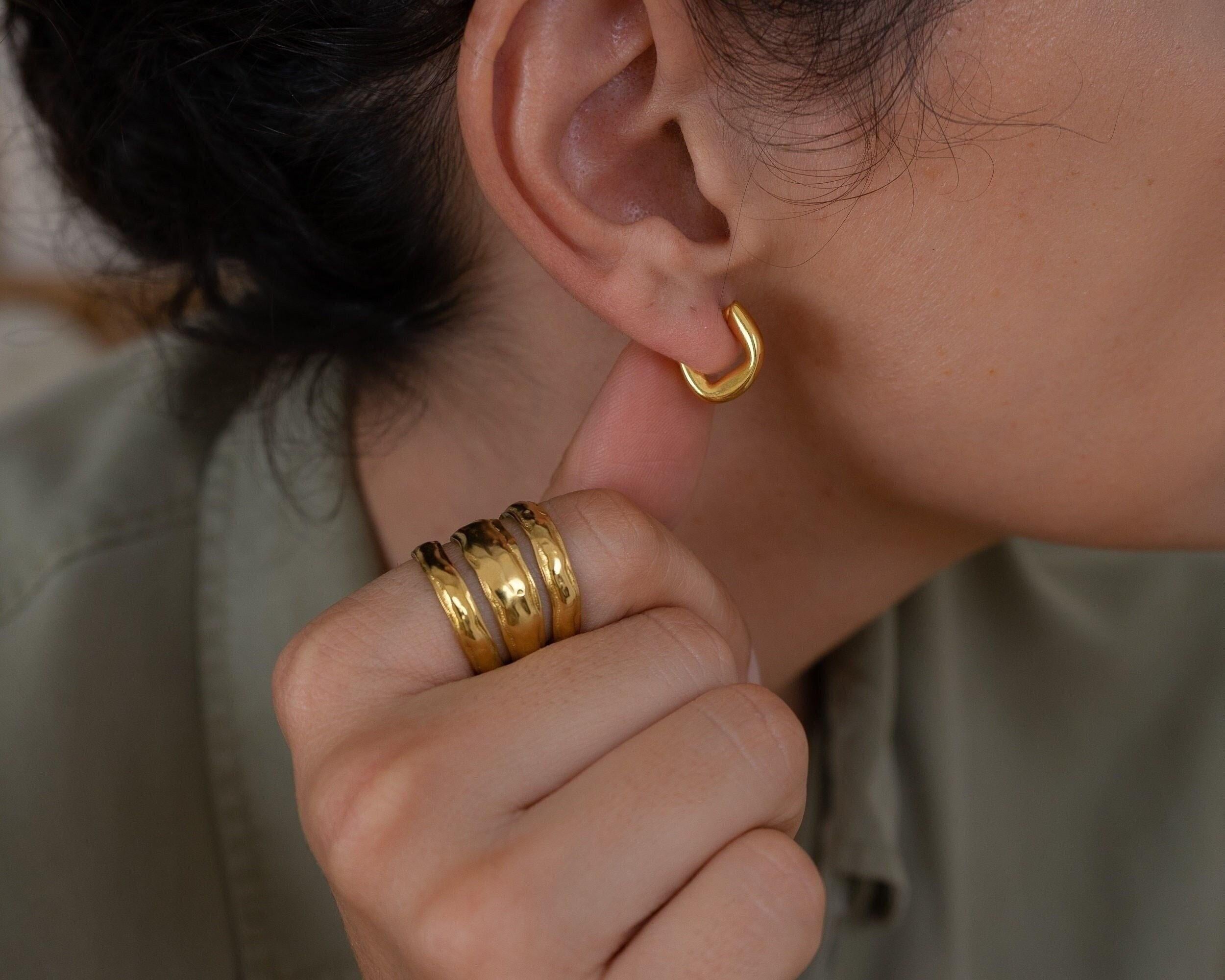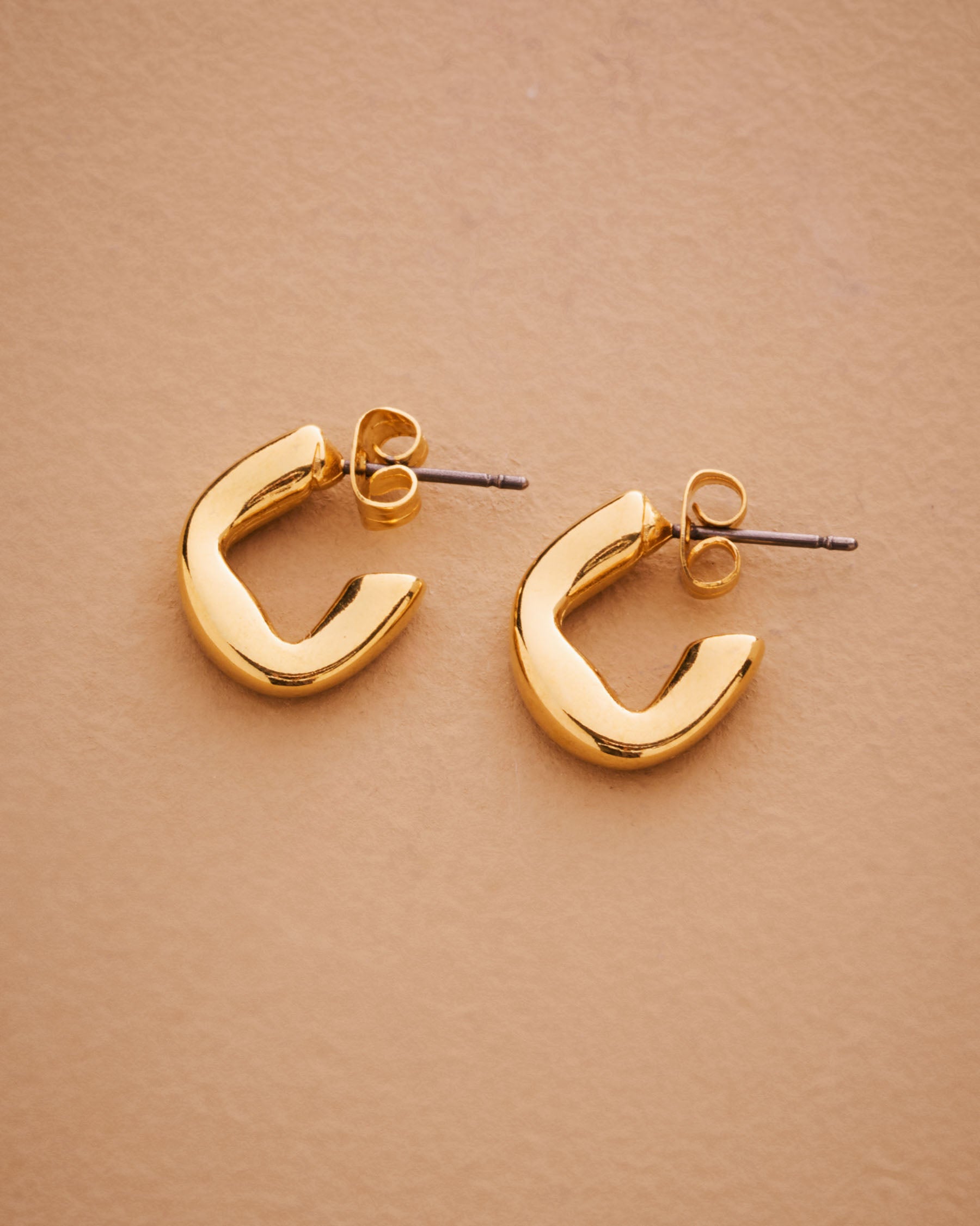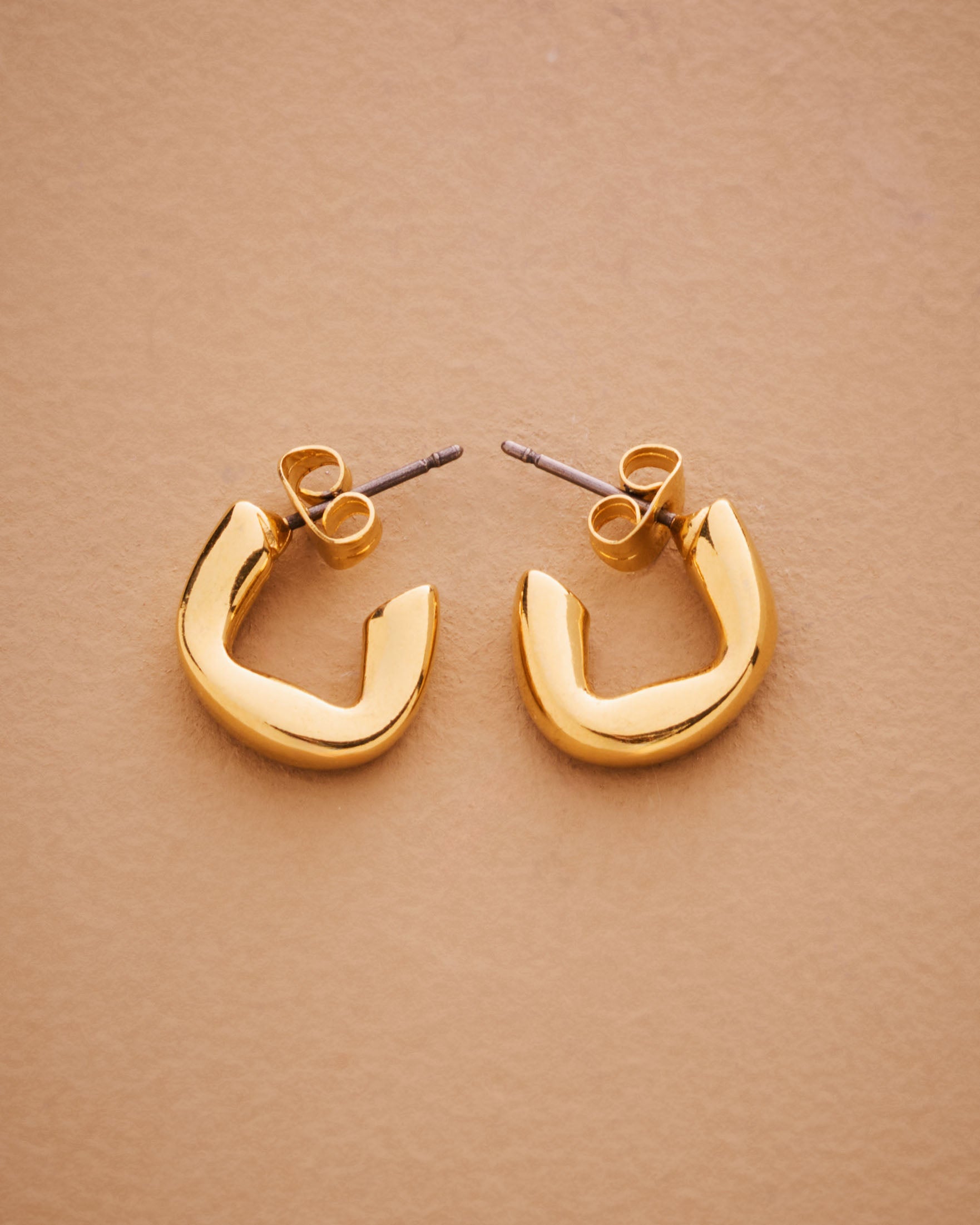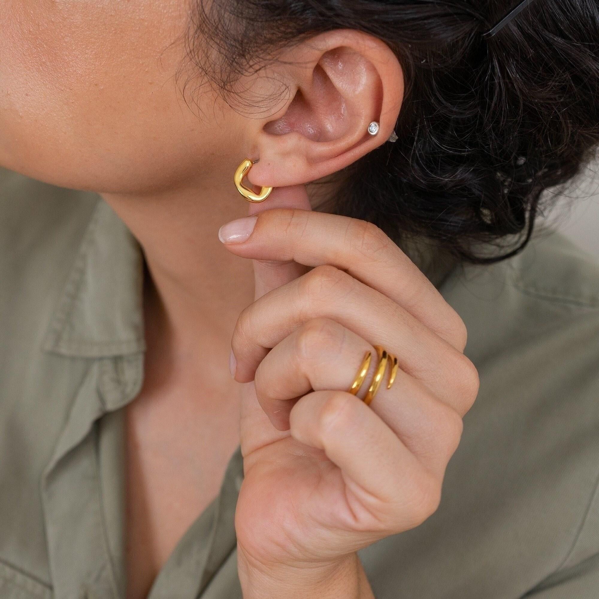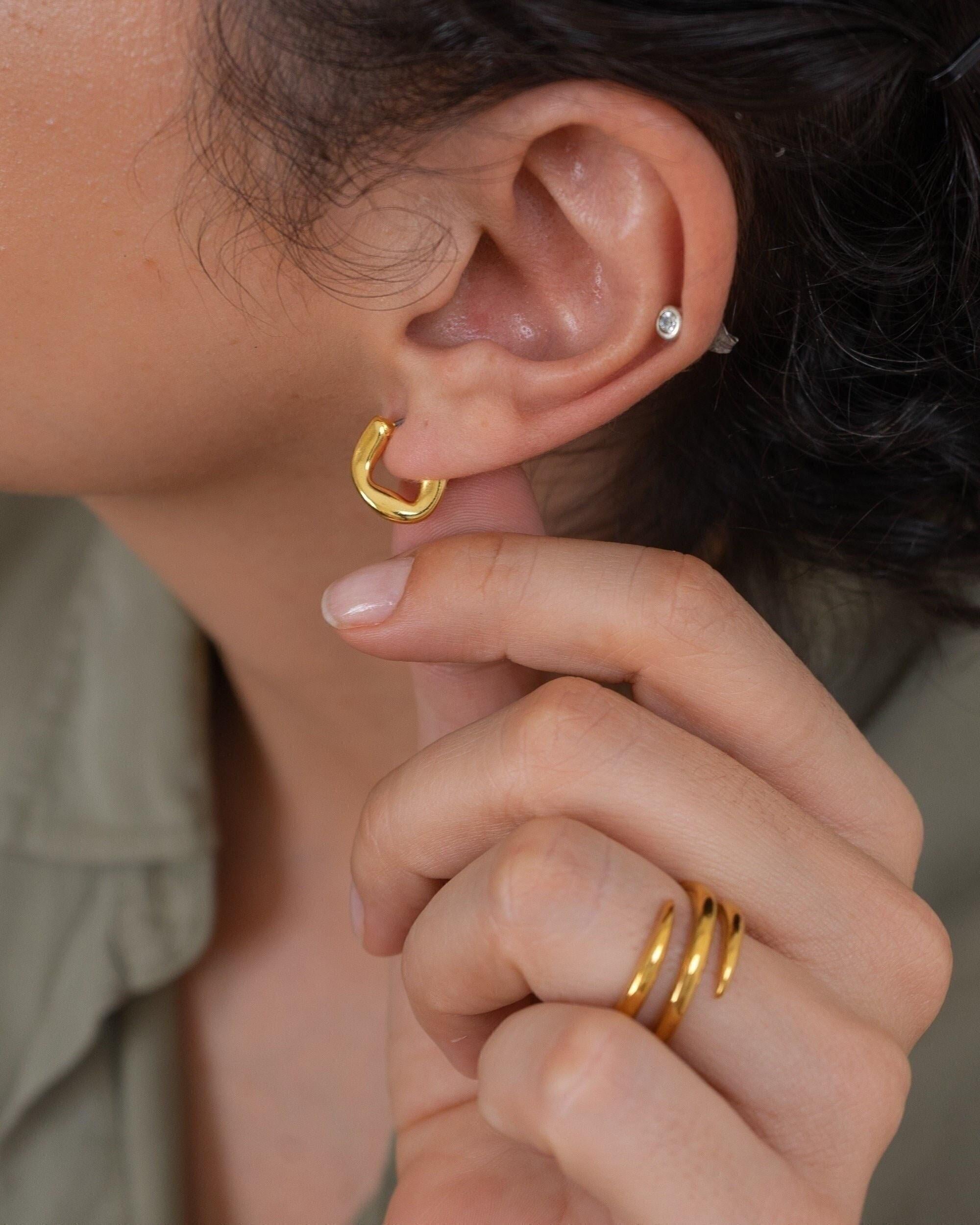 Upgrade your style with our Gold Small Molten Hoops Earrings. Featuring a one-of-a-kind, fluid design, these gold-plated earrings can be worn alone for a sophisticated look or stacked for a modern twist. Day or night, these versatile earrings will elevate any outfit, while the lightweight and effortless design ensures comfort all day long. Add a touch of exclusivity and elegance to your accessory collection.