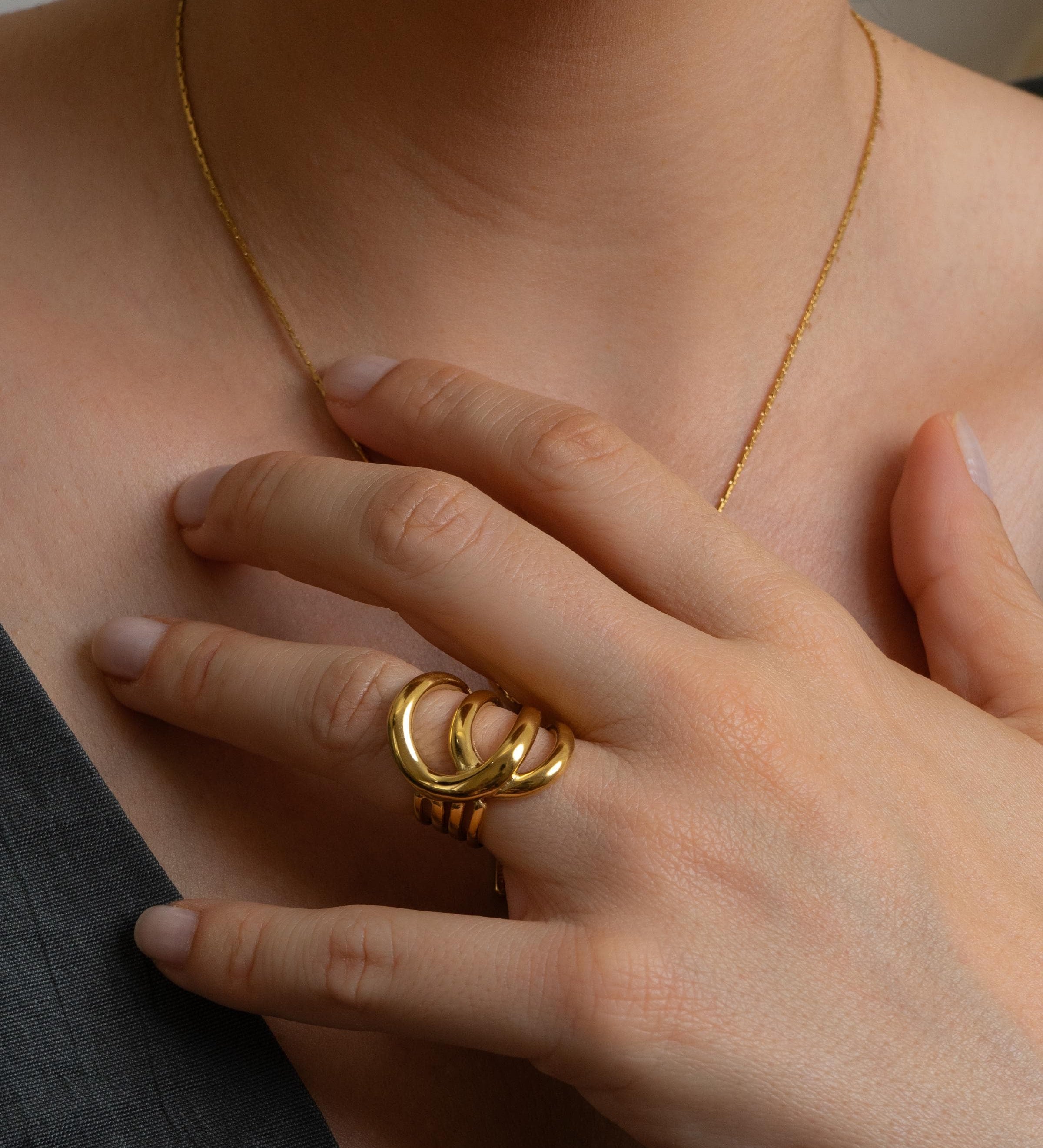 Gold Rectangle White/Orange/Emerald Enamel Ring