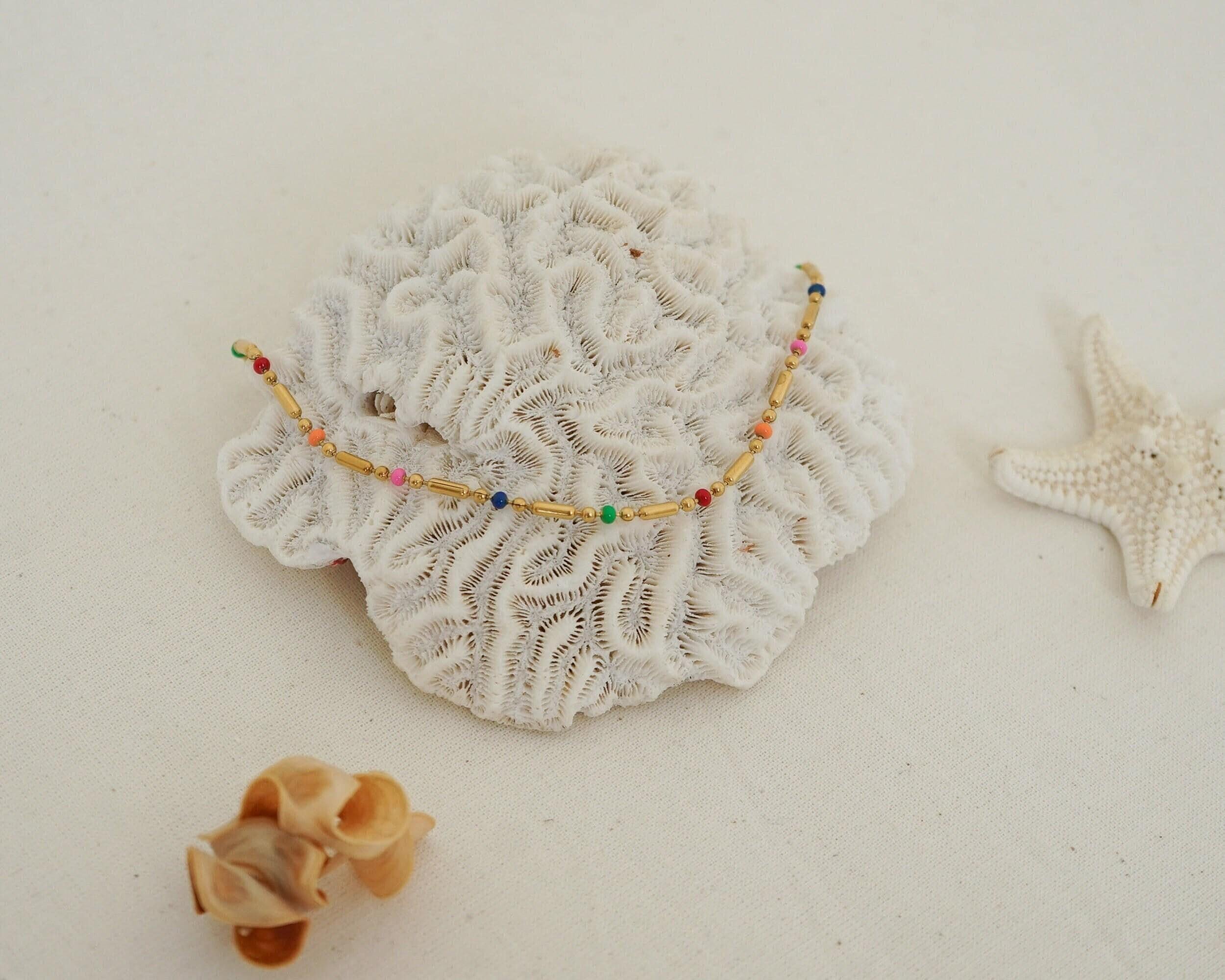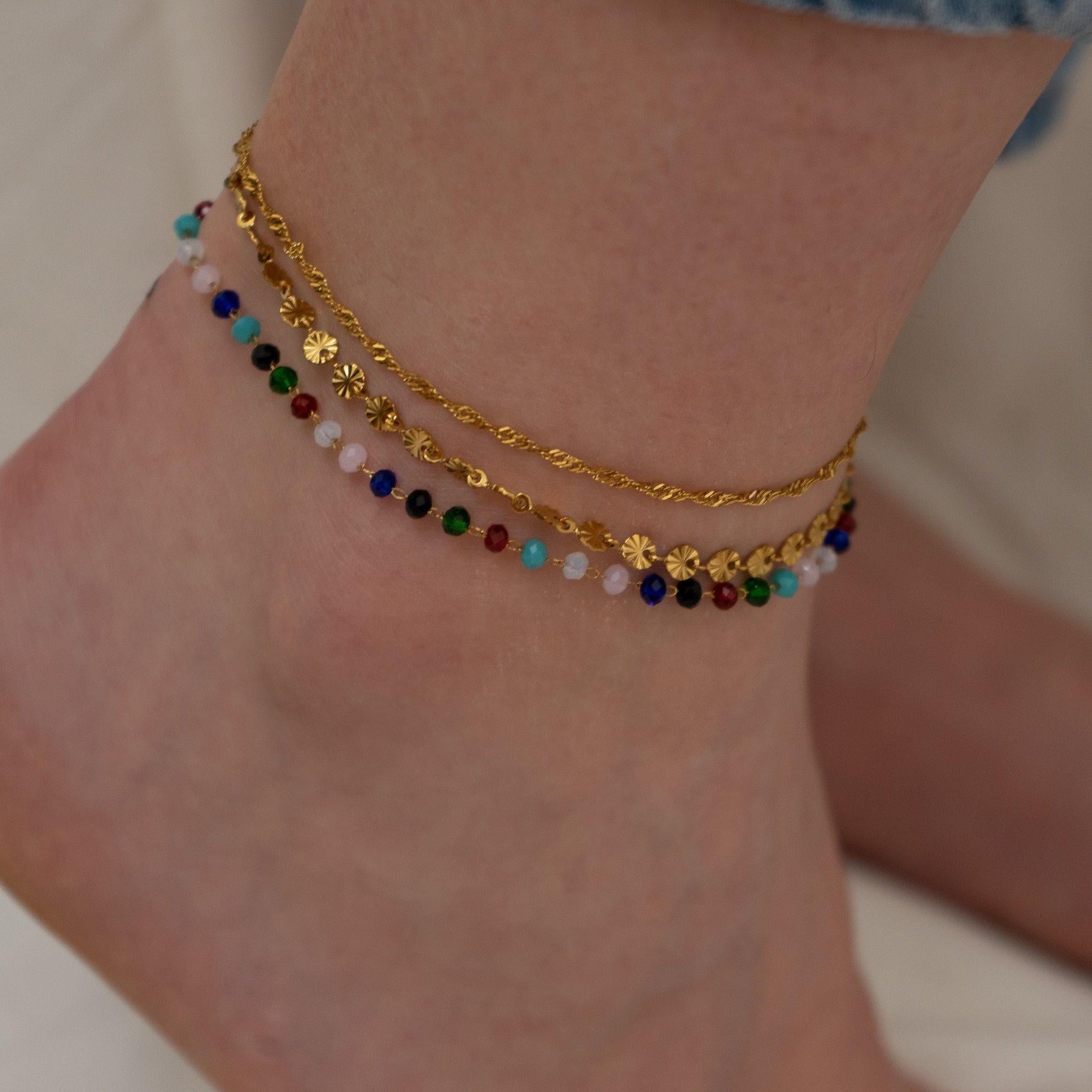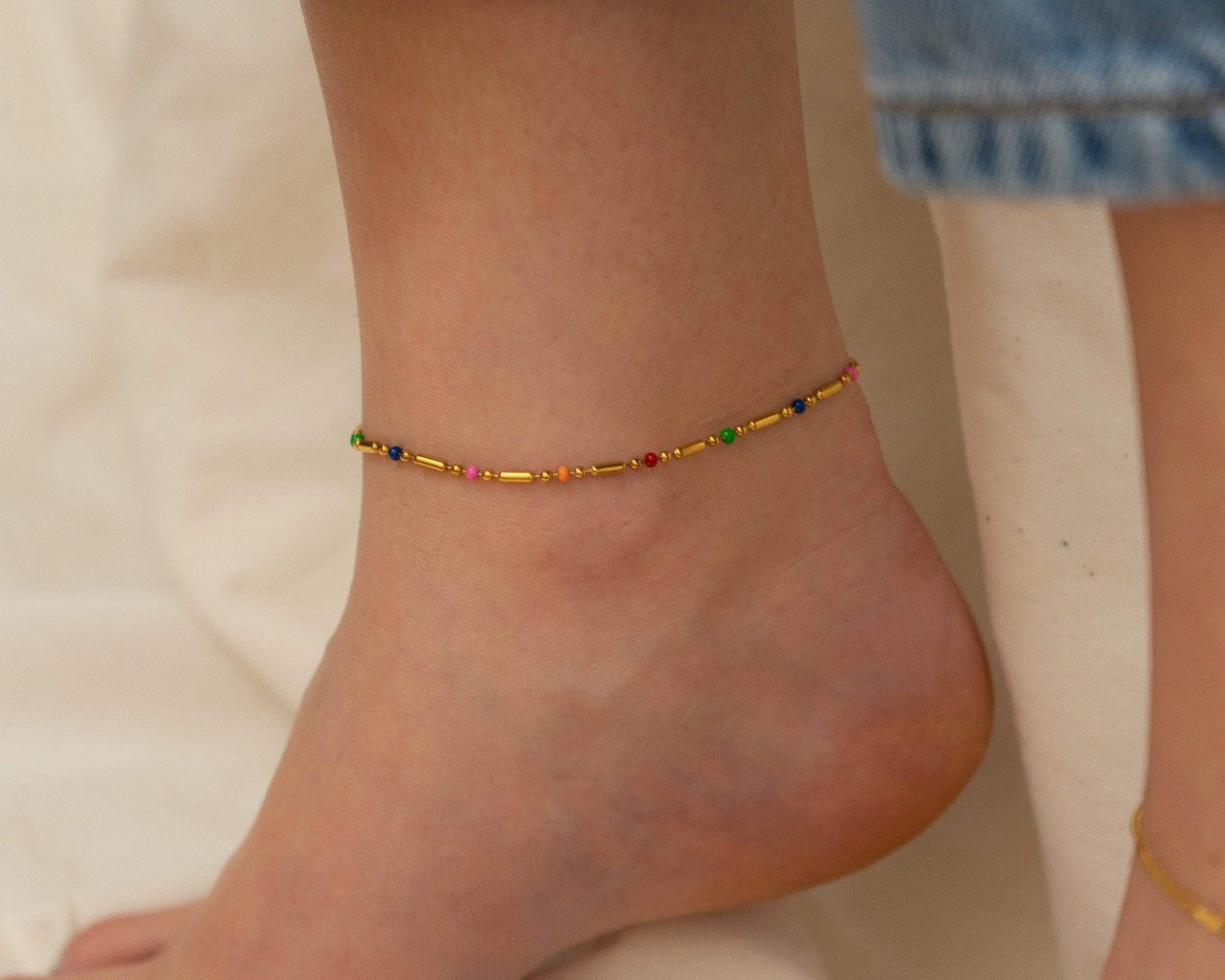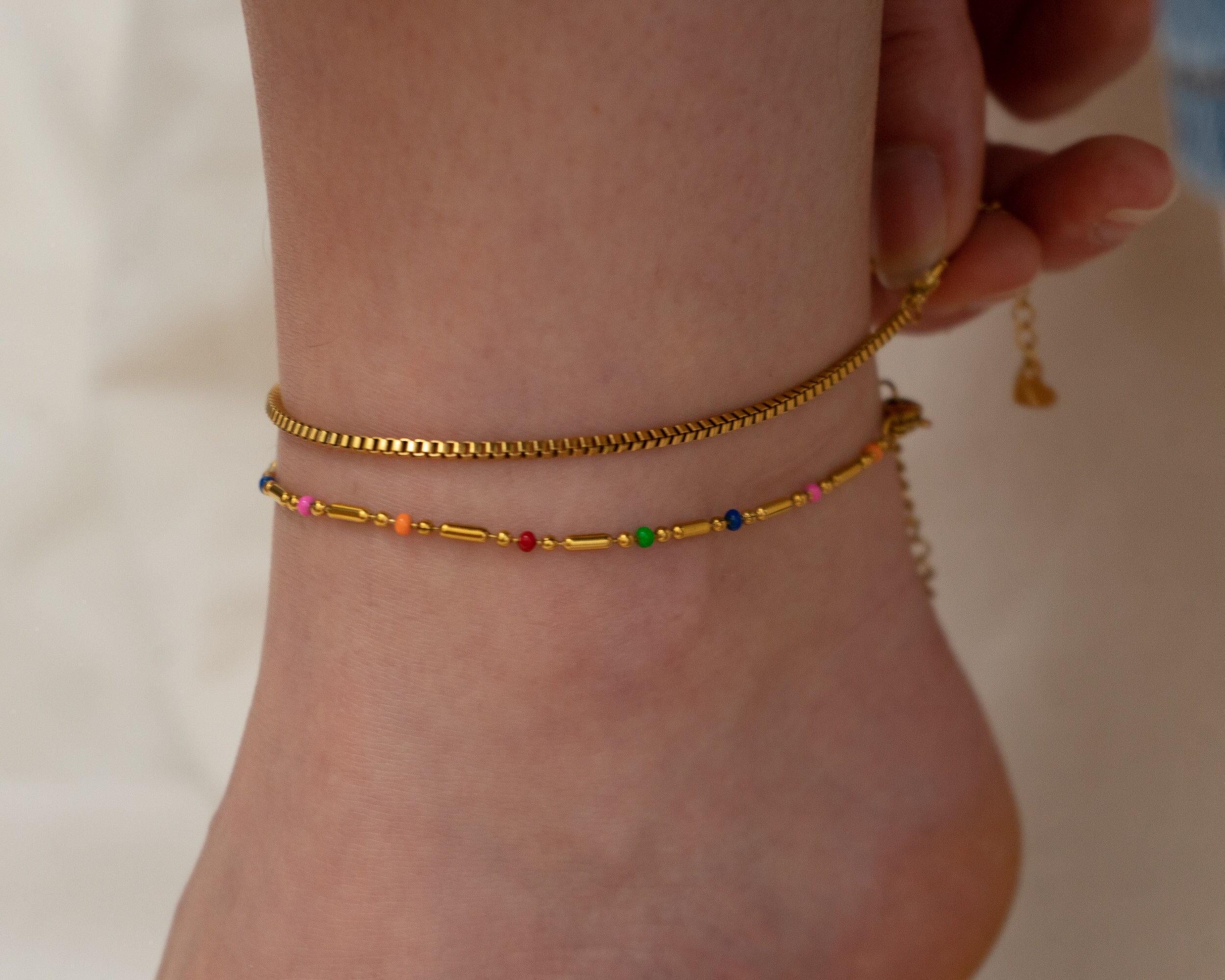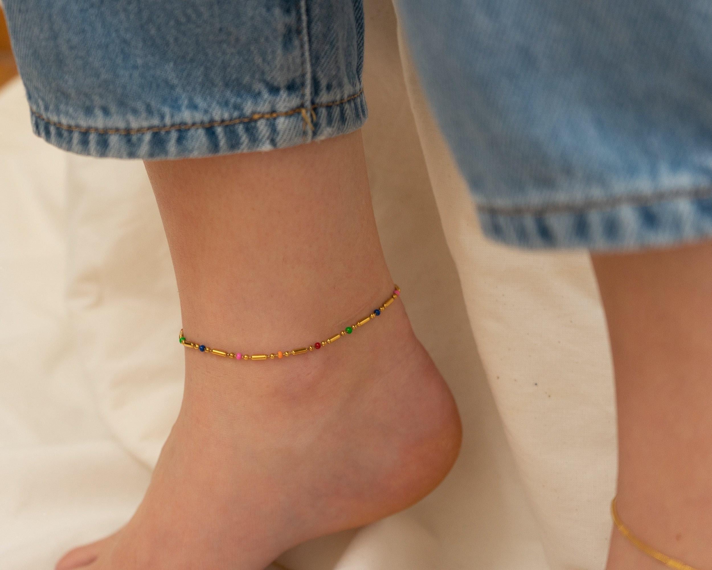 A very stylish and colourful gold GLASS BEADS / OVAL ENAMELED Beads anklet bracelet, made from stainless steel. Durable, waterproof and fashionable. Available in two different designs. Mix and match them together or with the other designs from our new anklet collection. https://etsy.me/3OZvaHP