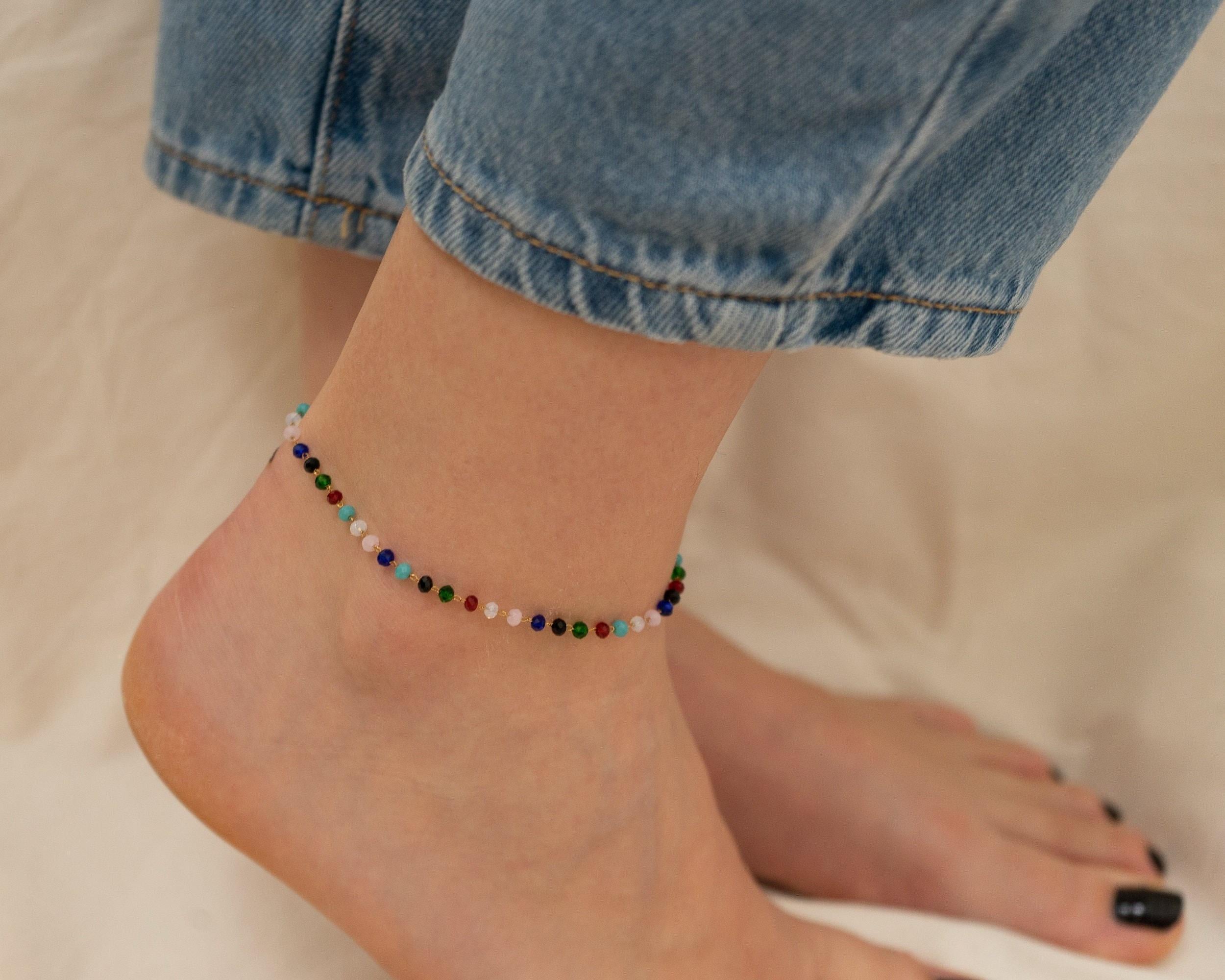 🏝 Introducing our exquisite collection of anklet bracelets. 🏝 Our anklets are designed to adorn your ankle with grace and style. Their premium materials ensure durability and a luxurious feel, allowing you to wear your anklet with confidence for years to come. Whether you're strolling along the beach or attending a special event, our anklet bracelets are designed to be the perfect finishing touch to any ensemble. Made from Stainless Steel. GLASS BEADS anklet: Length 0.94in. (24cm) + 0.15in. (4cm) chain extender BALL-OVAL BEADS anklet: Length 0.9in. (23cm) + 0.11in. (3cm) chain extenderGIFTS OF LOVE All of our jewelry come gift wrapped with love, even if you purchase it for yourself. If this is a gift we can make it even more special. Just let us know with a comment at the checkout or a message. CUSTOMIZE TO YOUR LIKING Most of our designs can be customized to your preference in size, color or even style. If you desire any alteration feel free to contact us. If you require a major alteration you must contact before placing an order. MADE WITH LOVE Our metal components are made from silver/gold/rose gold plated zamak and stainless steel unless stated otherwise. All our metals are lead free and nickel free. Zamak is a high quality alloy with a base metal of zinc and alloying elements of aluminium, magnesium, and copper. It is a hypoallergenic material that gets dipped in silver and gold. We use the finest quality of leather, faux leather, silk, cotton elastic string and crystals to make high quality, safe and durable jewelry. Please note that color and size of products may vary slightly as we use semi precious stones and metal casting products which are not all exactly the same. Many of the semi precious stones and the gemstones are being coated to improve their natural color and luster. This is a common practice in the cutting and treatment of the gemstones and it doesn’t lower their quality. Avoiding contact with any chemicals, strong perfumes or water will help you preserve their beauty. All natural stones are subject to natural inclusions and vary slightly in colour and cut.CARE INSTRUCTIONS All metal tarnish over time, even pure silver. Gold/silver plated findings (charms, pendants, clasps, beads, chains, jump rings etc) may tarnish if they are exposed to humidity for an extended time, or if they get in contact with alcohol, which is found in perfumes. To preserve longevity, store your jewelry in a dry place and avoid spraying perfume or alcohol based body lotion near them. SHIPPING All orders are shipped from Athens, Greece via ELTA postal service, packed in protective bubble mailers. We use International and Domestic Priority Mail. Delivery times depend on delivery times within the destination country, as determined by the Postal Service of each country. REFUNDS, EXCHANGES AND CANCELATIONS: A mistake on our part will be refunded 100% along with all shipping costs. If for any reason you are not happy with your purchase, we will gladly accept returns or exchanges. If you want to return any item, please contact us before posting it. Buyers are responsible for the shipping costs of the returned item. Please note that shipping costs are not refundable. GET TO KNOW US Lets connect on your favourite social platform: - Instagram: @houseofasterodea, http://bit.ly/2JAKASW - Facebook: fb.me/HouseOfAsterodea - Pinterest: www.pinterest.com/ houseofasterodea