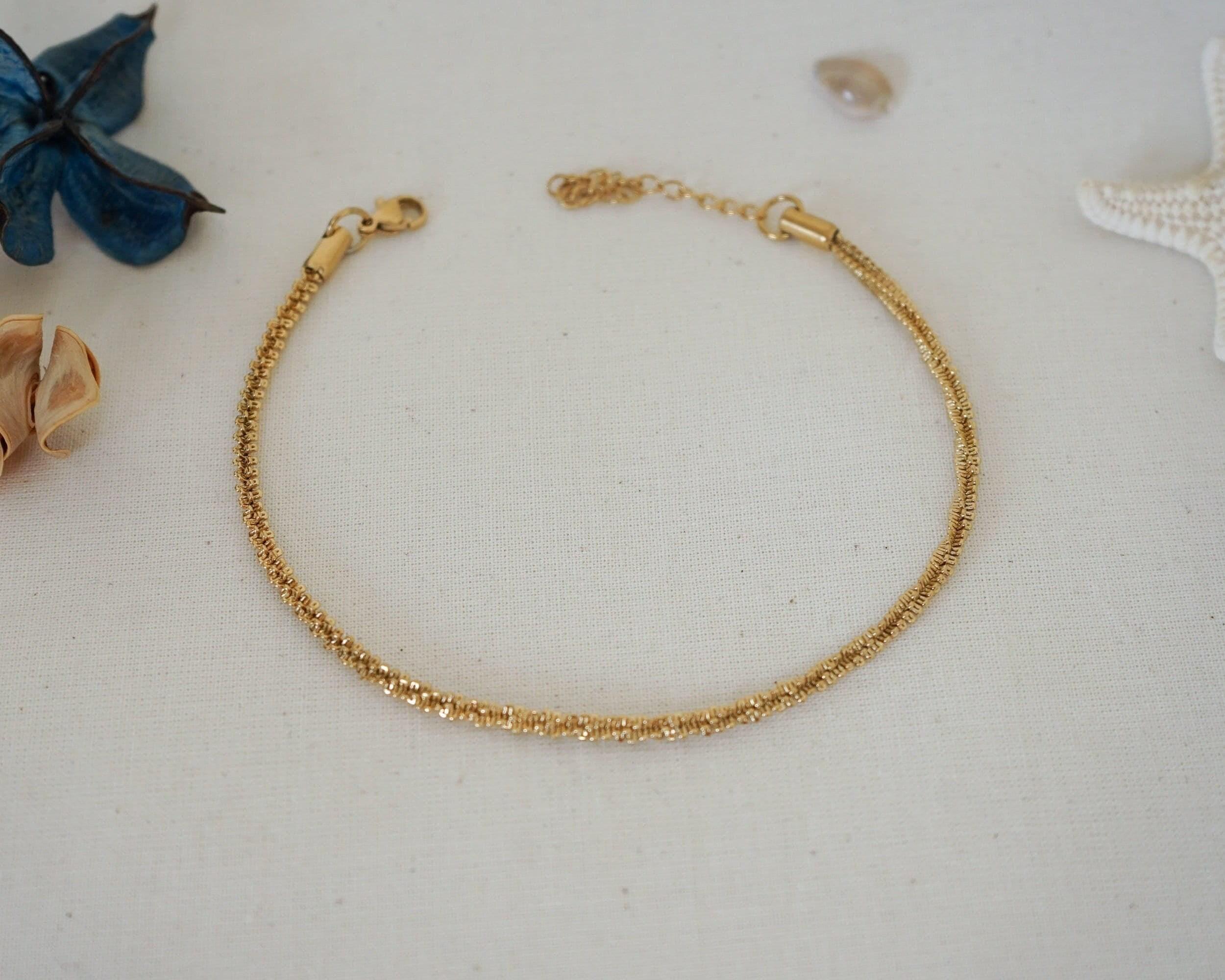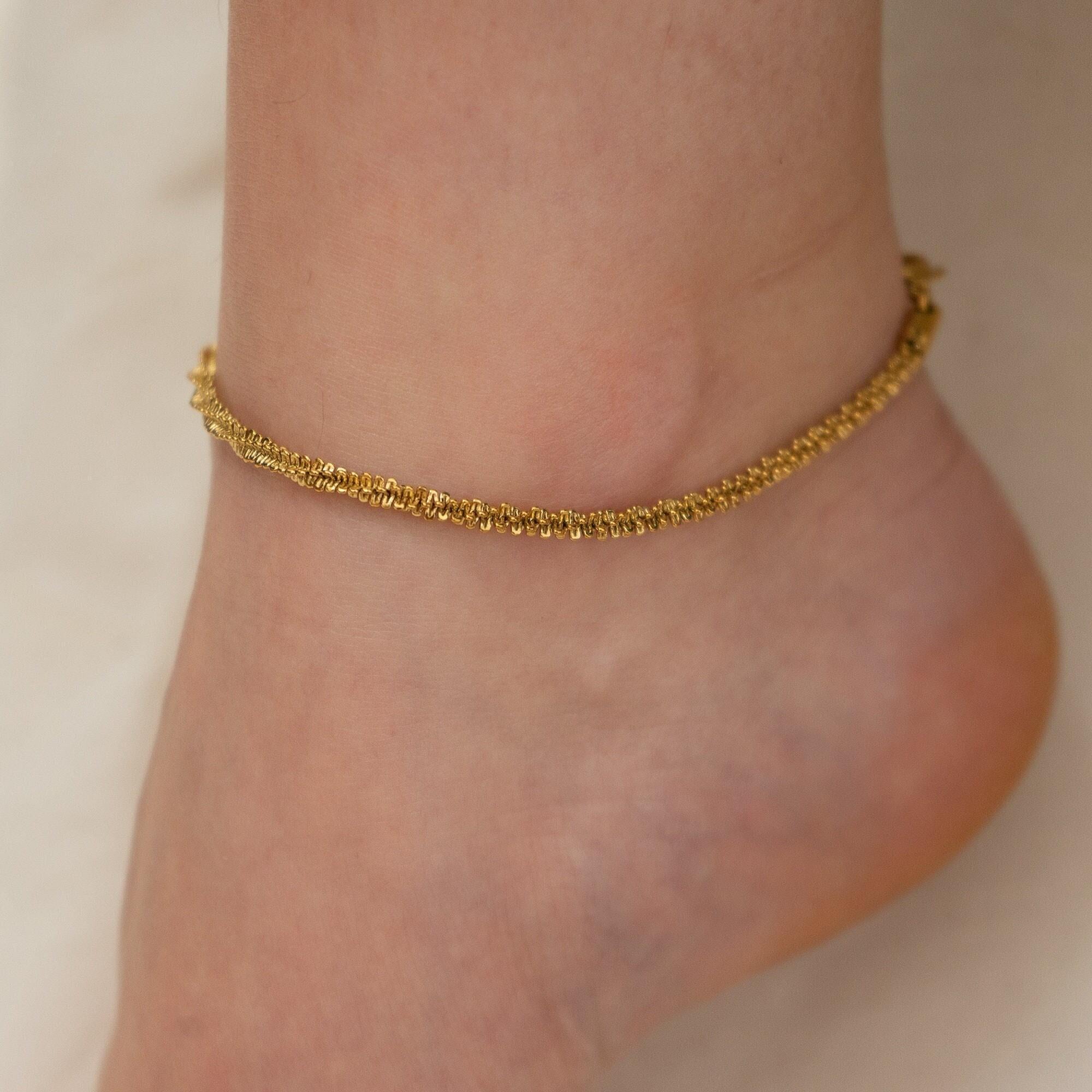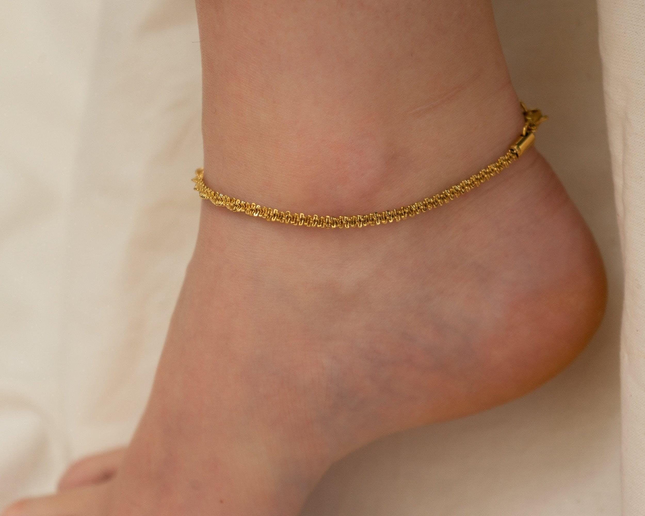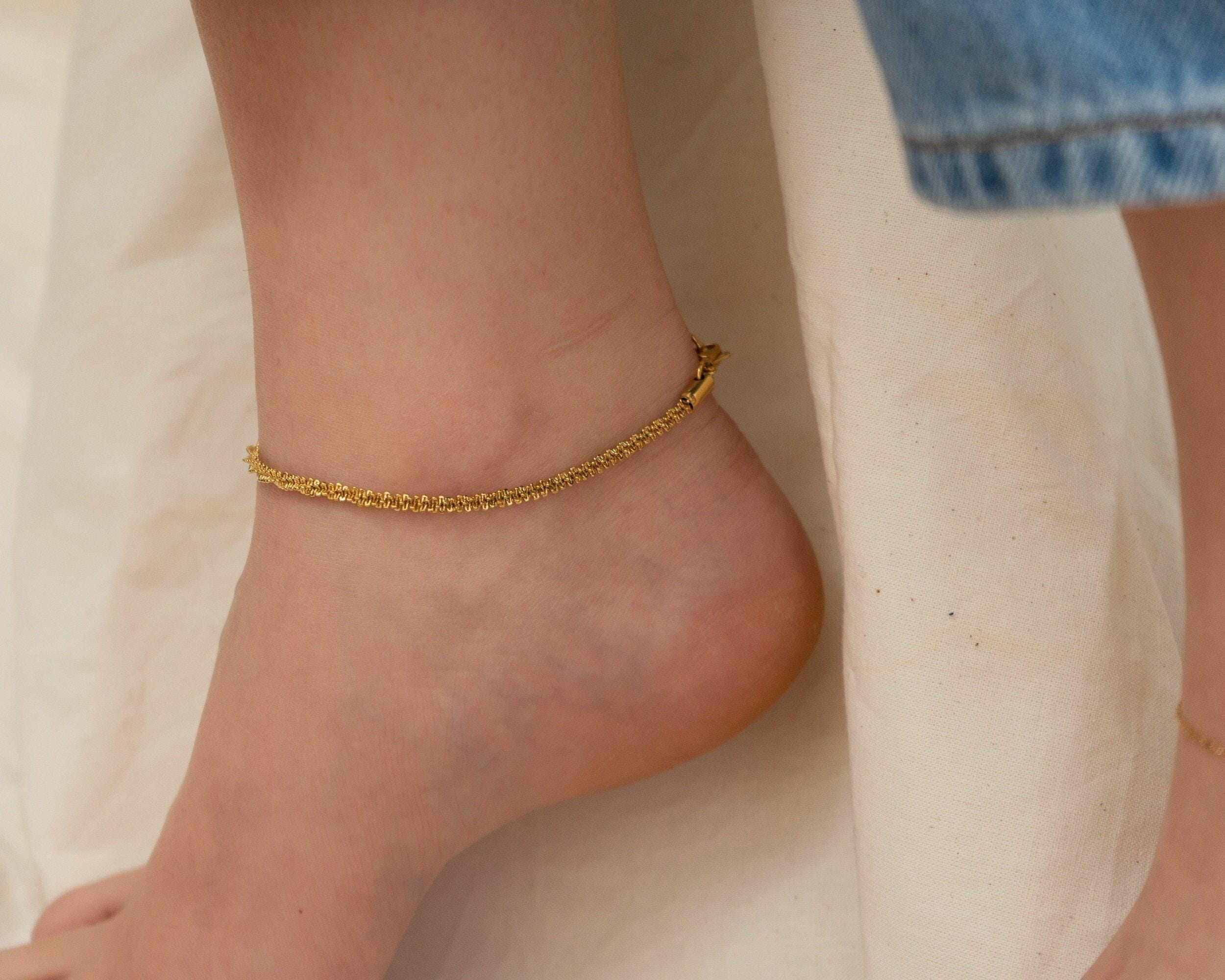 A very stylish gold POP-CORN chain anklet bracelet, made from stainless steel. Durable, waterproof and fashionable.🏝 Introducing our exquisite collection of anklet bracelets. 🏝 Our anklets are designed to adorn your ankle with grace and style.