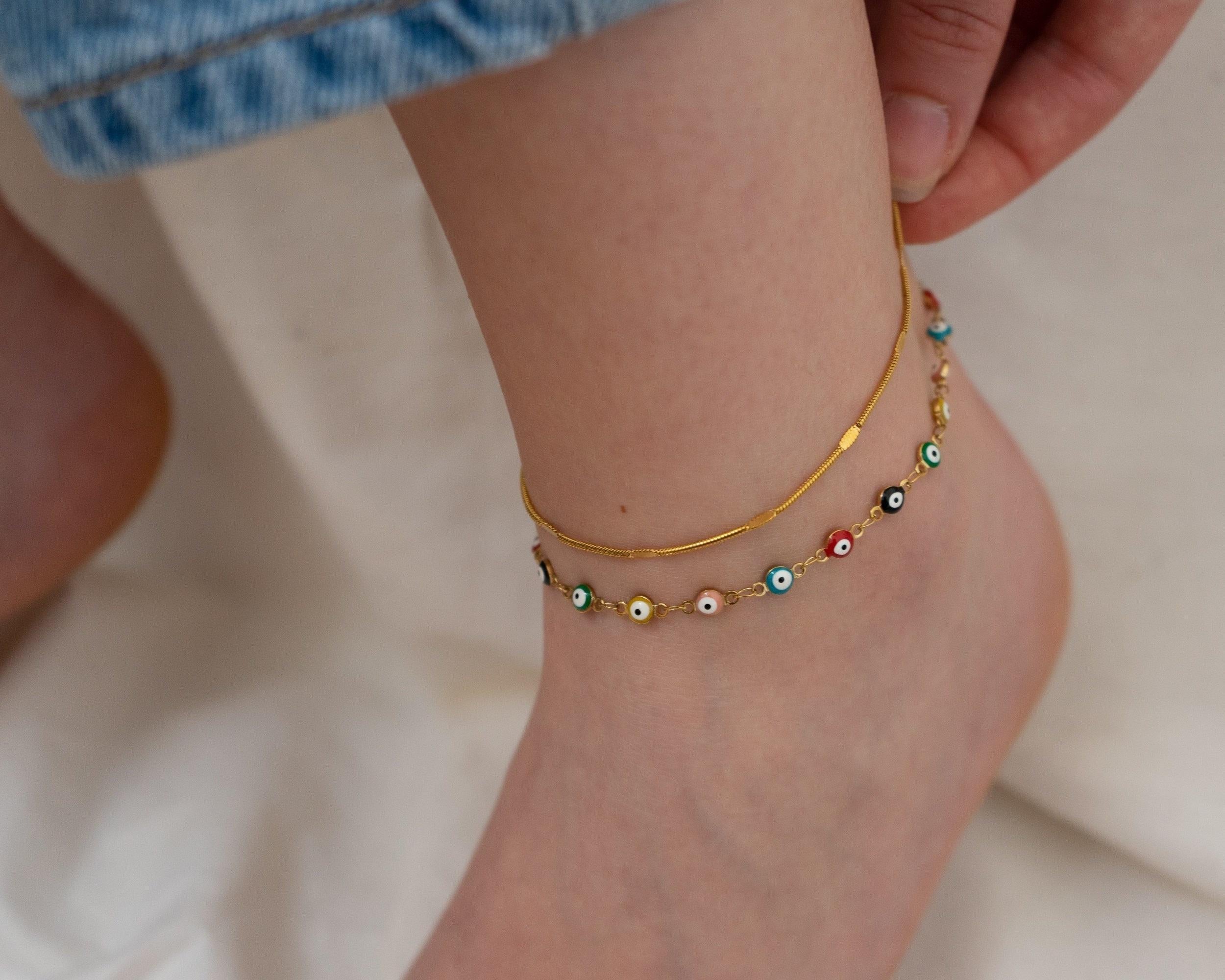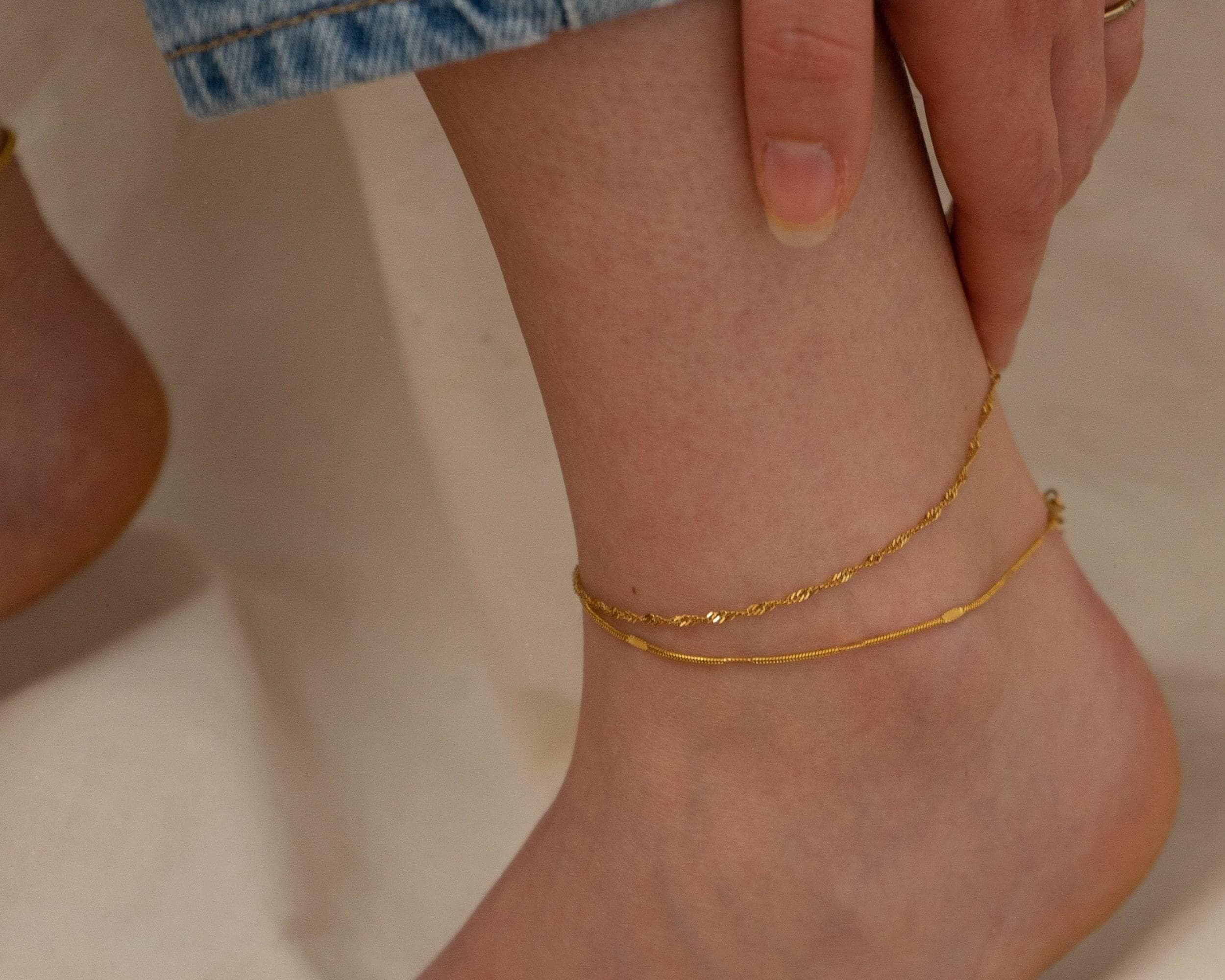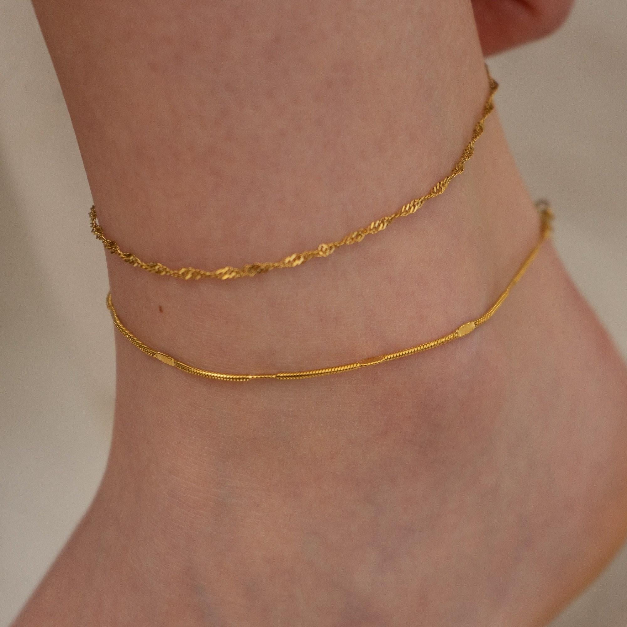 A very stylish gold ROUND SNAKE chain anklet bracelet, made from stainless steel. Durable, waterproof and fashionable.🏝 Introducing our exquisite collection of anklet bracelets. 🏝 Our anklets are designed to adorn your ankle with grace and style.