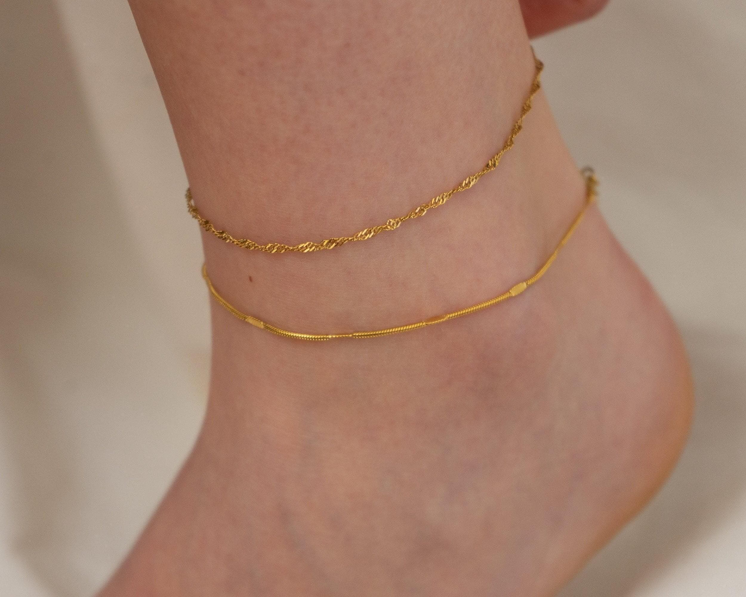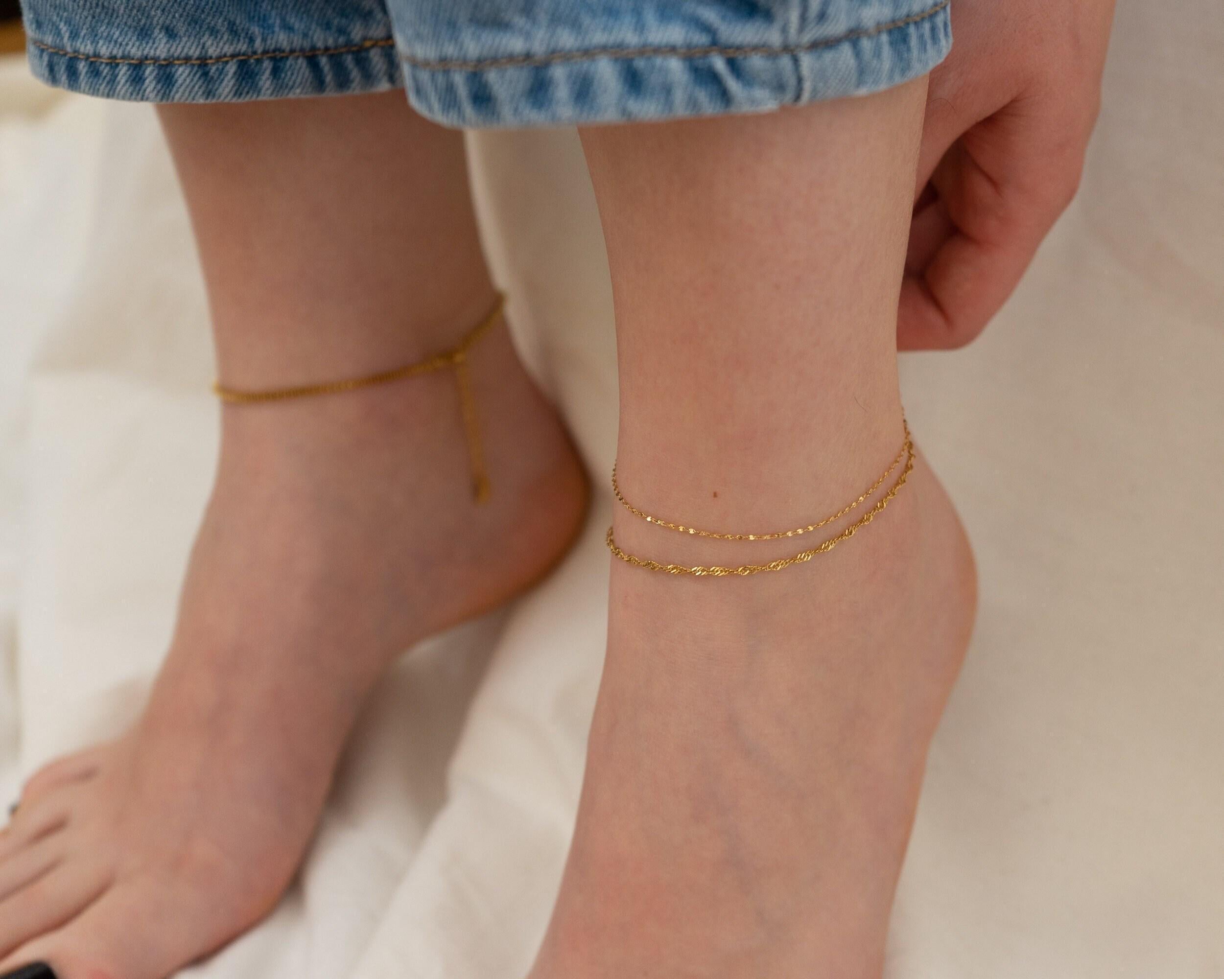 🏝 Introducing our exquisite collection of anklet bracelets. 🏝 Our anklets are designed to adorn your ankle with grace and style. Their premium materials ensure durability and a luxurious feel, allowing you to wear your anklet with confidence for years to come. Whether you're strolling along the beach or attending a special event, our anklet bracelets are designed to be the perfect finishing touch to any ensemble. Made from Stainless Steel. Thin Chain: Length 0.9in. (23cm) + 0.11in. (3cm) chain extender Width 0,04in. (1mm) Thick Chain: Length 0.94in. (24cm) + 0.15in. (4cm) chain extender Width 0,03in. (2mm)GIFTS OF LOVE All of our jewelry come gift wrapped with love, even if you purchase it for yourself. If this is a gift we can make it even more special. Just let us know with a comment at the checkout or a message. CUSTOMIZE TO YOUR LIKING Most of our designs can be customized to your preference in size, color or even style. If you desire any alteration feel free to contact us. If you require a major alteration you must contact before placing an order. MADE WITH LOVE Our metal components are made from silver/gold/rose gold plated zamak and stainless steel unless stated otherwise. All our metals are lead free and nickel free. Zamak is a high quality alloy with a base metal of zinc and alloying elements of aluminium, magnesium, and copper. It is a hypoallergenic material that gets dipped in silver and gold. We use the finest quality of leather, faux leather, silk, cotton elastic string and crystals to make high quality, safe and durable jewelry. Please note that color and size of products may vary slightly as we use semi precious stones and metal casting products which are not all exactly the same. Many of the semi precious stones and the gemstones are being coated to improve their natural color and luster. This is a common practice in the cutting and treatment of the gemstones and it doesn’t lower their quality. Avoiding contact with any chemicals, strong perfumes or water will help you preserve their beauty. All natural stones are subject to natural inclusions and vary slightly in colour and cut.CARE INSTRUCTIONS All metal tarnish over time, even pure silver. Gold/silver plated findings (charms, pendants, clasps, beads, chains, jump rings etc) may tarnish if they are exposed to humidity for an extended time, or if they get in contact with alcohol, which is found in perfumes. To preserve longevity, store your jewelry in a dry place and avoid spraying perfume or alcohol based body lotion near them. SHIPPING All orders are shipped from Athens, Greece via ELTA postal service, packed in protective bubble mailers. We use International and Domestic Priority Mail. Delivery times depend on delivery times within the destination country, as determined by the Postal Service of each country. REFUNDS, EXCHANGES AND CANCELATIONS: A mistake on our part will be refunded 100% along with all shipping costs. If for any reason you are not happy with your purchase, we will gladly accept returns or exchanges. If you want to return any item, please contact us before posting it. Buyers are responsible for the shipping costs of the returned item. Please note that shipping costs are not refundable. GET TO KNOW US Lets connect on your favourite social platform: - Instagram: @houseofasterodea, http://bit.ly/2JAKASW - Facebook: fb.me/HouseOfAsterodea - Pinterest: www.pinterest.com/ houseofasterodea