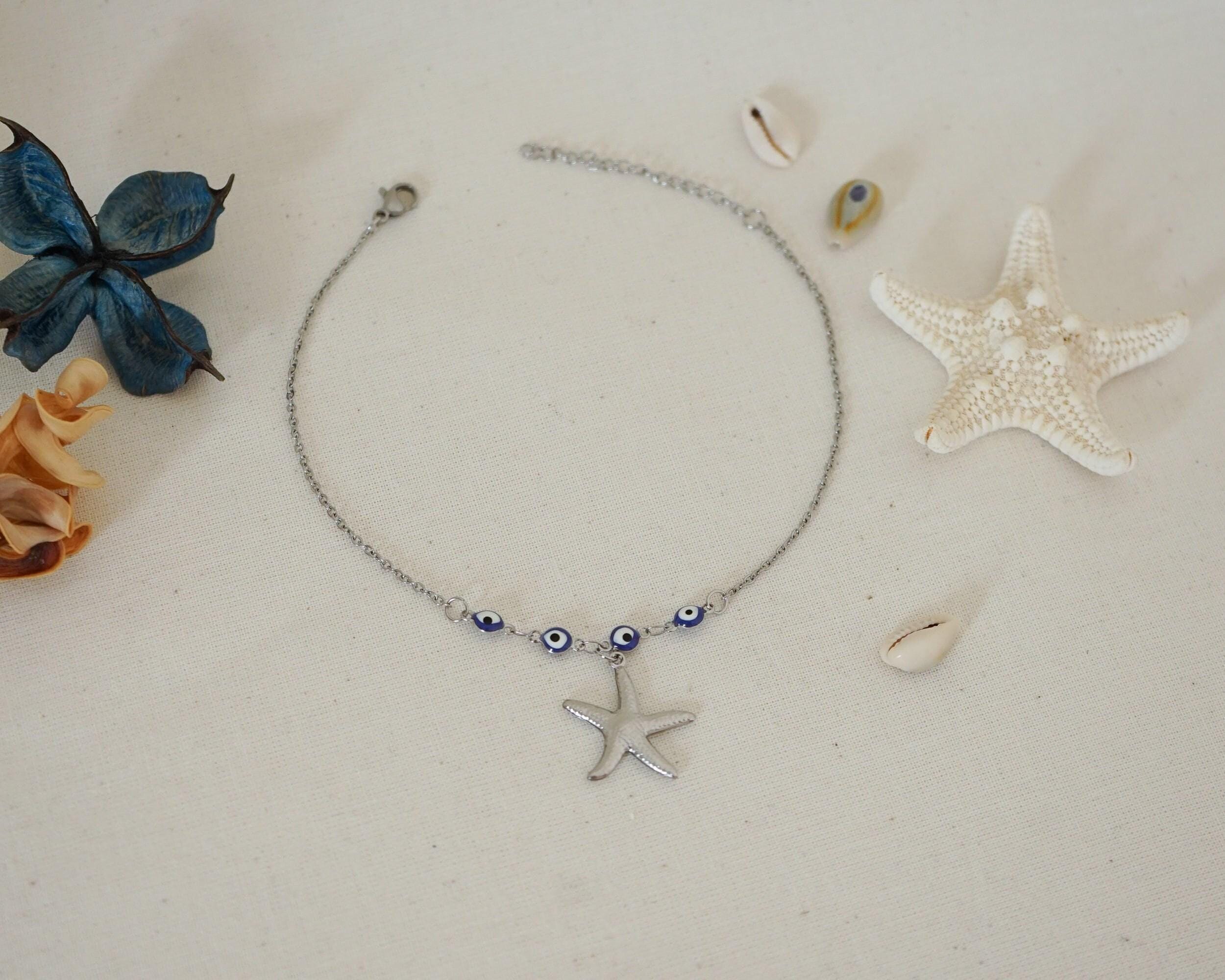 A very stylish gold DOUBLE STRAND chain anklet with a curte STARFISH charm and colorful enamel, made from stainless steel. Durable, waterproof and fashionable.