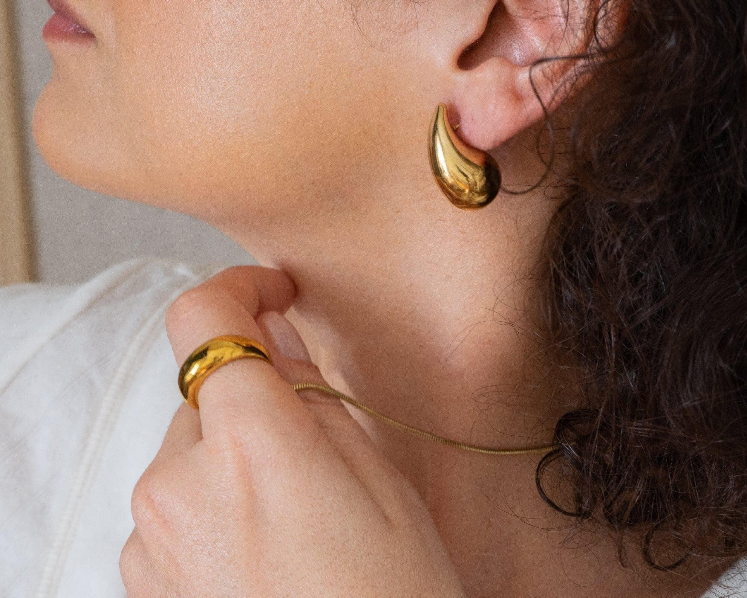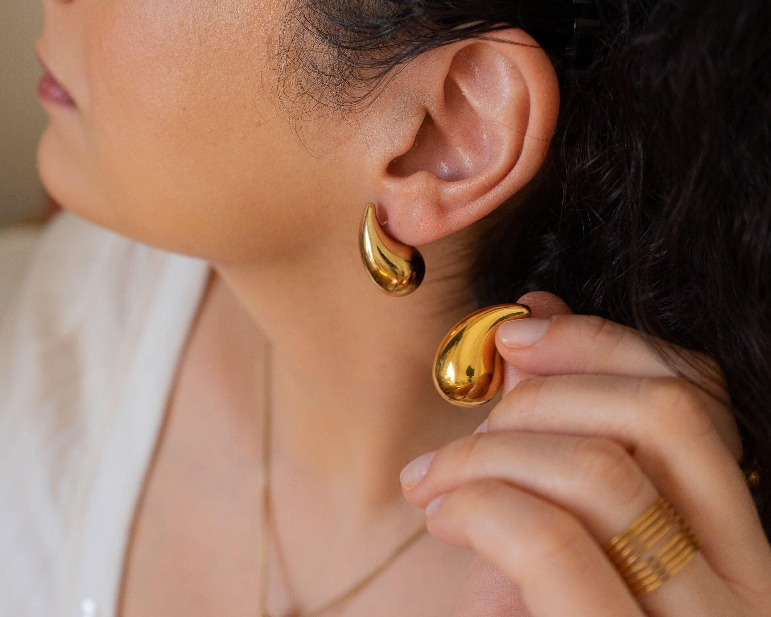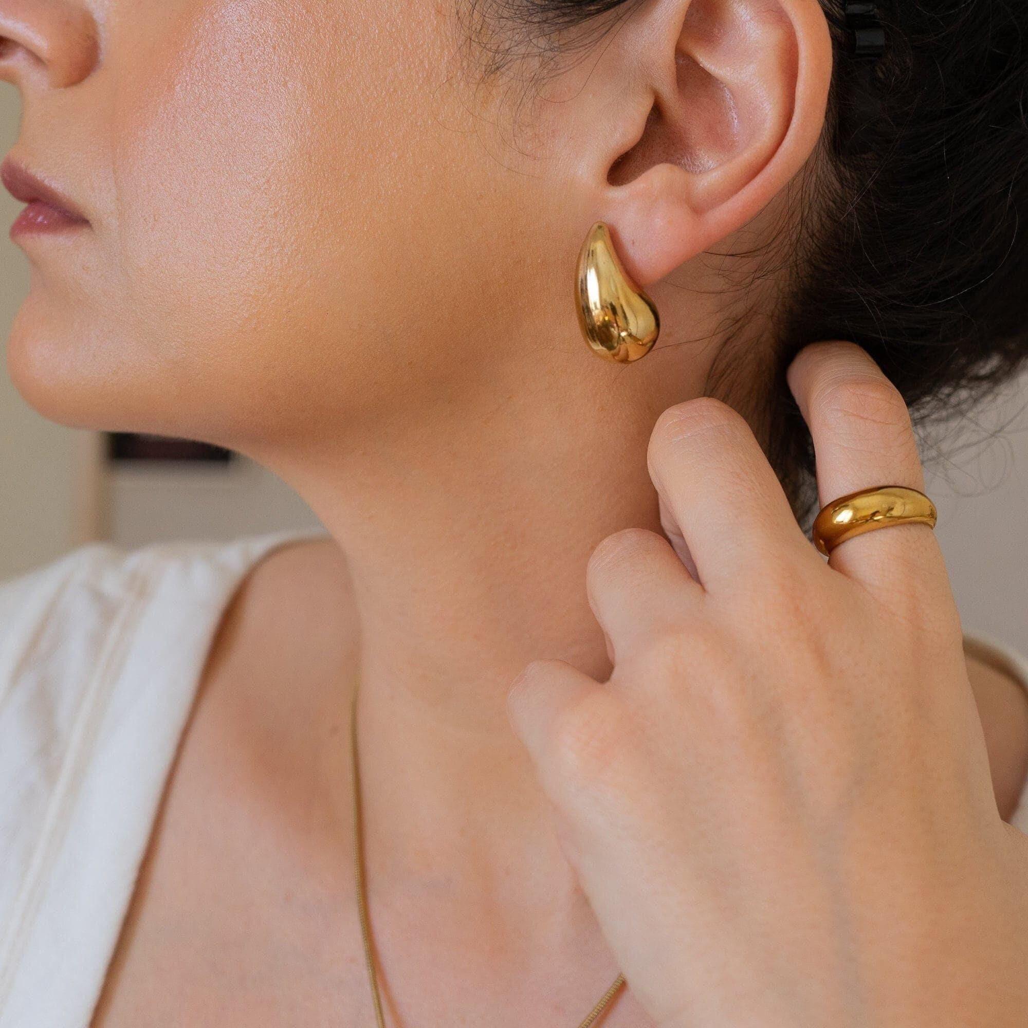 Discover the elegance of our Medium Bold Dome Drop Earrings, a stylish addition to your jewelry collection that embodies luxury for everyday wear. Crafted with care, these hoop earrings feature a sleek and sophisticated design perfect for any occasion.