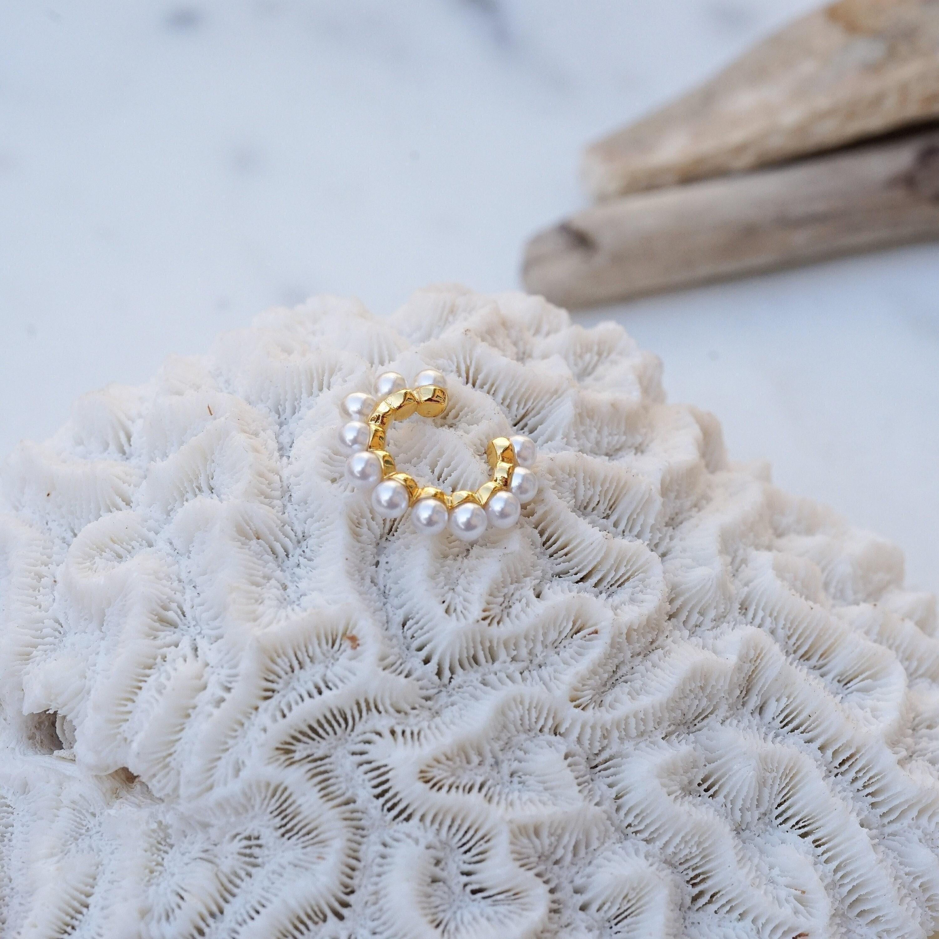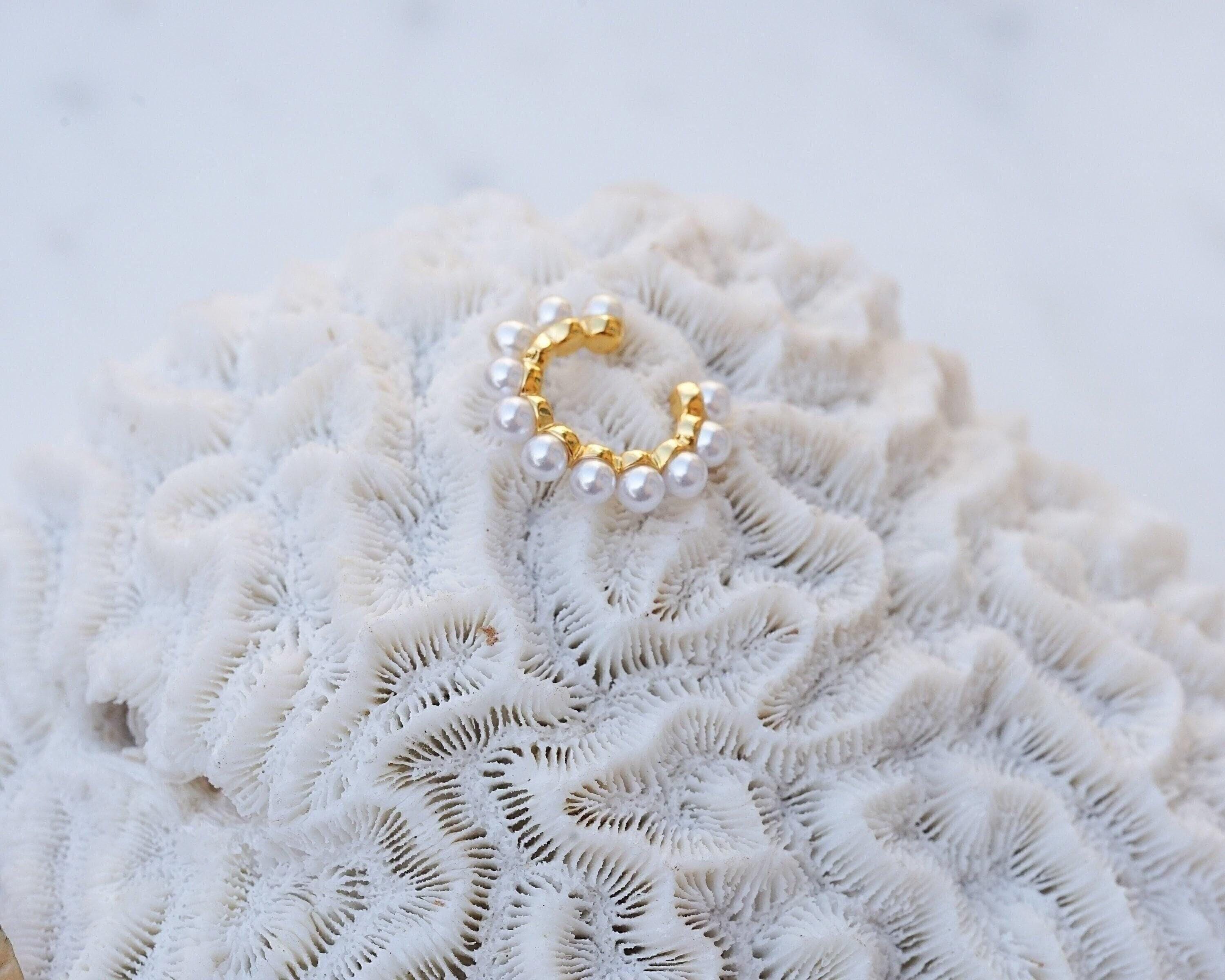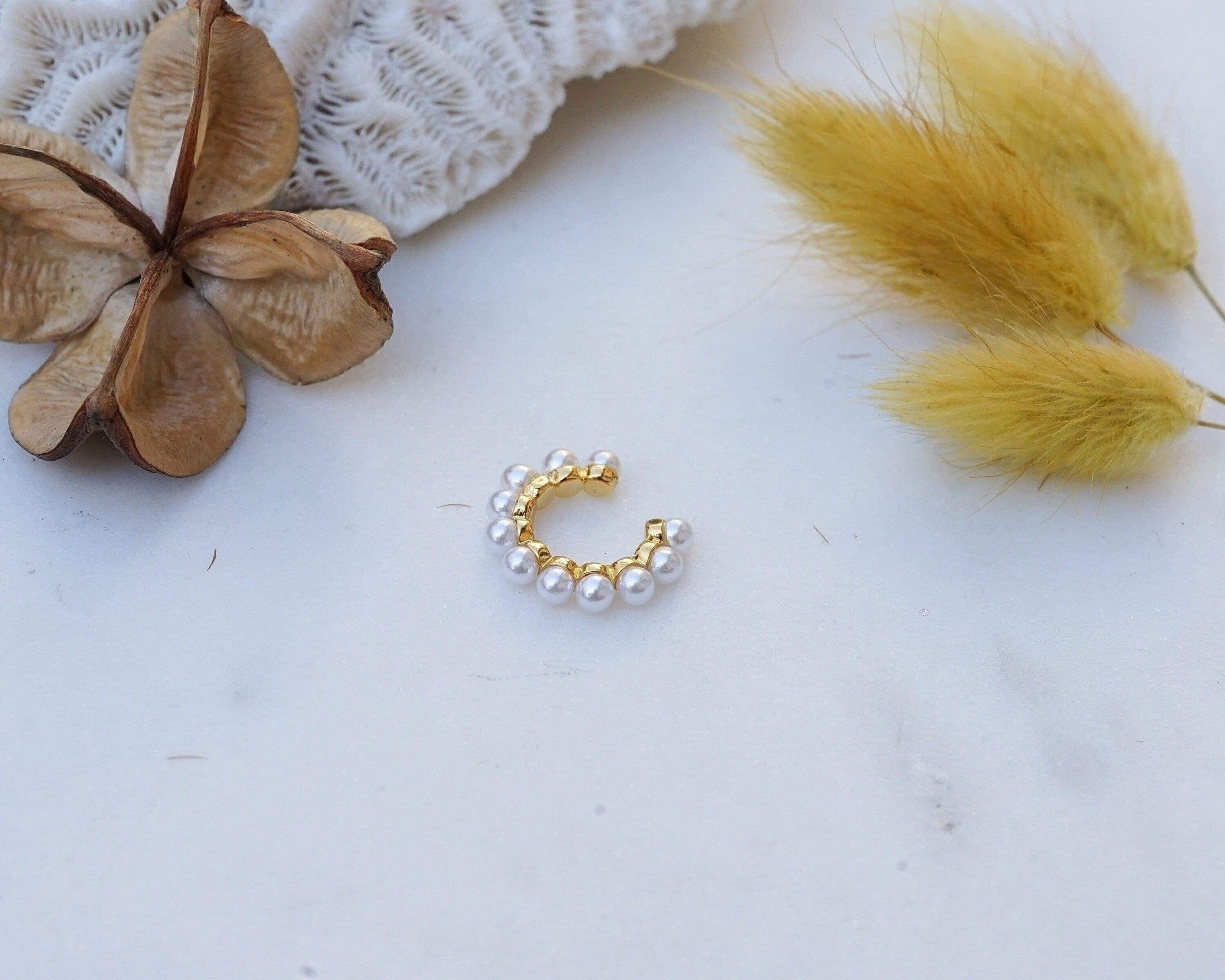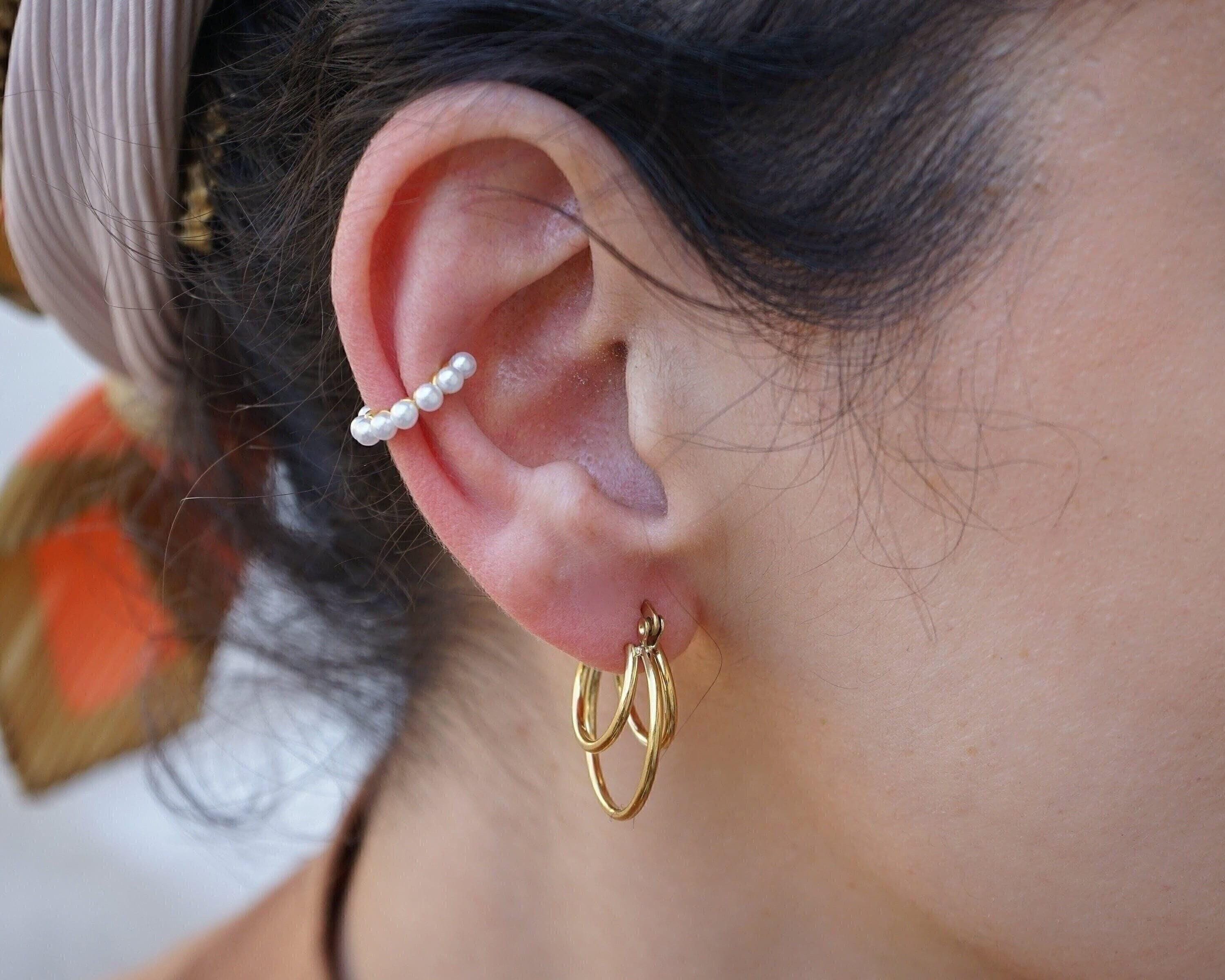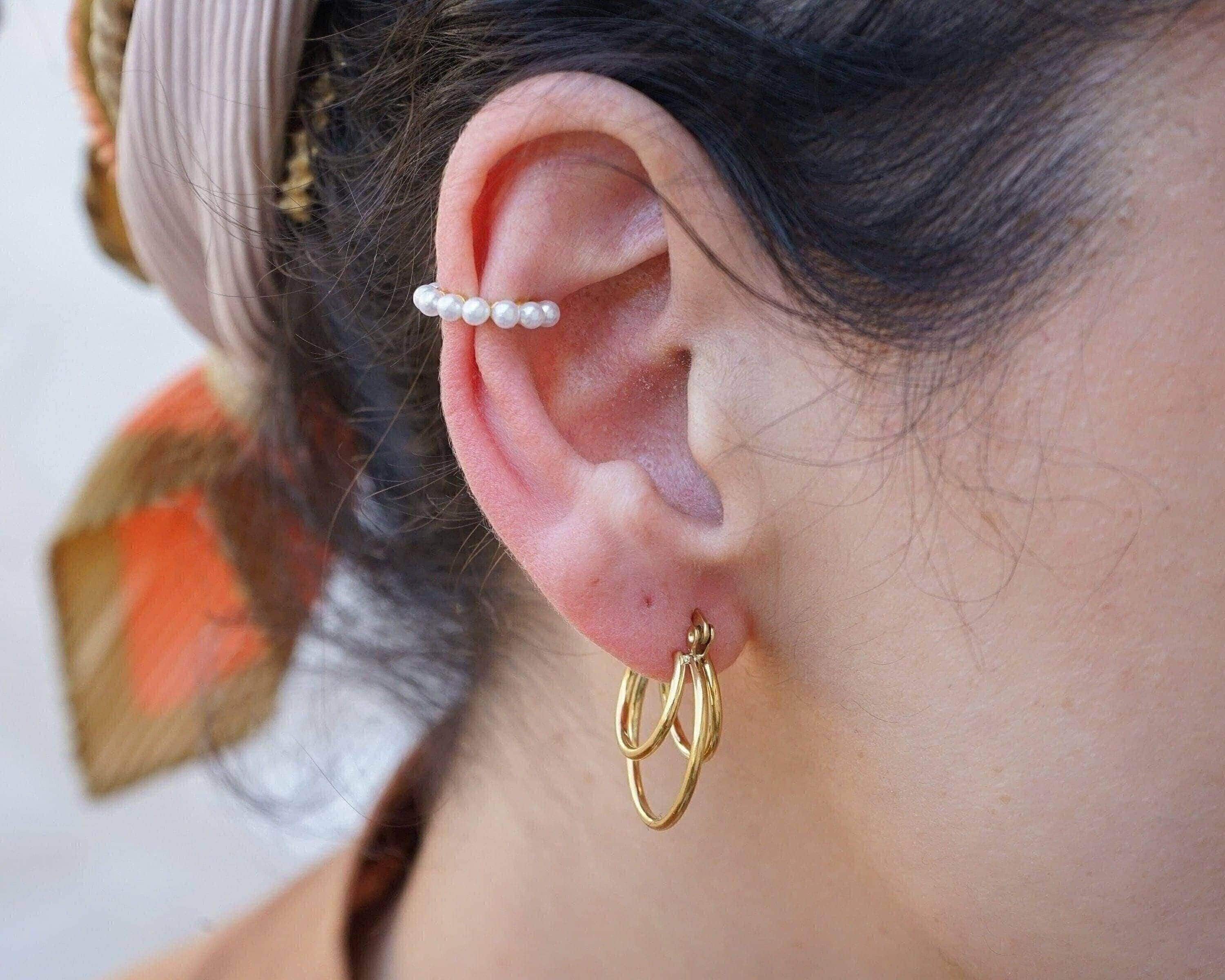 Why limit your jewelry stacking to necklaces and rings when you can also elevate your earring game? Introducing our elegant gold-plated ear cuffs adorned with delicate pearls. These dainty pieces can be worn solo for a refined look or layered with other earrings for a more modern vibe. Ideal for those without piercings in their conch, orbital, or helix, these cuffs offer a versatile and stylish addition to your collection. Lightweight and effortless, they are designed for comfortable wear throughout the day.