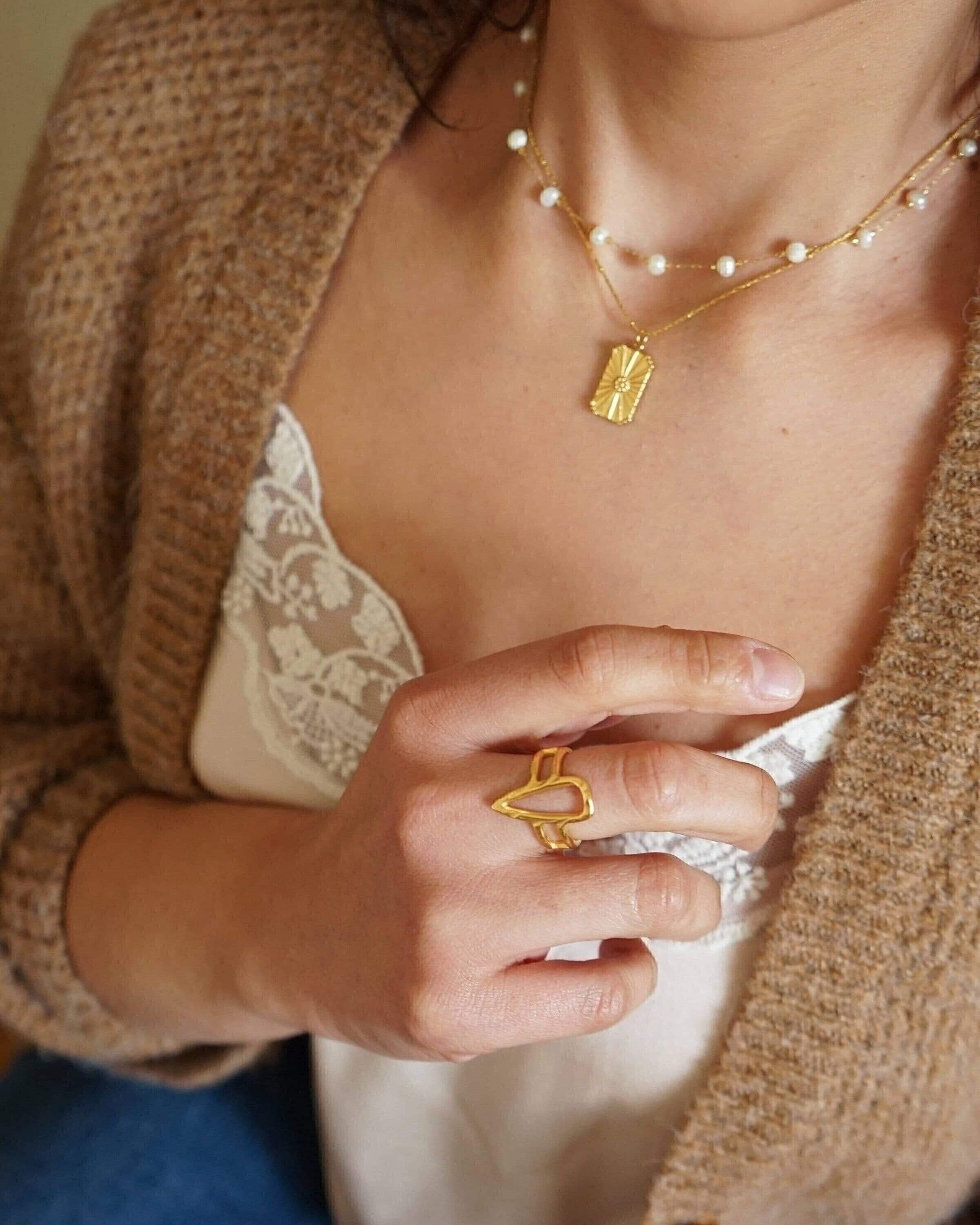An unique gold plated ETHNIC ring that can be worn on index, middle or ring finger. A staple piece that will look great with the rest of your ring collection. This ring goes great with your simple shirt and jeans or your going out outfit. It can be worn alone or in combination with other rings. It's very well made of durable silver plated zamak.