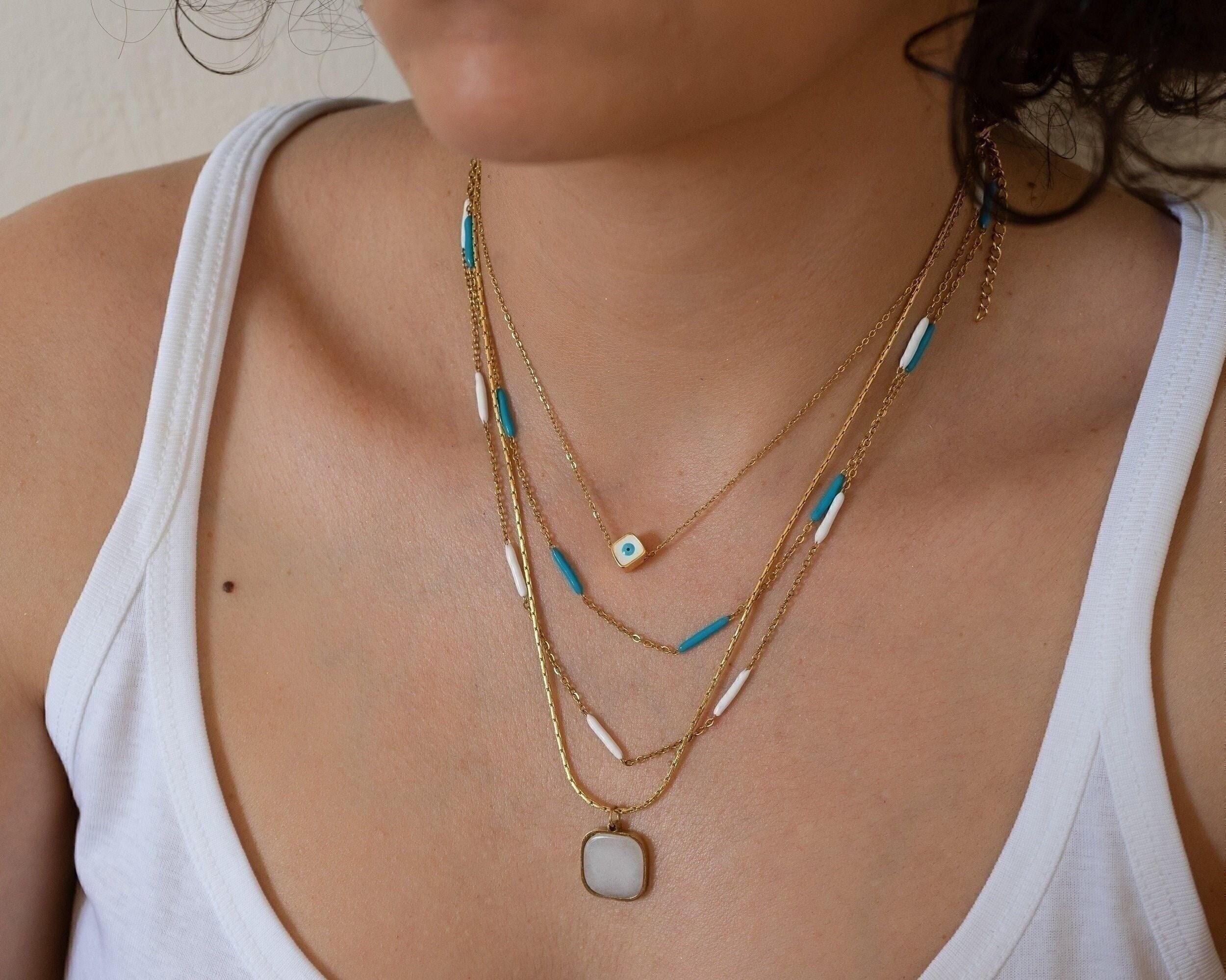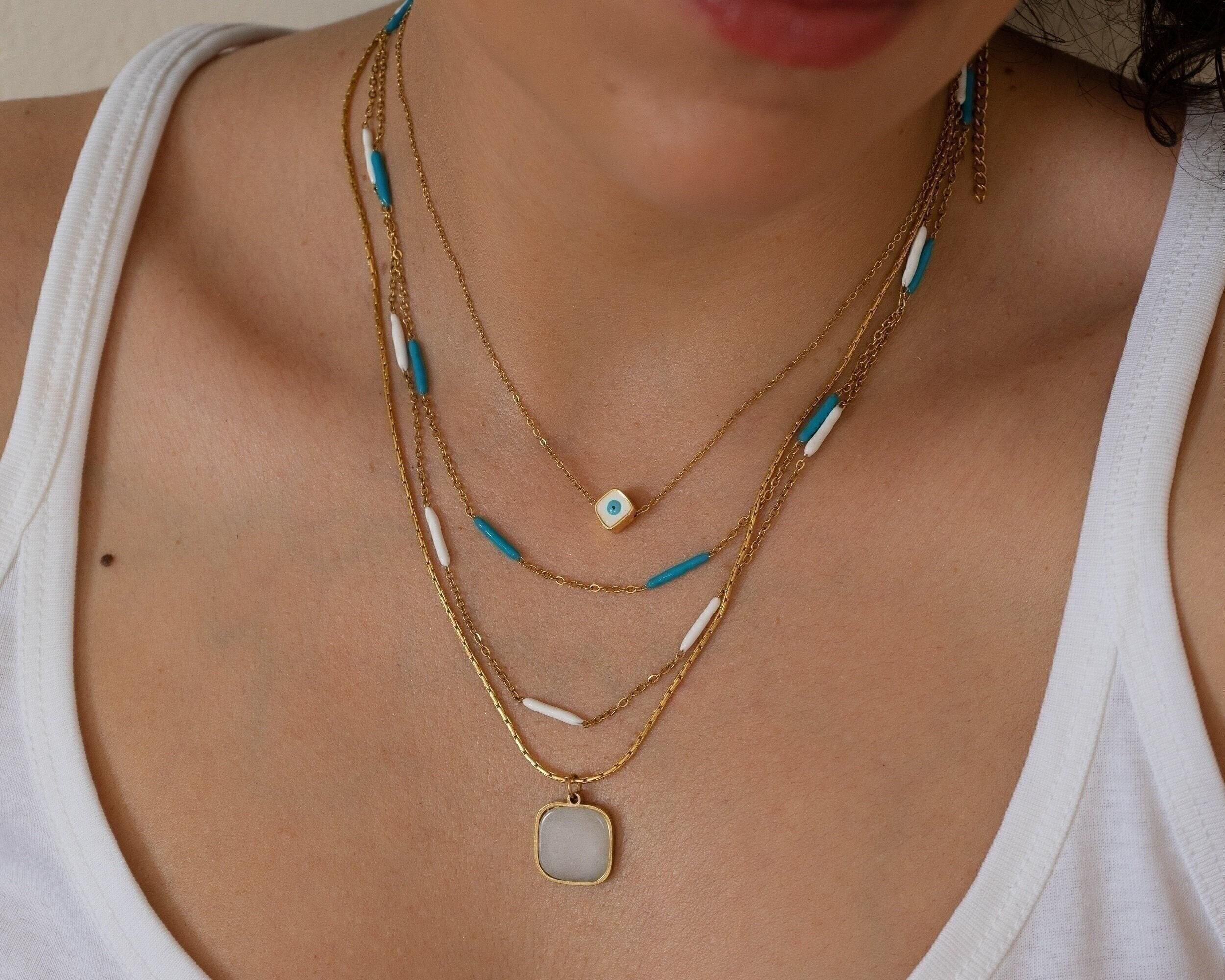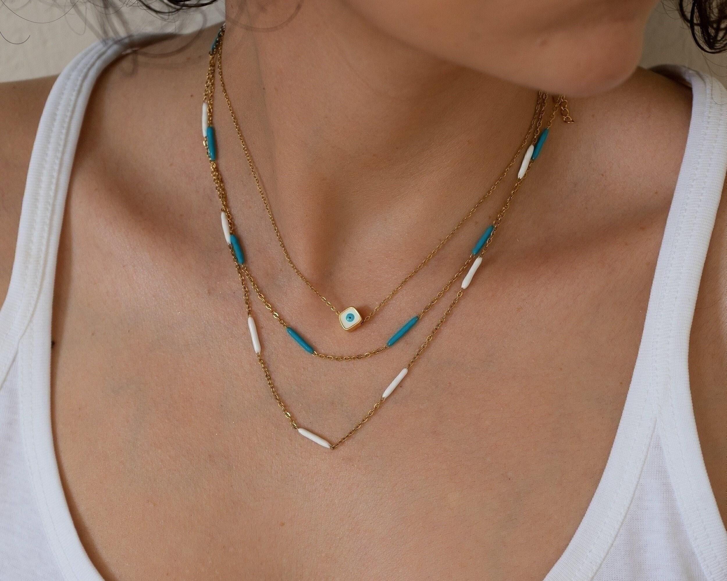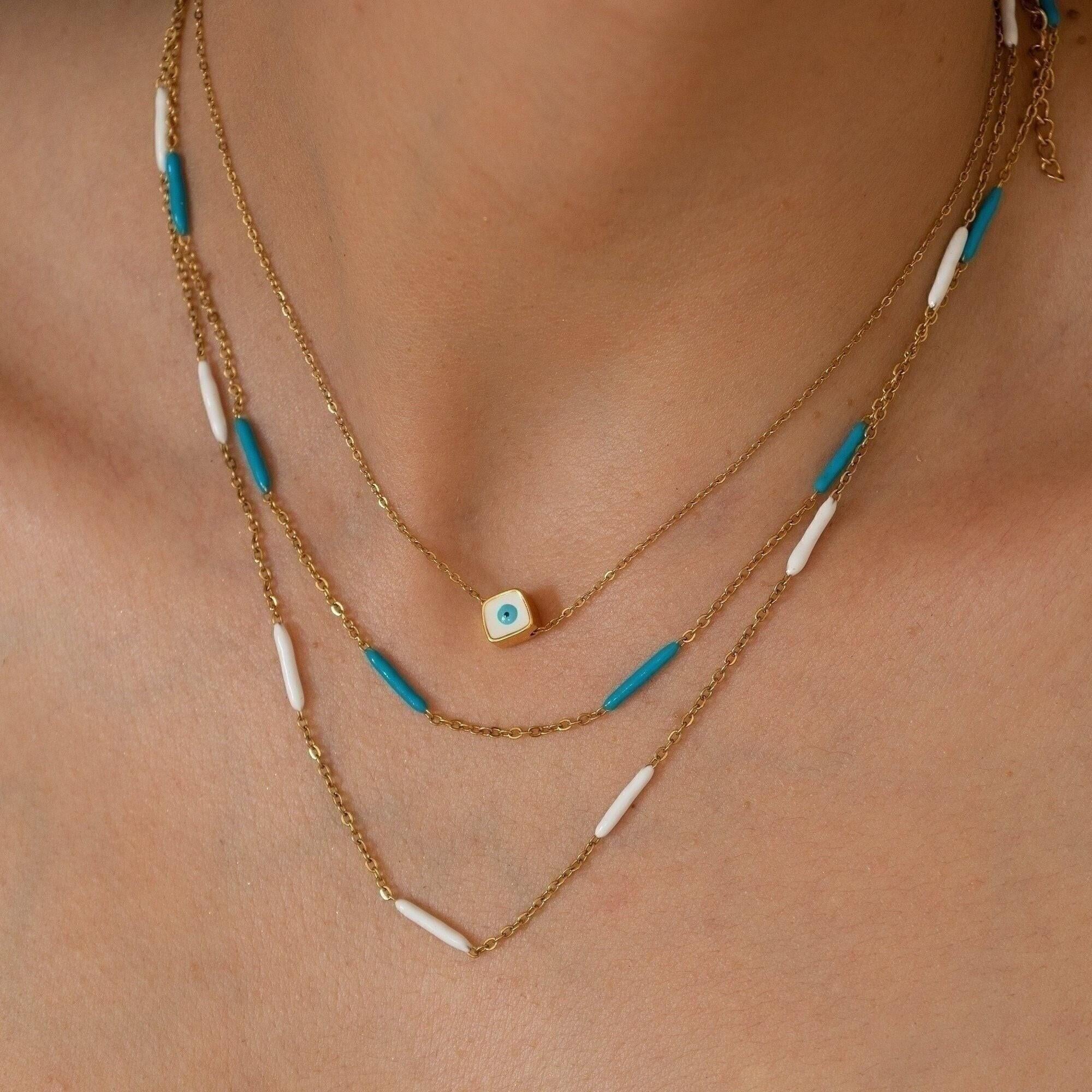 Discover a modern and vibrant enamel Evil Eye necklace, elegantly suspended on a delicate stainless steel chain. This meaningful piece is versatile enough for daily wear or special occasions, making it an ideal addition to your jewelry collection. The design is striking on its own but can also be layered beautifully with your favorite necklaces for a personalized look.