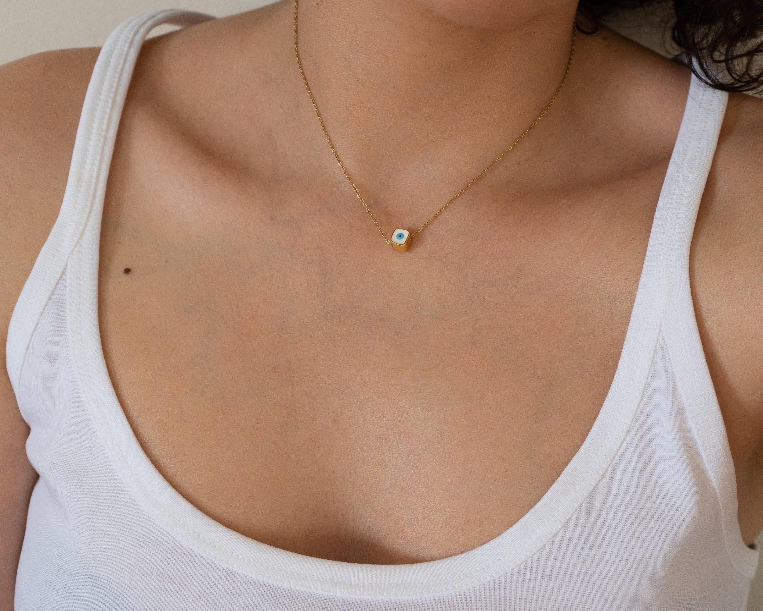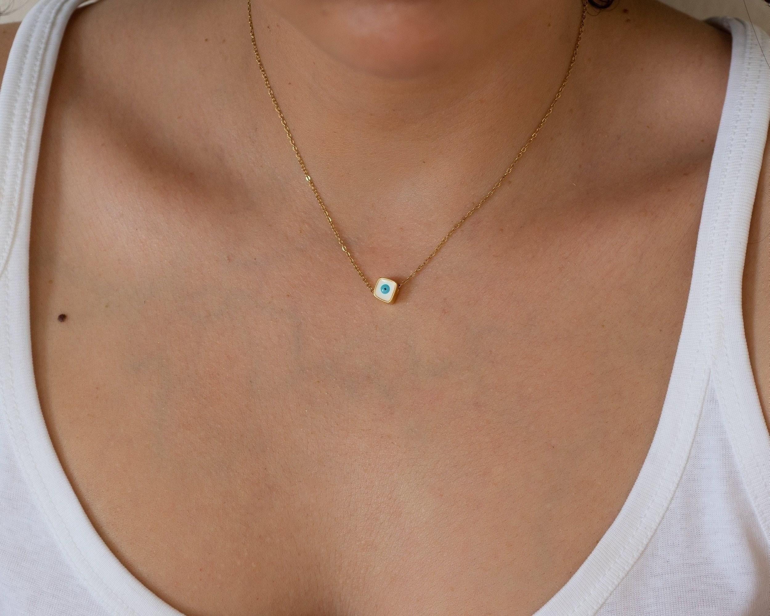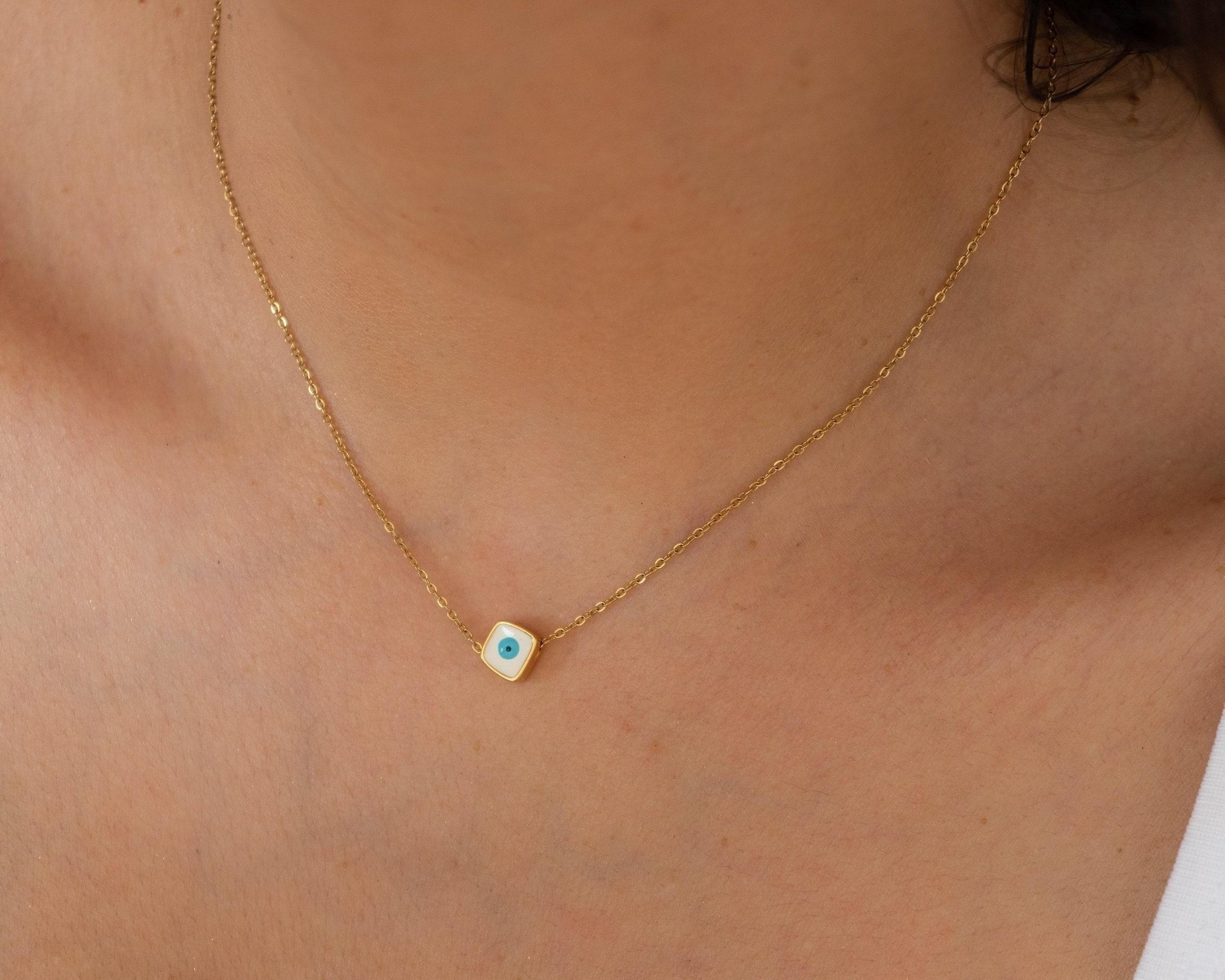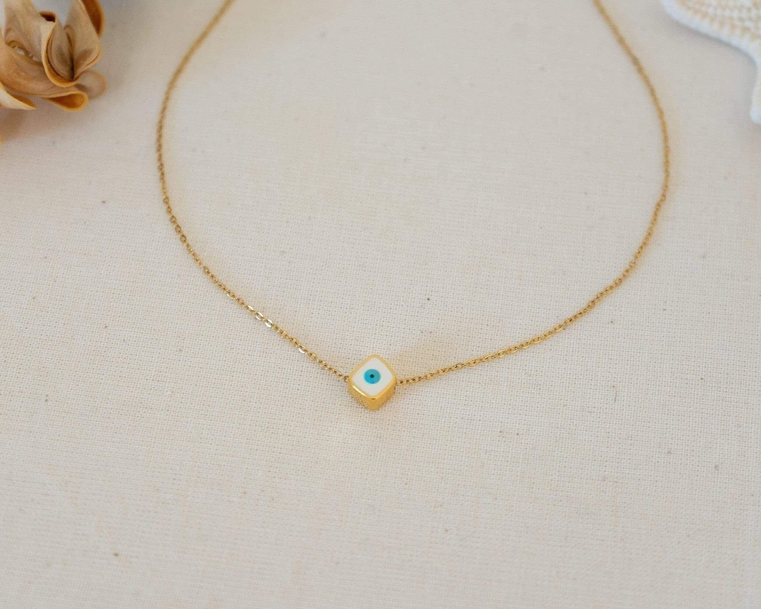 Mini Square Gold Evil Eye Necklace