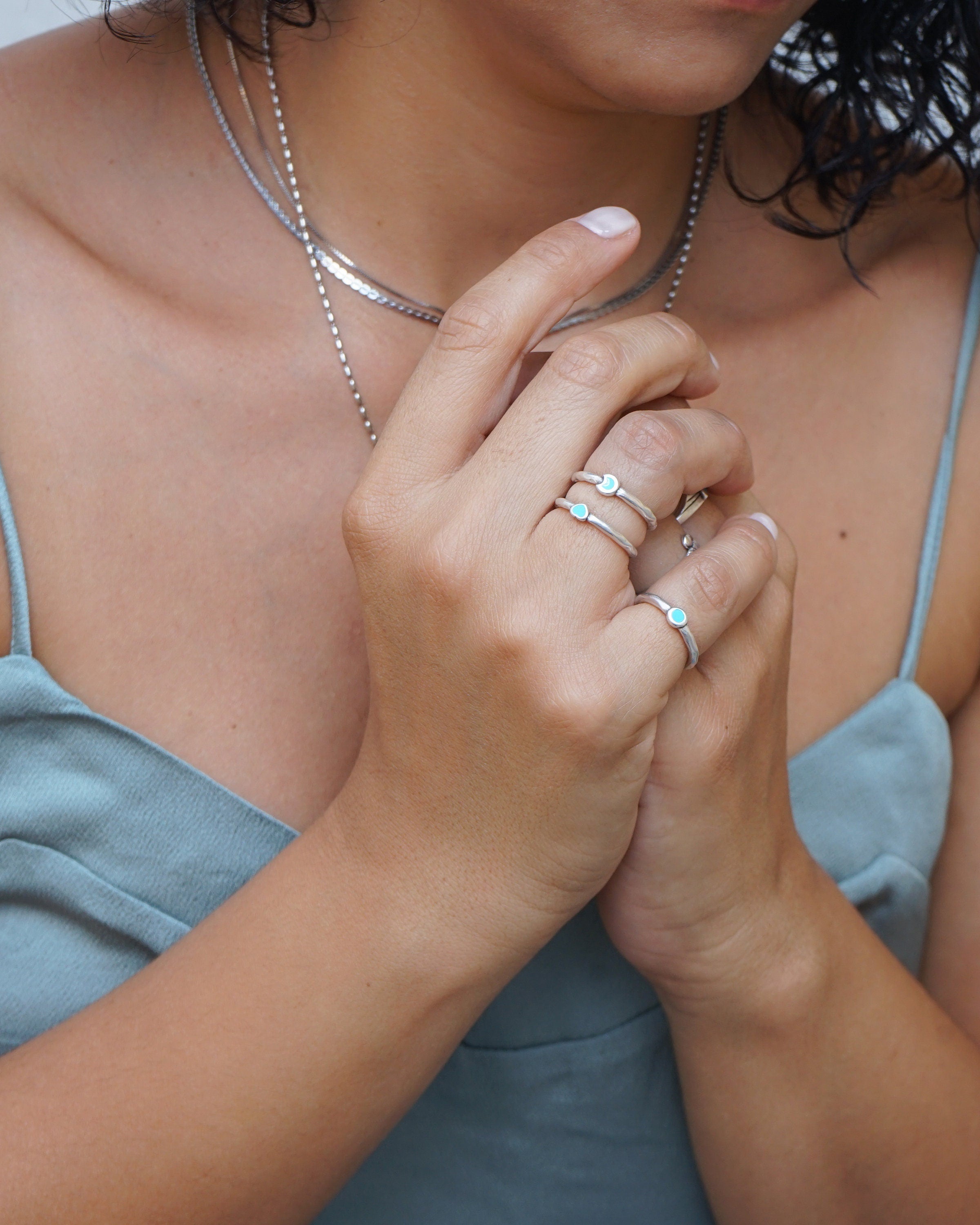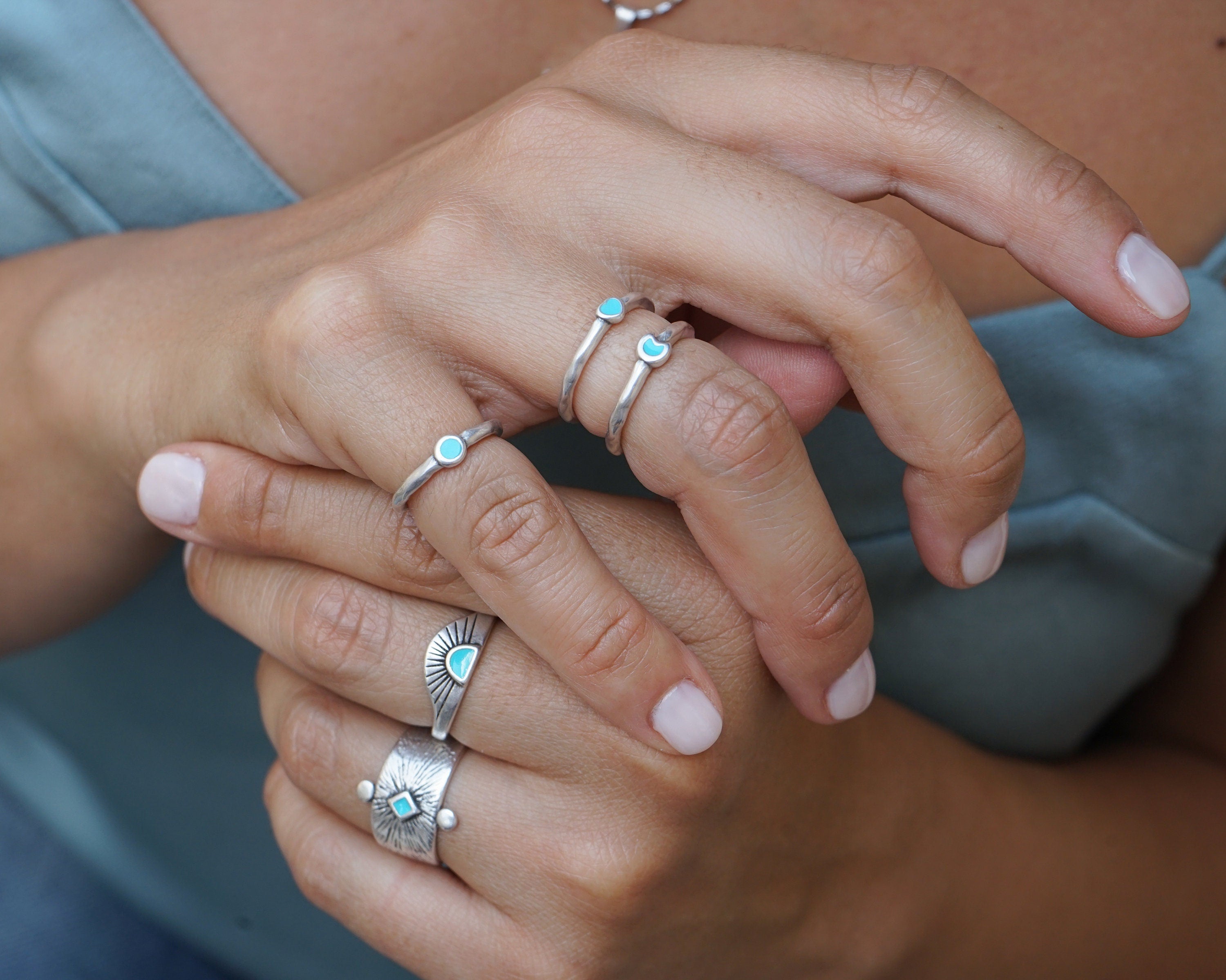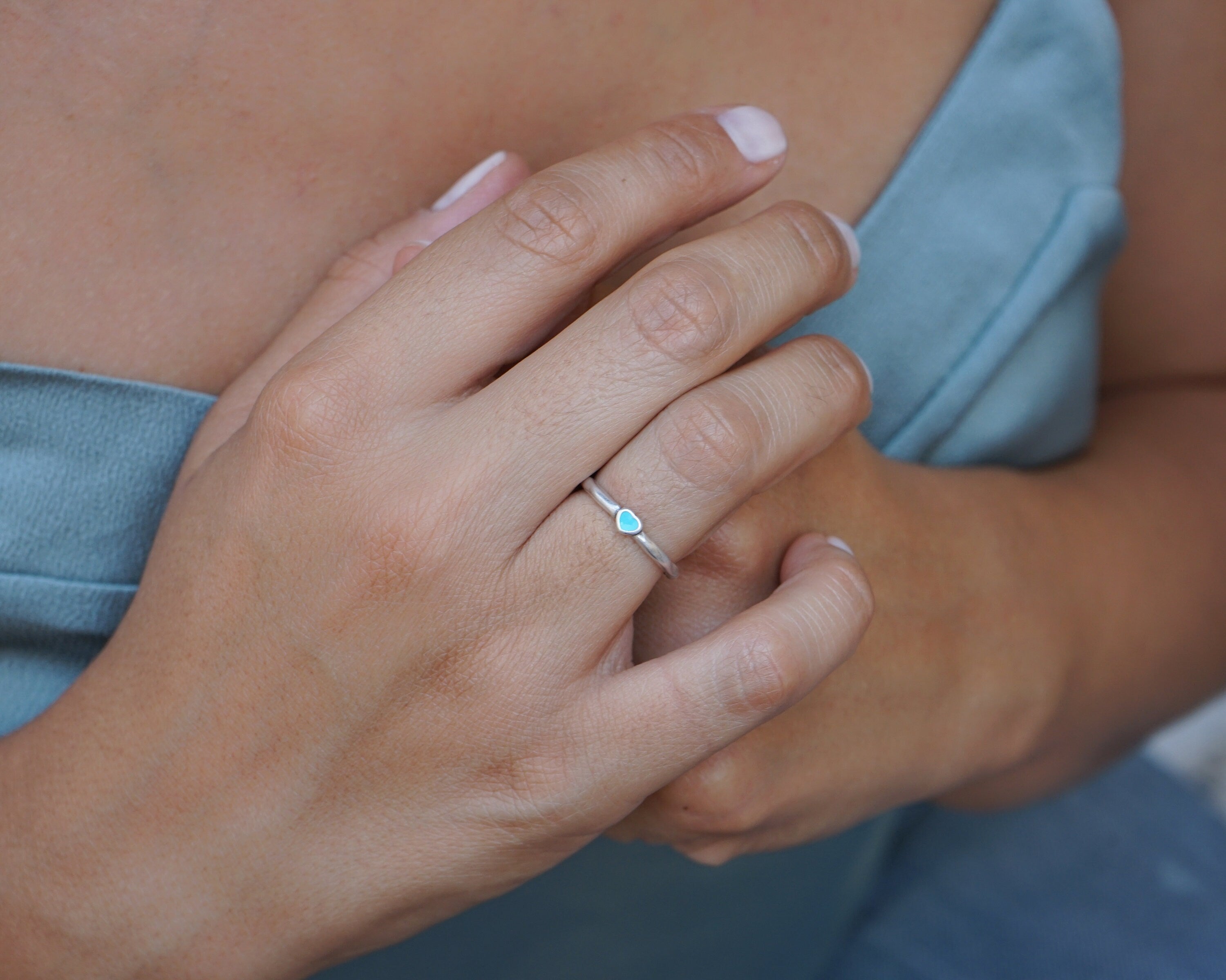 Discover the charm of this minimalist solitaire ring, featuring a striking black or turquoise heart enamel setting atop a beautifully hammered band. This distinctive piece adds a touch of elegance to any outfit, making it a perfect addition to your jewelry collection.