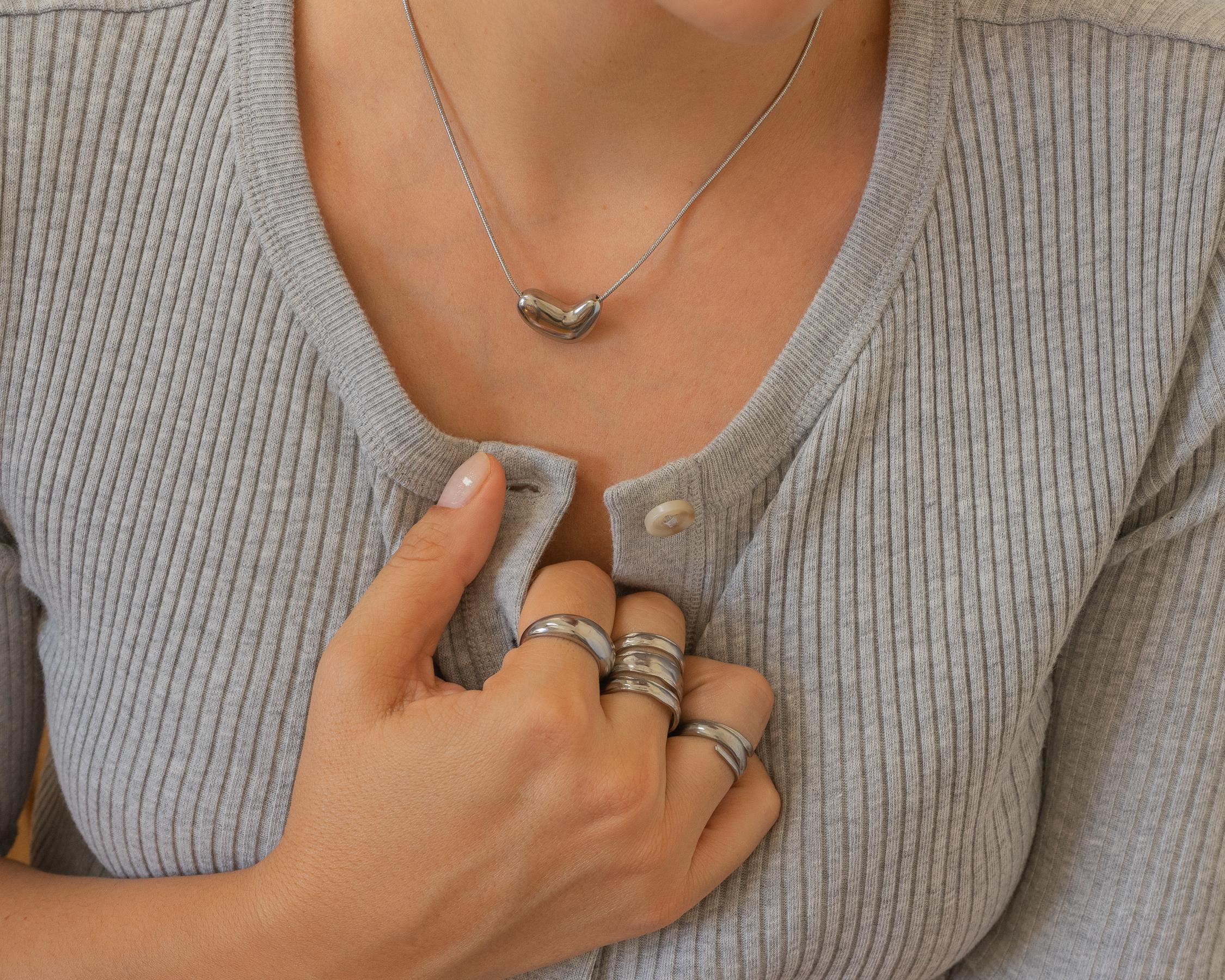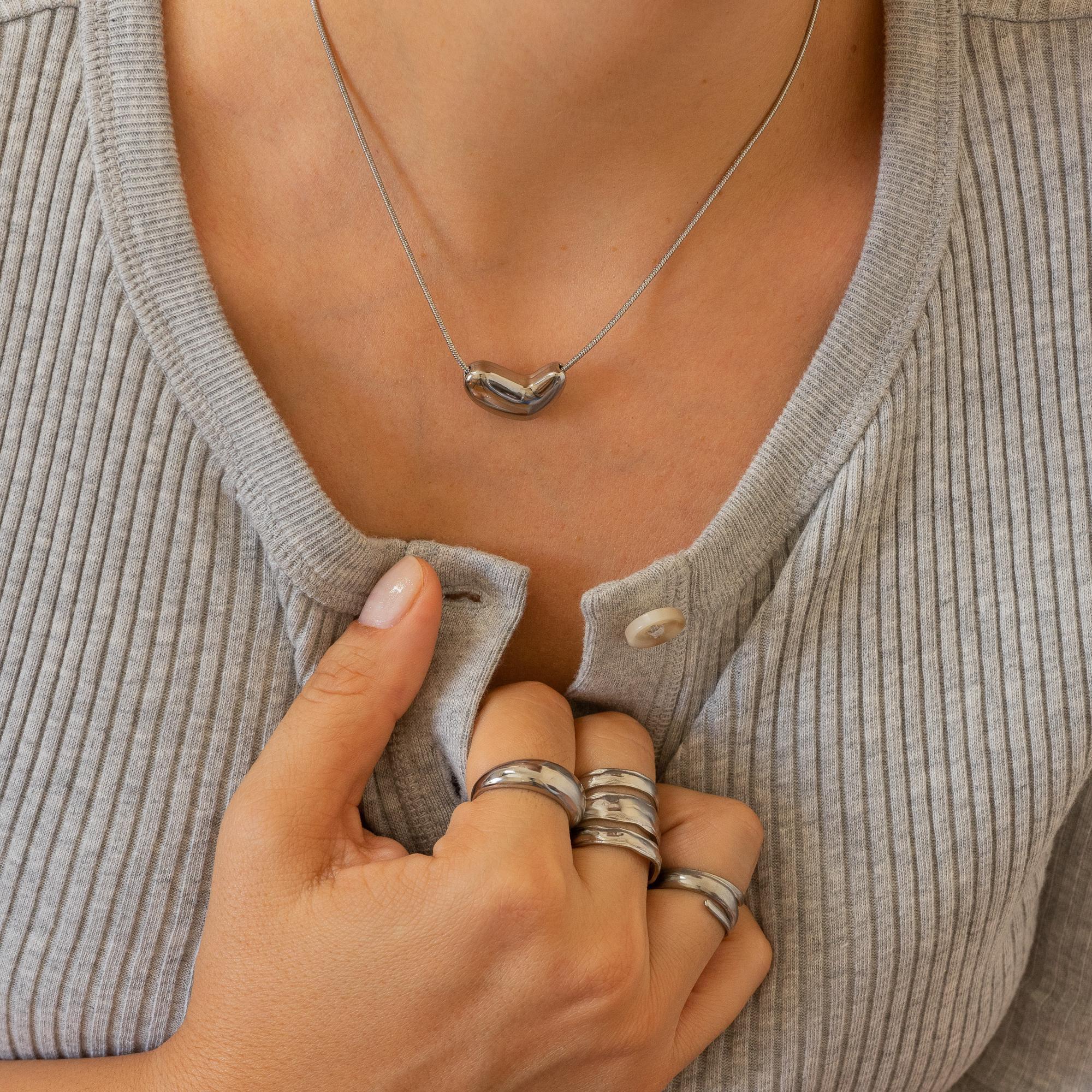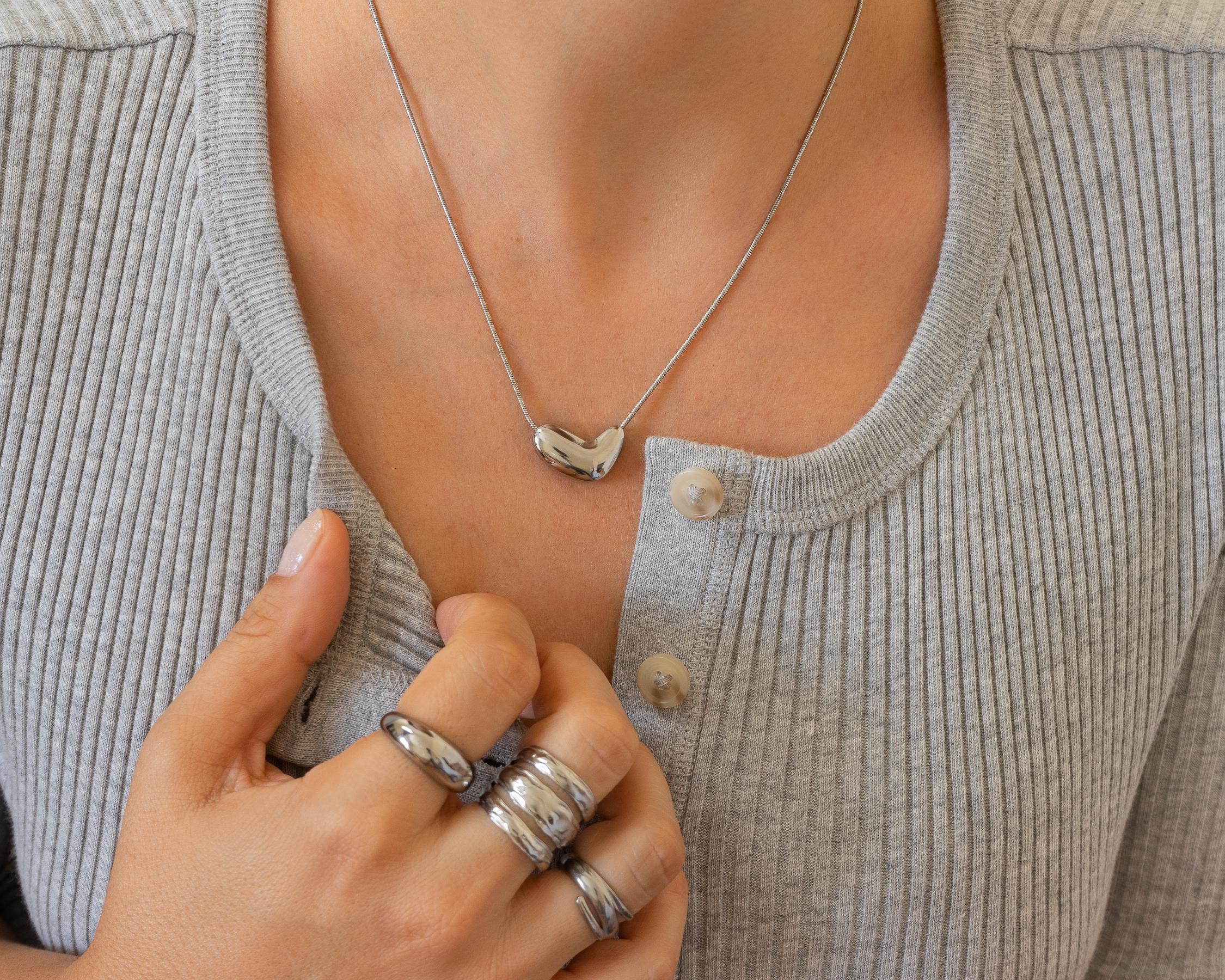 Crafted with care and precision, our Bold Silver Heart Necklace boasts a timeless design that is perfect for any occasion. Made with high-quality materials, this elegant jewelry accessory will maintain its beauty and durability for years to come. From its water-resistant properties to its resistance to wear and tear, this necklace is the perfect blend of style and functionality. Elevate your look with our must-have collection of the season.