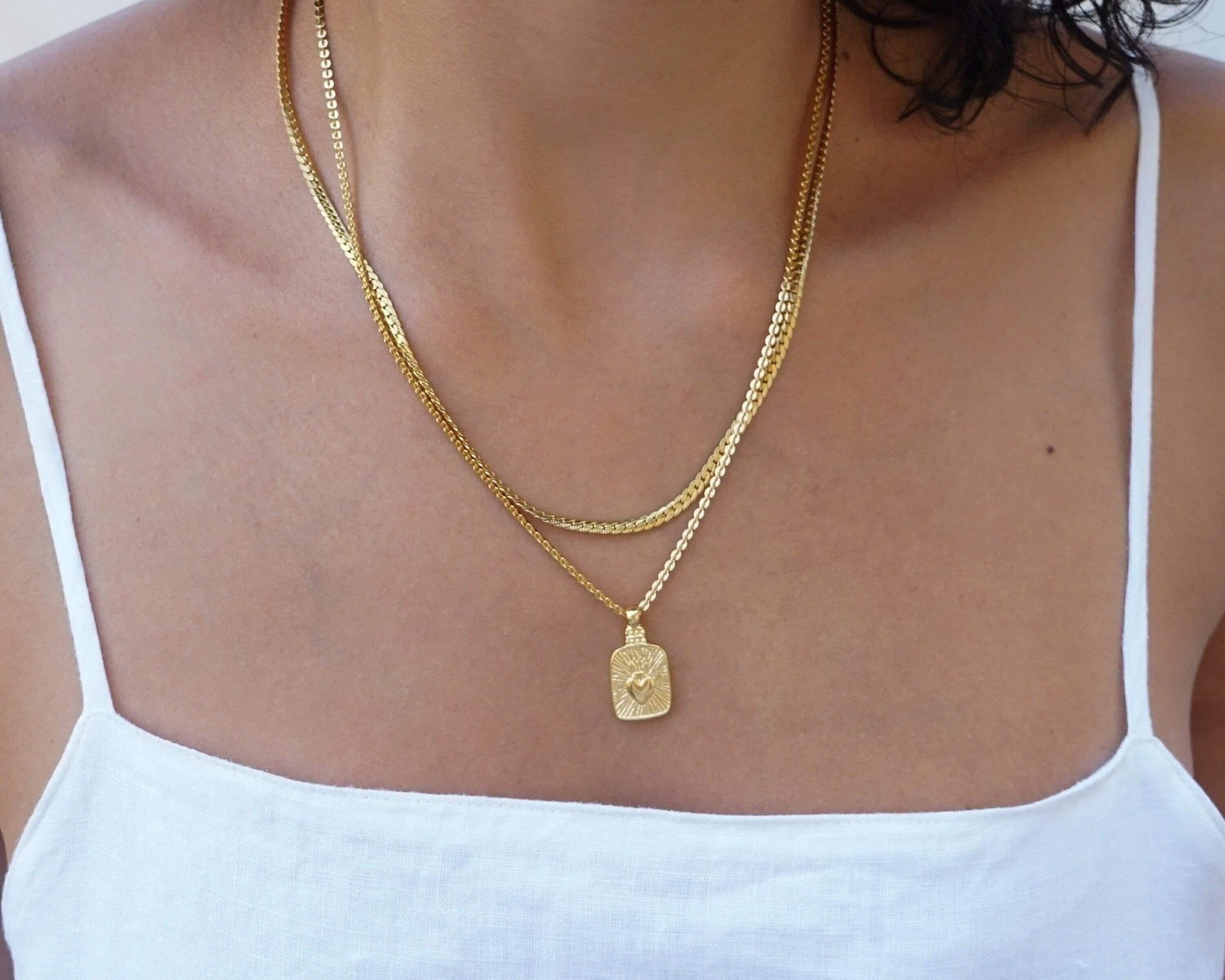 Discover this distinctive necklace featuring a rectangular Mexican Heart pendant, elegantly paired with a durable stainless steel sequin-crossed chain measuring 2mm. Ideal for achieving a feminine aesthetic, this heart-shaped jewelry serves as a timeless symbol of love, making it a thoughtful gift for special occasions. Explore our collection to find the perfect piece, whether it's a necklace or bracelet, for your loved ones. Crafted from high-quality materials, this jewelry maintains its beauty and does not wear off over time.