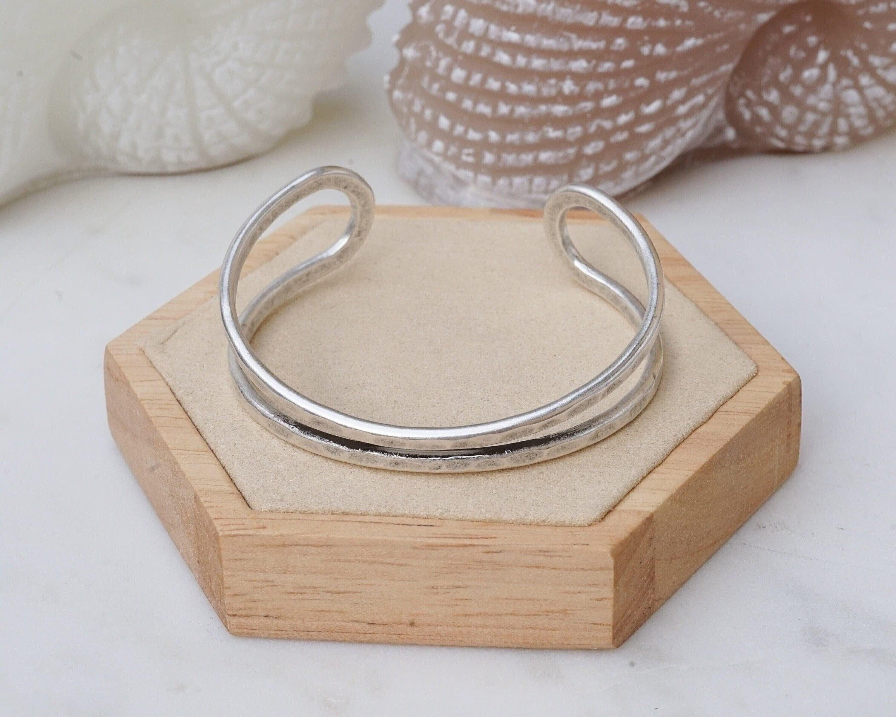 This antique silver cuff bracelet, plated with black patina for an authentic vintage look, features a hammered surface and comes in two stunning designs: Double Line and X Shape. Its bold yet elegant design adds a timeless touch to your jewelry collection, making it perfect for both casual and formal occasions.
