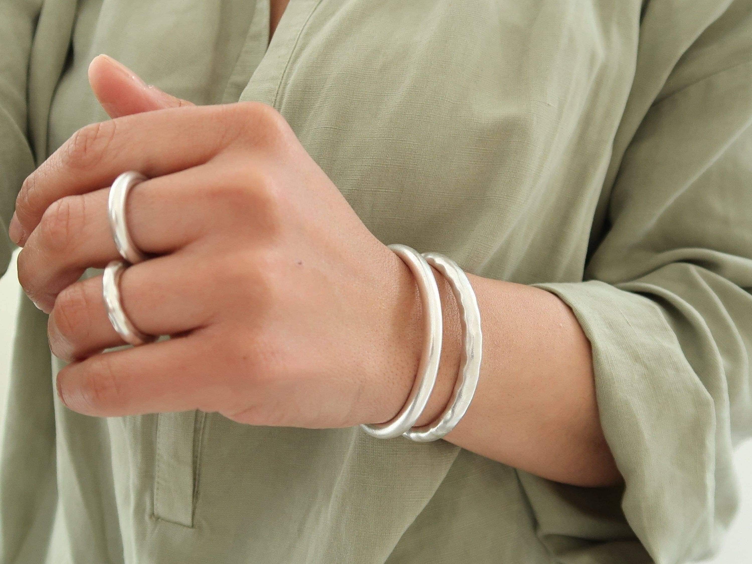 Silver Thick Hammered/Simple Shiny Cuff Bracelet