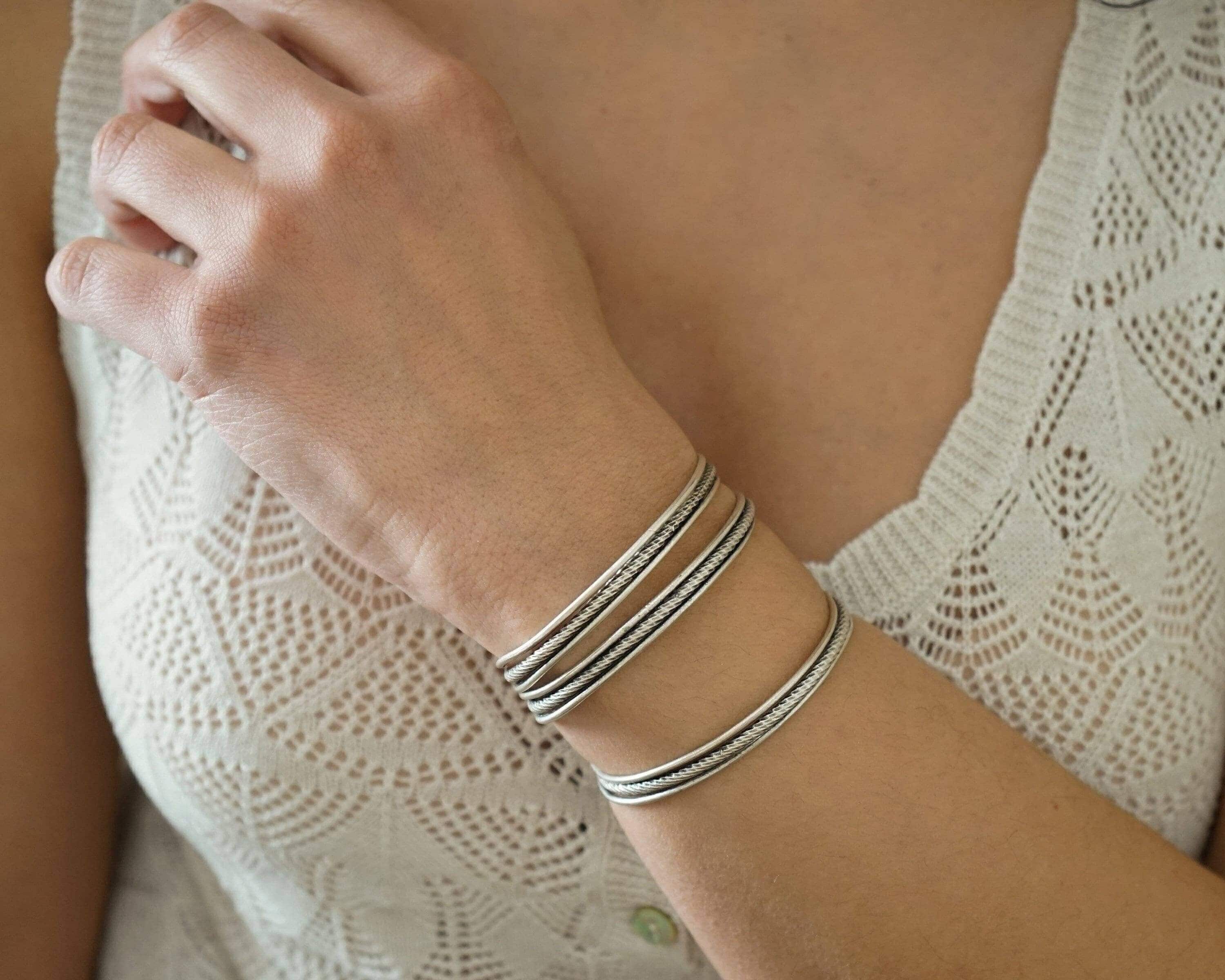 Designed to fit wrist circumferences between 5.5 and 7 inches, this cuff is perfect for making a statement on its own or stacking with other bracelets for a layered style. Its intricate braided design makes it a standout accessory, while its versatility allows you to mix and match with various designs from our collection.
