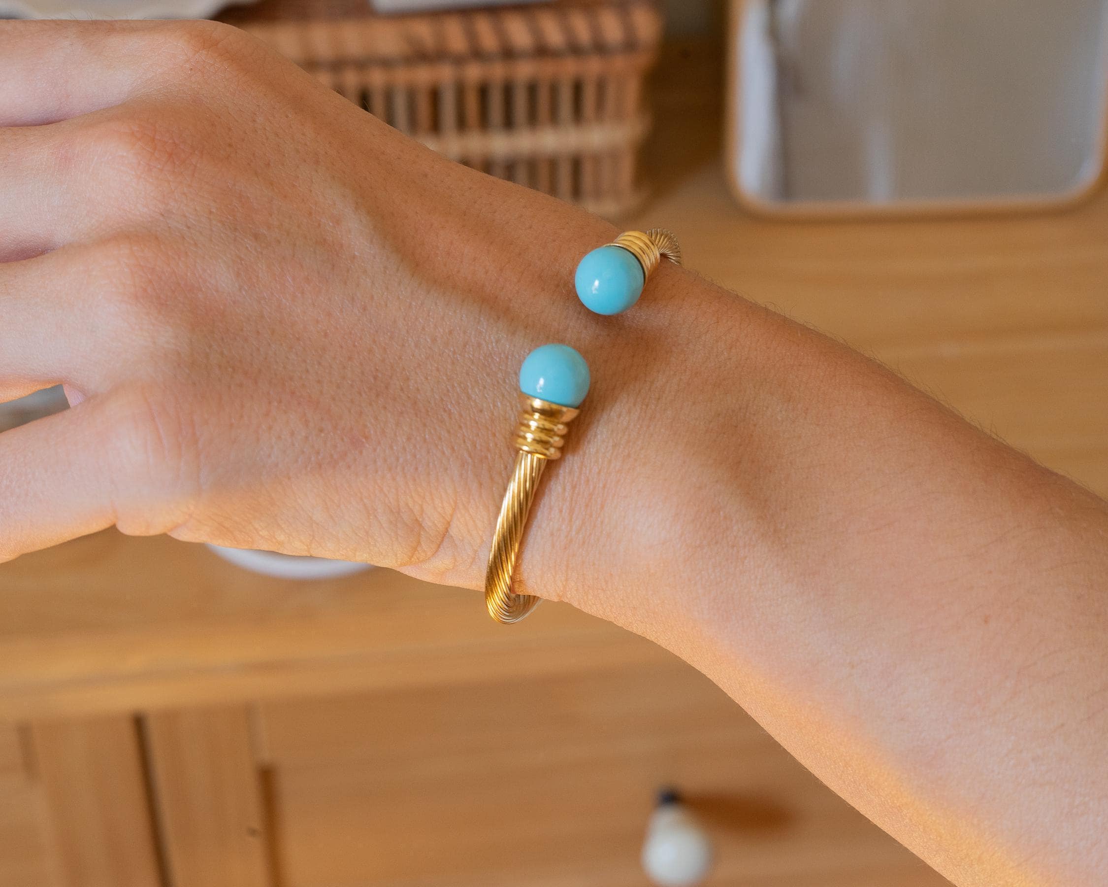 The Gold Classic Cable Cuff is a timeless accessory, available in two charming colors. With its elegant twisted rope design, this bracelet effortlessly combines sophistication and practicality, making it a standout piece in any jewelry collection.
