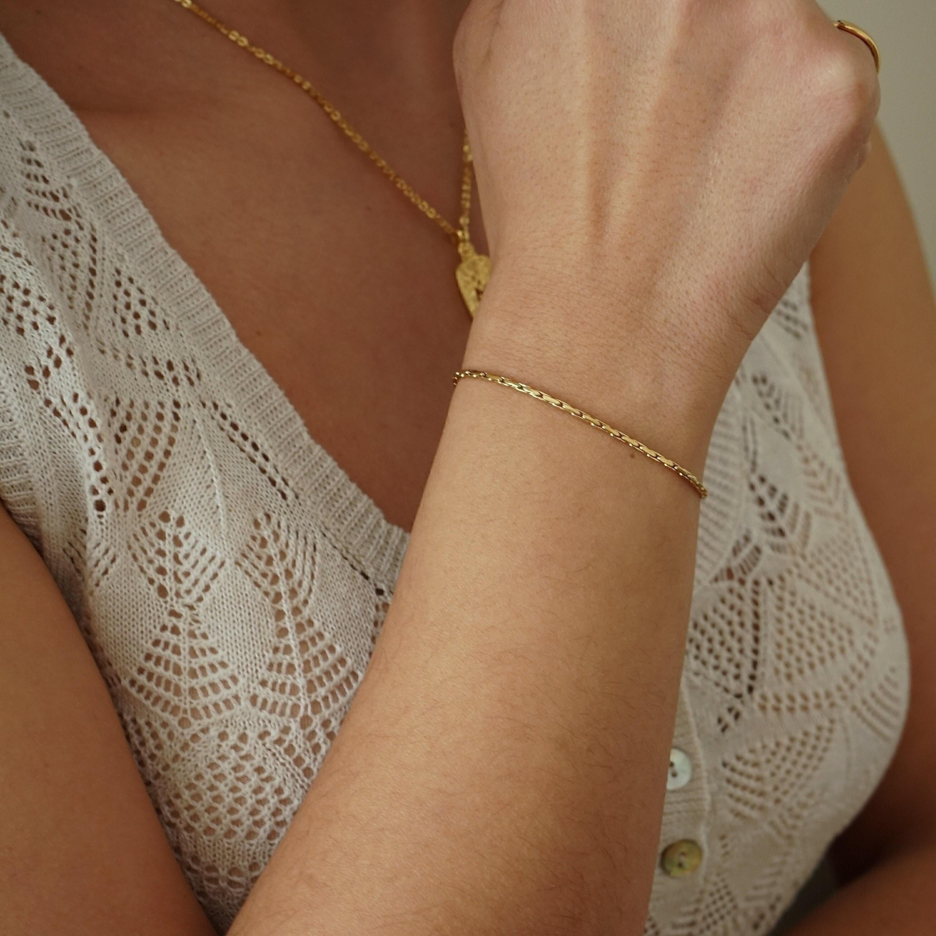 An elegant and timeless addition to any jewelry collection, the Gold Cobra Chain Bracelet offers a sleek and polished design that effortlessly elevates any style, day or night. Its minimalist charm and versatility make it a perfect match for both casual and formal outfits.