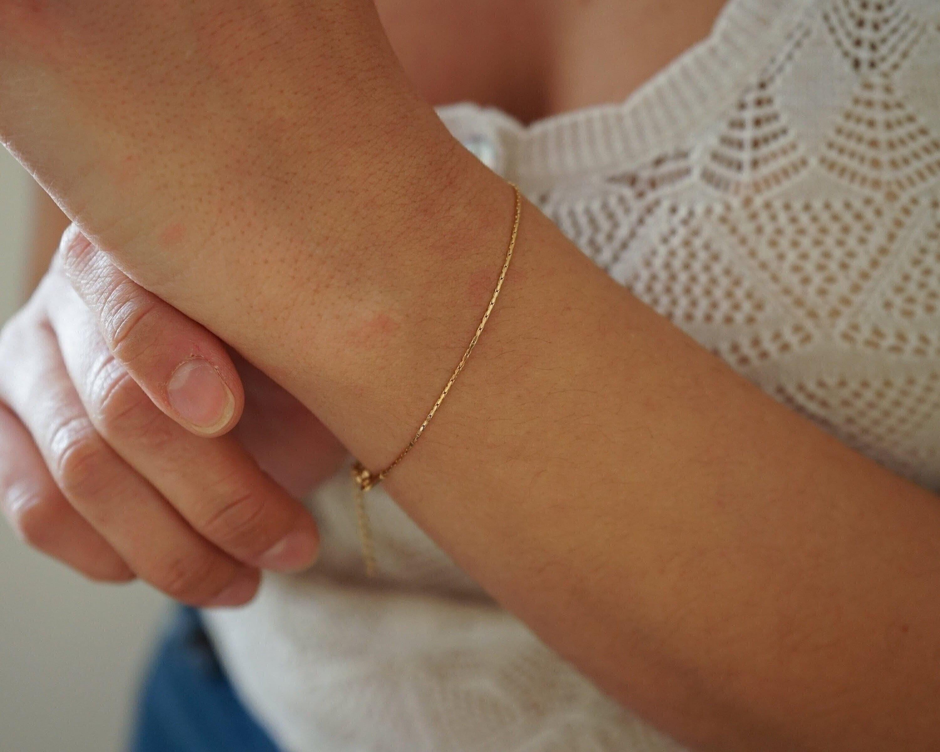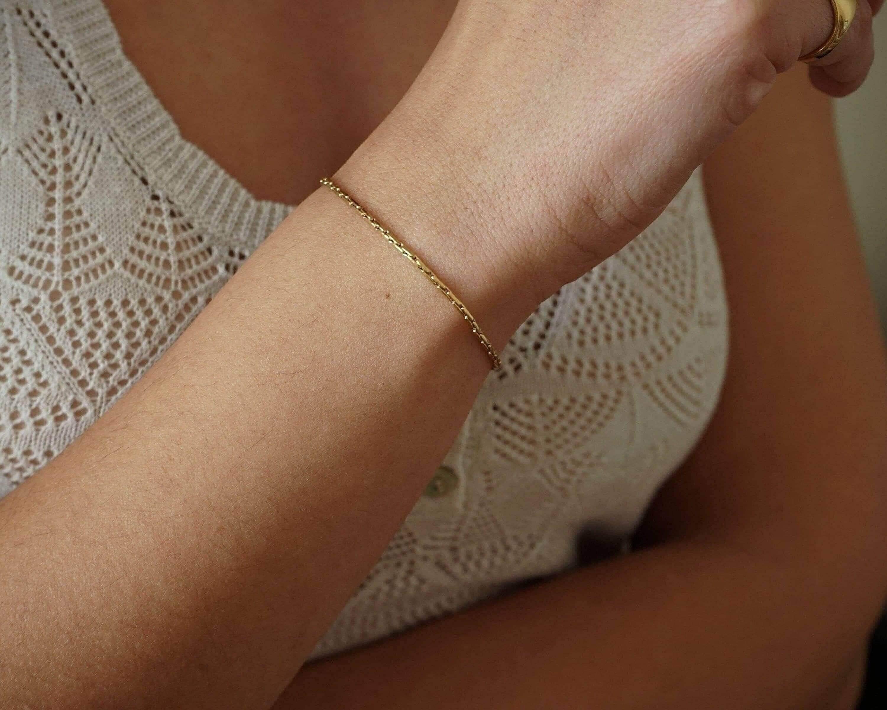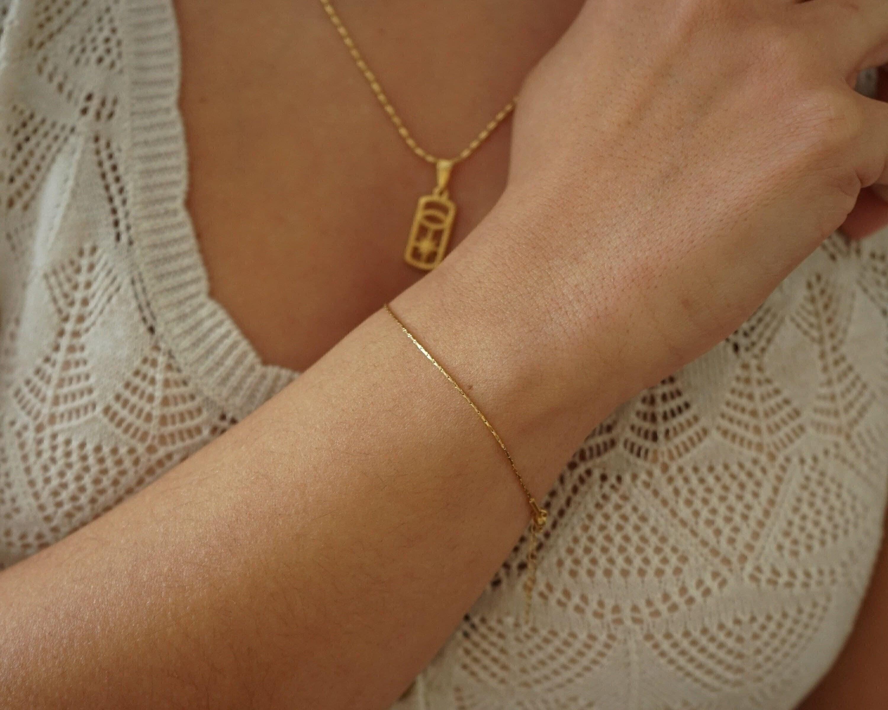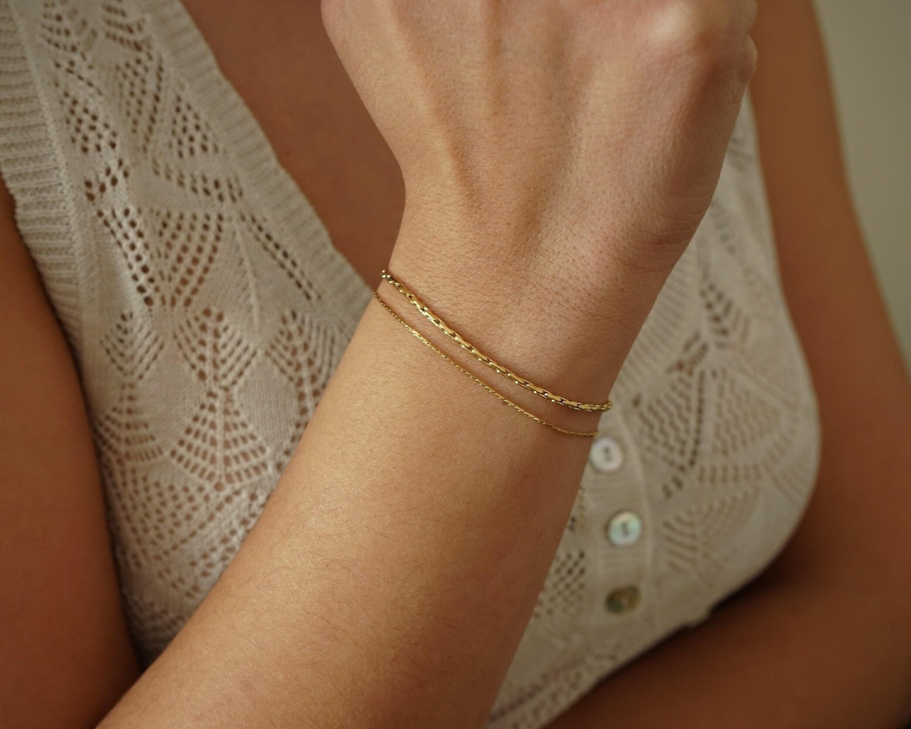 Crafted from durable stainless steel, this bracelet is waterproof and tarnish-free, ensuring it maintains its brilliance over time. The adjustable chain allows for a customized fit, with sizes ranging from 6.69 inches (17 cm) to 7.87 inches (20 cm). Available in two widths—0.03 inches and 0.06 inches—this bracelet is designed to fit all wrist sizes comfortably.