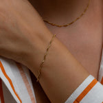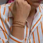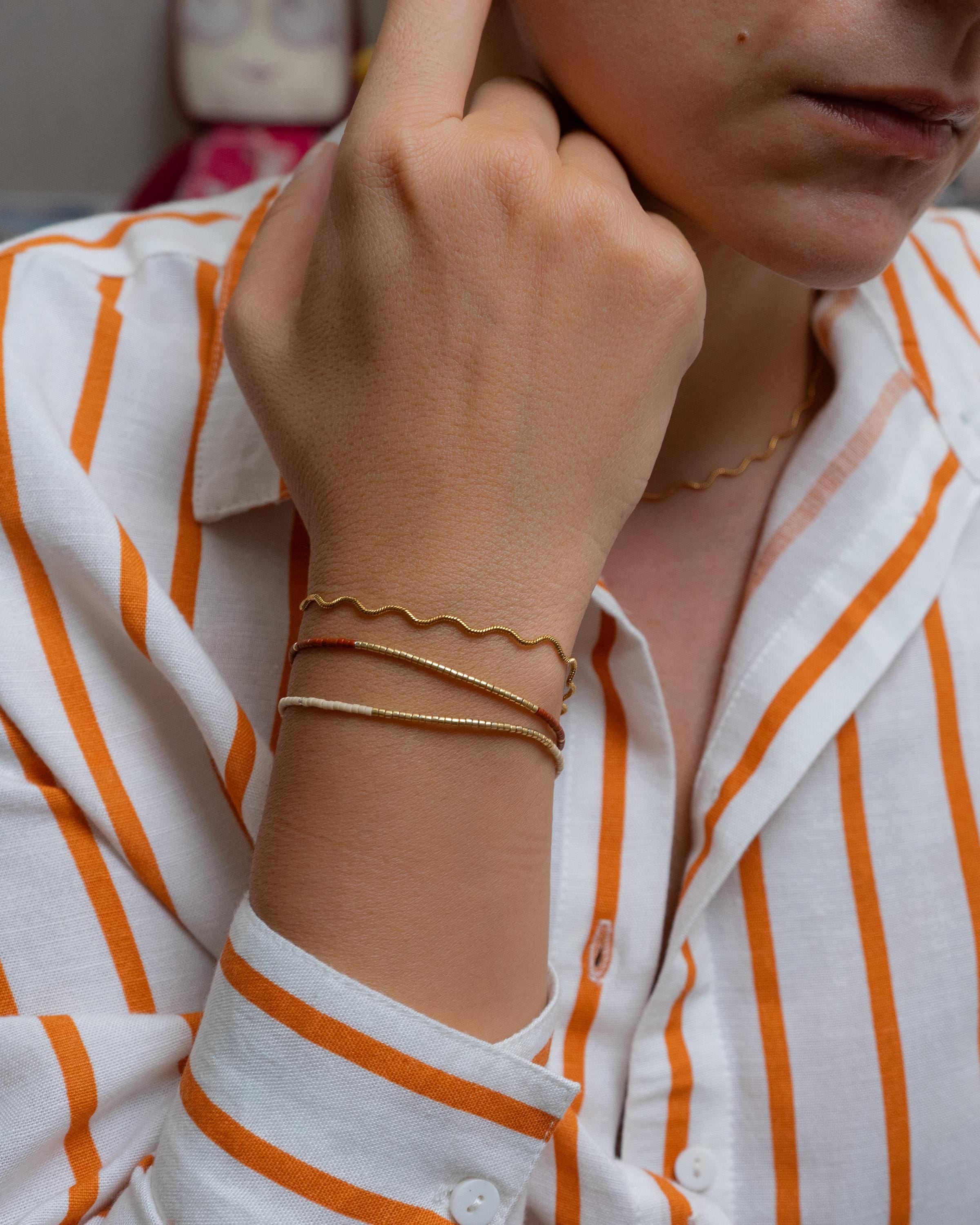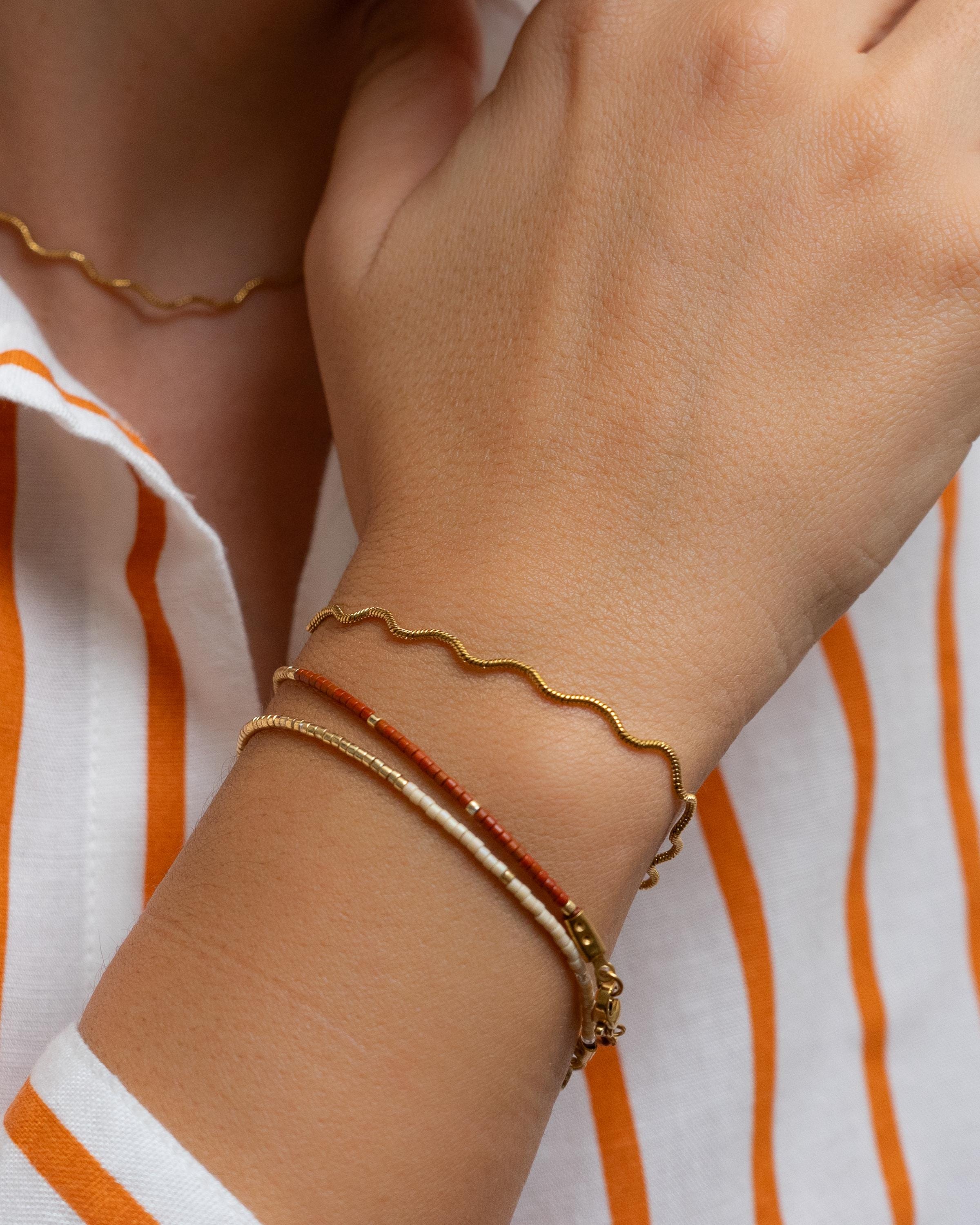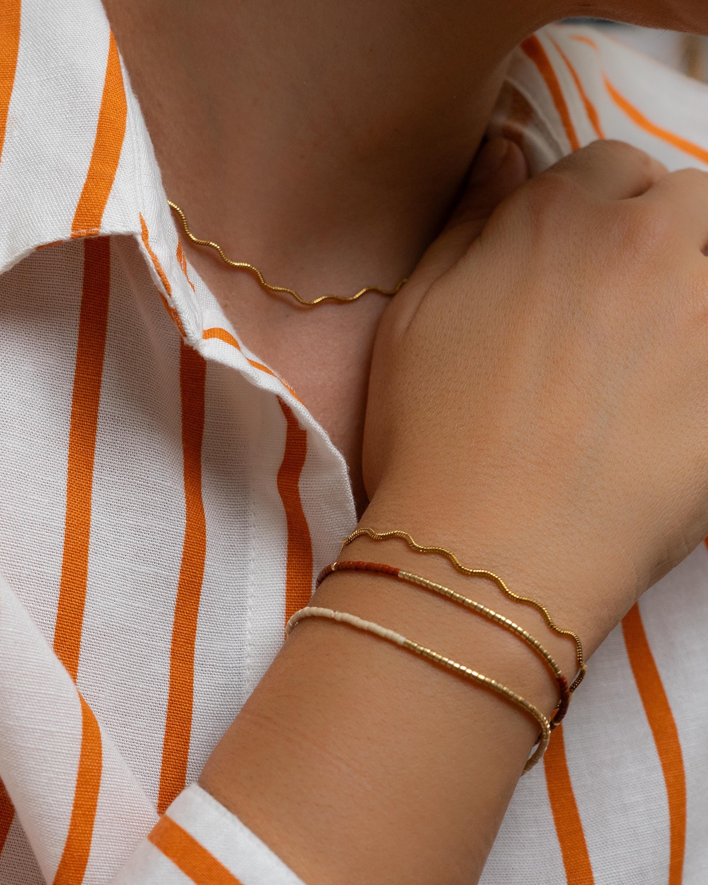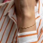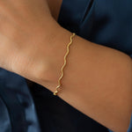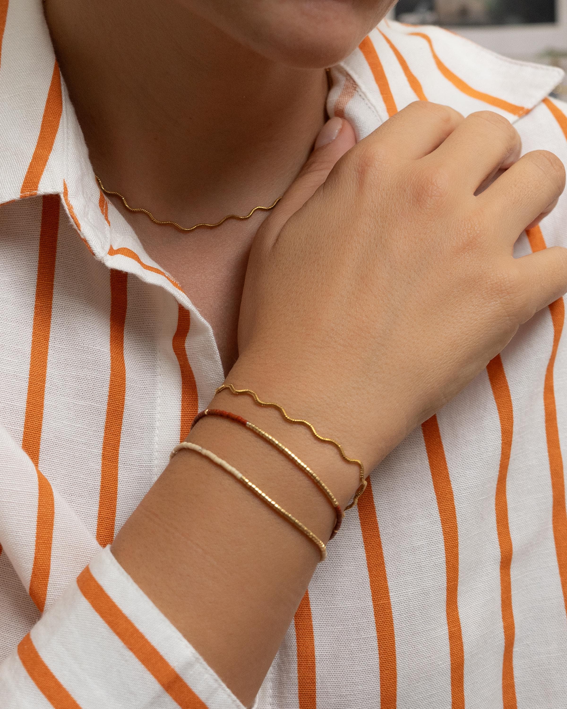 A refined wavy snake chain bracelet crafted from stainless steel with a gold finish. Its slim 1.2 mm design adds a subtle shine while remaining lightweight and comfortable for everyday wear.