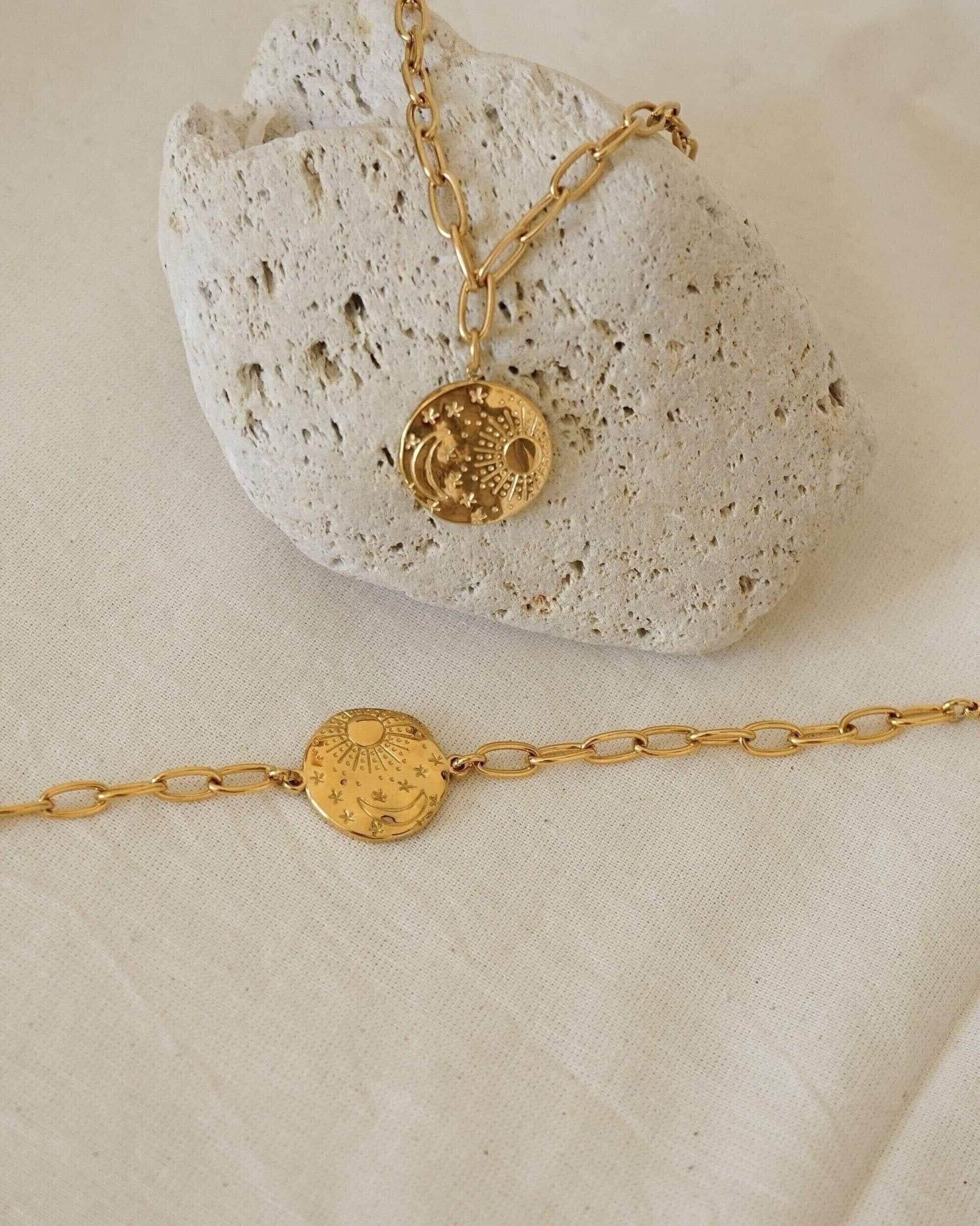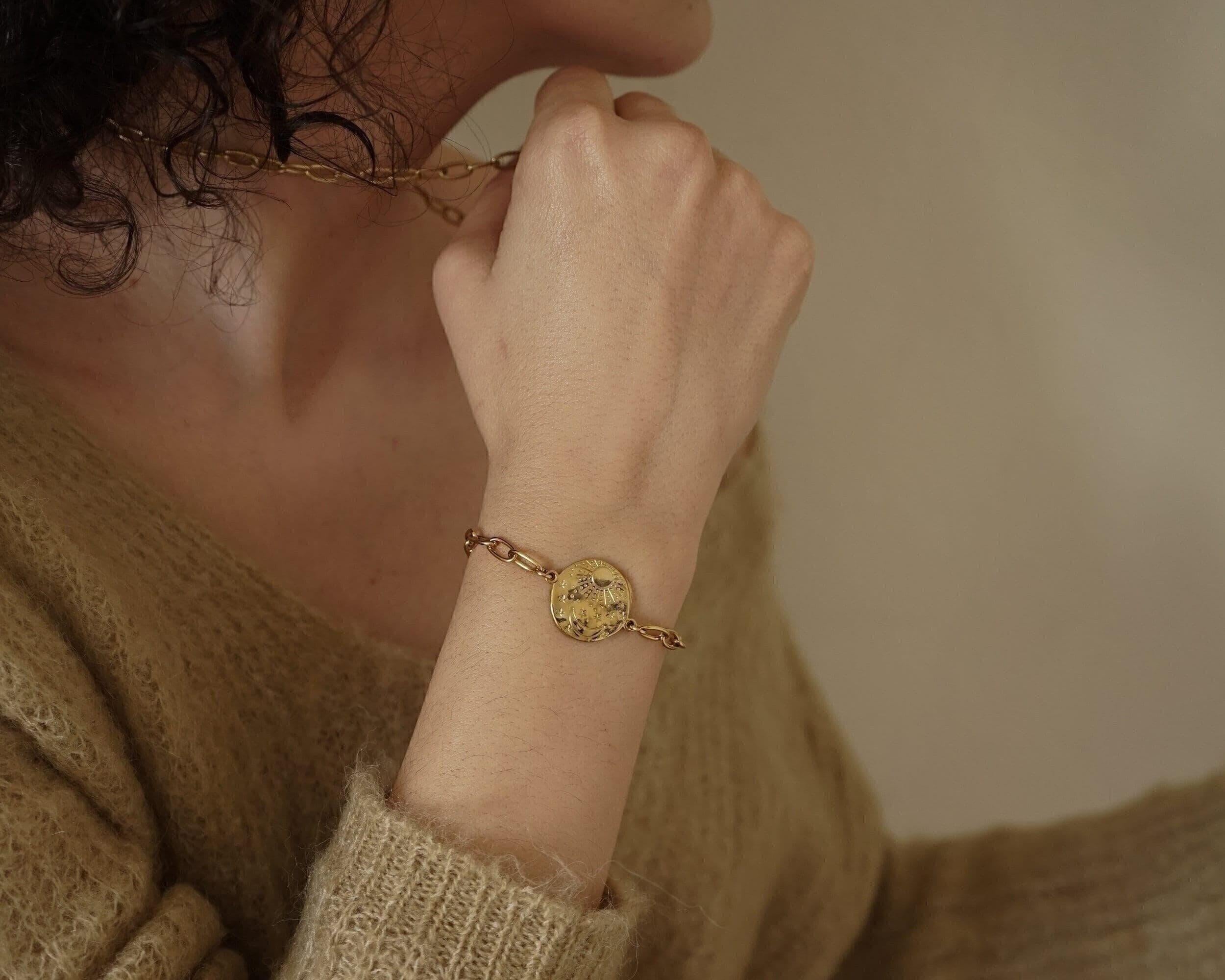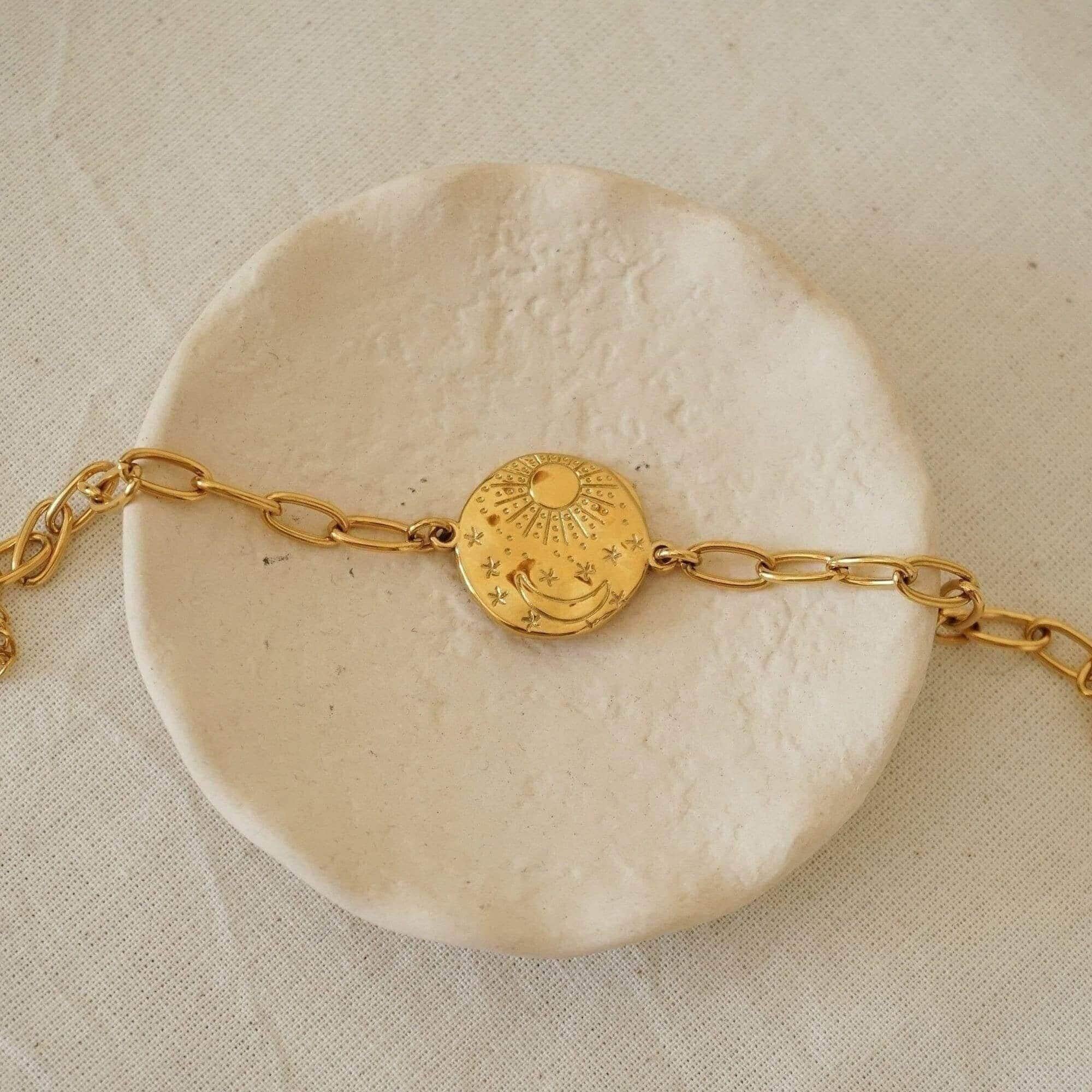 Gold Sun Moon Chain Bracelet