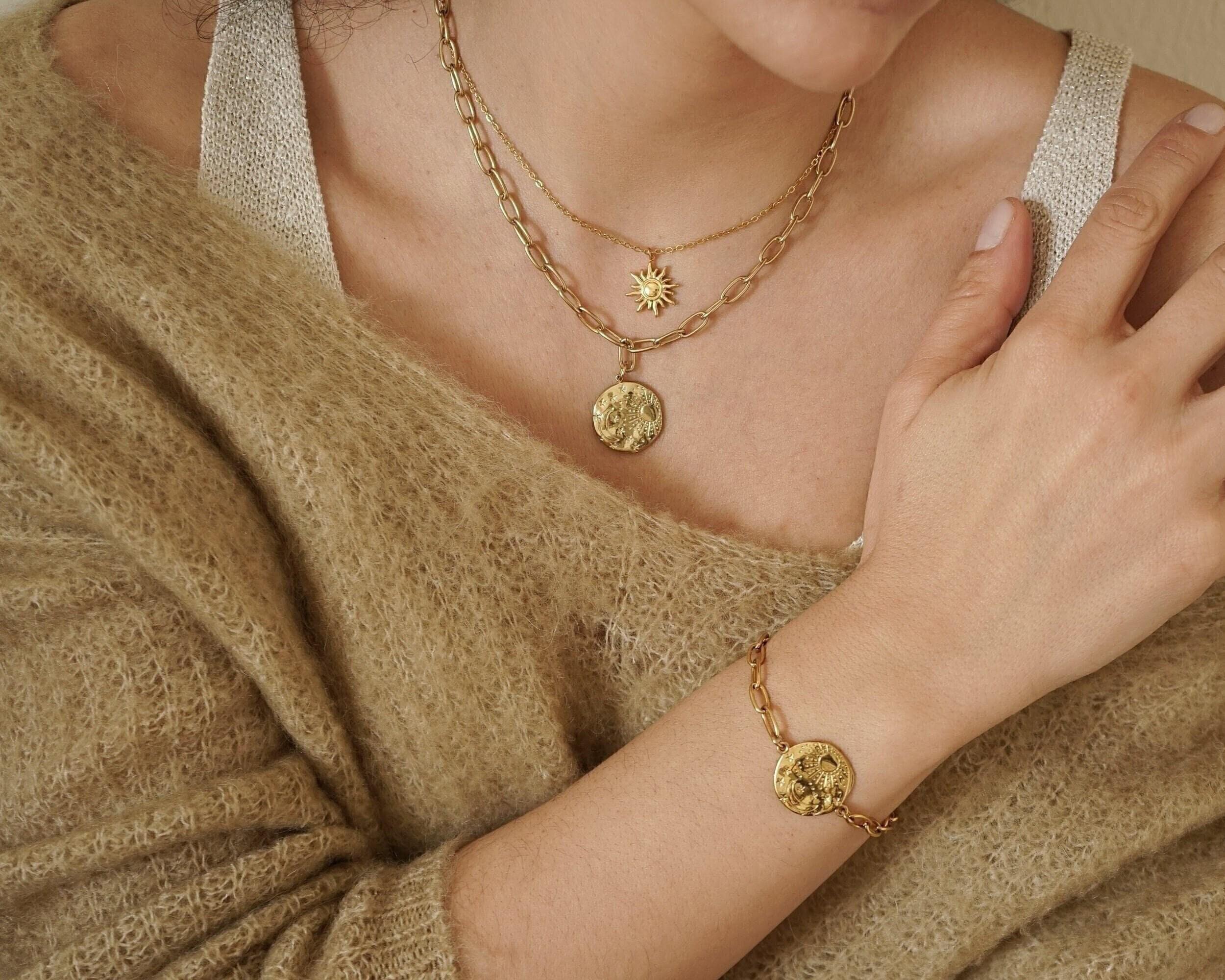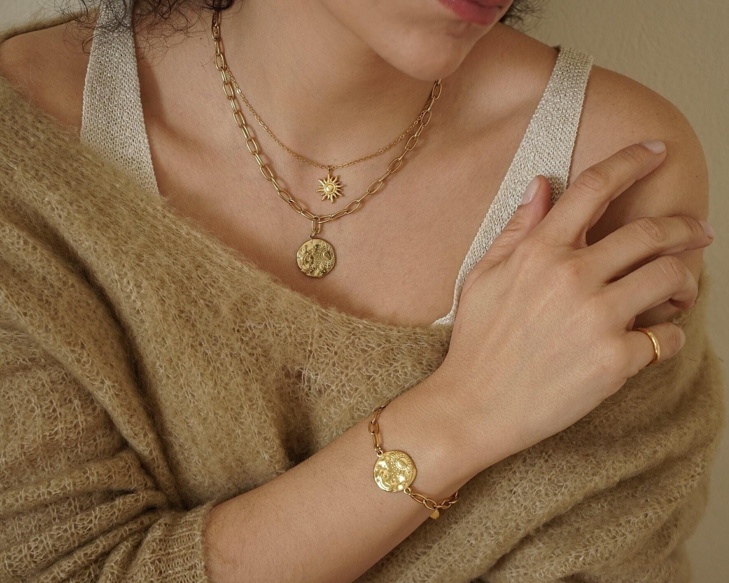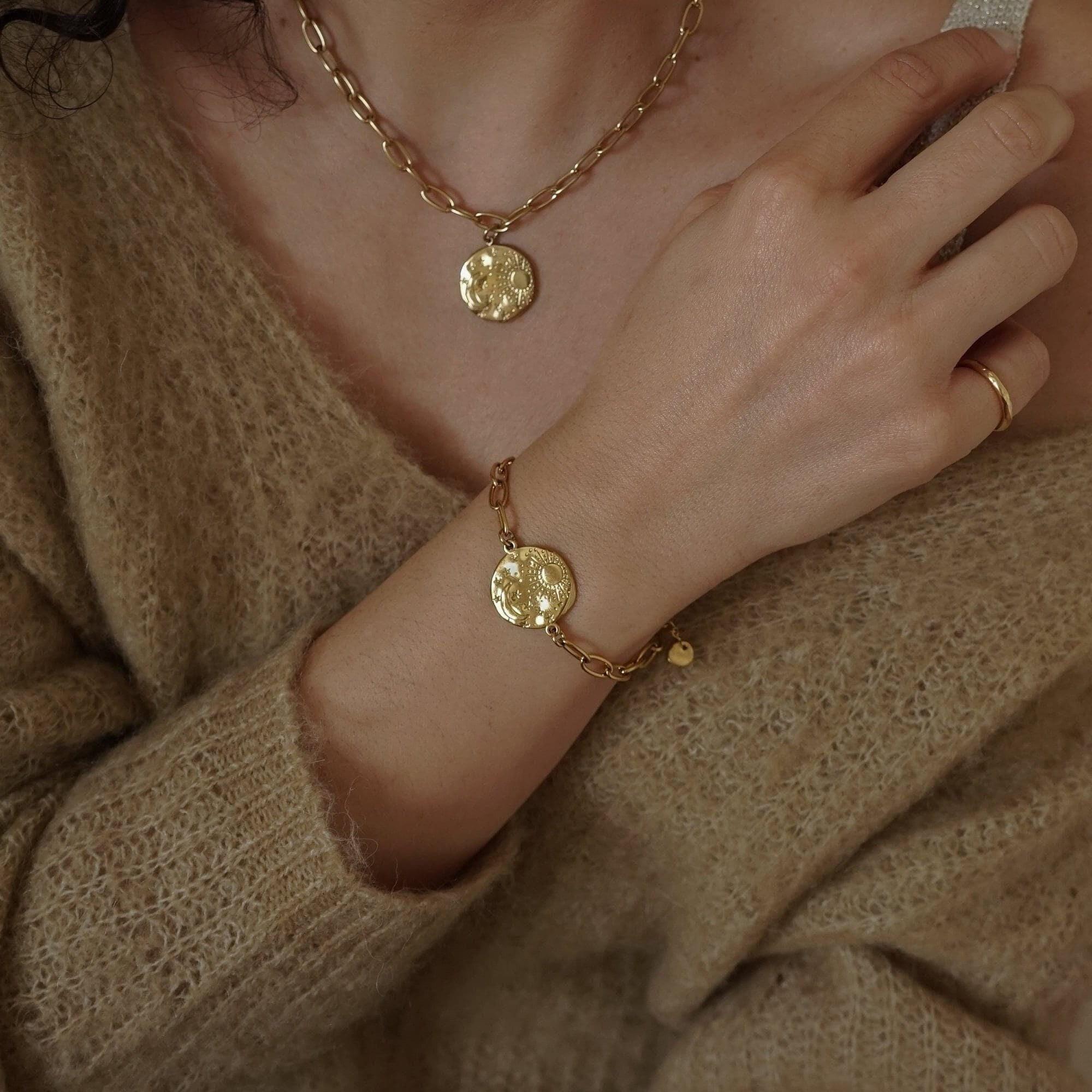 Gold Sun Moon Chain Bracelet
