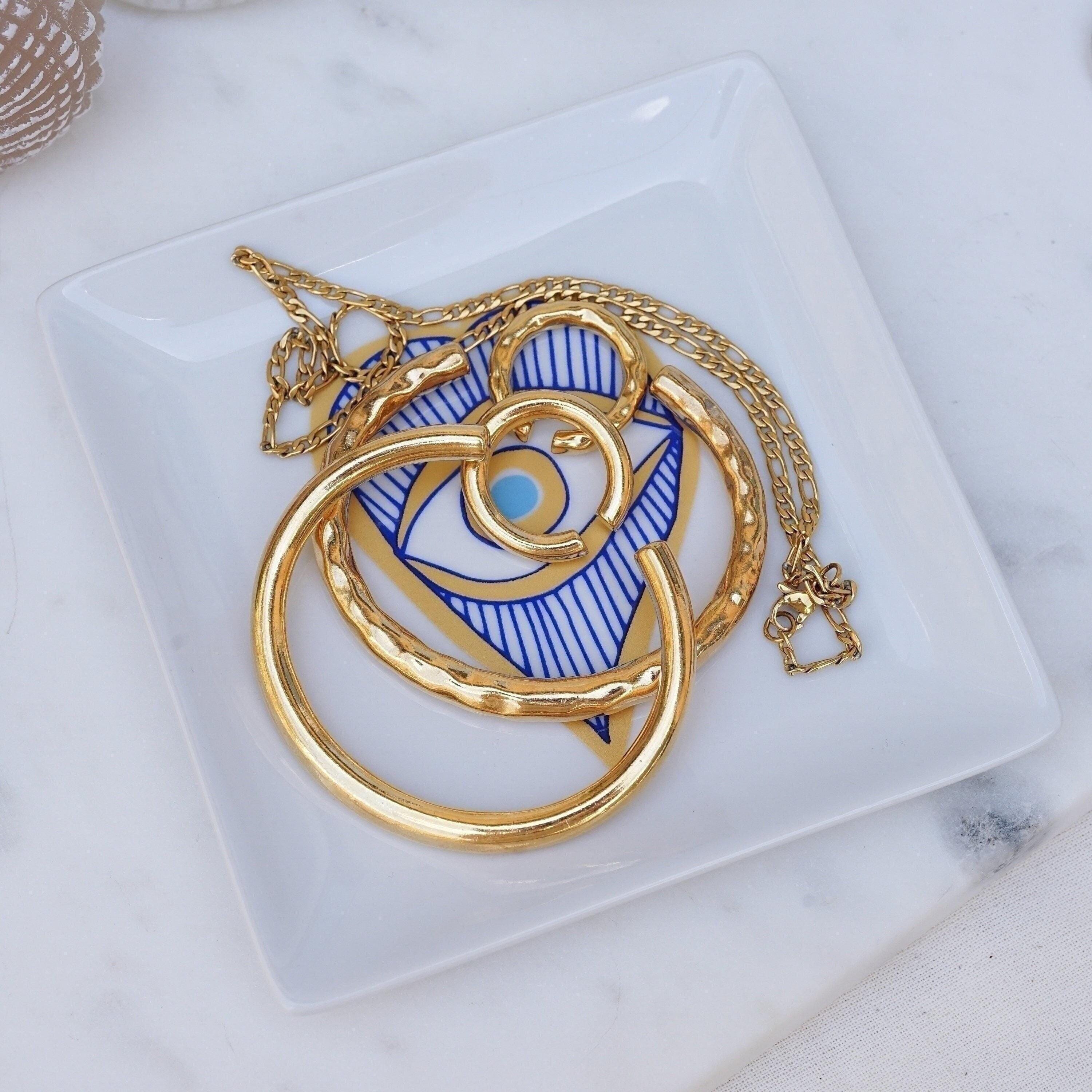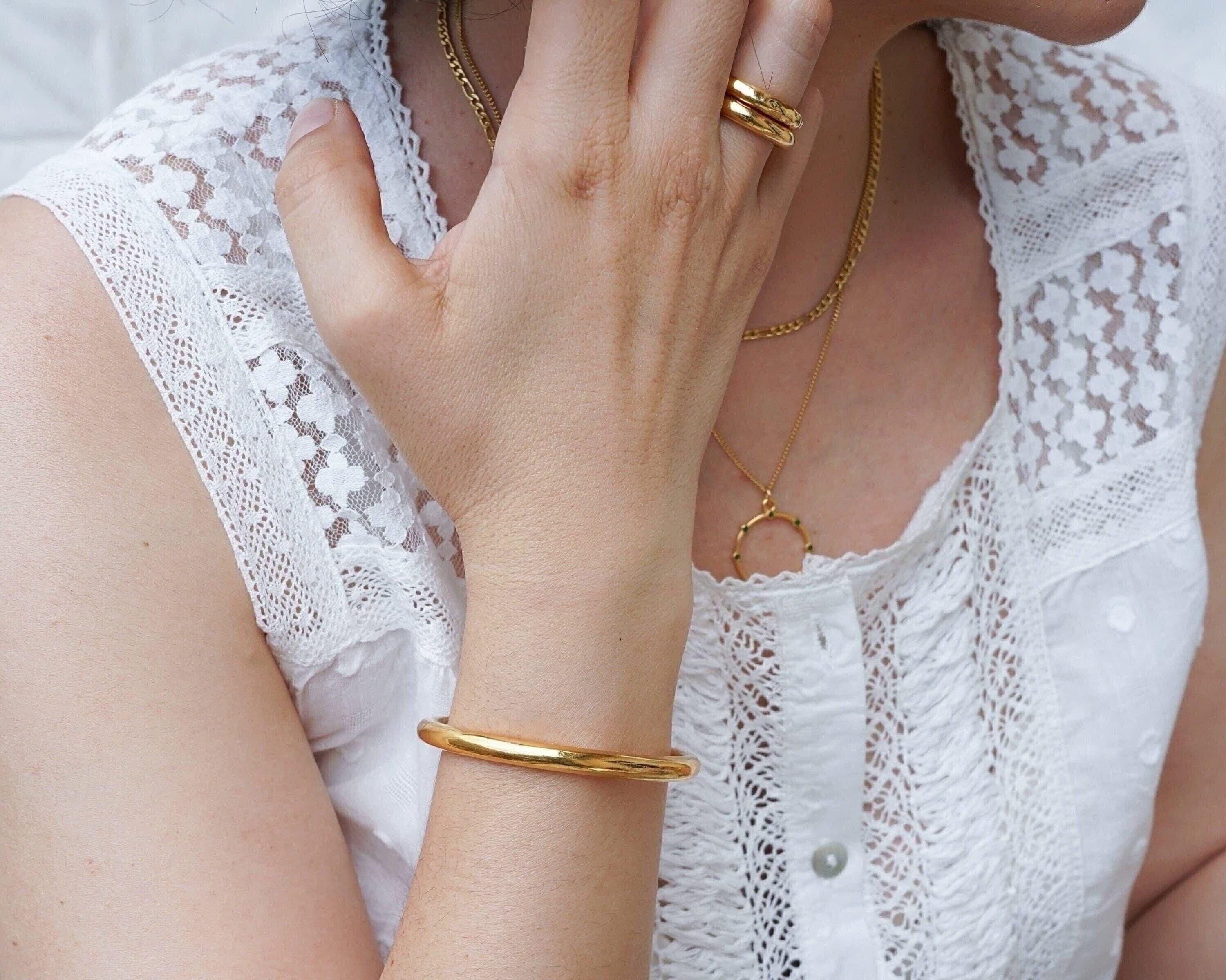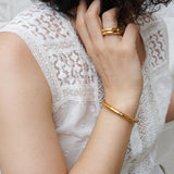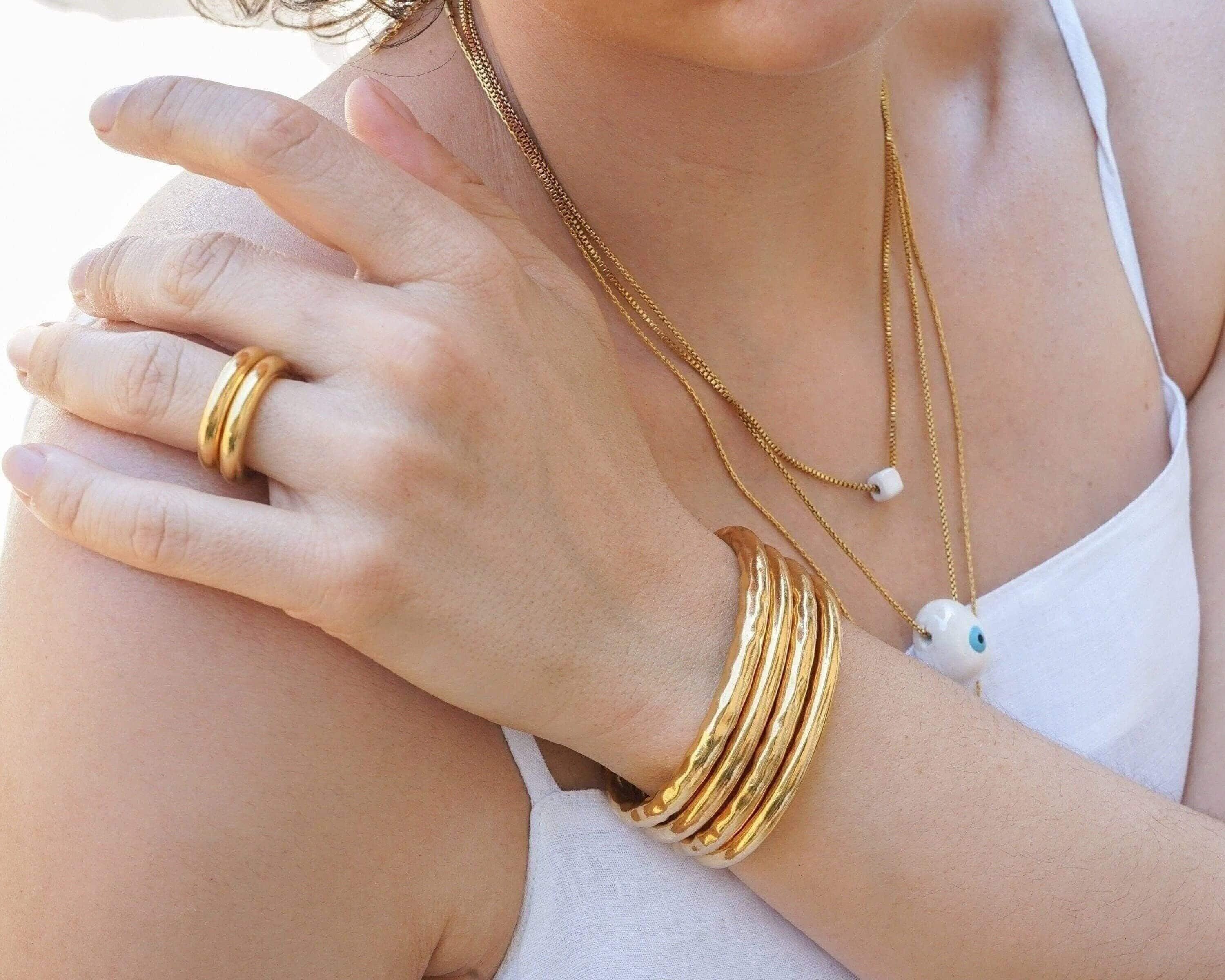 A 24k gold-plated cuff bracelet available in a hammered surface or a simple design. Its versatile style makes it perfect for mixing and matching with other cuffs and bangles. Pair it beautifully with several rings from our collection to create a cohesive and elegant look. Whether worn individually or stacked, this cuff adds a touch of sophistication to any outfit.