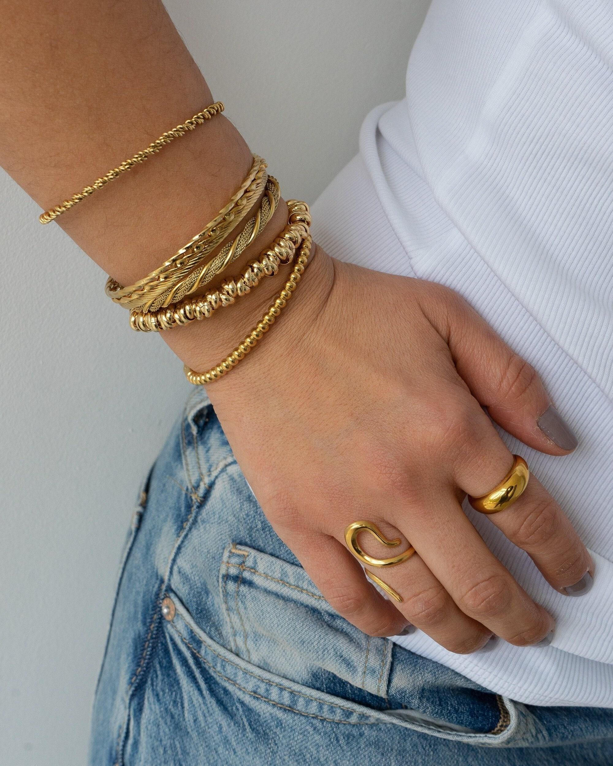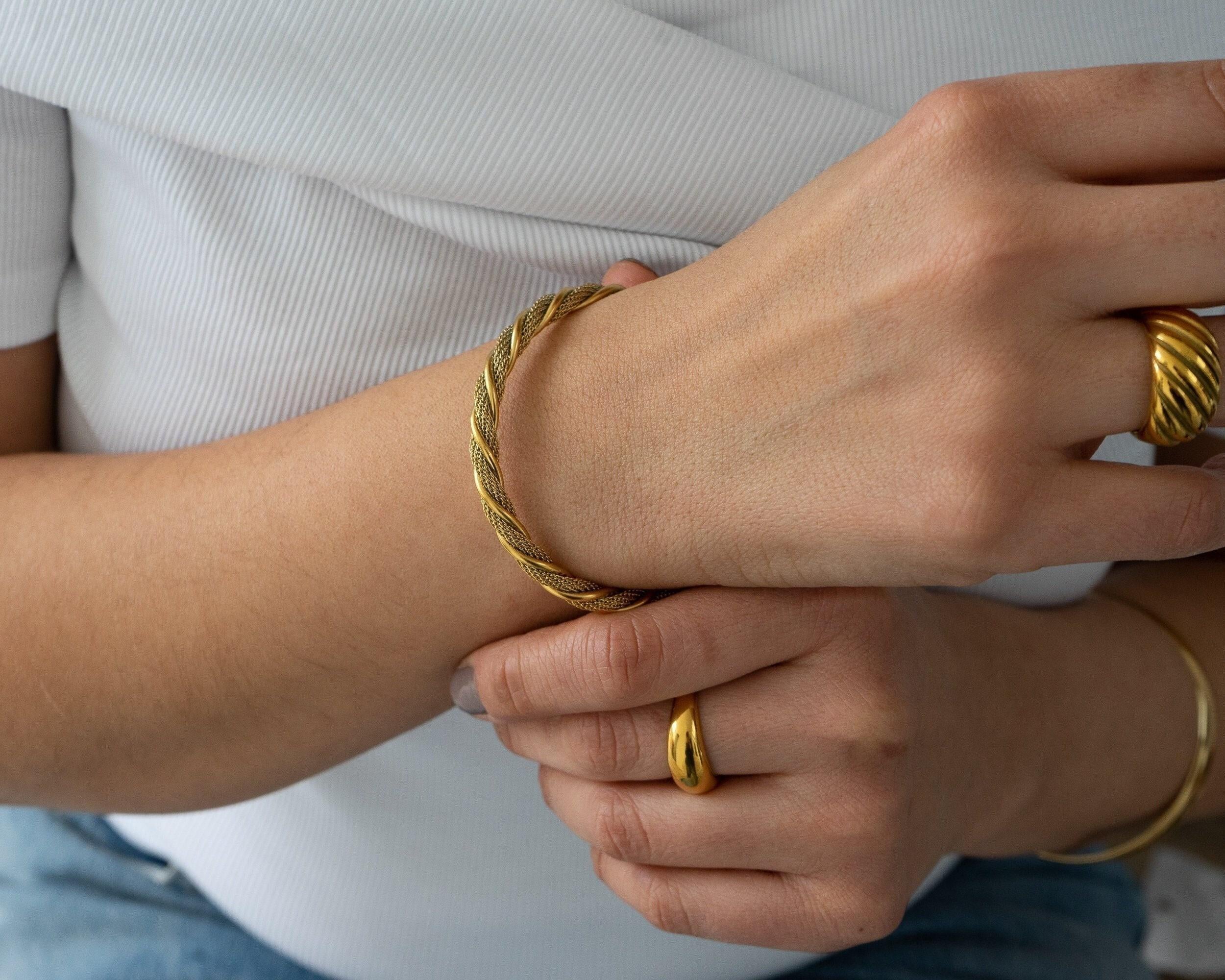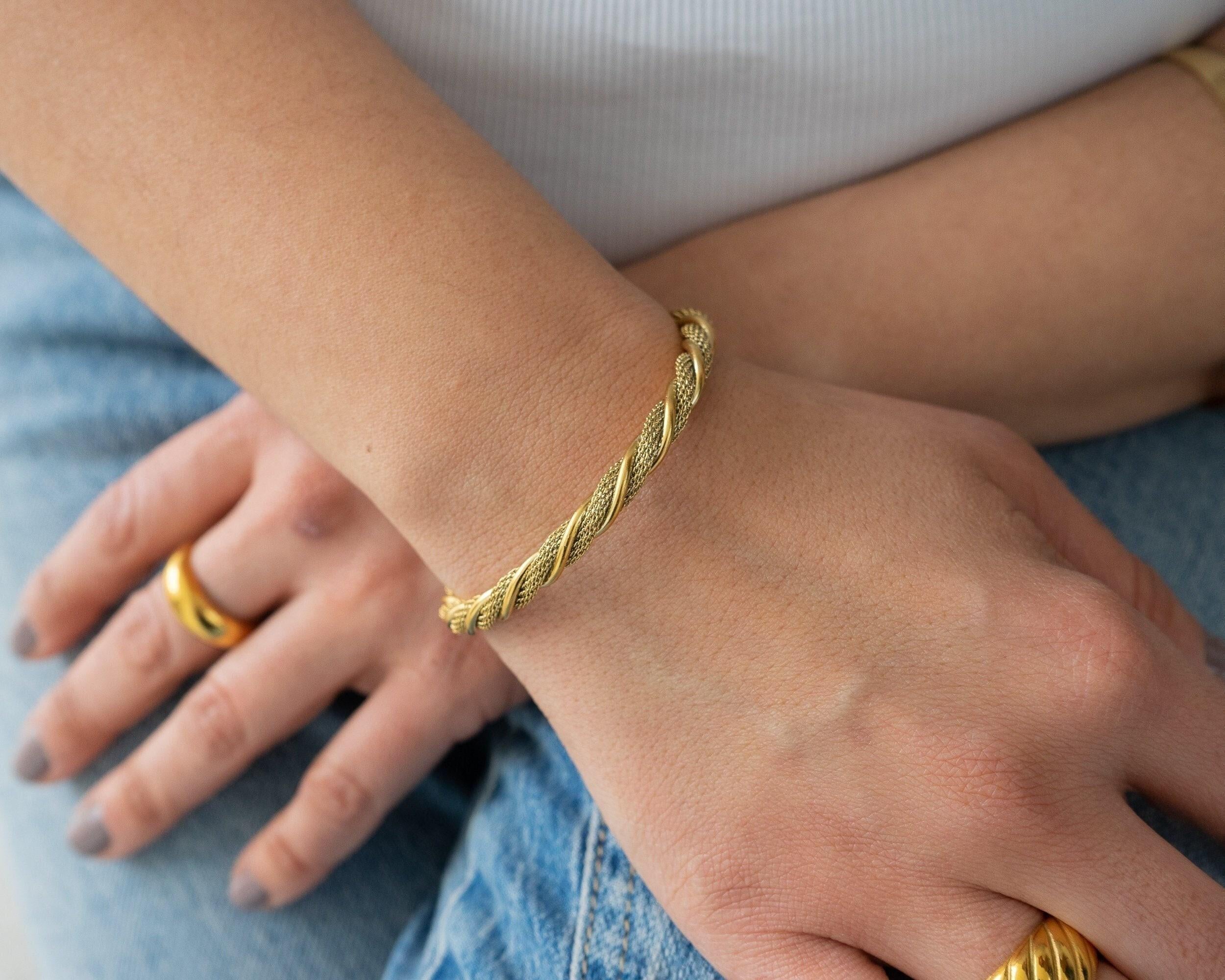 This beautiful dainty bracelet features a timeless twisted rope design, combining elegance with versatility. Made from durable stainless steel, it is both waterproof and tarnish-free, ensuring it maintains its shine and quality for everyday wear.