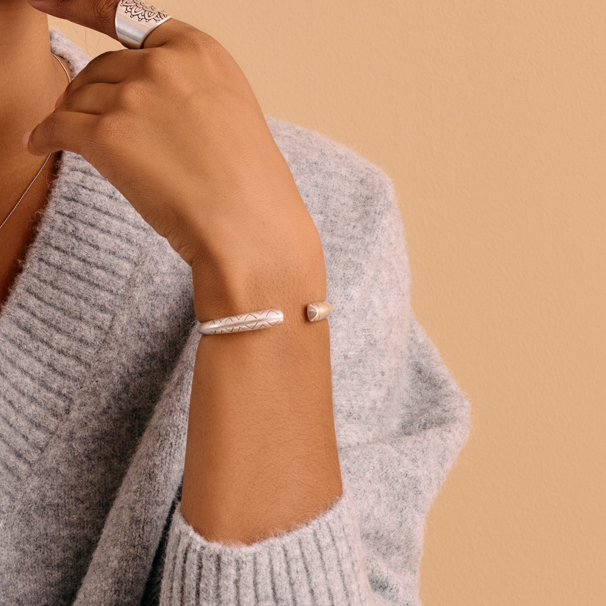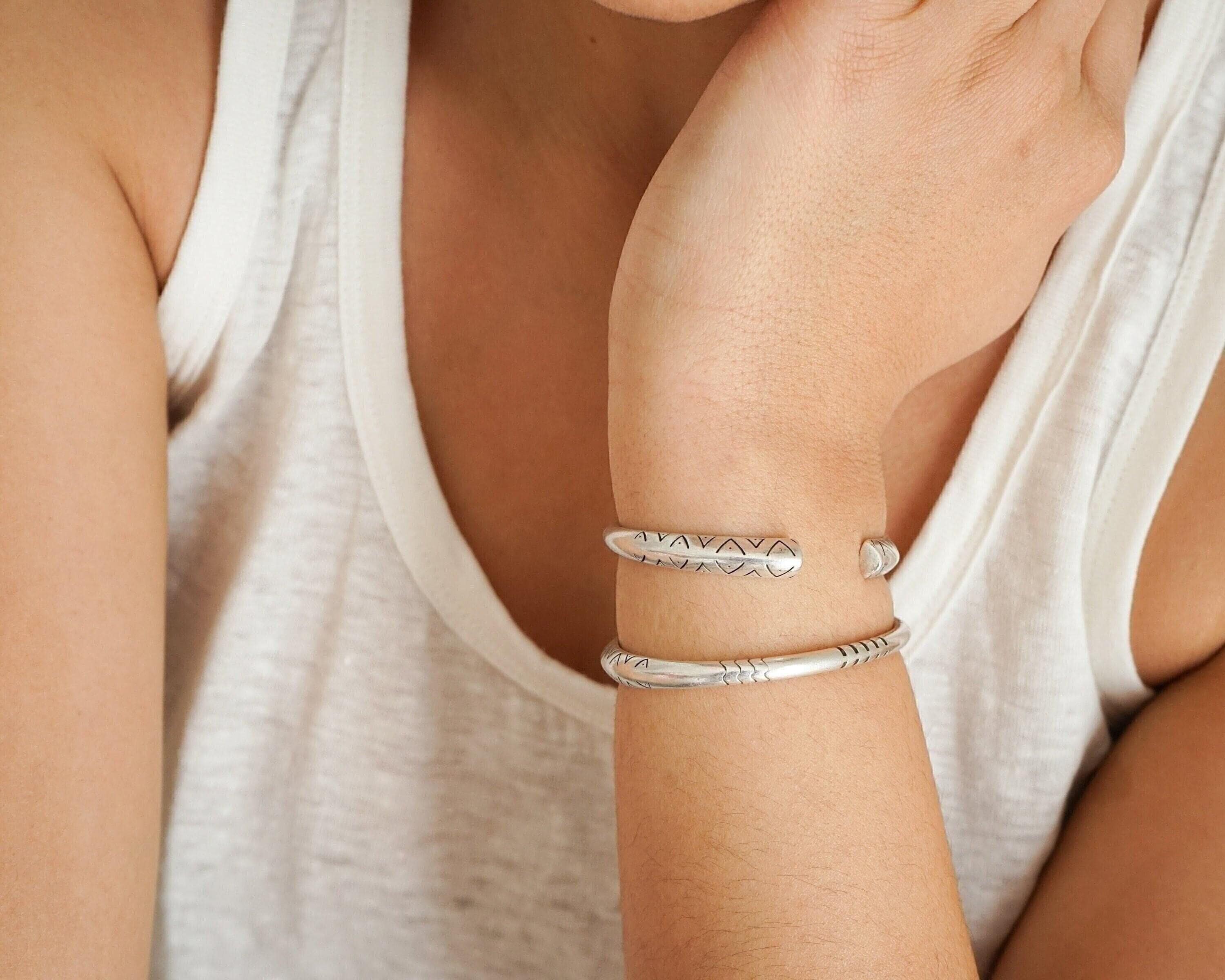 Perfect for mixing and matching with other cuffs and bangles, this stylish open cuff is versatile enough to complement both casual and formal outfits. Whether worn solo or as part of a layered stack, it adds a touch of elegance and cultural charm to your jewelry collection.