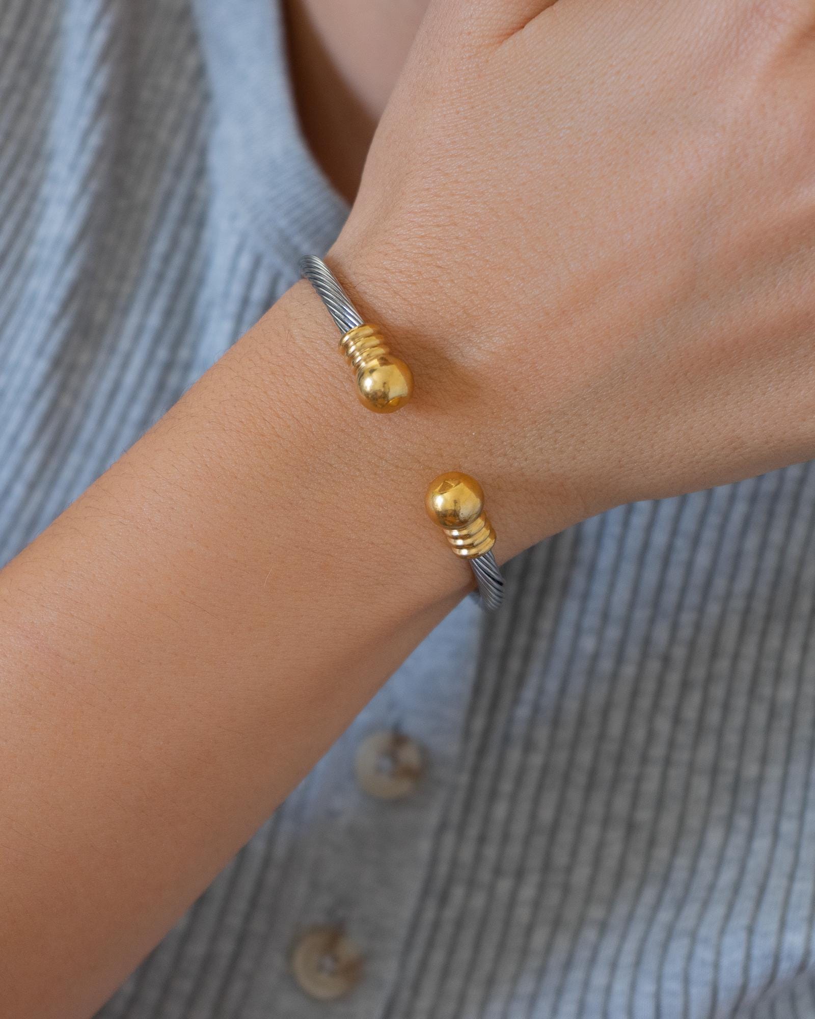 Made from durable stainless steel and waterproof, this bracelet is perfect for everyday wear. Its versatile design allows it to be effortlessly mixed and matched with other cuffs and bangles, making it a must-have addition to your jewelry collection.