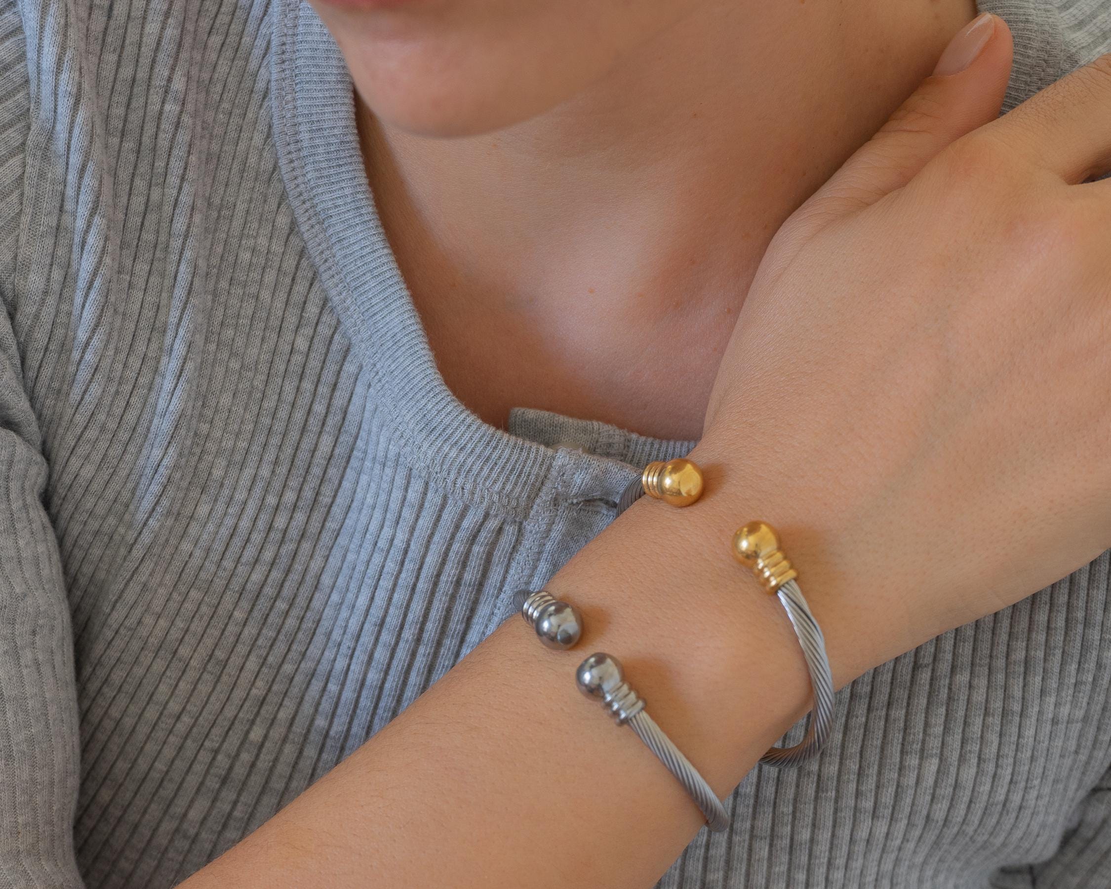 The Classic Cable Cuff Bracelet is a timeless piece that embodies elegance and simplicity. Available in two stunning colors, this dainty bracelet features a twisted rope design that adds a sophisticated touch to any outfit.