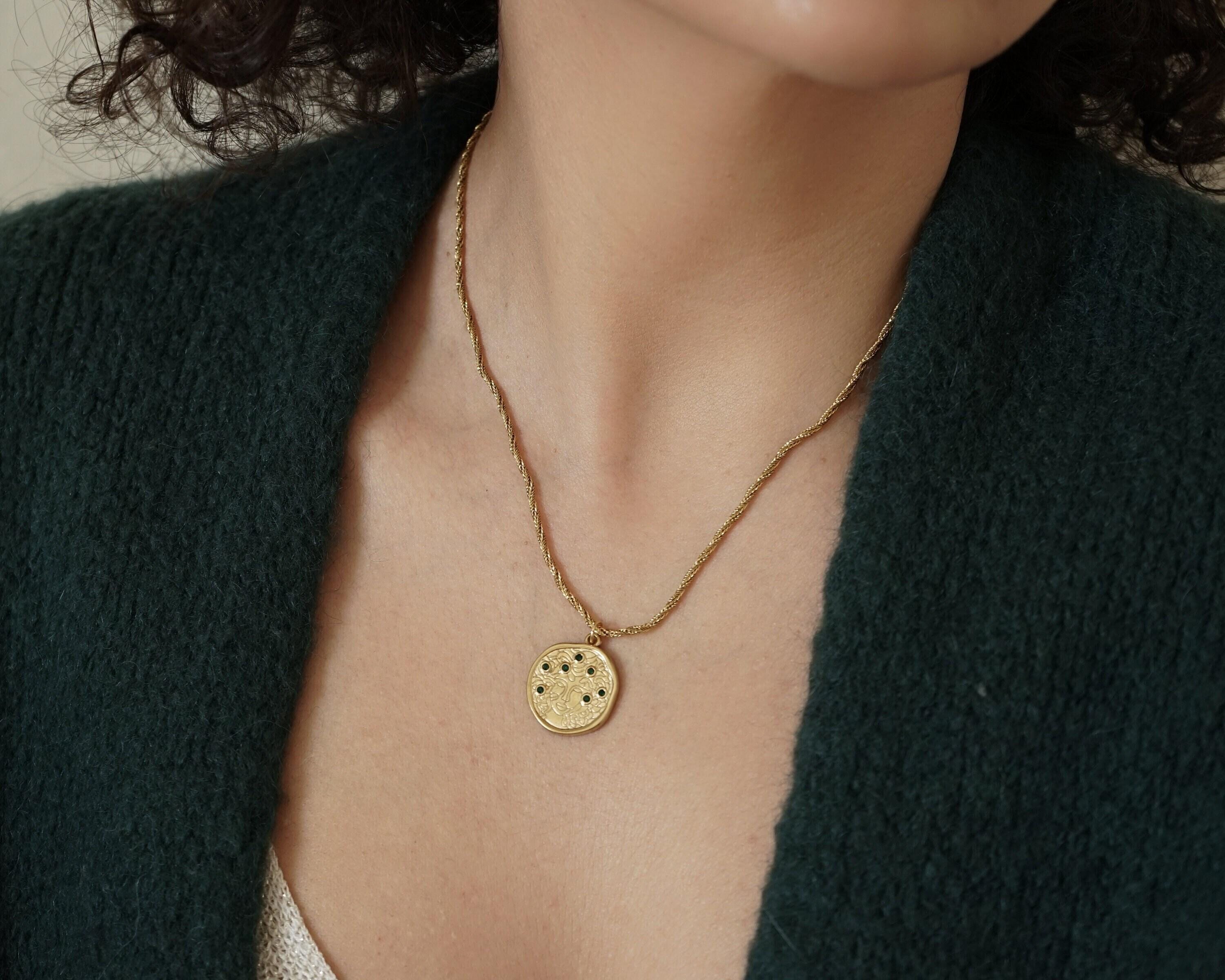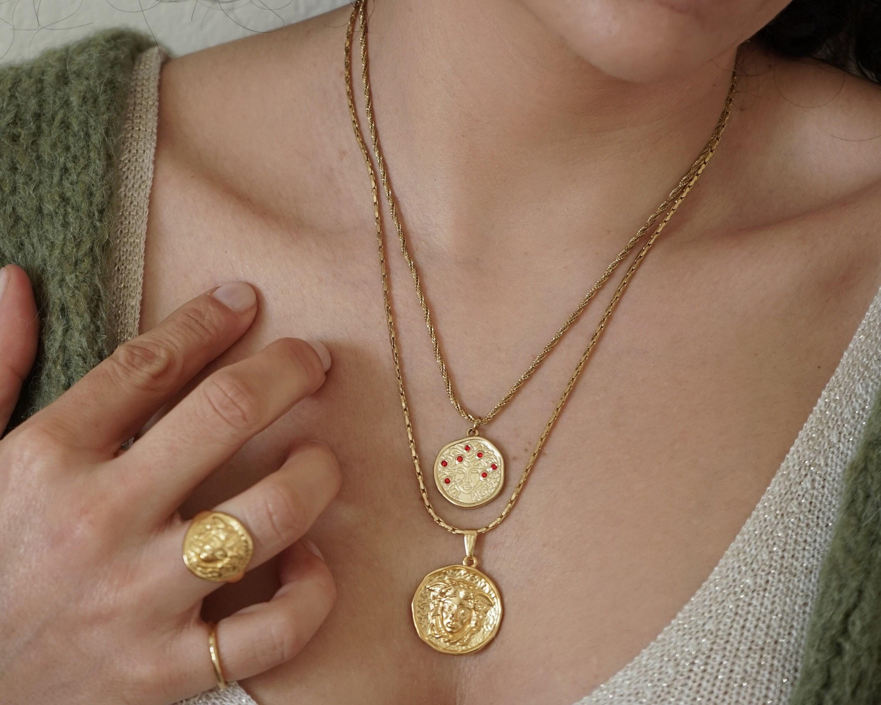 Embrace the blend of myth and style with this exquisite necklace, perfect for enhancing your jewelry stack.