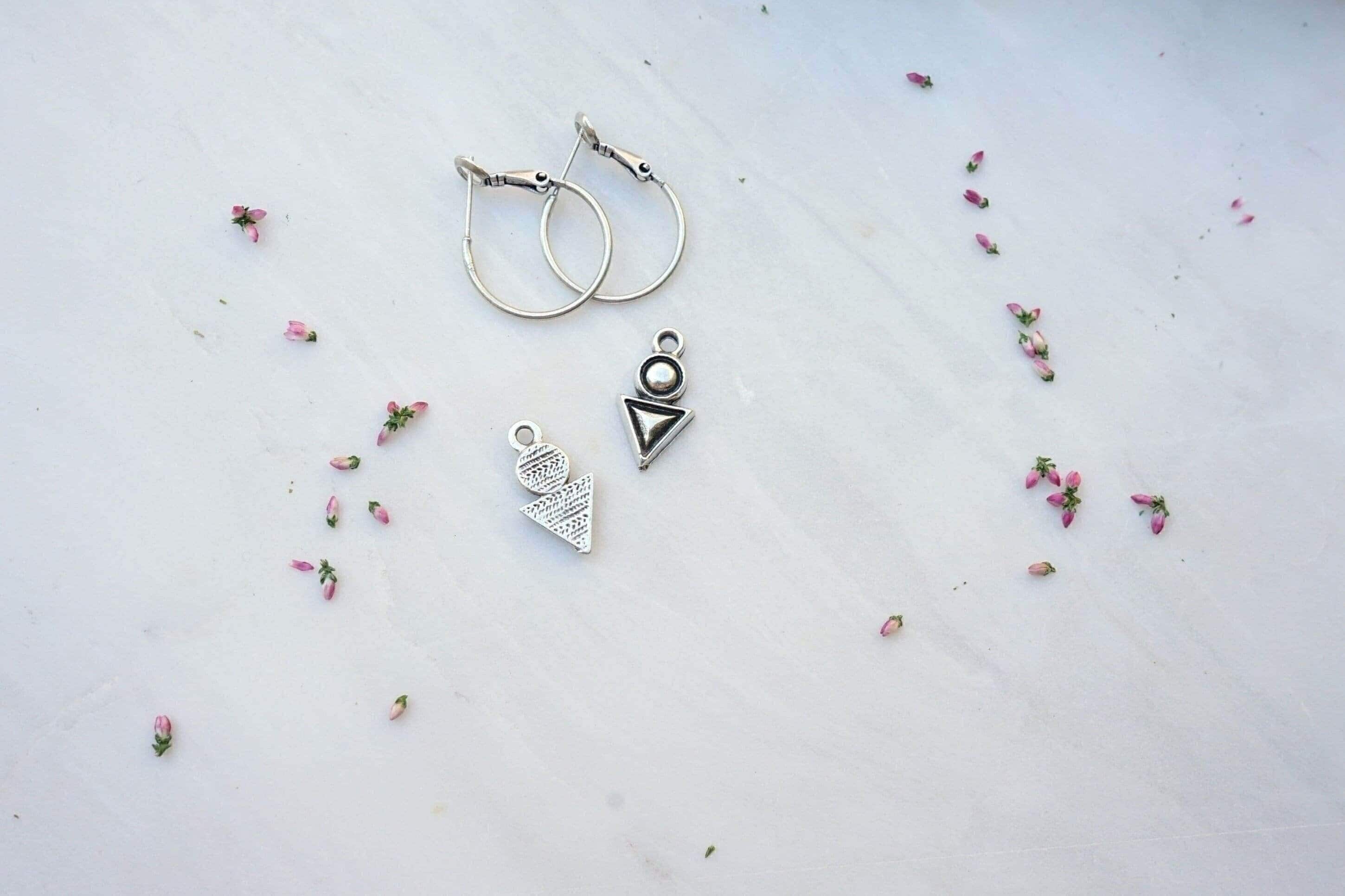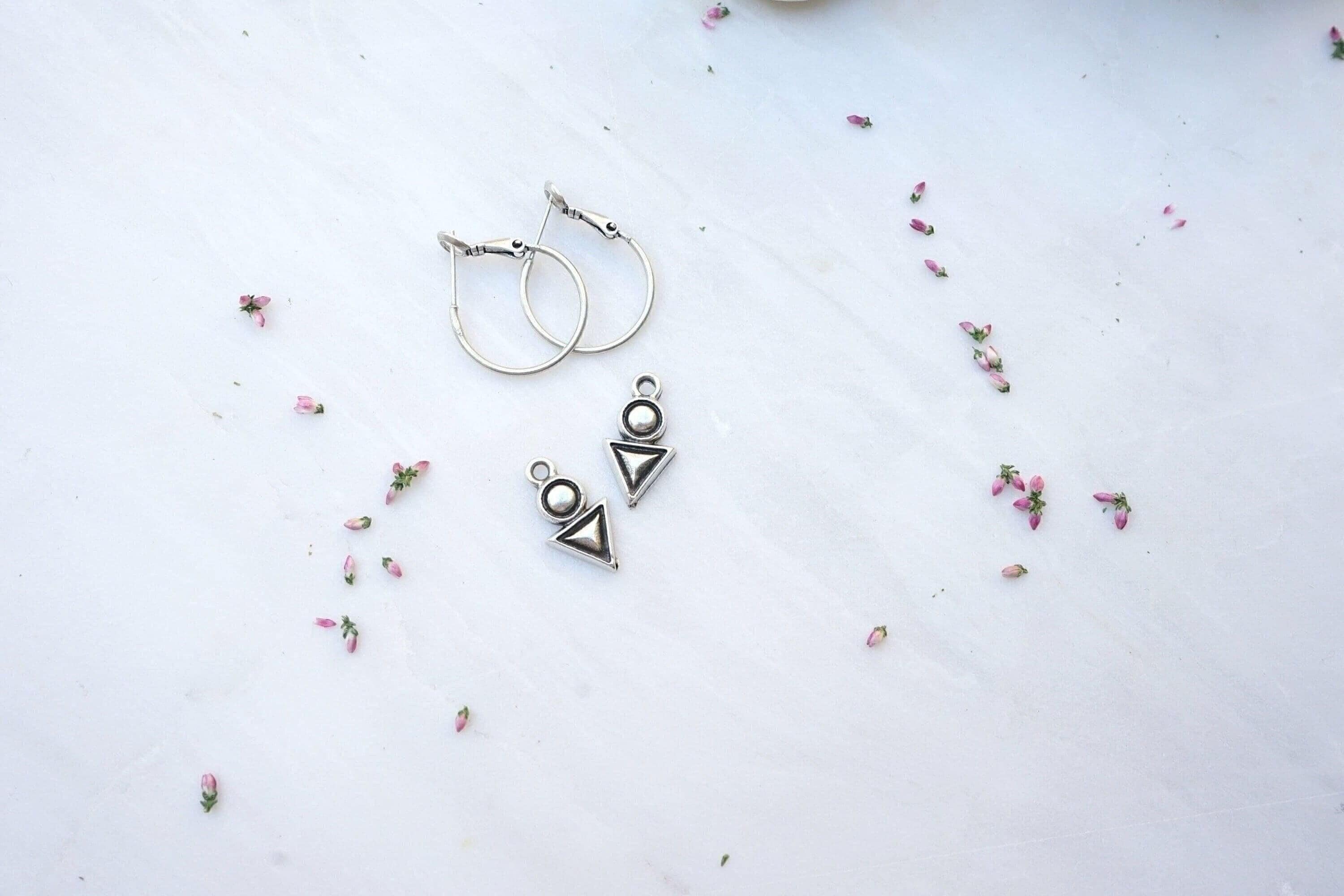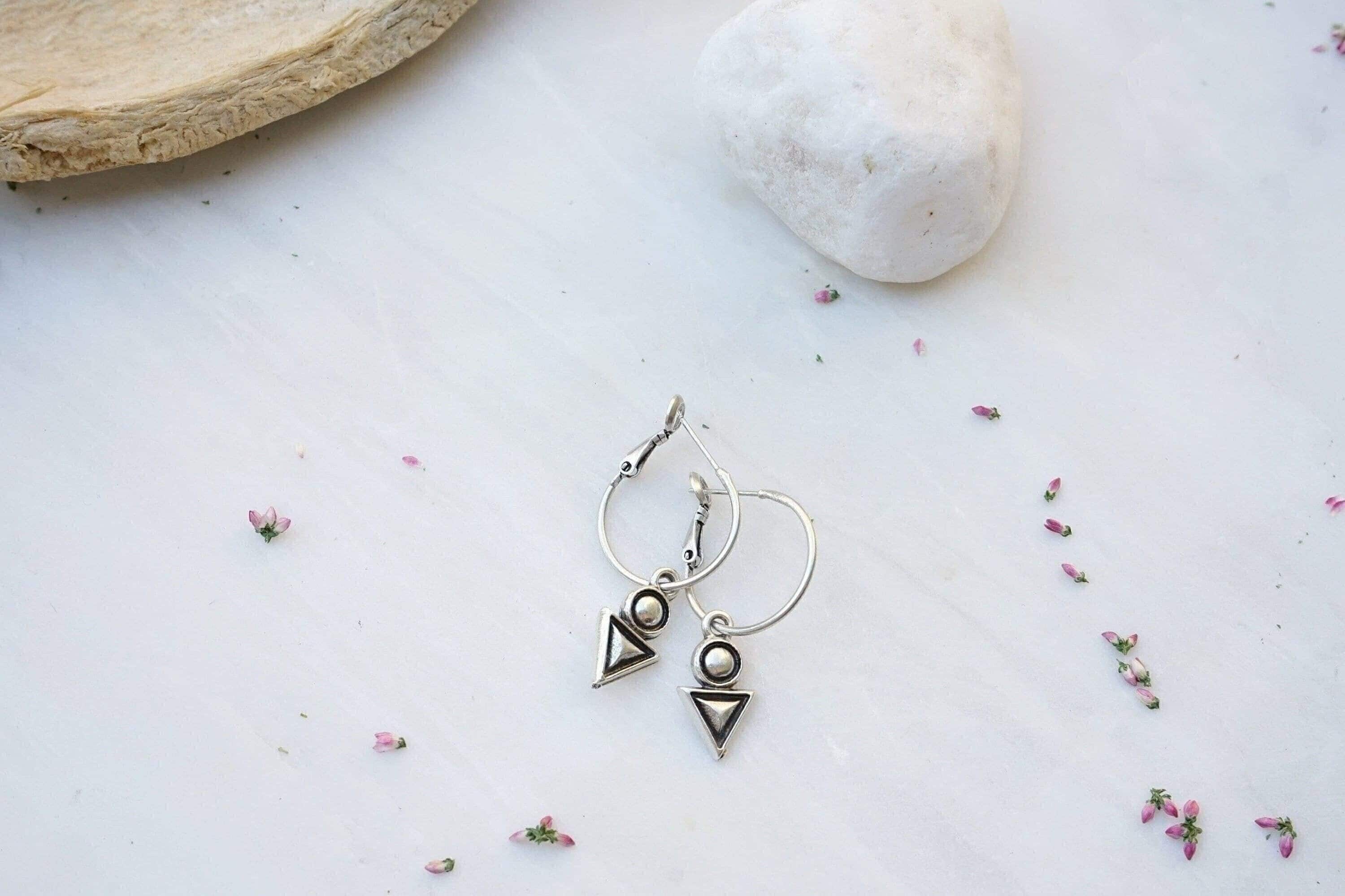 Silver Hoop Earrings with Geometric Charm