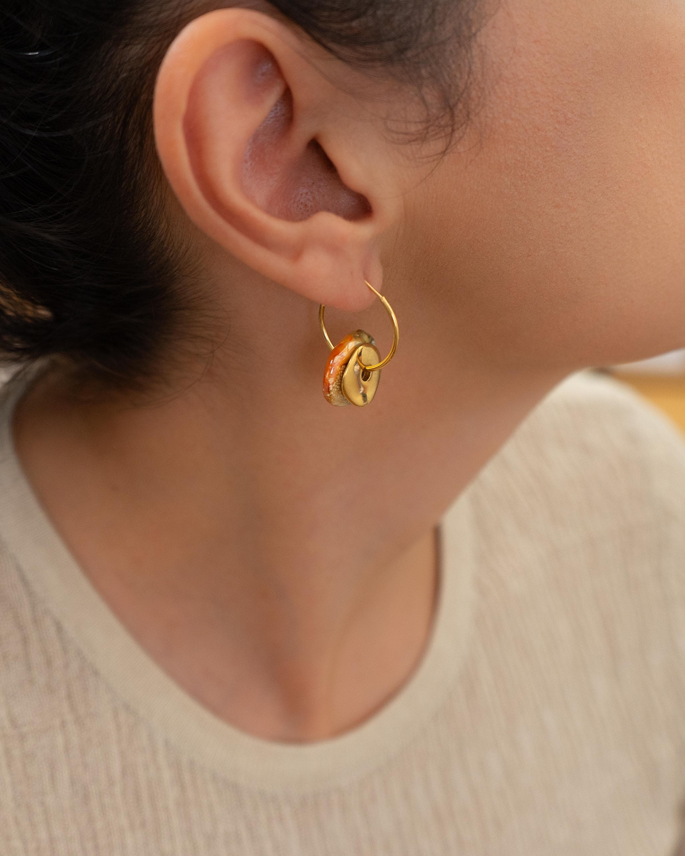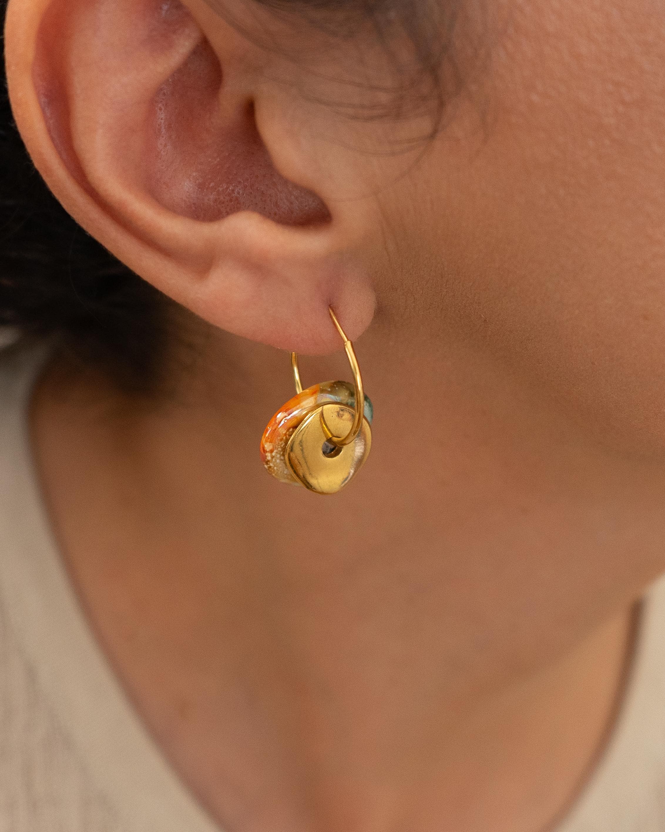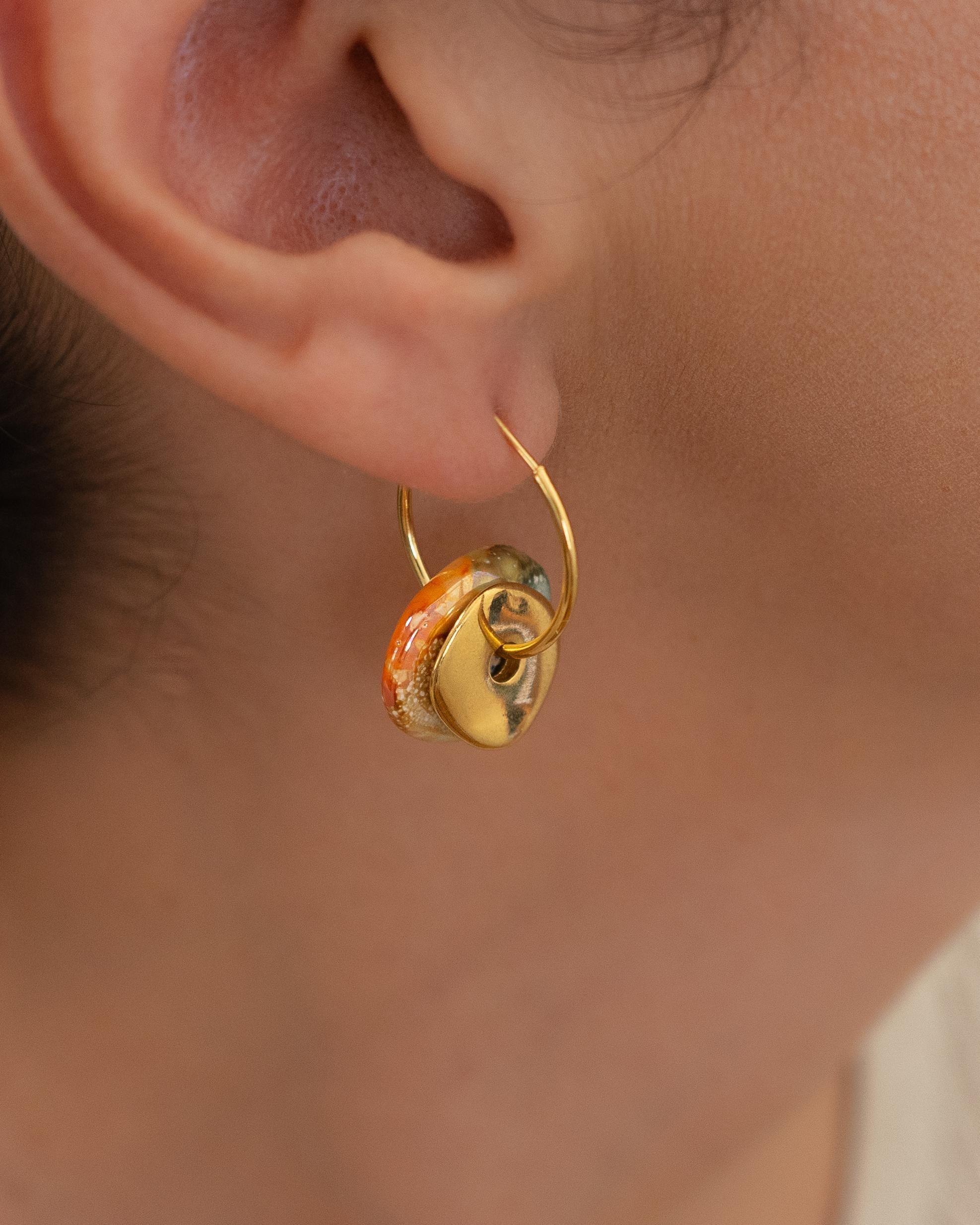 Gold Ceramic Coin Hoop Earrings