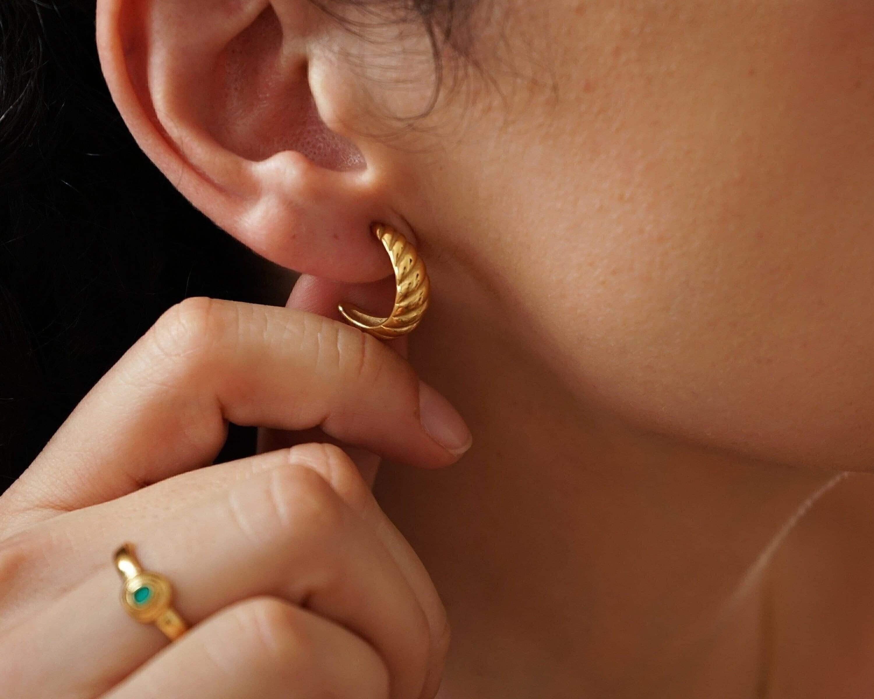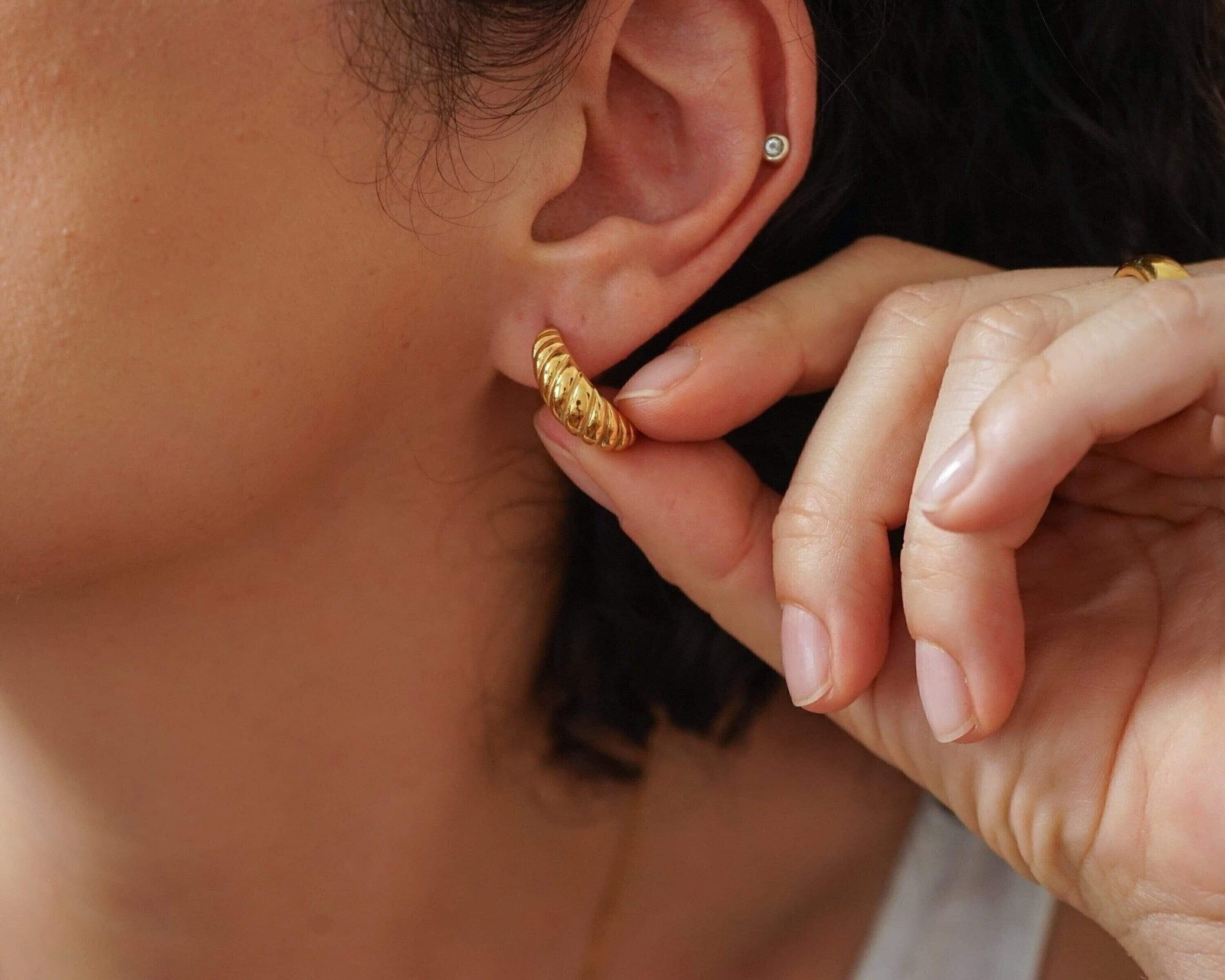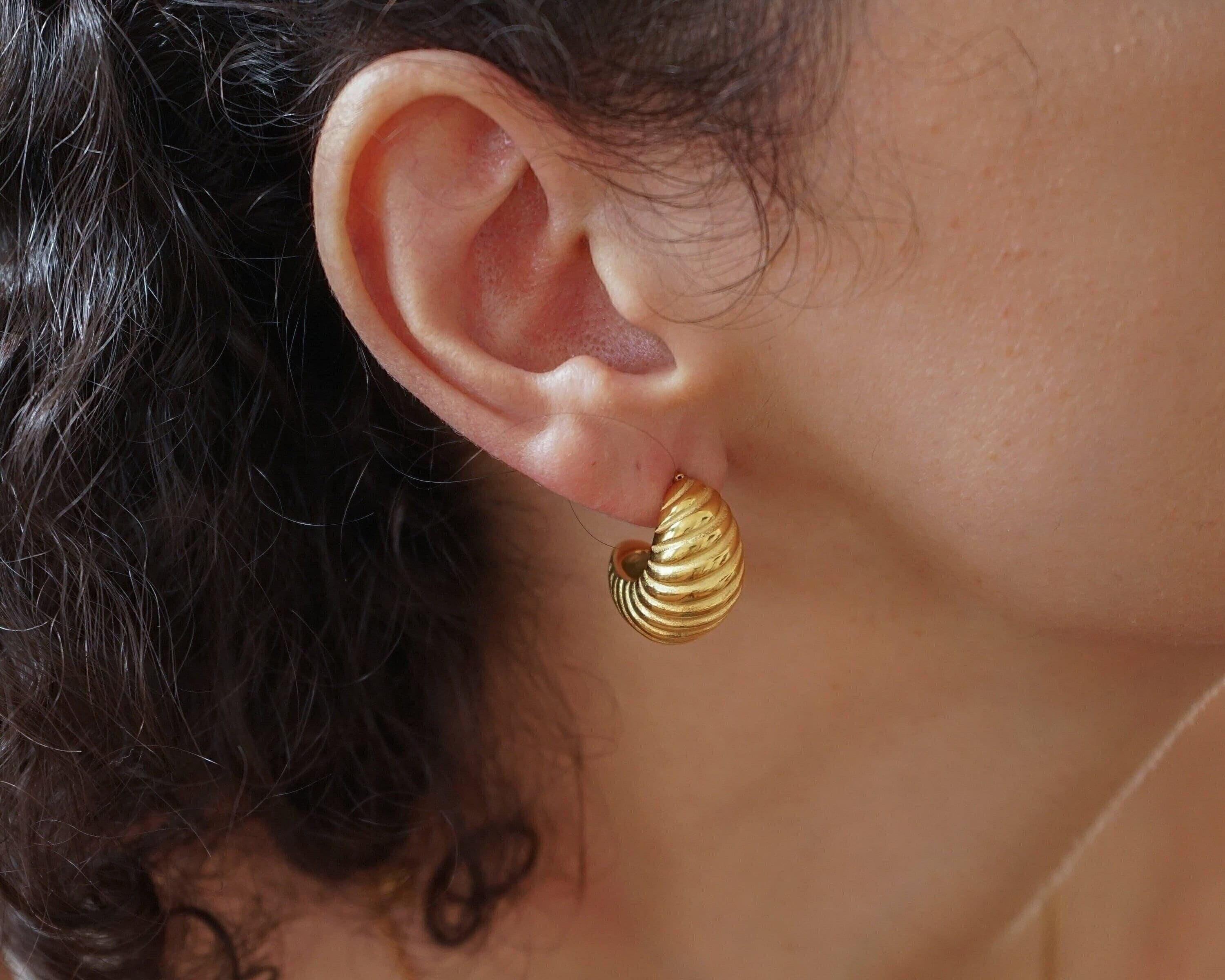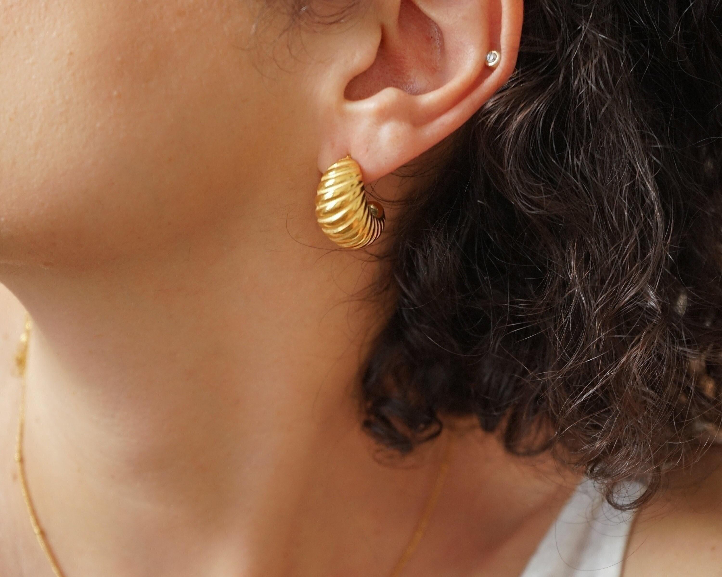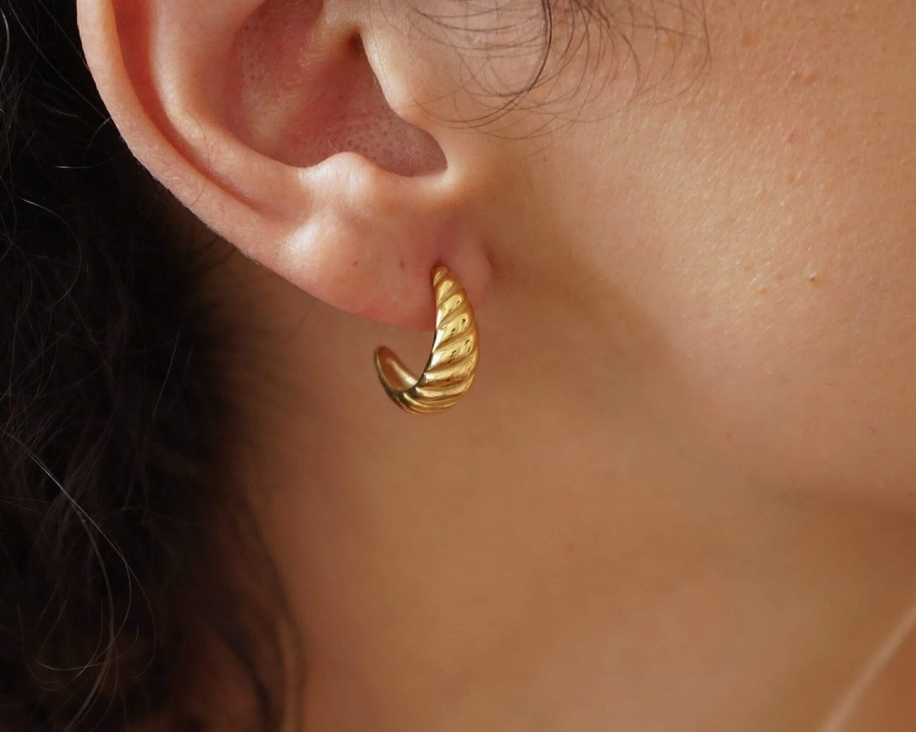 Discover the perfect blend of contemporary style and enduring elegance with our Croissant Dome Hoops. These exquisite earrings are crafted to enhance a wide range of outfits, effortlessly transitioning from daytime casual to evening chic. Made from tarnish-free, waterproof stainless steel, they are designed to withstand the test of time, ensuring you can enjoy them for years to come.