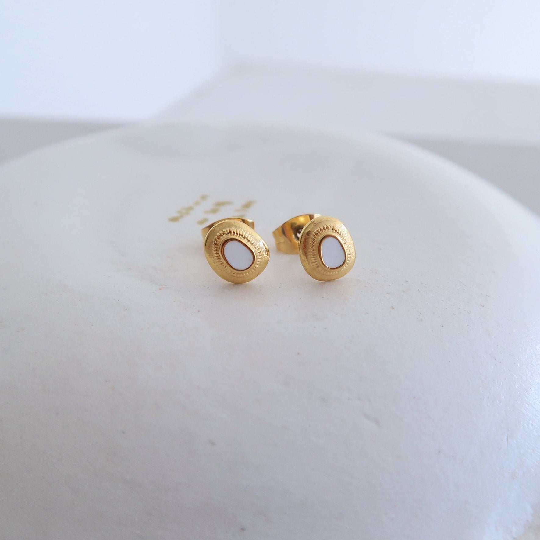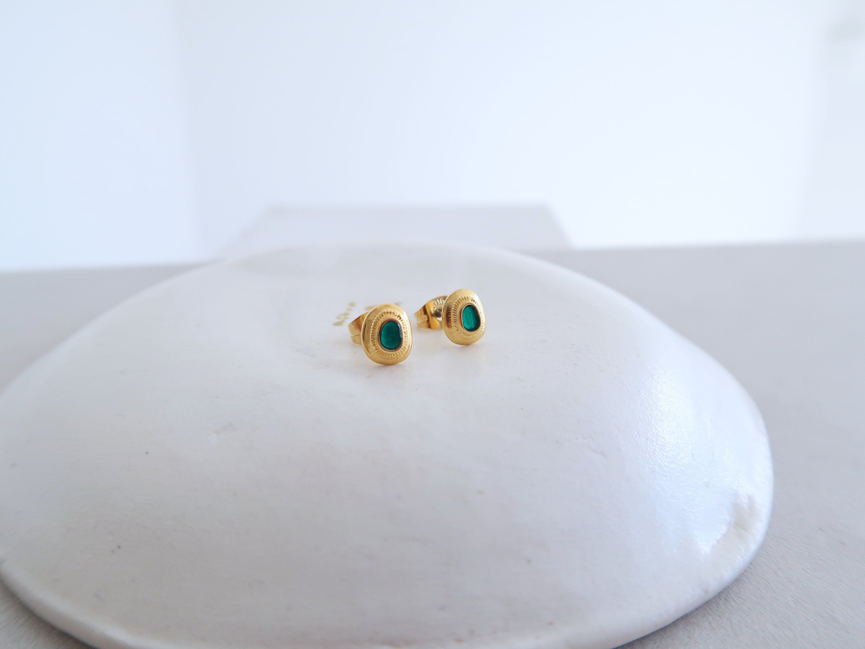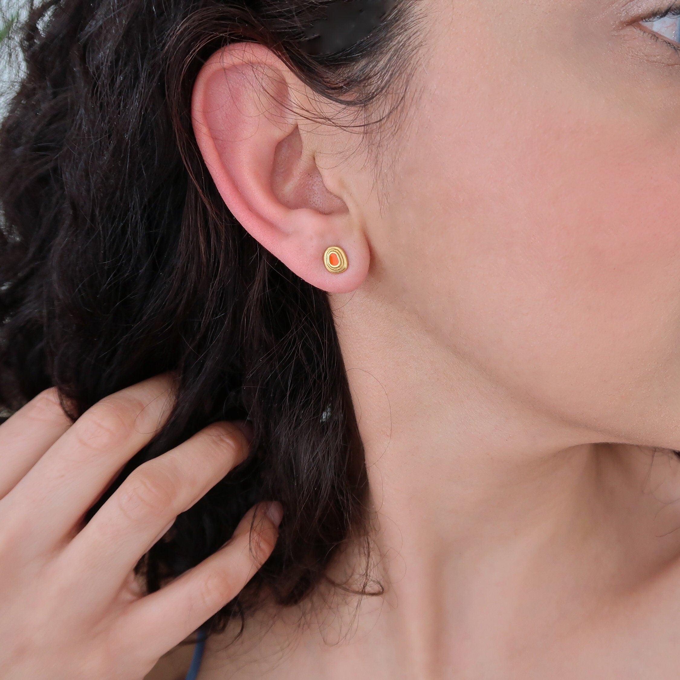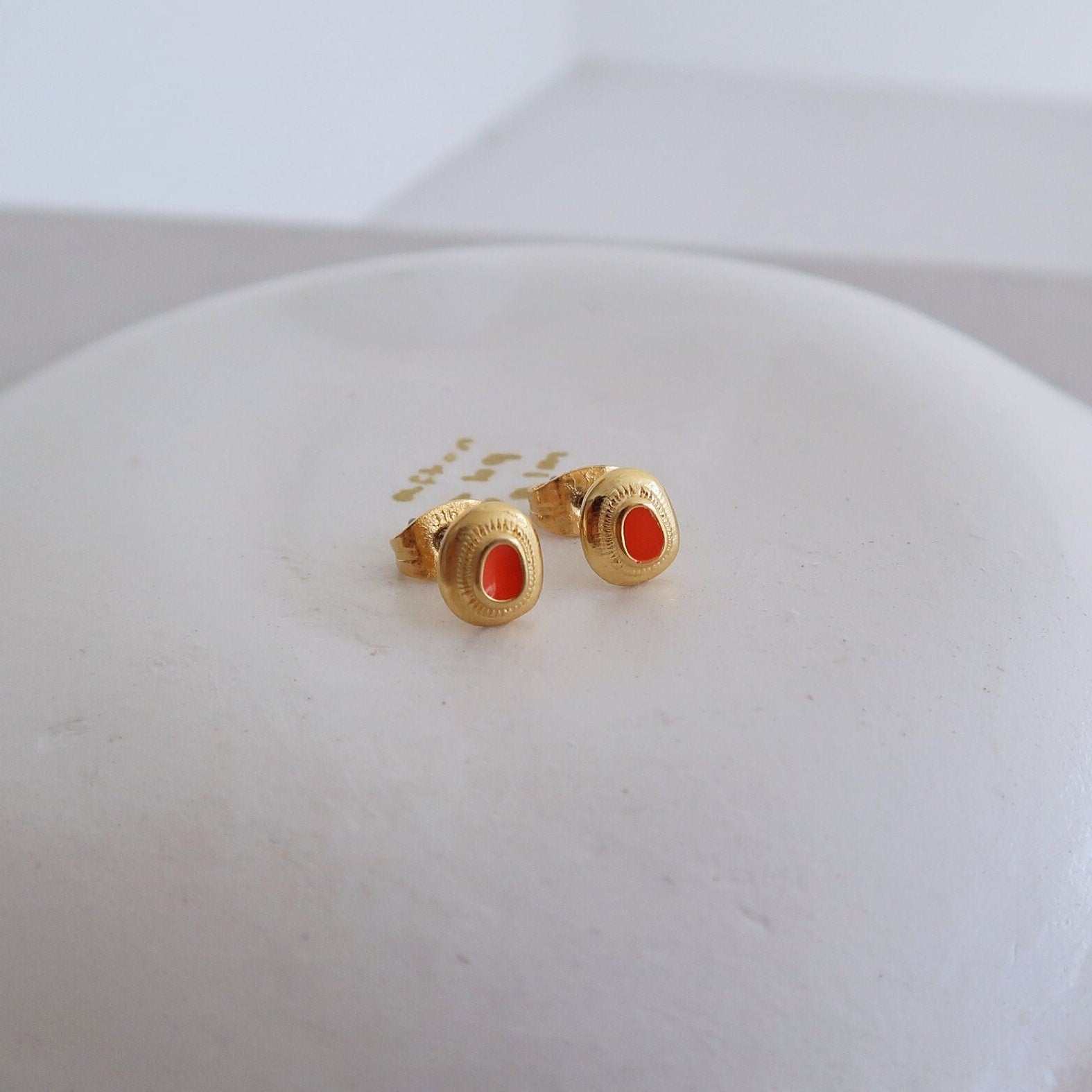 Discover our elegant gold stud earrings featuring beautifully crafted settings in white, emerald, or orange enamel. These delicate earrings embody a timeless charm, making them versatile enough for everyday wear or special occasions. Their classic design ensures they will be a staple in your jewelry collection for years to come.