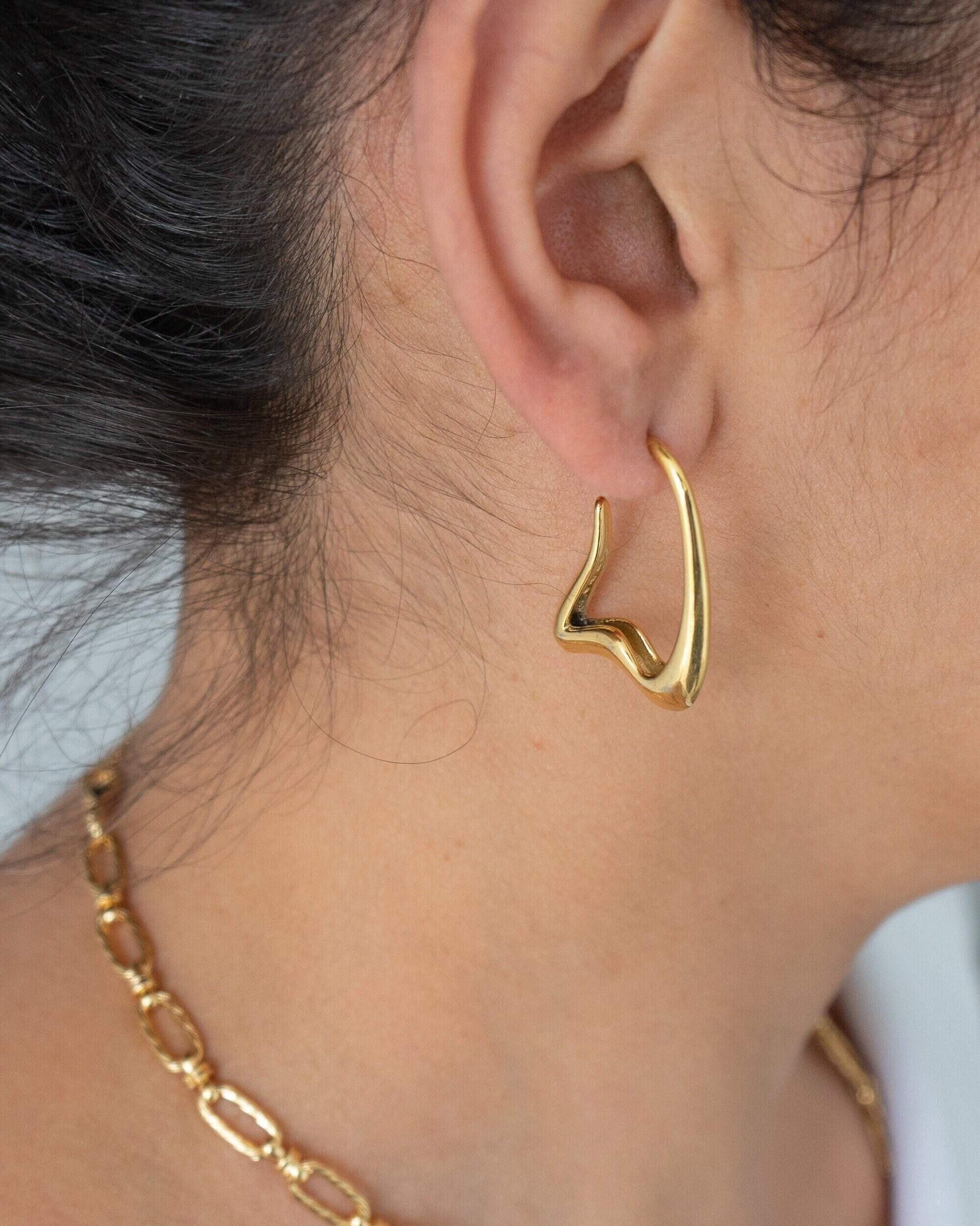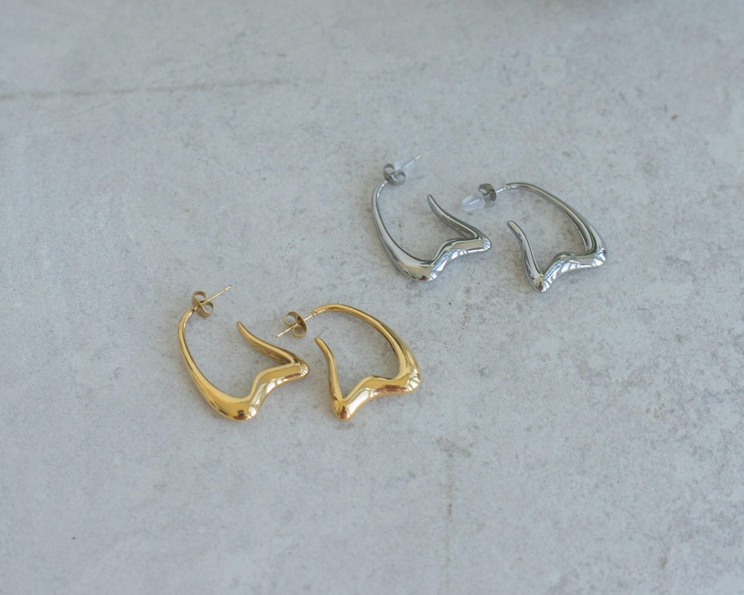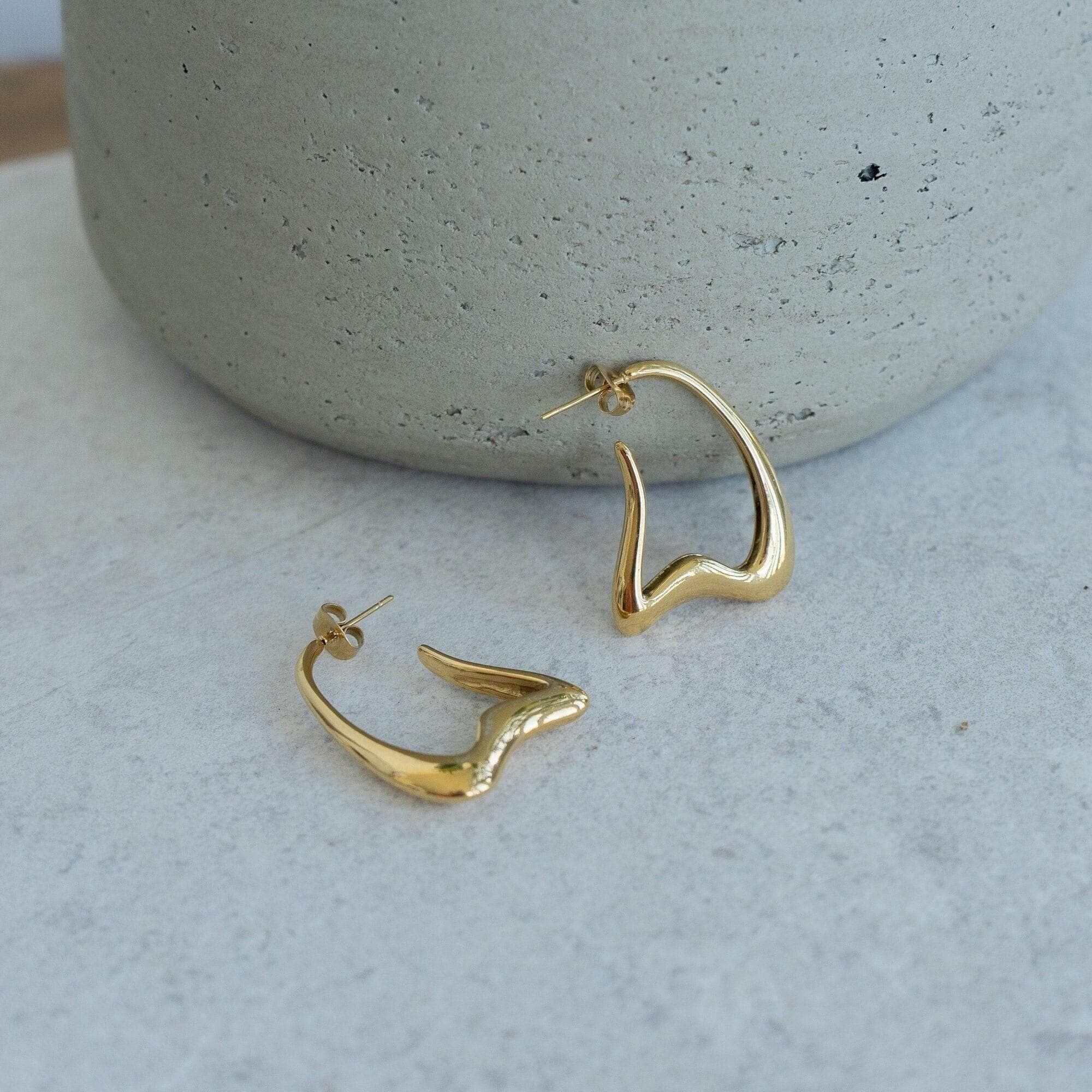 Gold Wavy Hoops Organic Hoop Stainless Steel Earrings