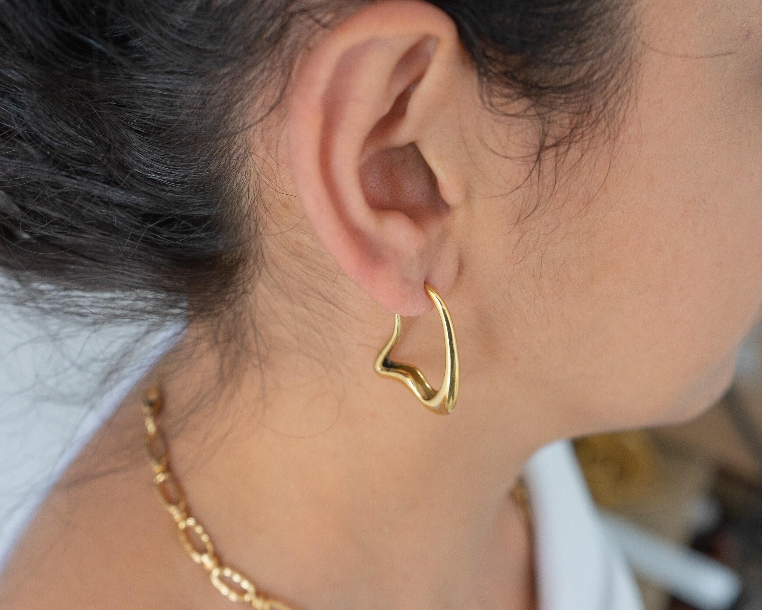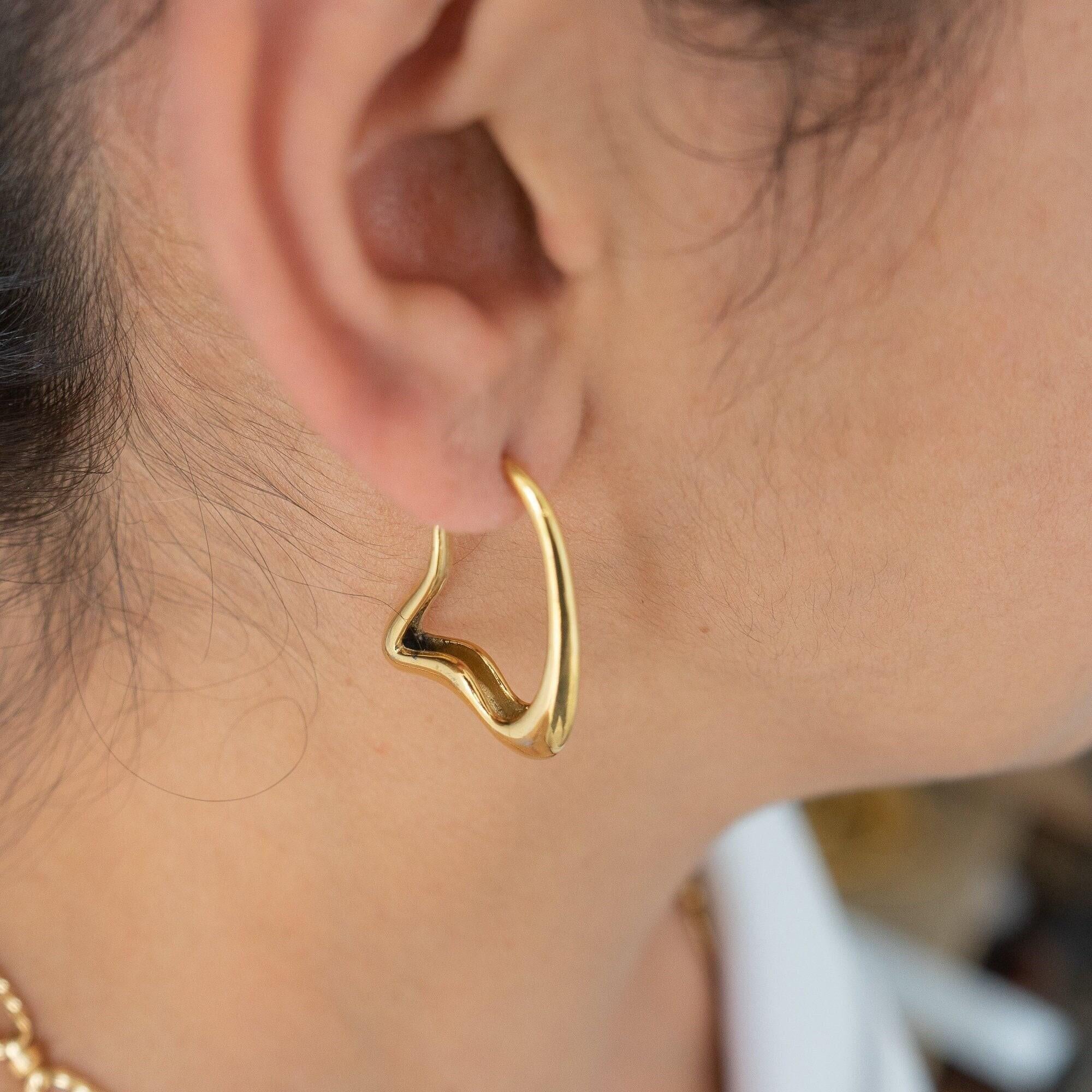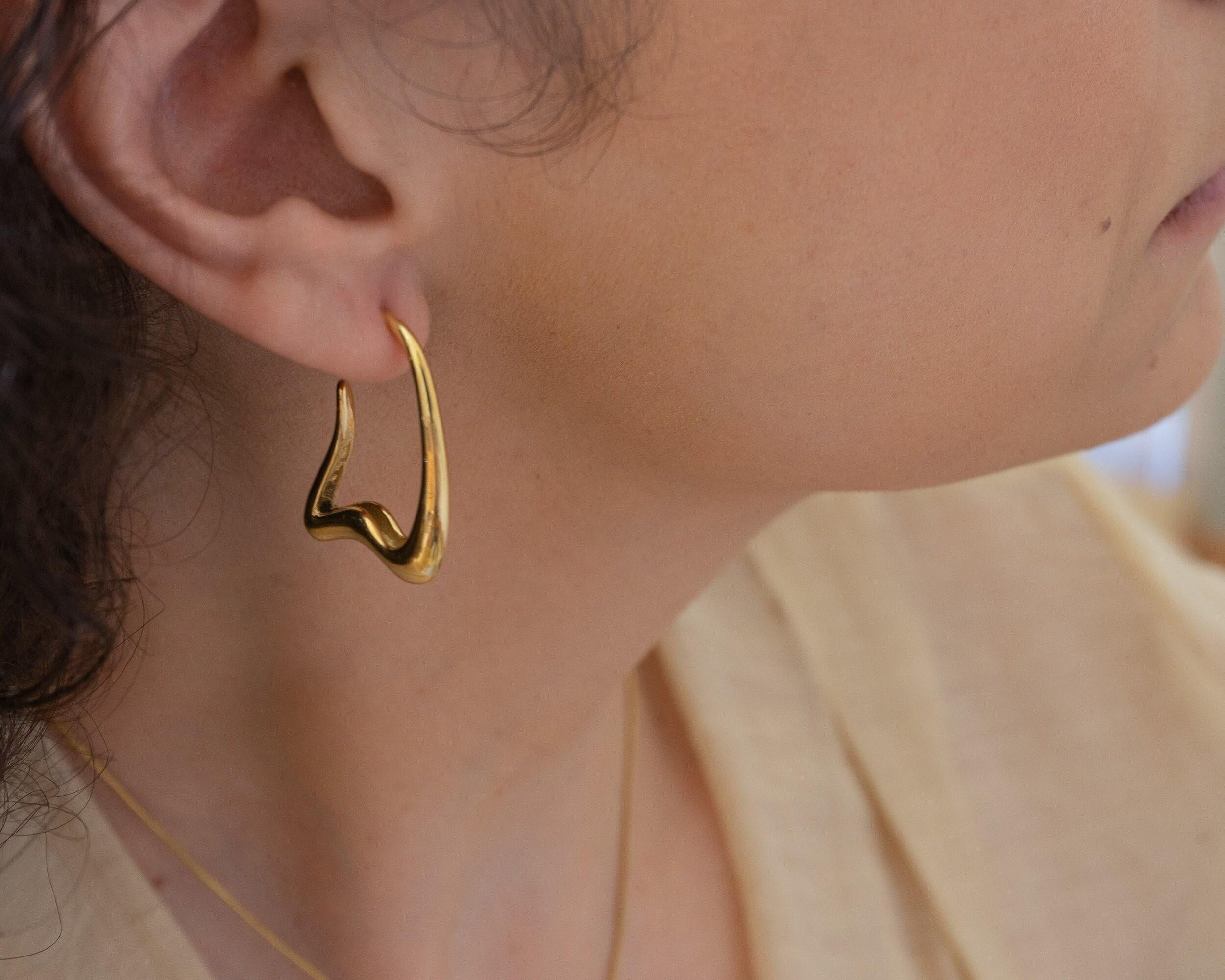 Gold Wavy Hoops Organic Hoop Stainless Steel Earrings