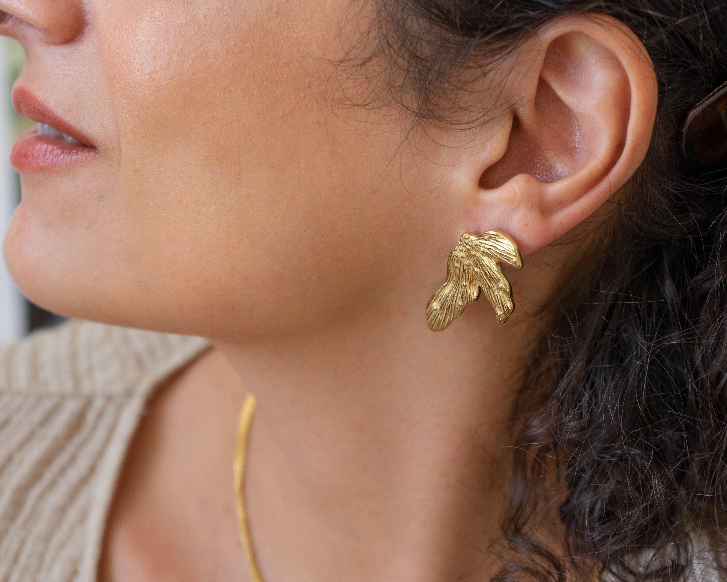 With measurements of 1.6 x 0.86 inches (41 x 22 mm), these earrings strike the perfect balance between unique design and versatility, making them an ideal accessory for various styles. The thick and sturdy construction ensures they won’t bend or lose their shape, and you can wear them worry-free, knowing they are nickel-free and lead-free. Enjoy the blend of beauty and practicality with these lovely floral studs.