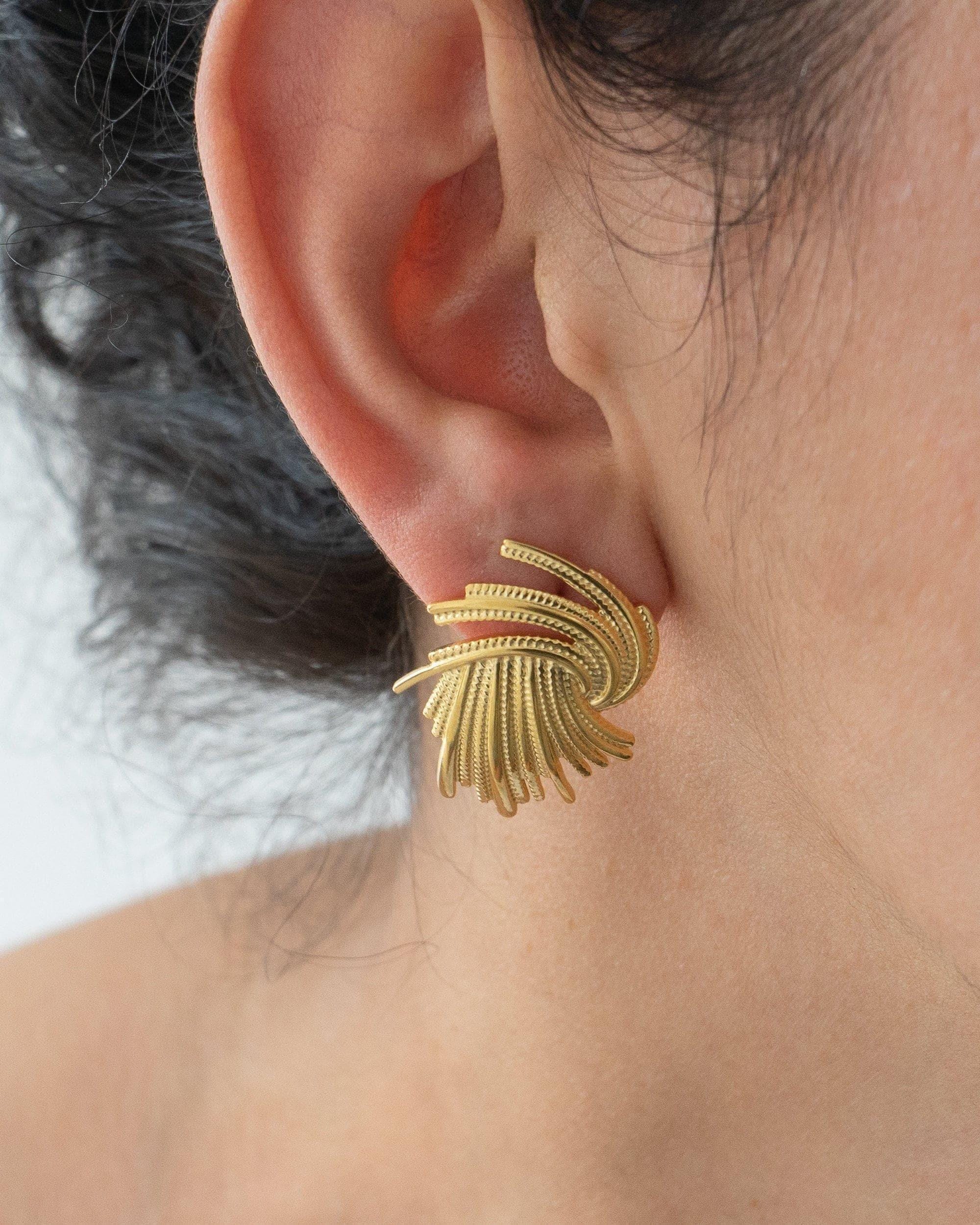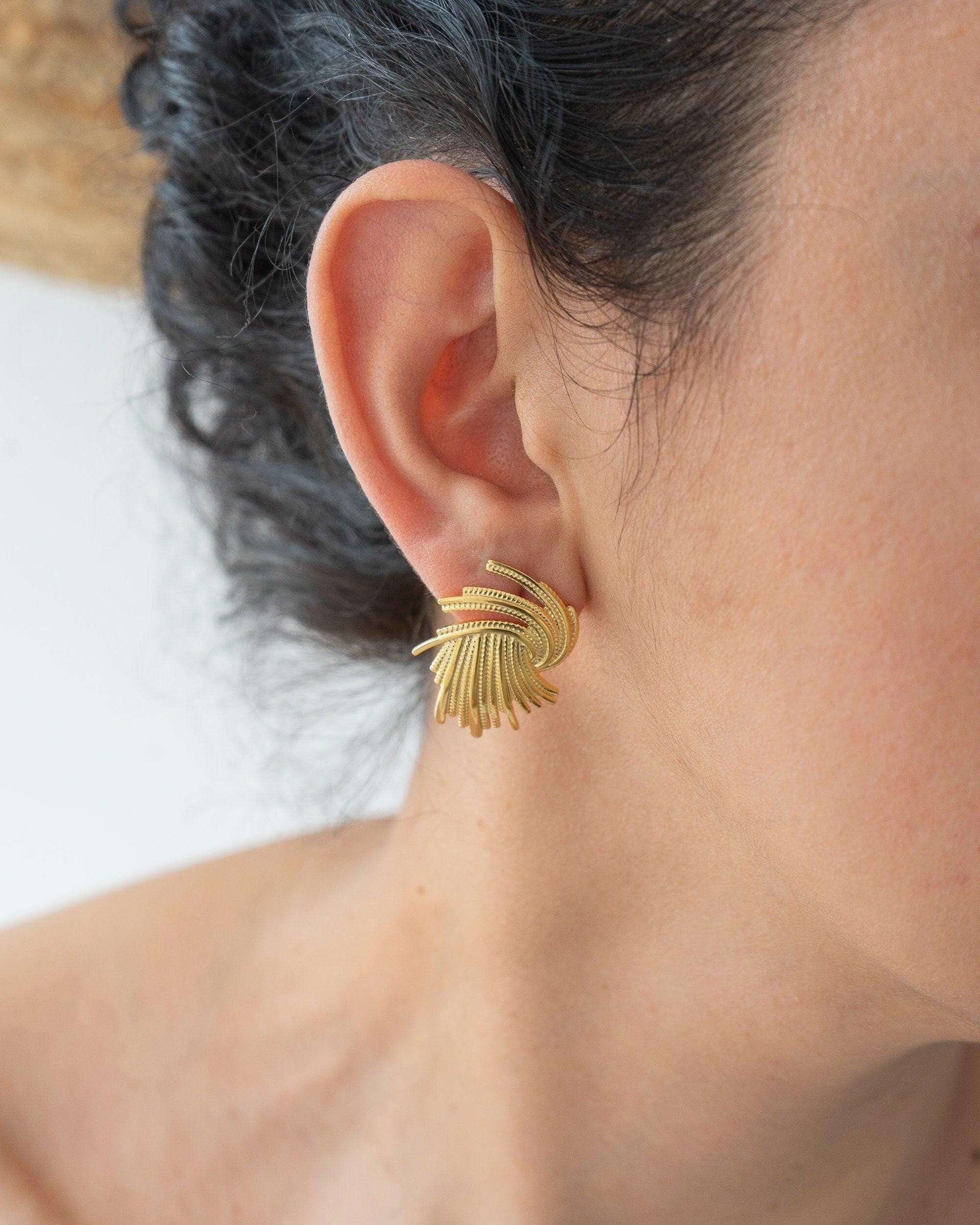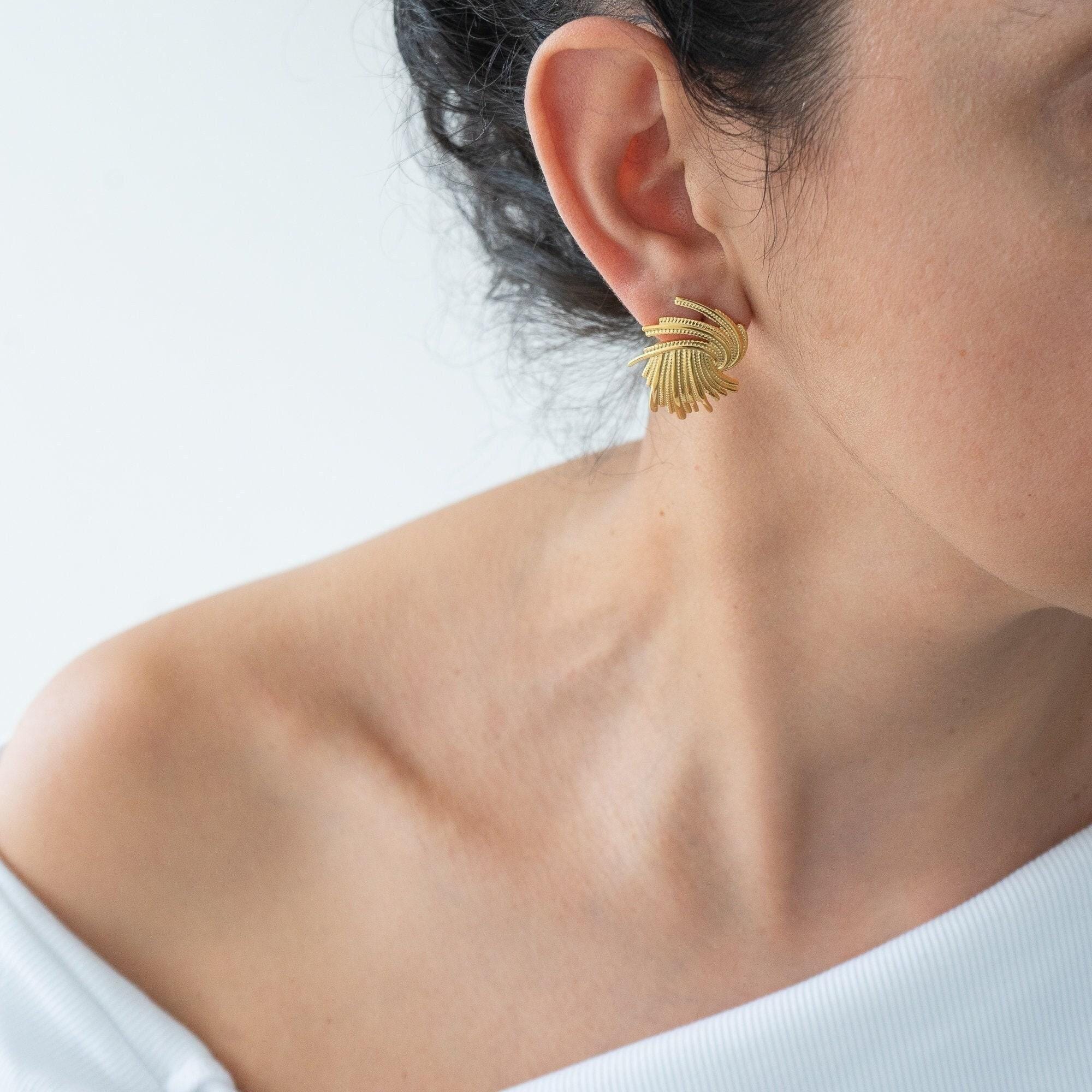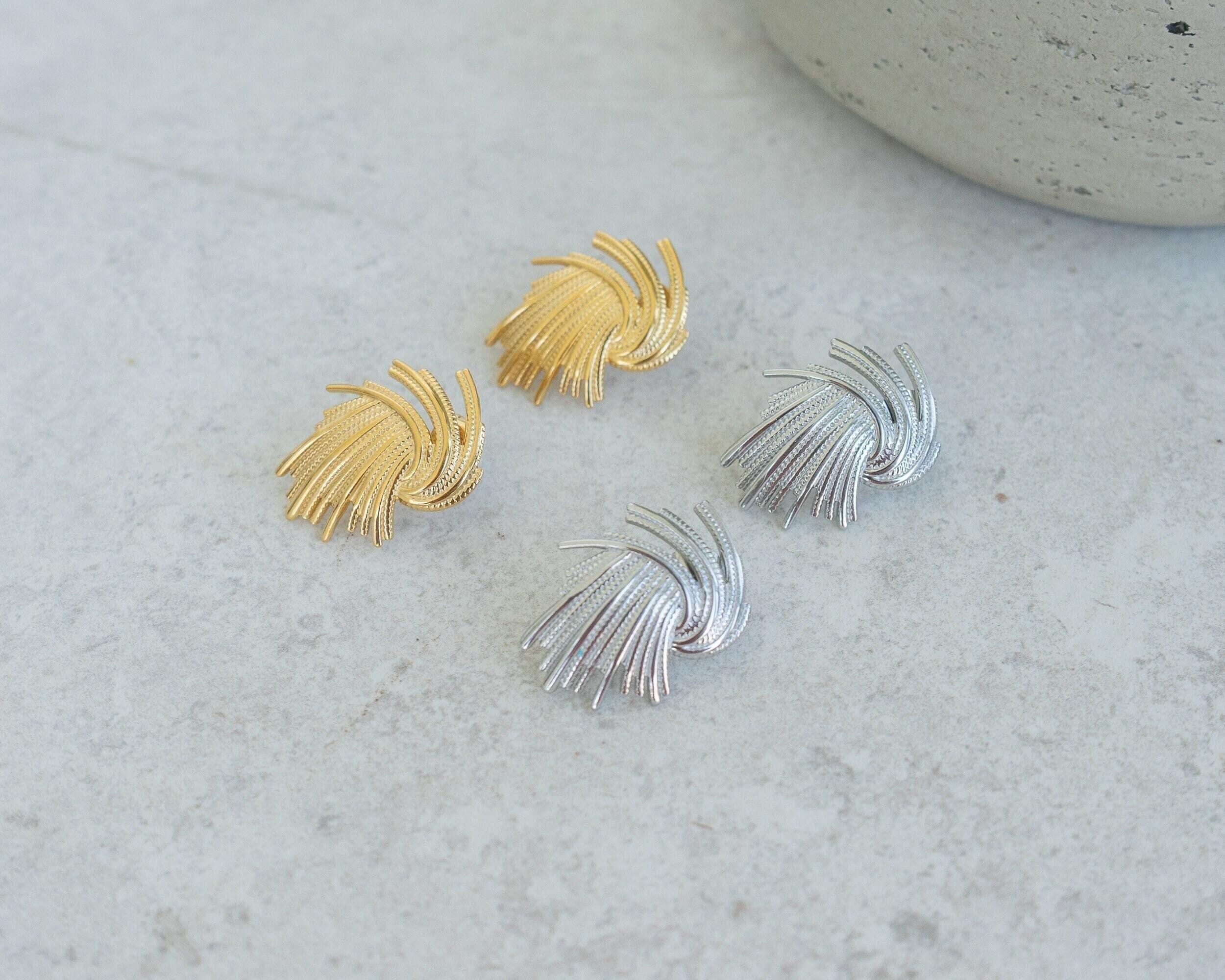 Introducing the WAVY TEXTURED Stud Earrings, a striking addition to your jewelry collection that effortlessly enhances both everyday and special occasion outfits. Crafted for durability and waterproof qualities, these large earrings are designed to stand out while remaining practical for daily wear.