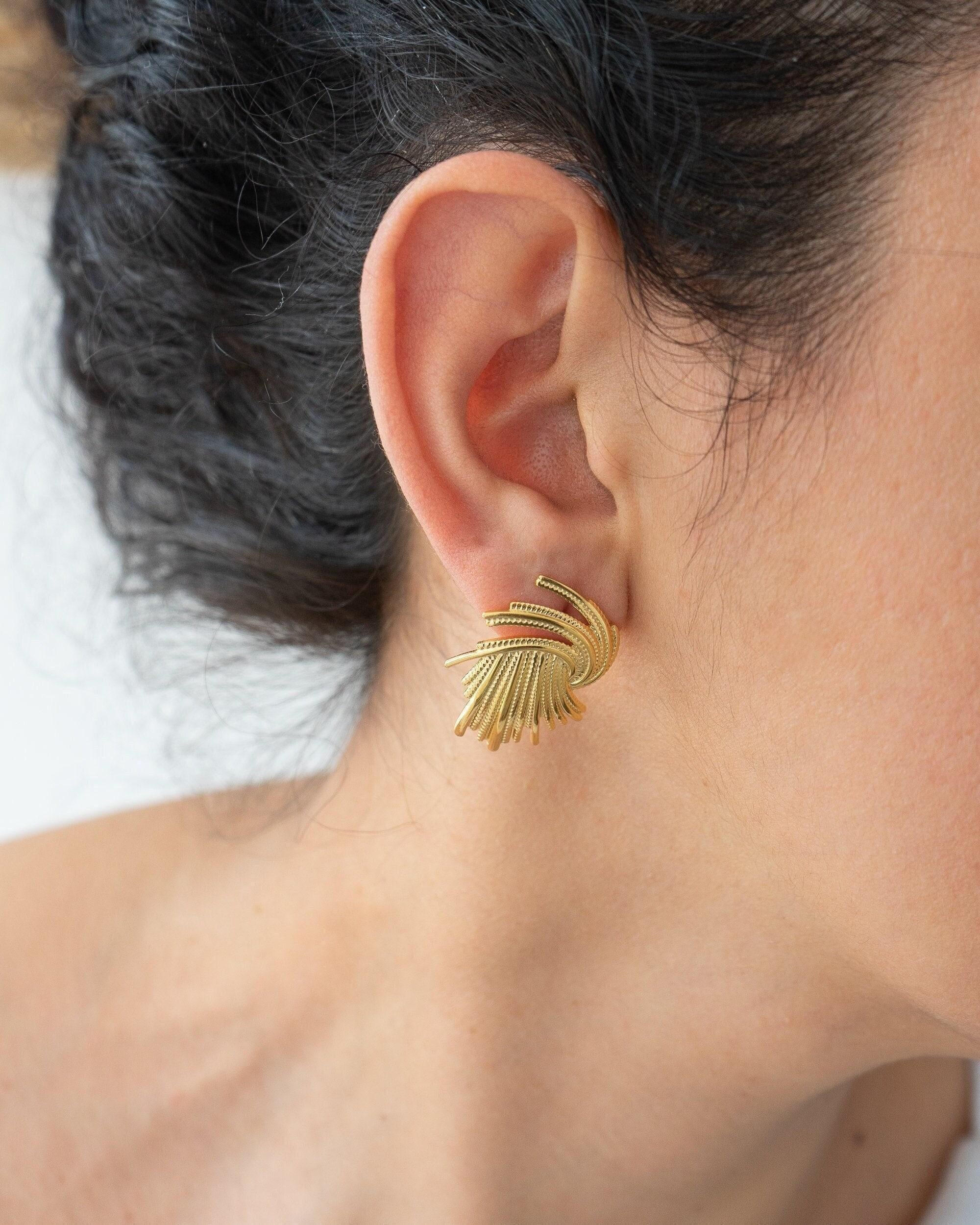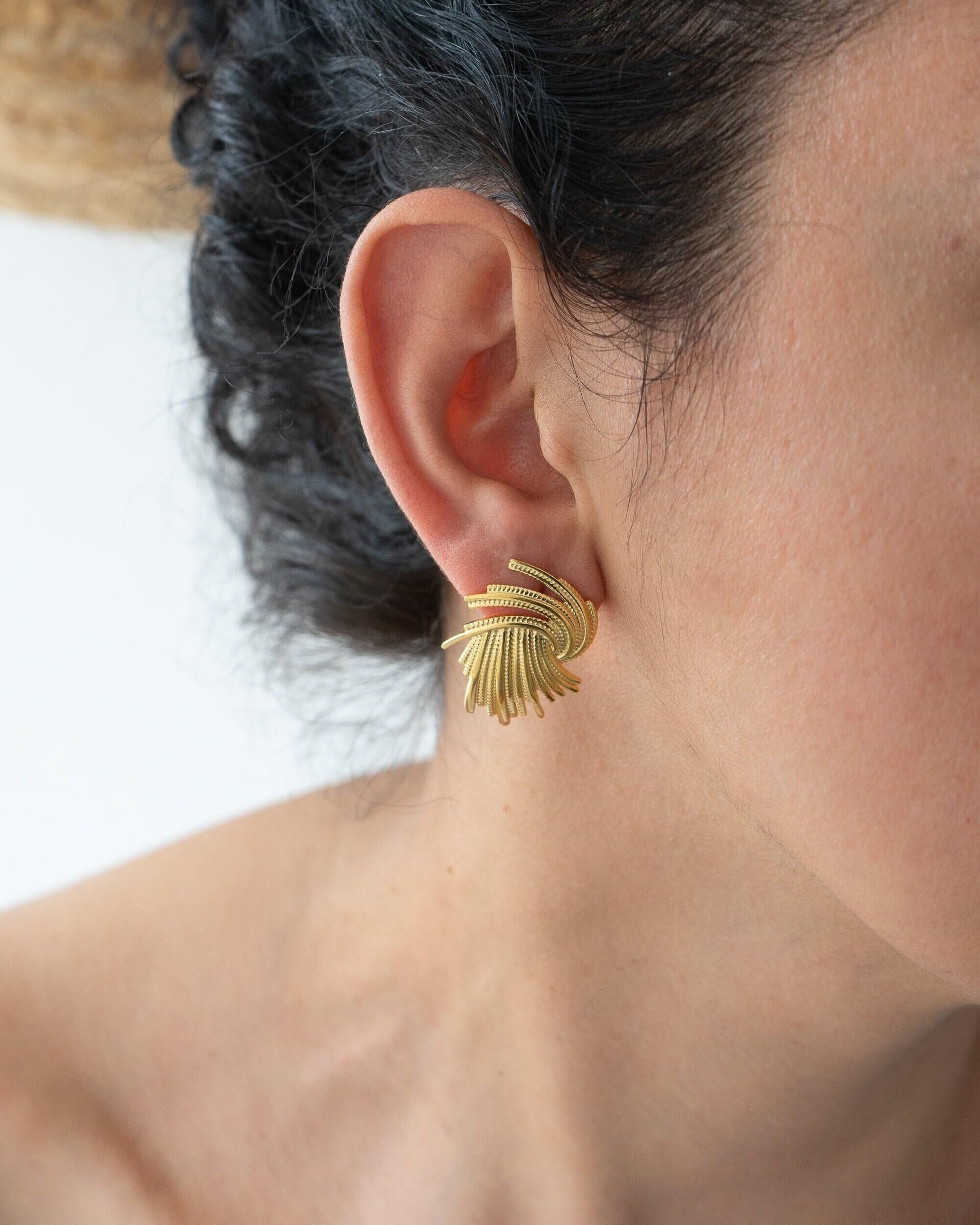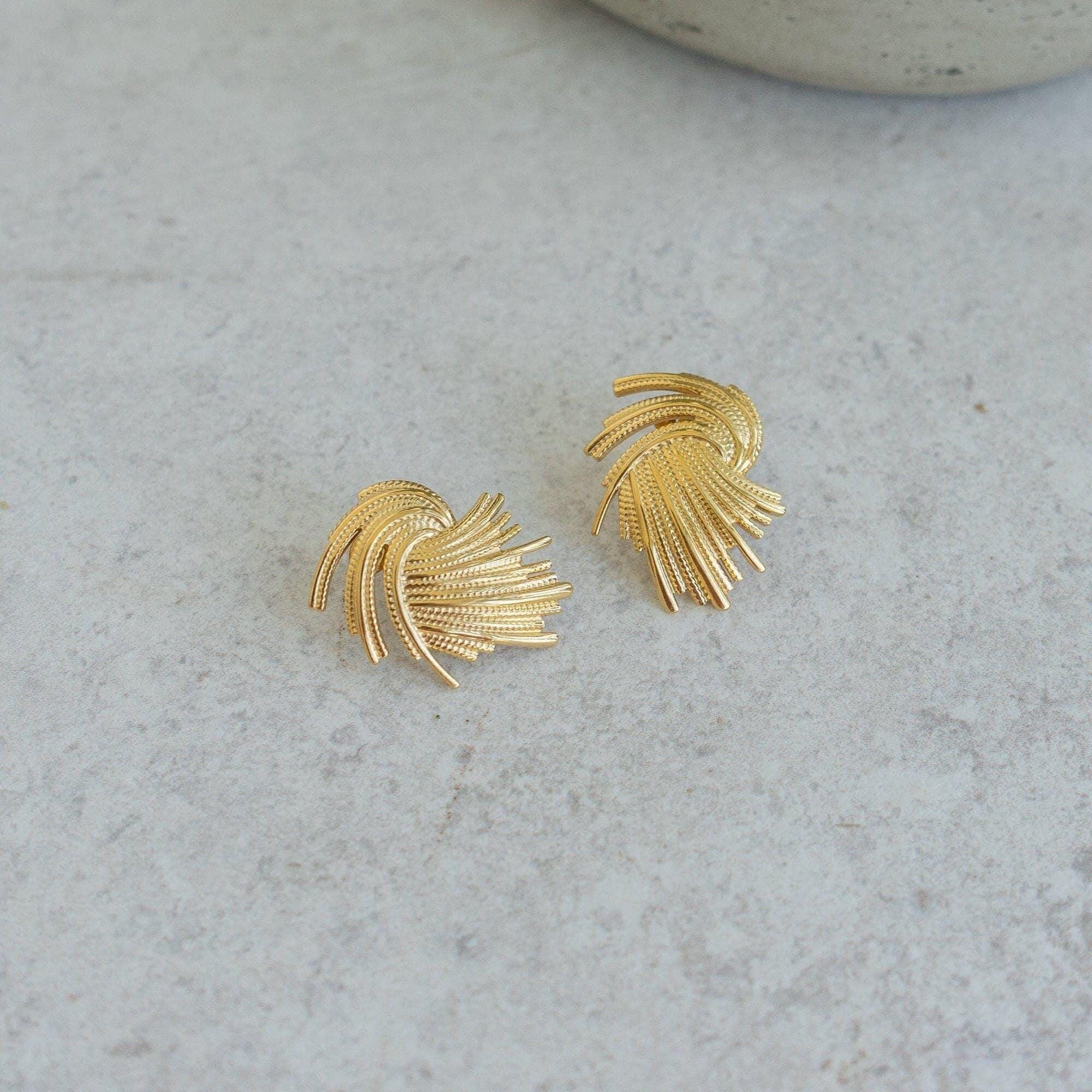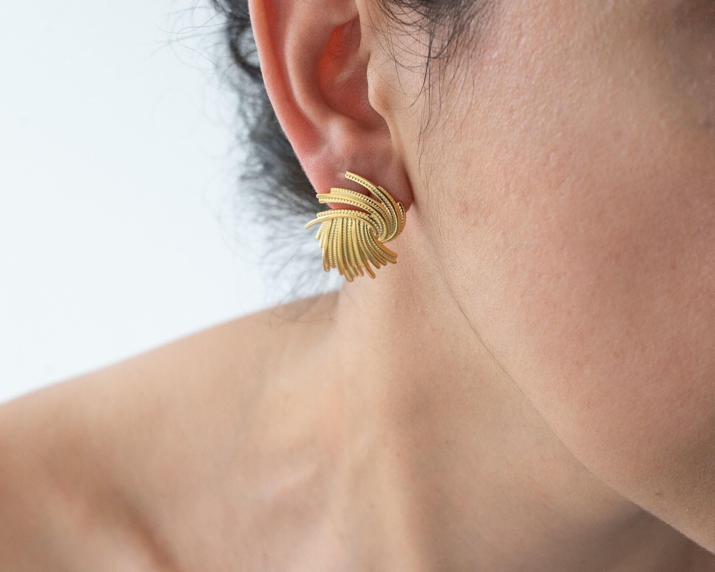 Introducing the WAVY TEXTURED Stud Earrings, a striking addition to your jewelry collection that effortlessly enhances both everyday and special occasion outfits. Crafted for durability and waterproof qualities, these large earrings are designed to stand out while remaining practical for daily wear.