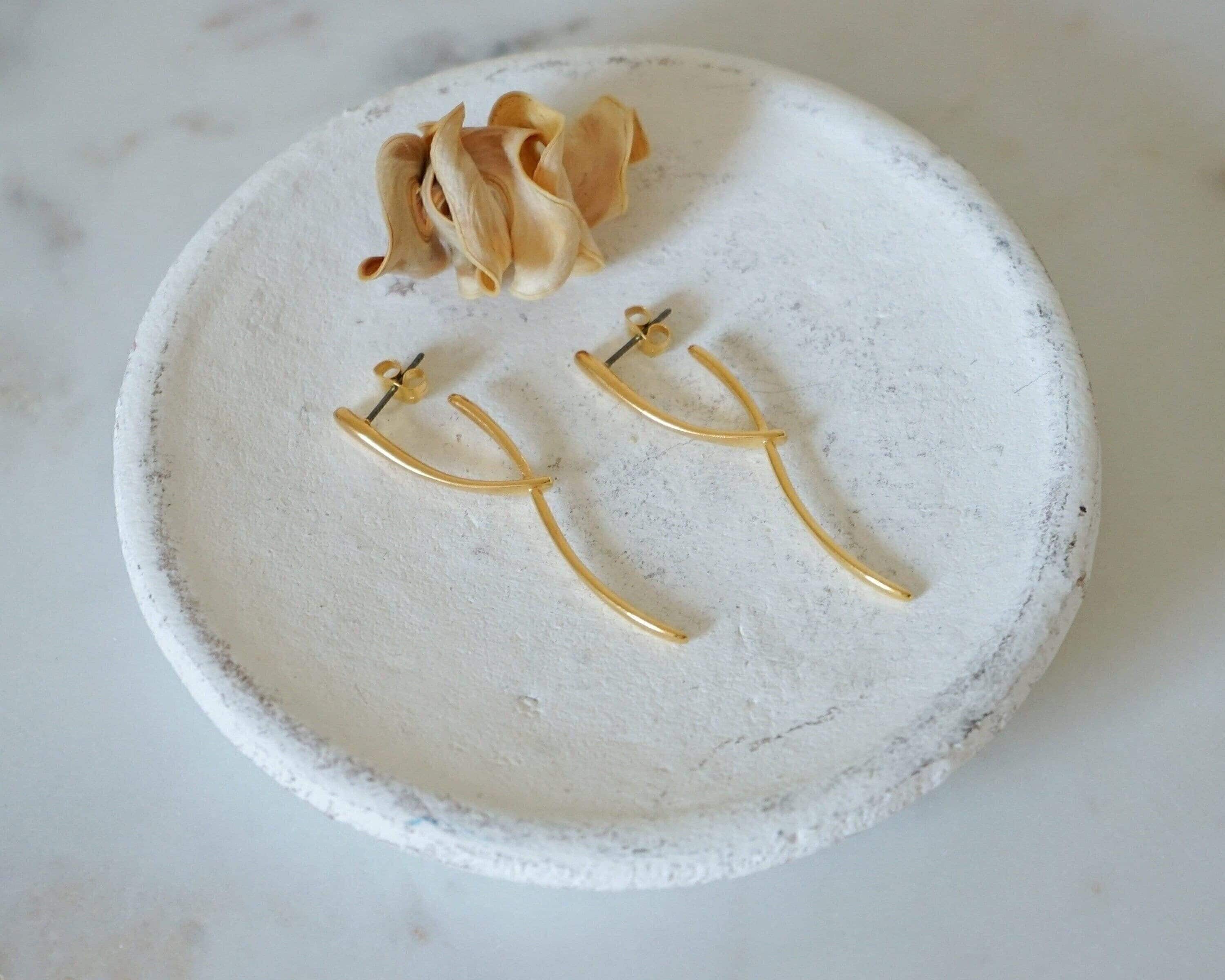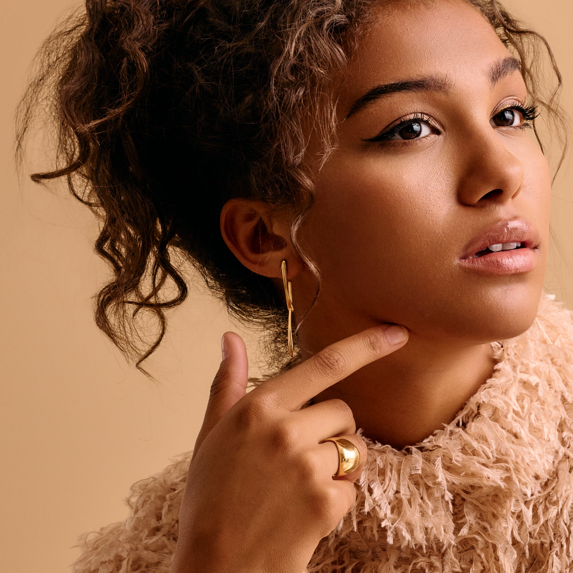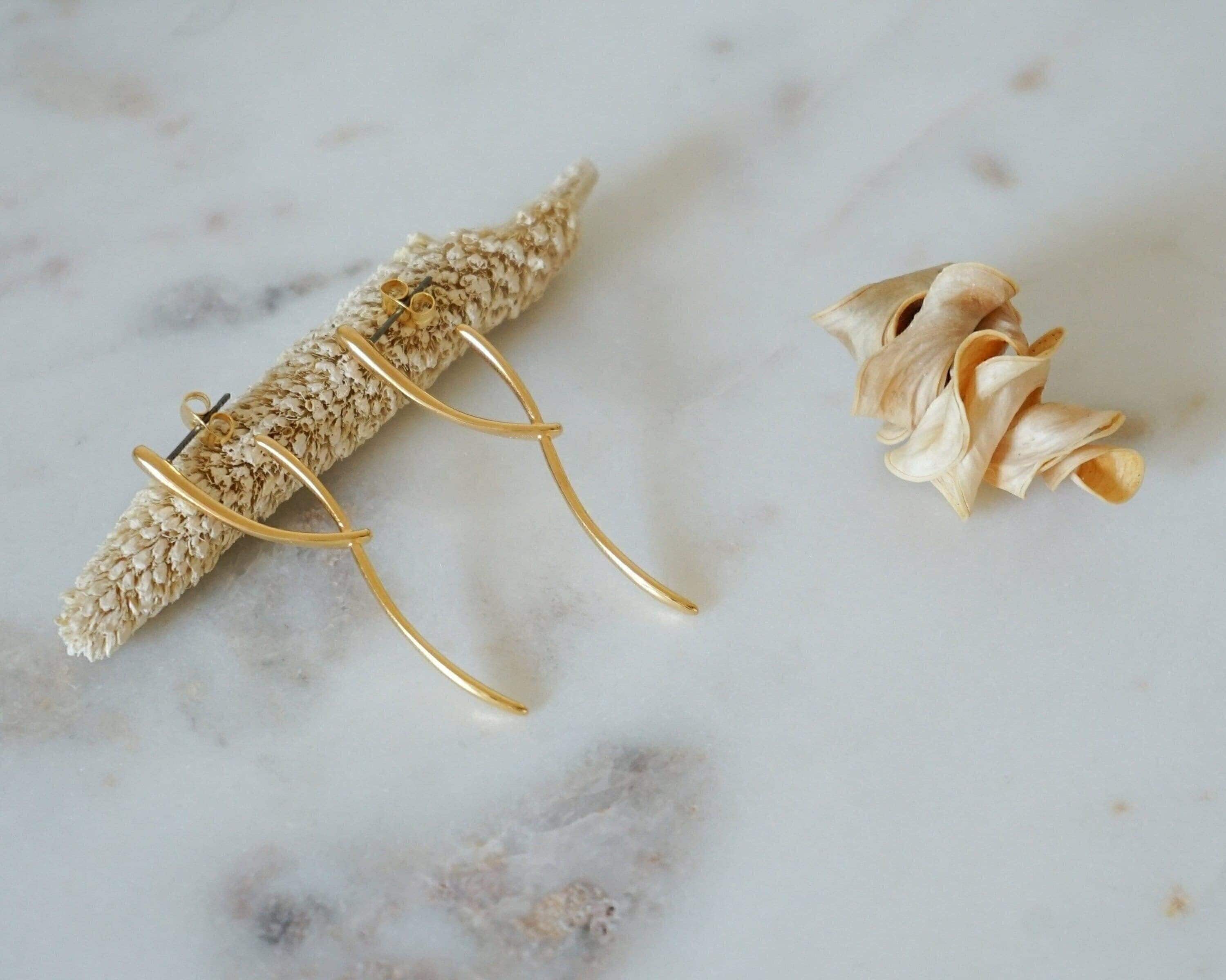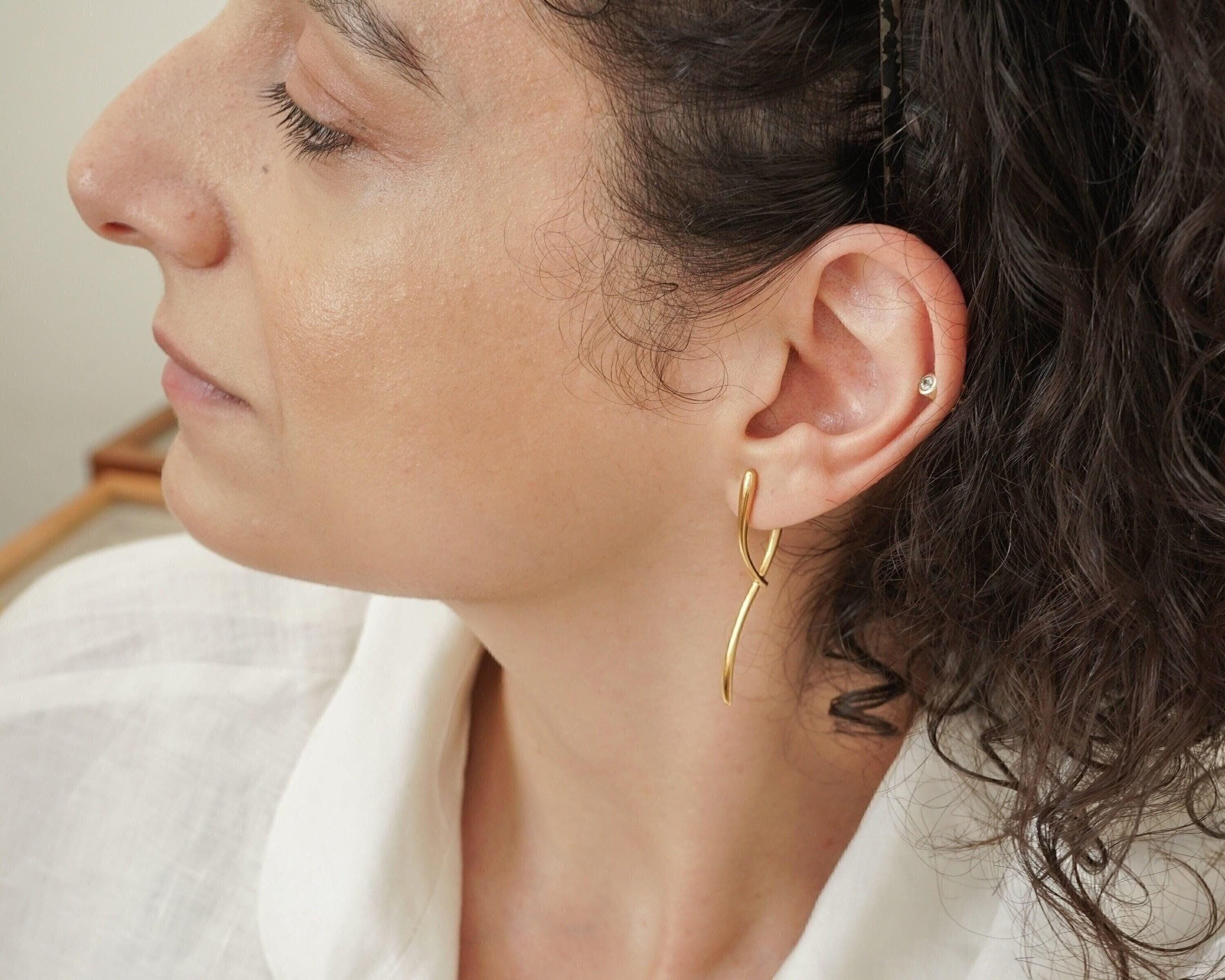 Discover the charm of these gold-plated 3/4 earrings, designed with a unique, free-flowing shape that adds a touch of elegance to any outfit. Wear them solo for a classic look, or stack them together for a contemporary flair if you have multiple piercings.