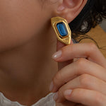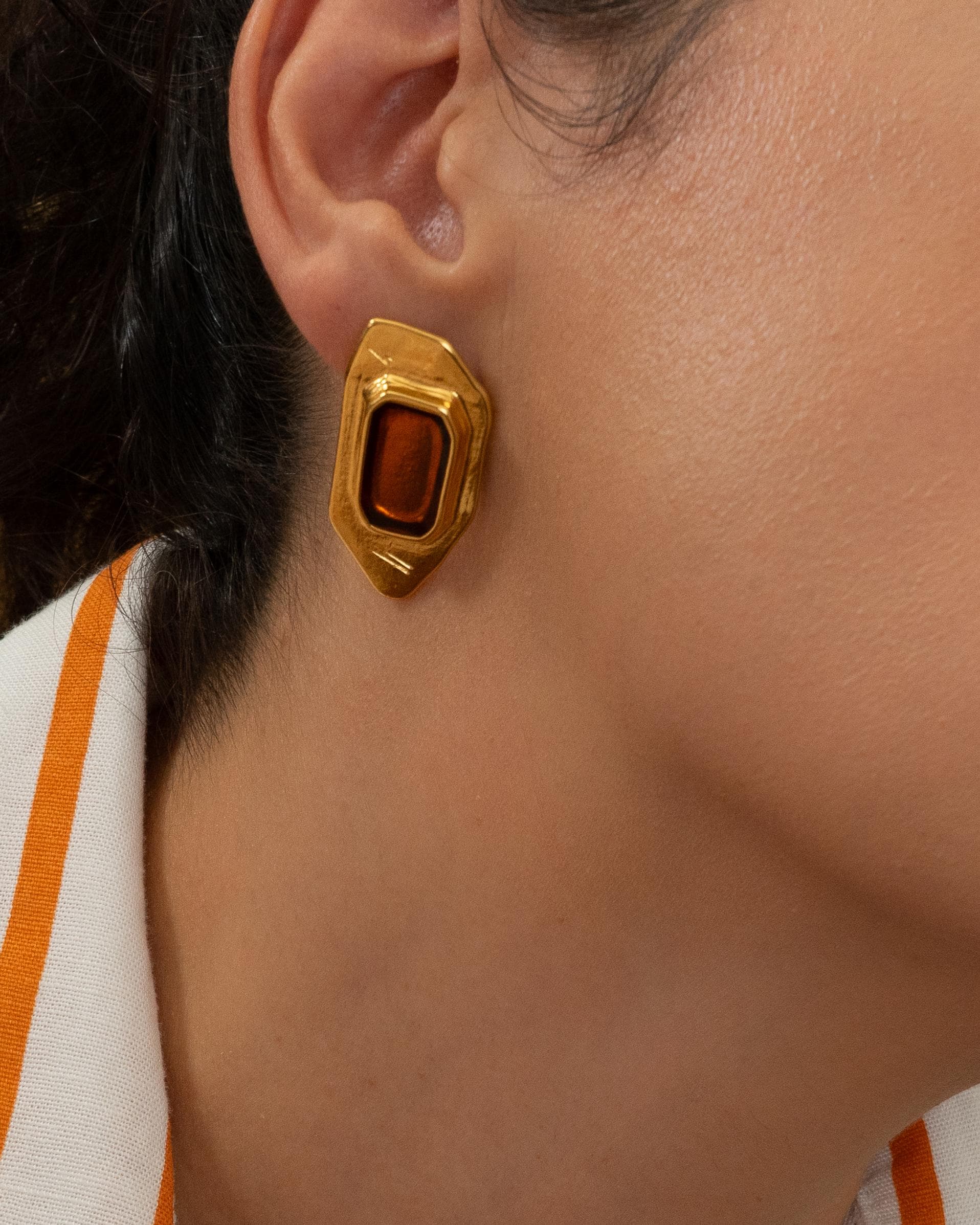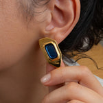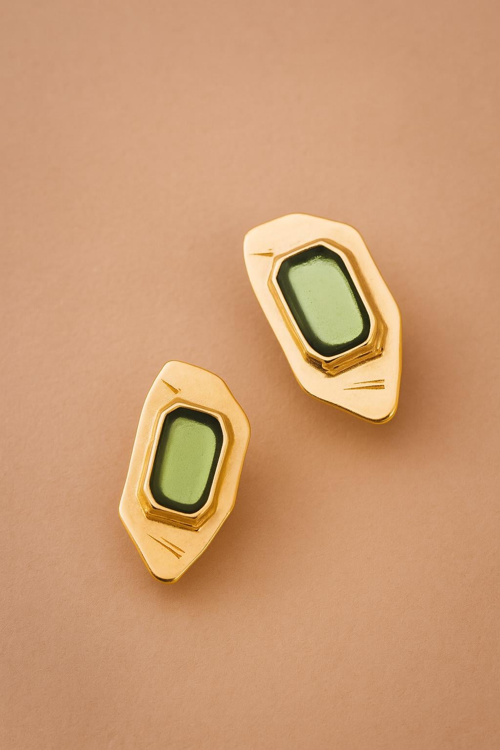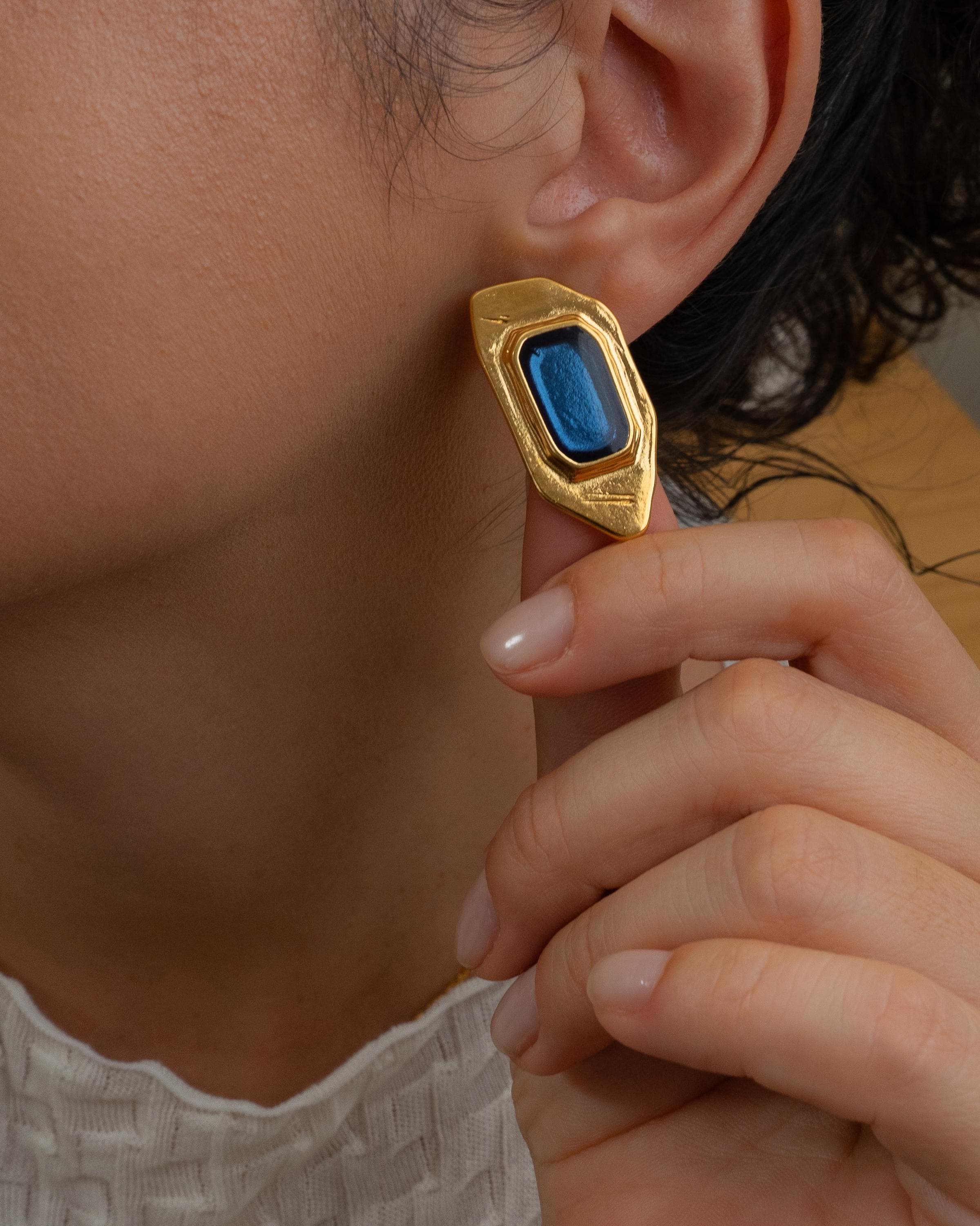 Add a modern twist to your collection with these gold-plated polygon enamel earrings. Designed with a sculptural silhouette and available in forest green, burnt orange, or midnight blue, these statement studs are crafted from gold-plated zamak and feature hypoallergenic titanium posts for everyday comfort. Lightweight yet eye-catching, they’re perfect for both casual and elevated looks.