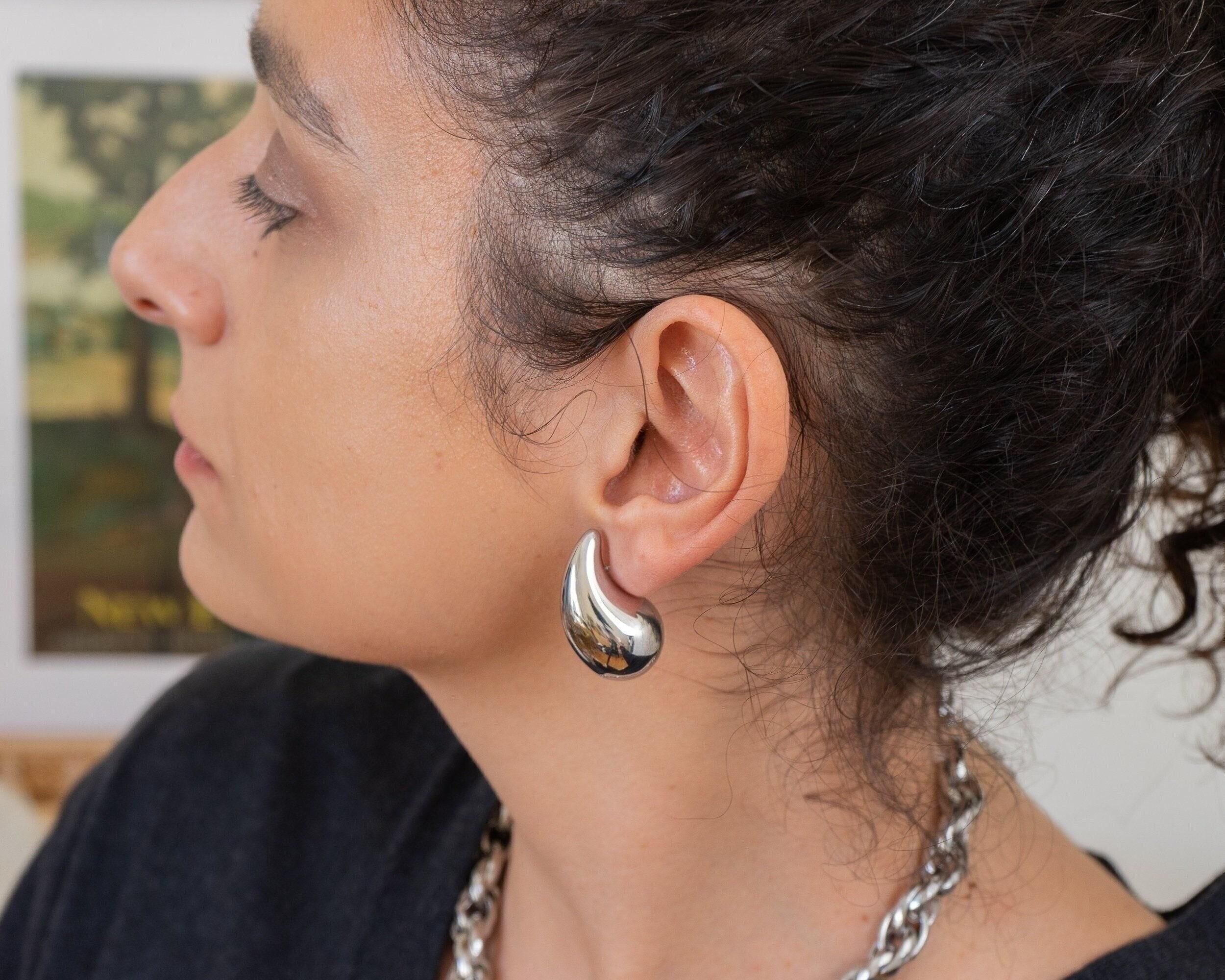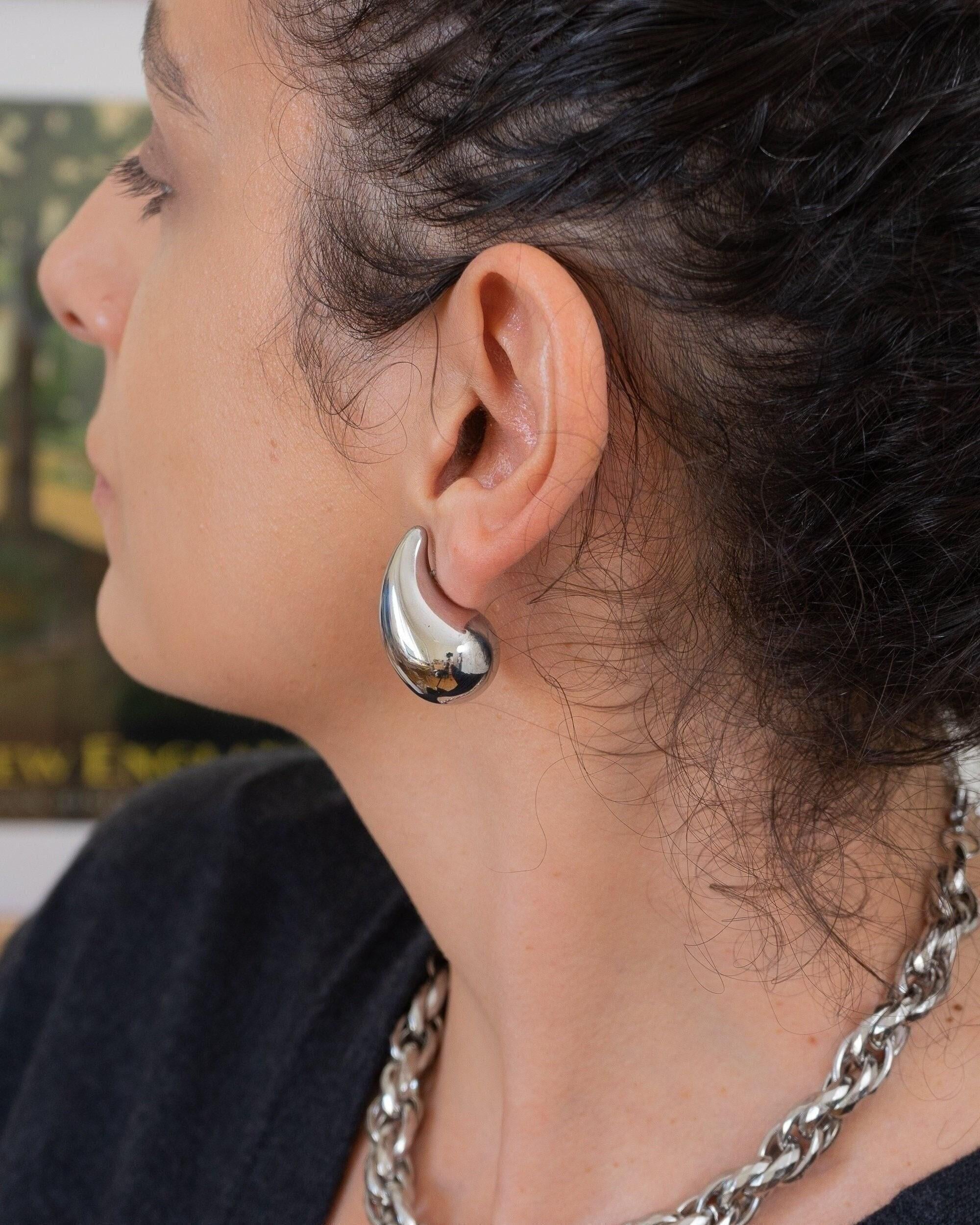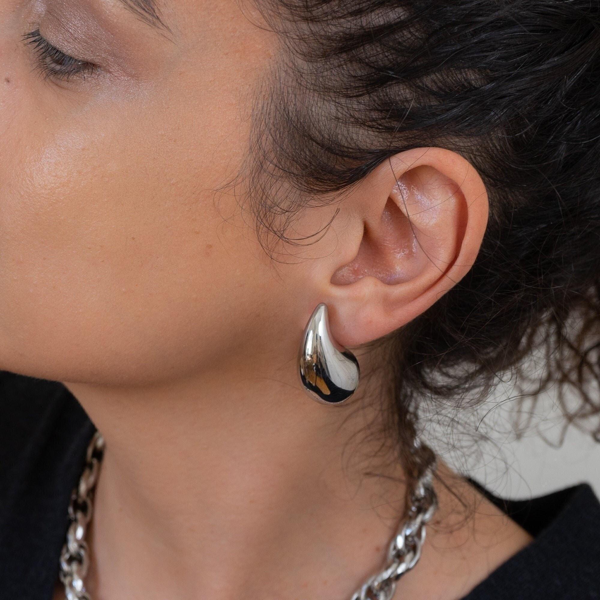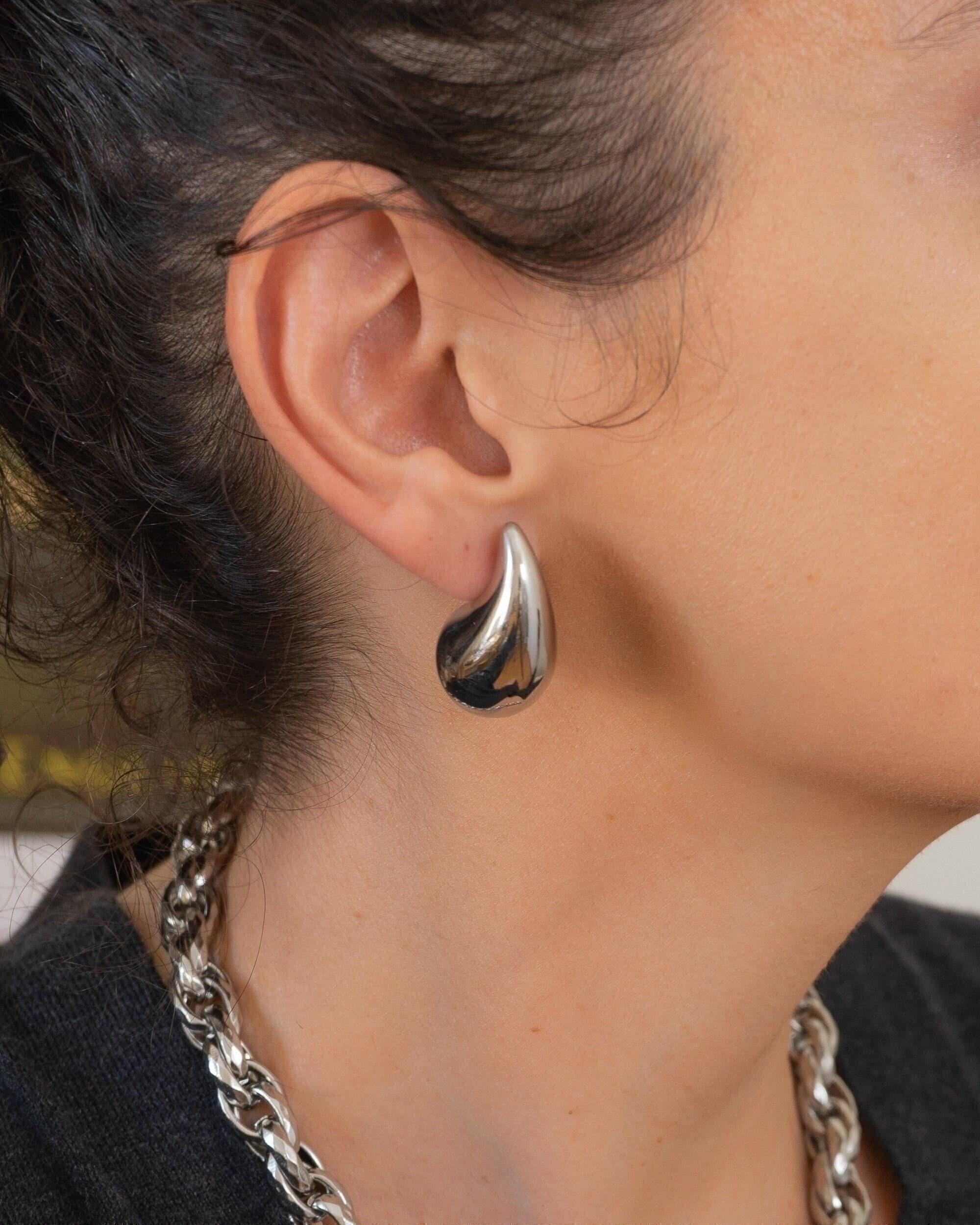 These earrings offer a striking presence without overwhelming your look. The polished silver finish enhances their luxurious appeal, ensuring you feel confident and sophisticated with every wear.