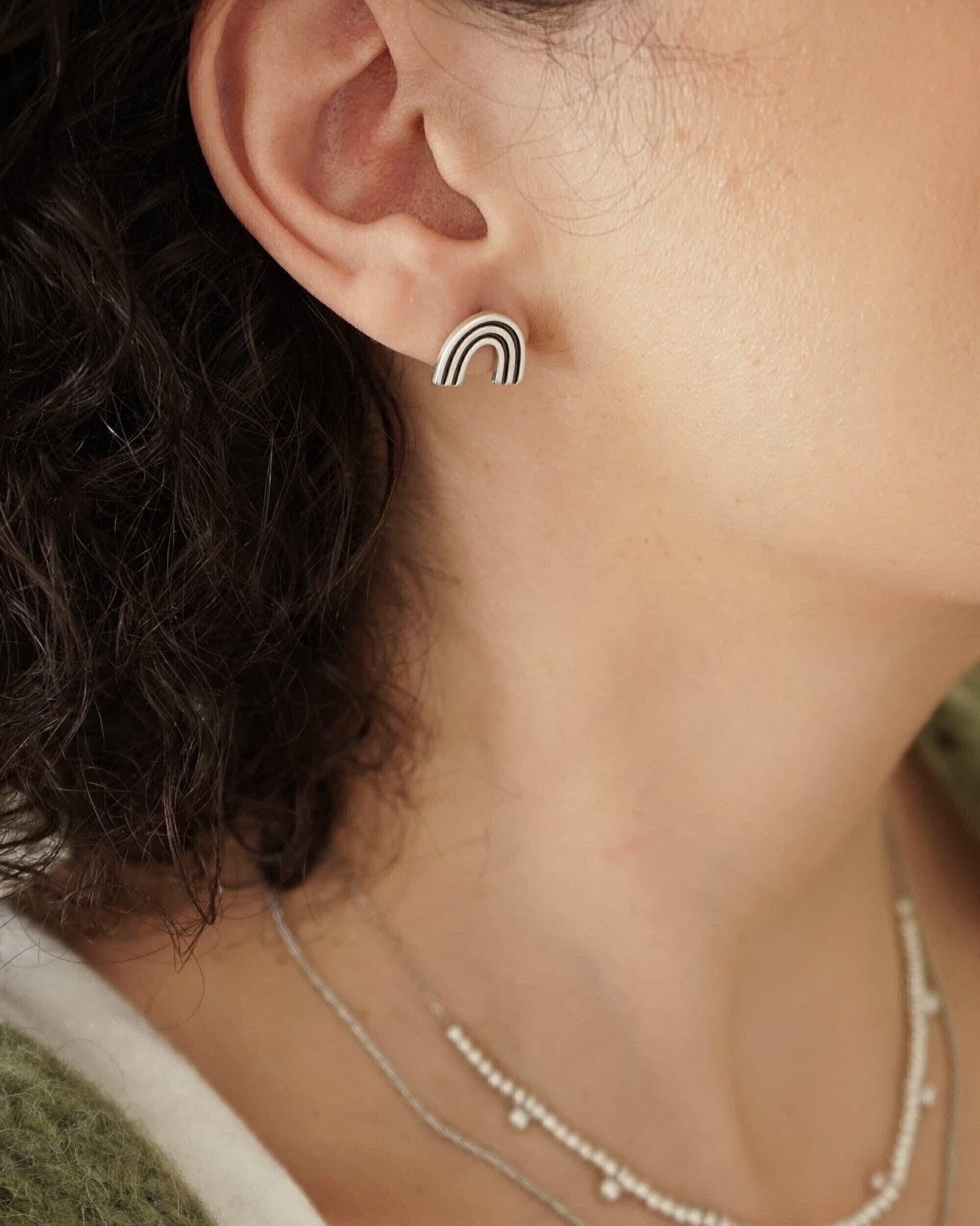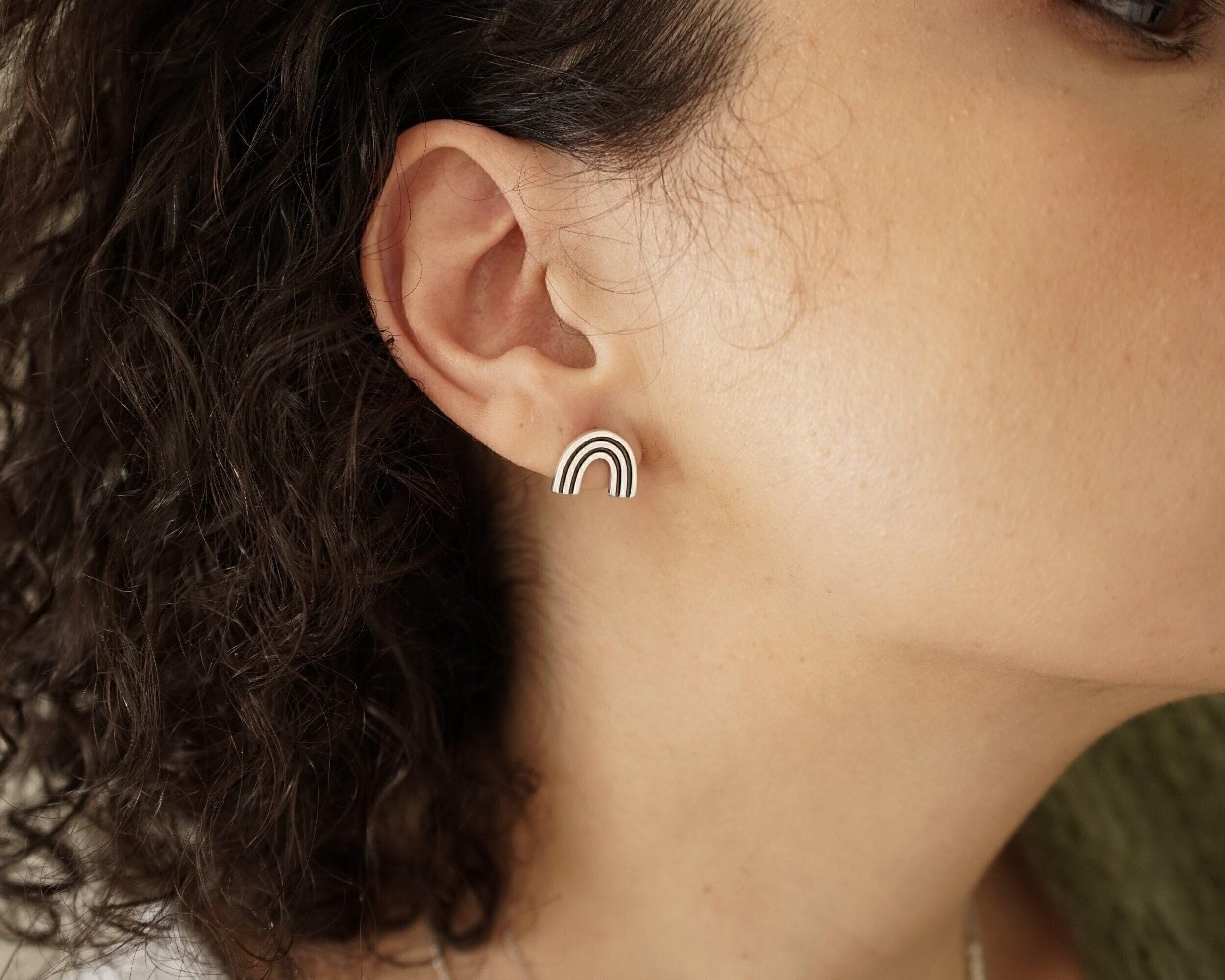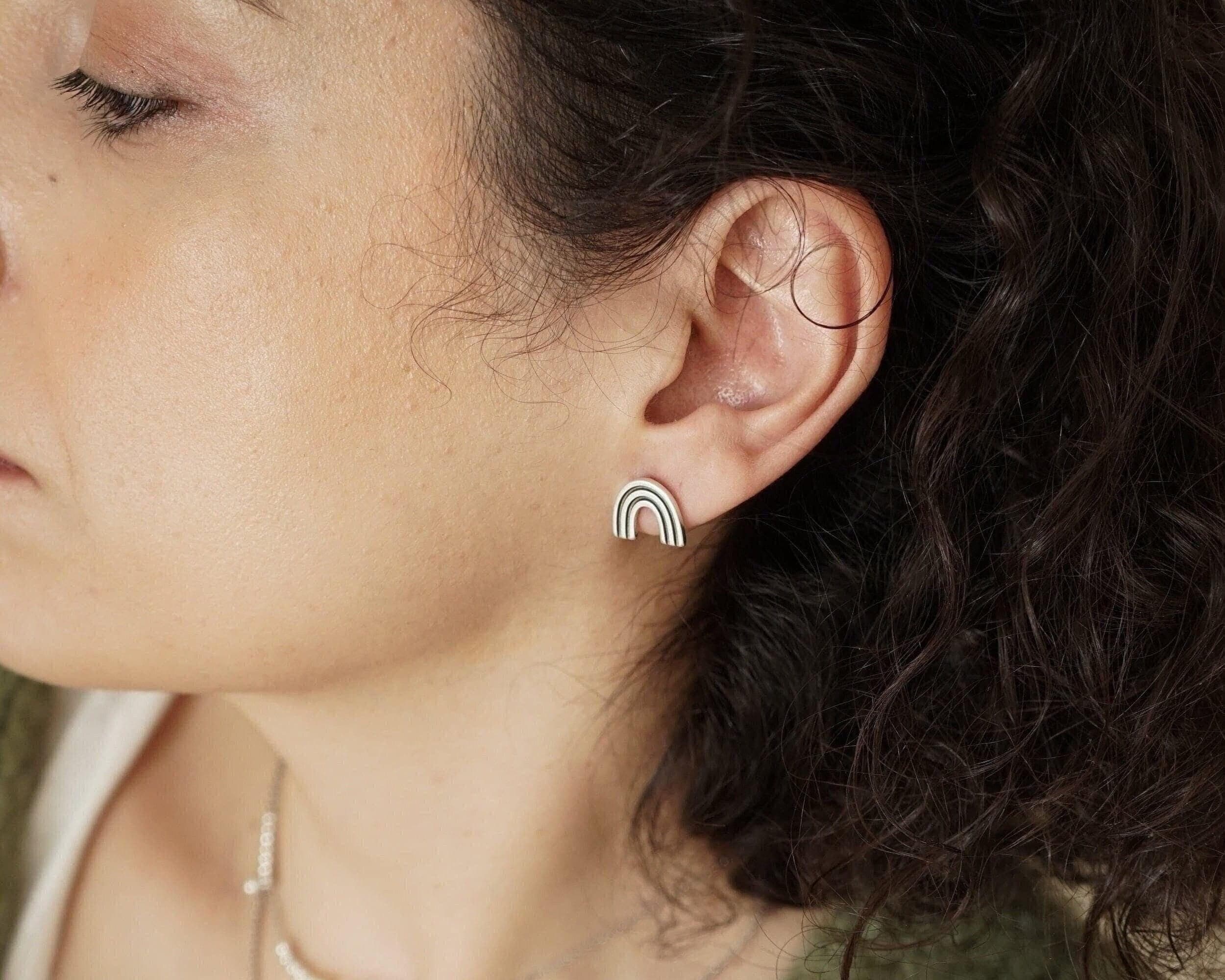 Discover a pair of unique rainbow stud earrings that seamlessly blend simplicity with a touch of individuality. If you appreciate accessories that are both special and meaningful, these earrings are likely to become a cherished addition to your collection. Their dainty design exudes effortless style, making them a versatile piece that effortlessly enhances any outfit.