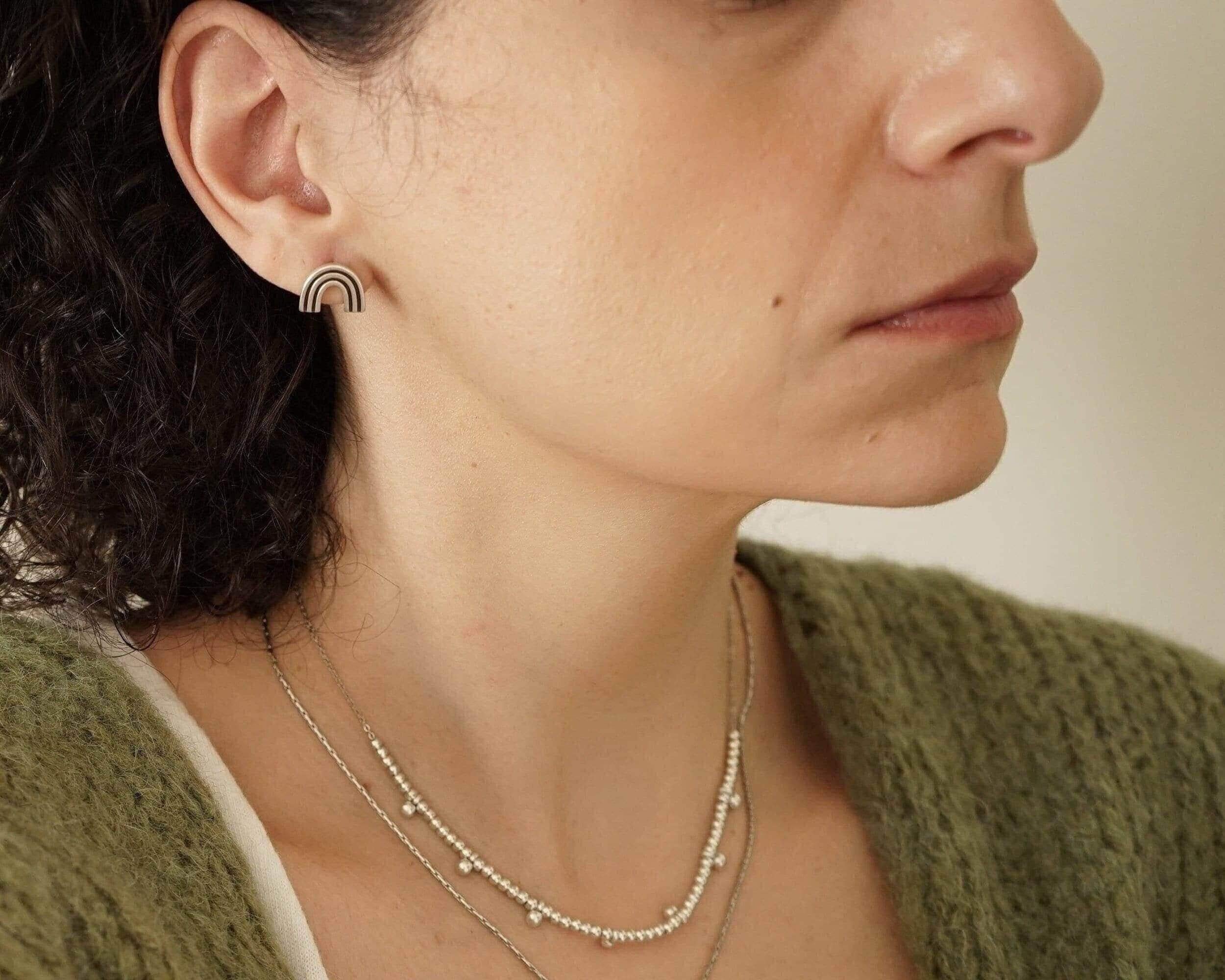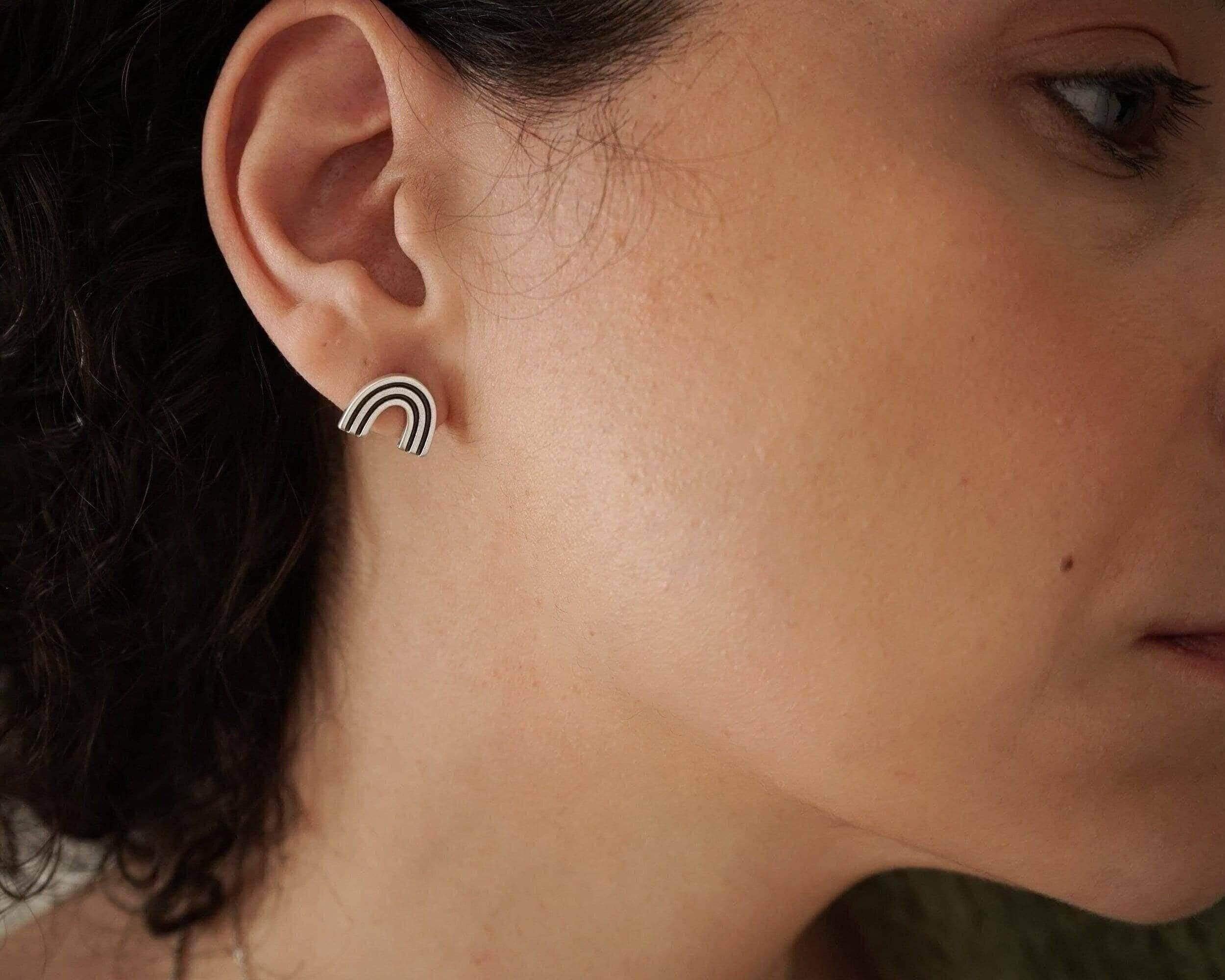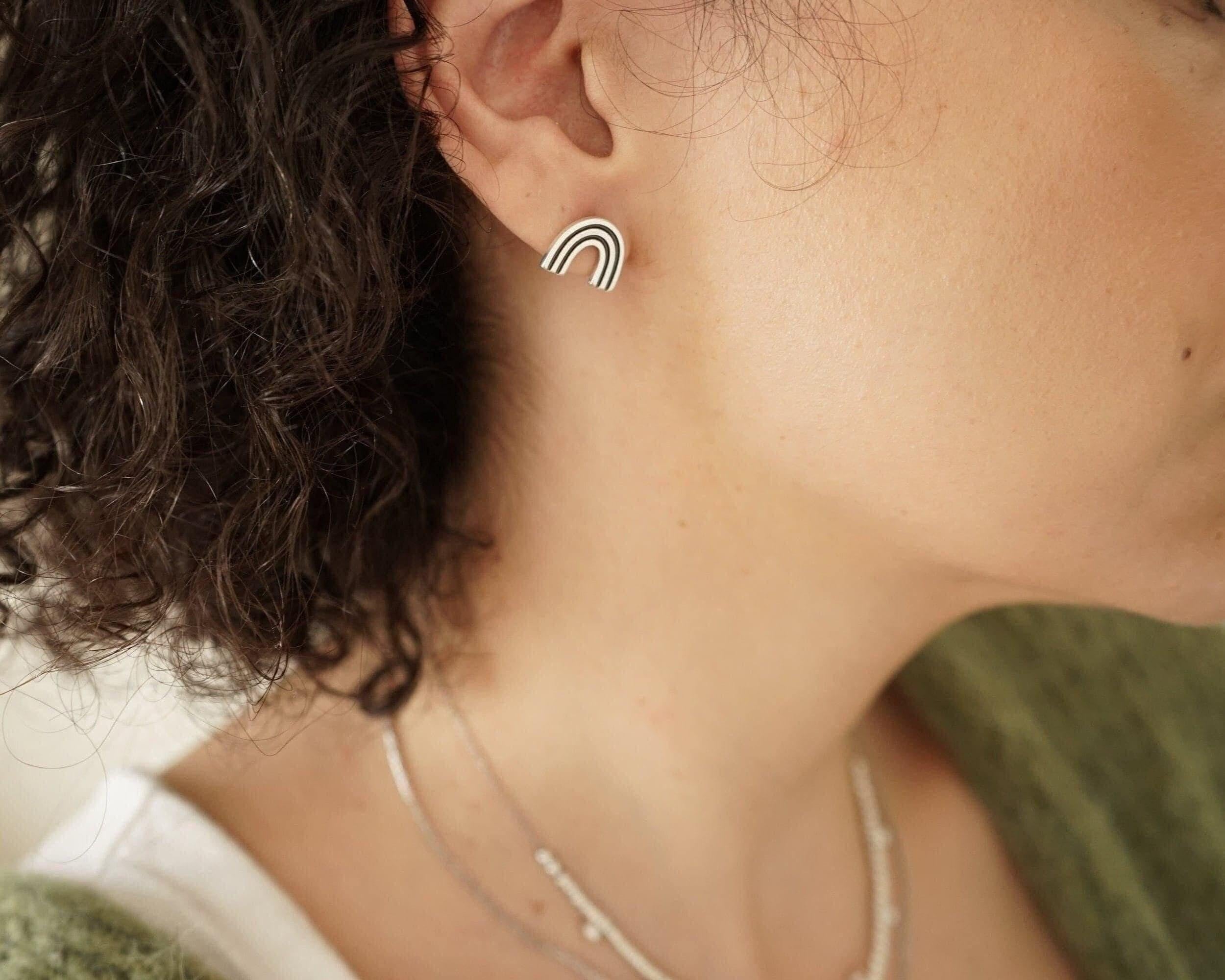 Discover a pair of unique rainbow stud earrings that seamlessly blend simplicity with a touch of individuality. If you appreciate accessories that are both special and meaningful, these earrings are likely to become a cherished addition to your collection. Their dainty design exudes effortless style, making them a versatile piece that effortlessly enhances any outfit.