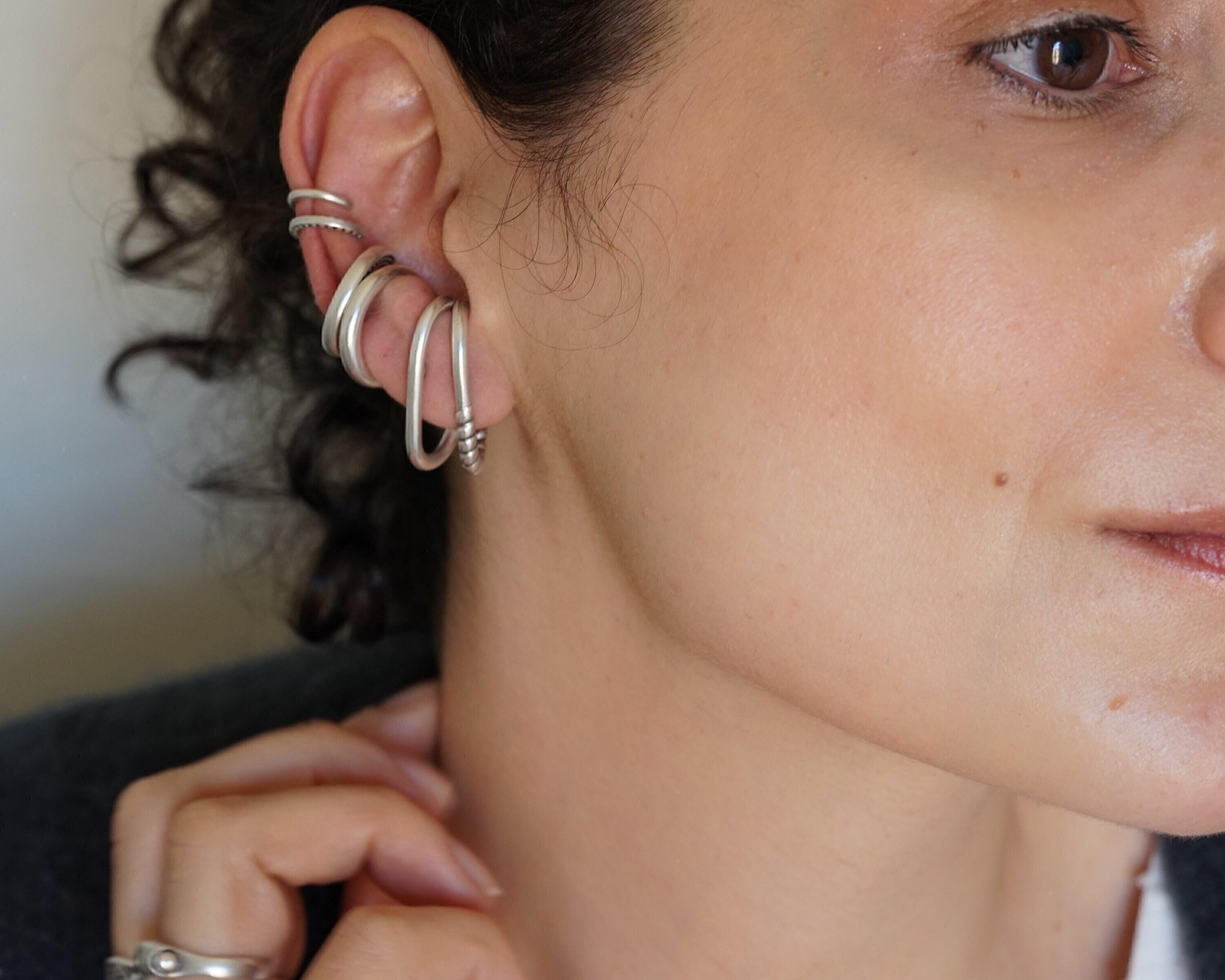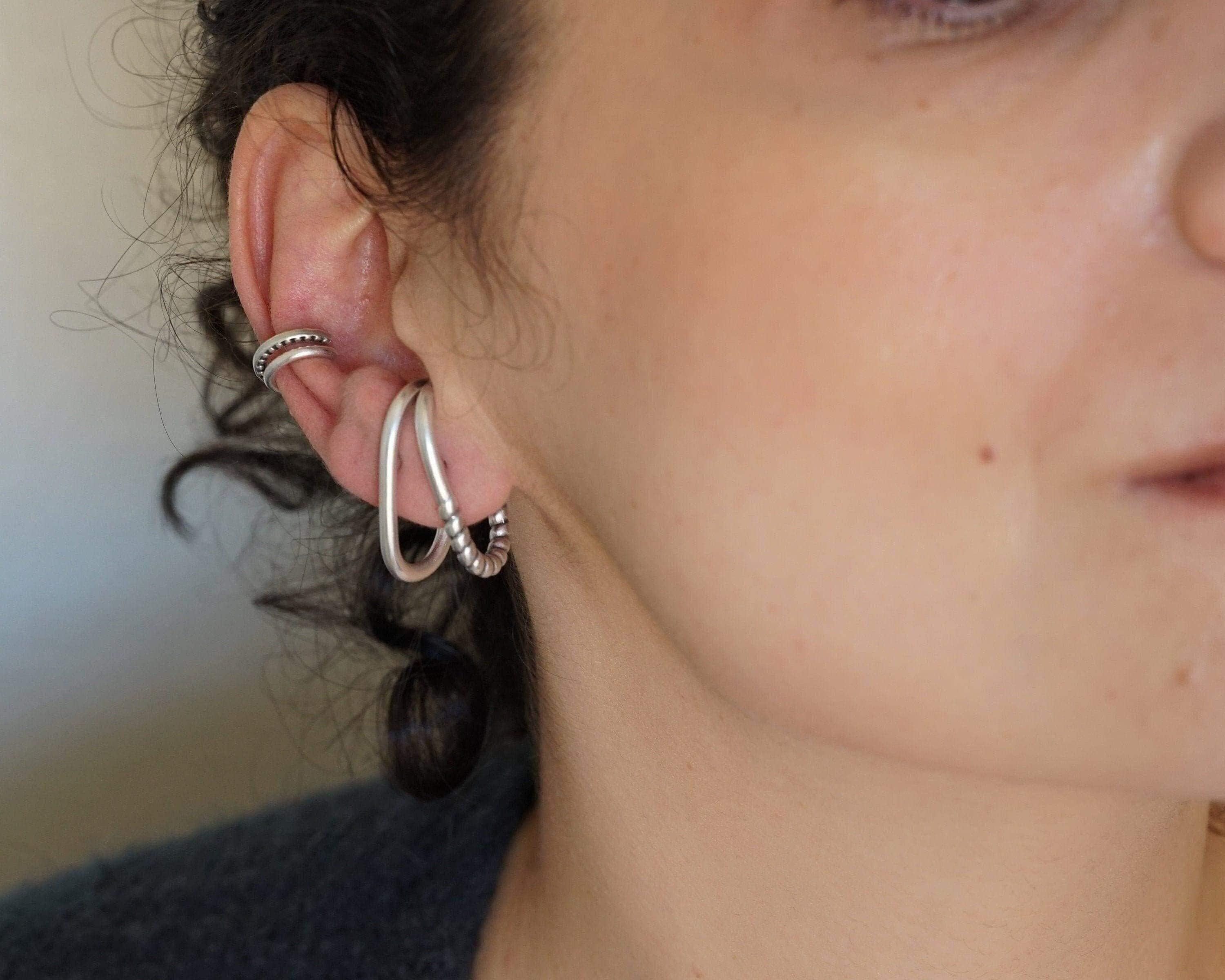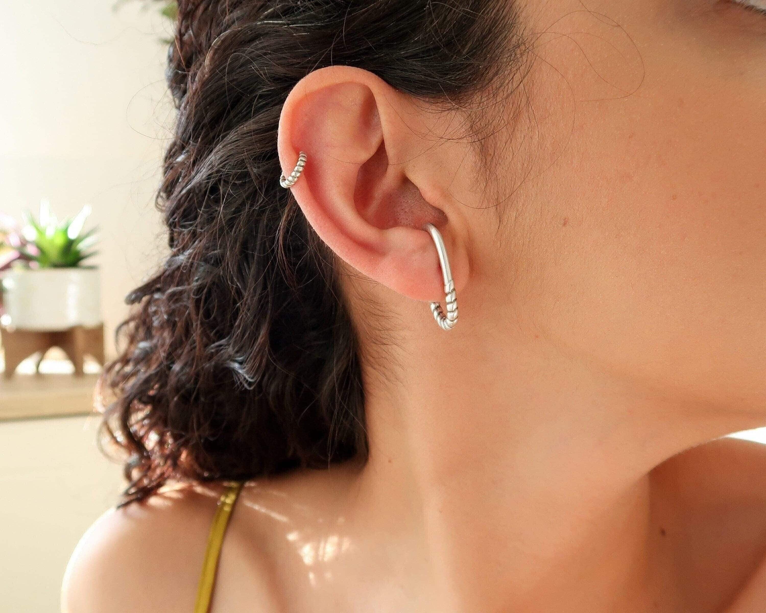 Single Silver Long Lobe Hugger Earring